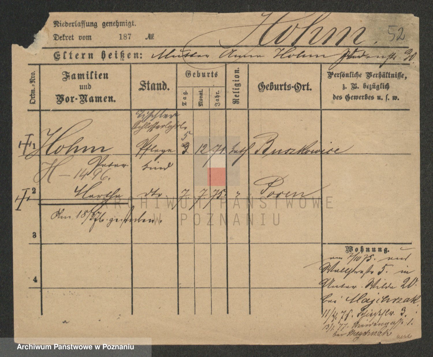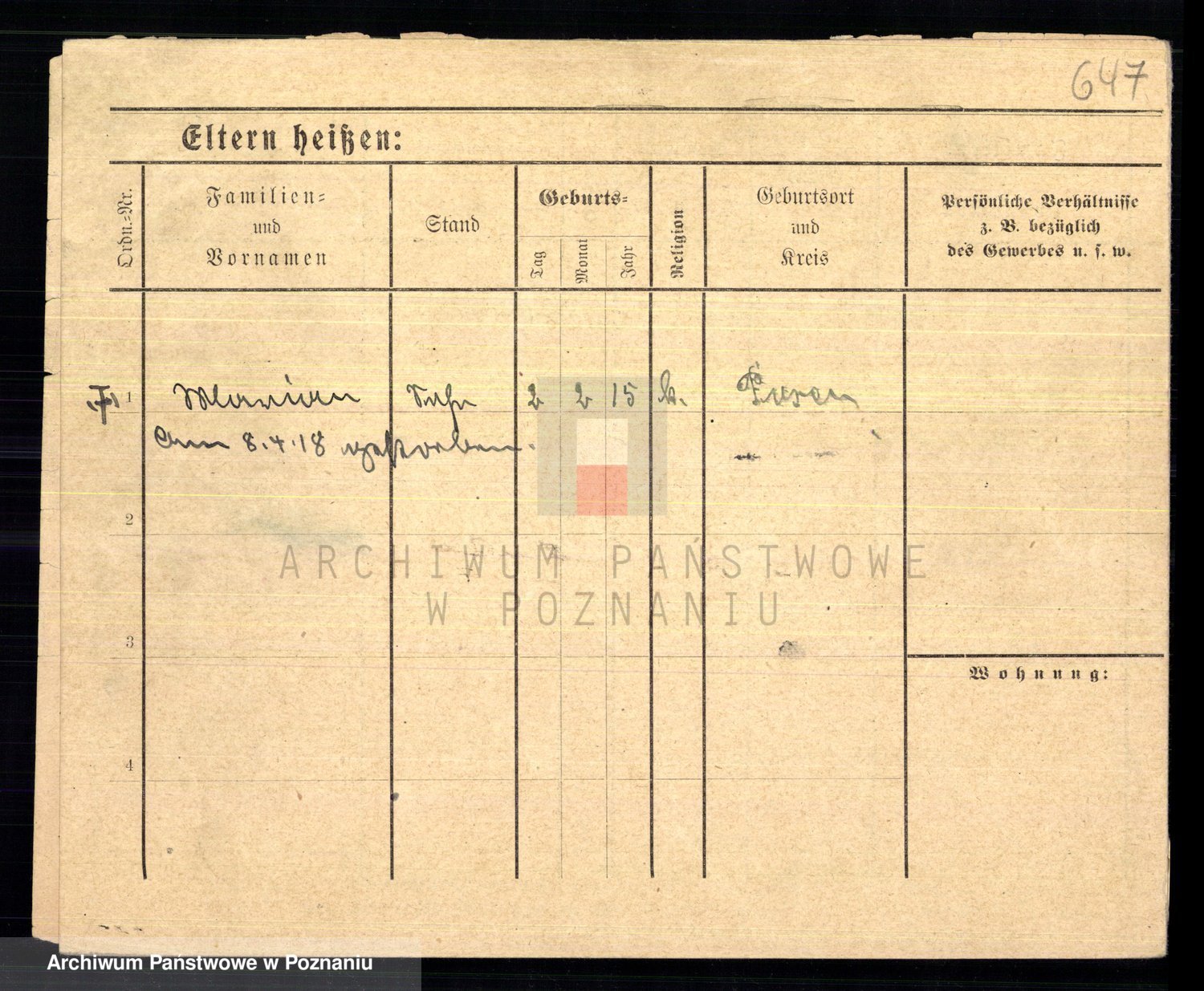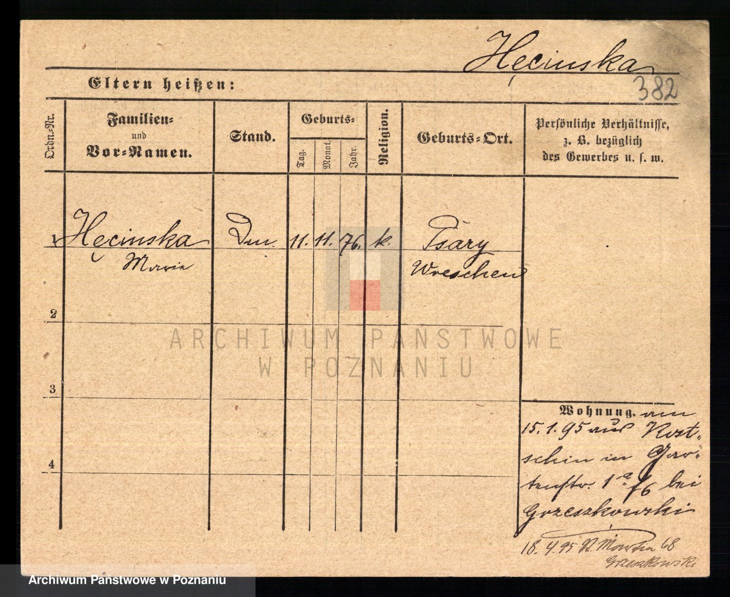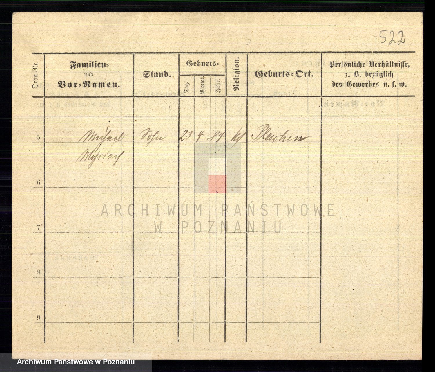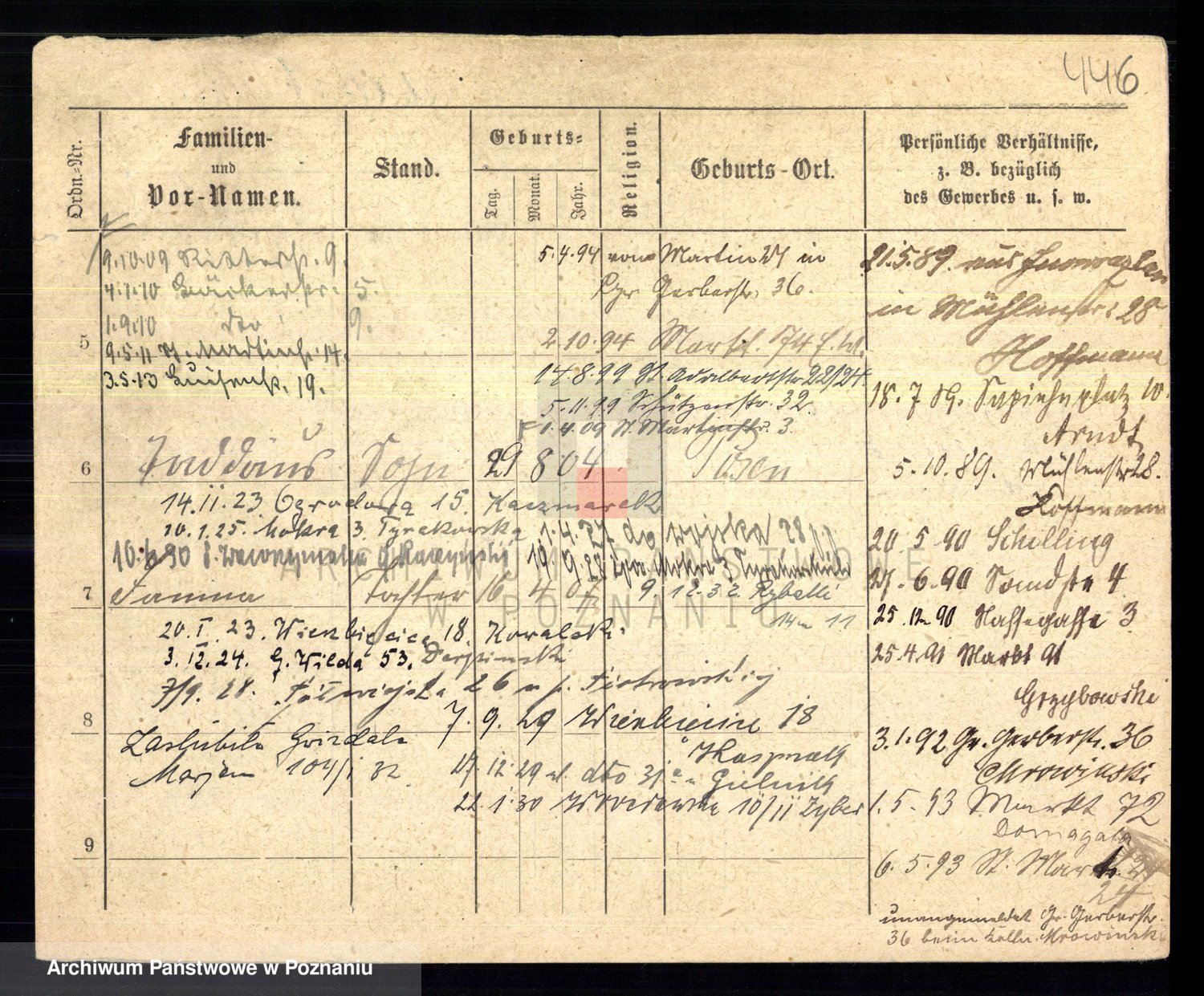 Podgląd karty osobowej dostępny jest po kliknięciu na nazwisko lub ikonkę karty. Można dokonywać powiększenia (ikony na górze) lub przechodzić między kolejnymi skanami (strzałki po bokach).