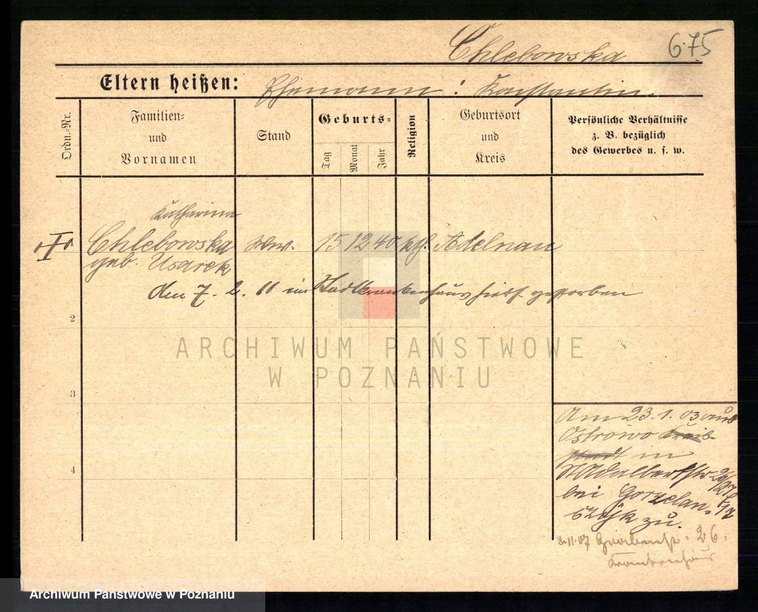 Chelmicki von z d. Putkowska, Valeria