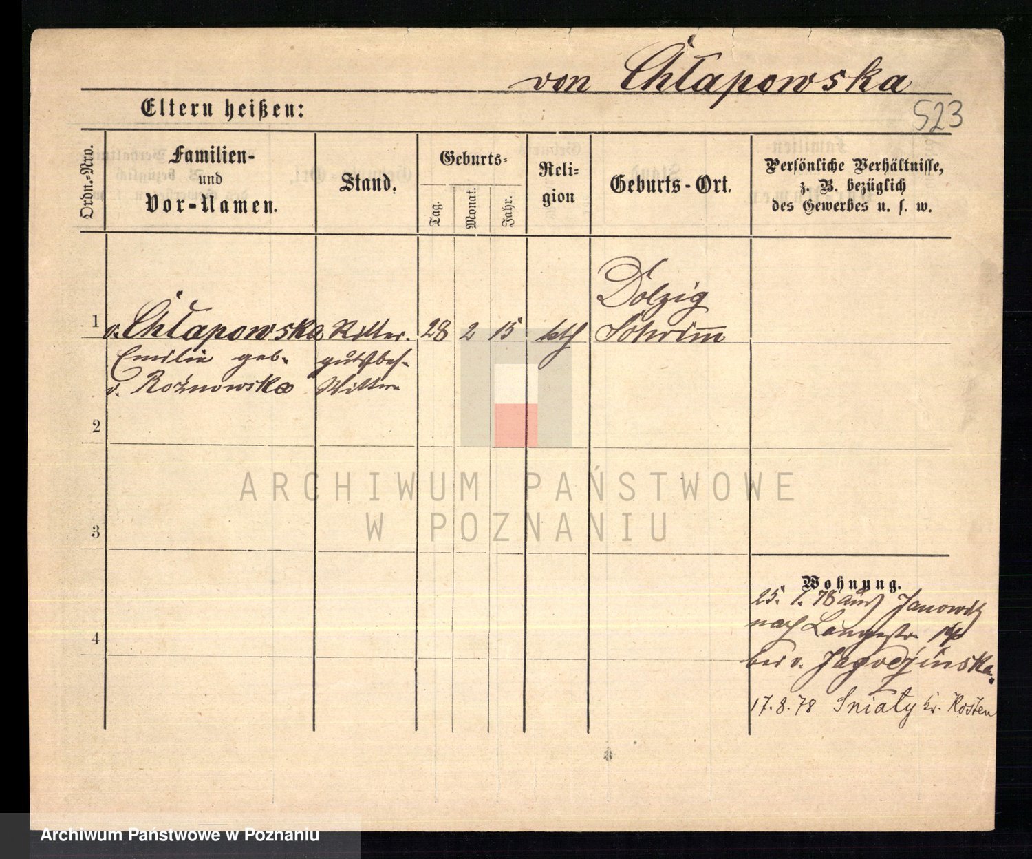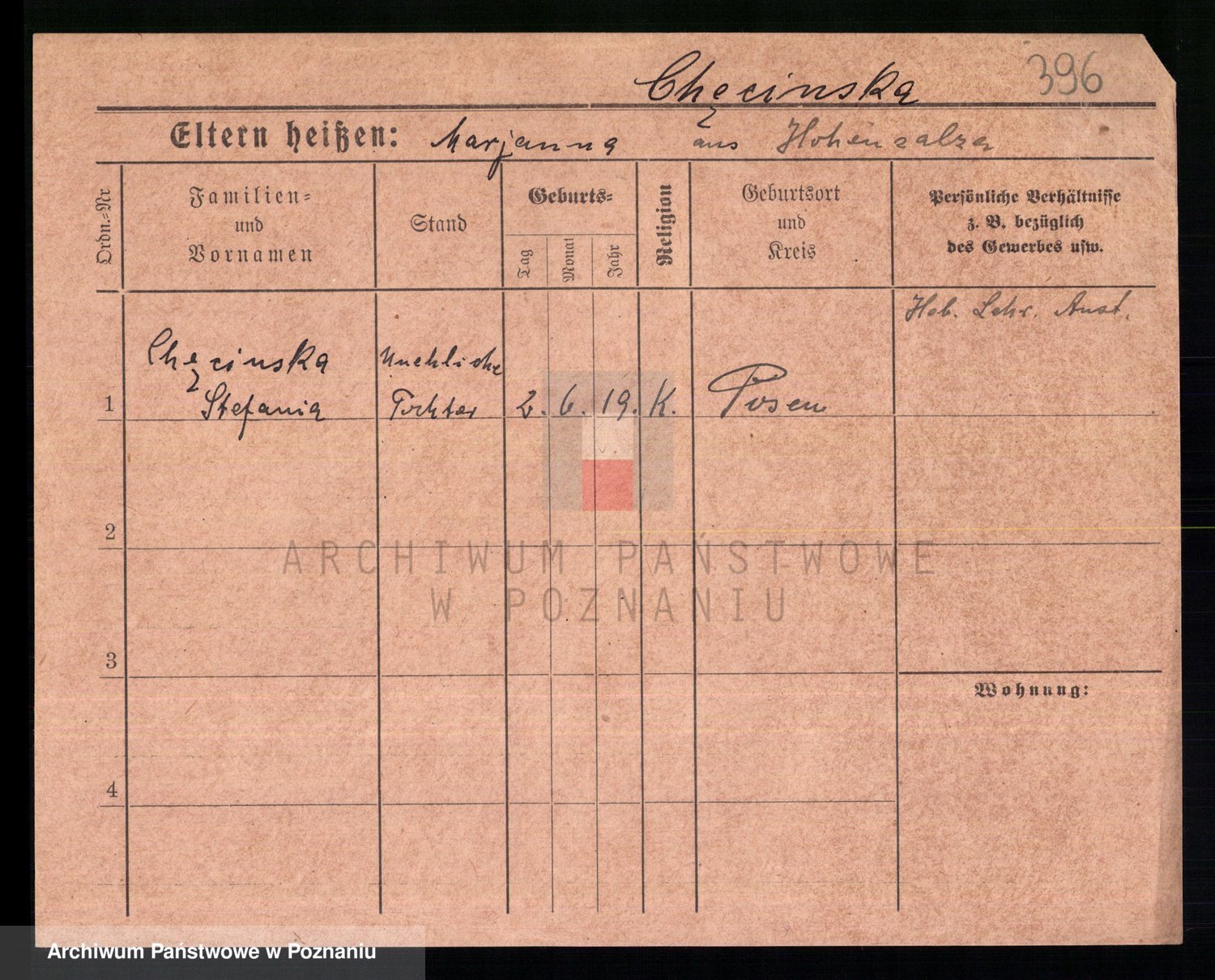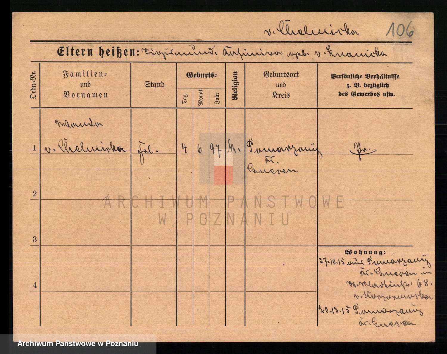 Chmara von z d. Szymanska, Faustine Eleonore