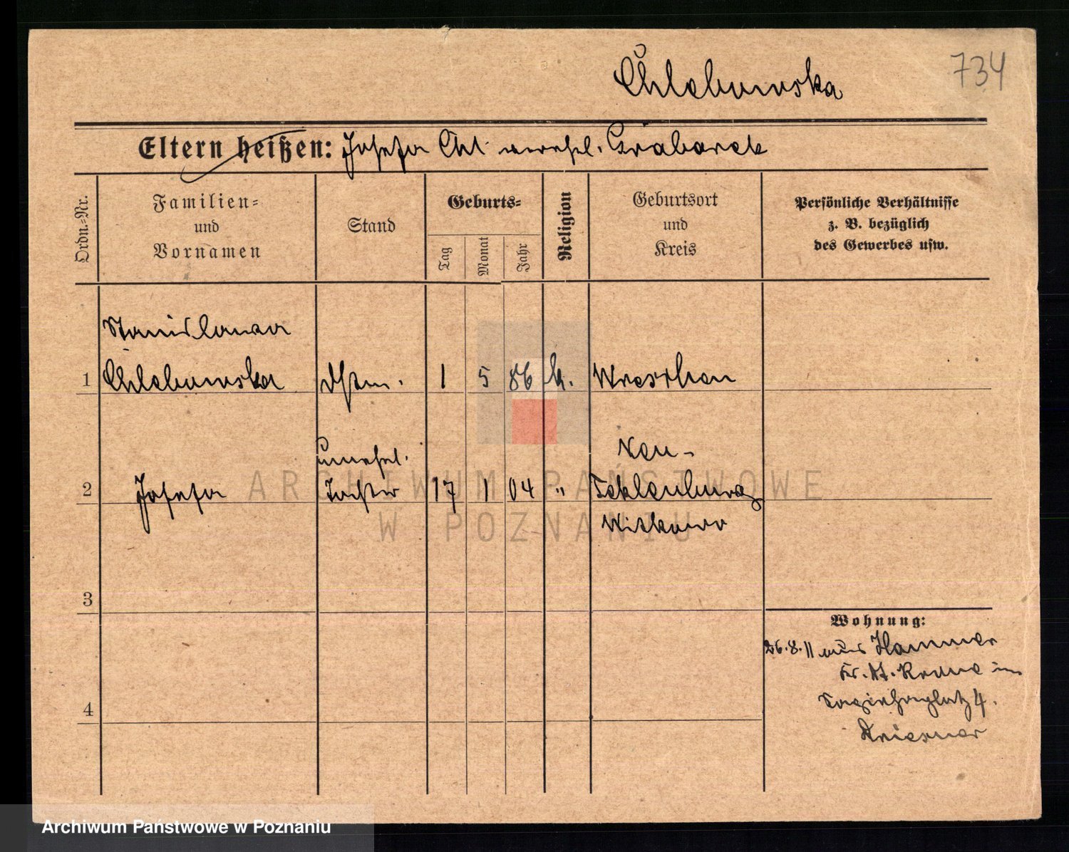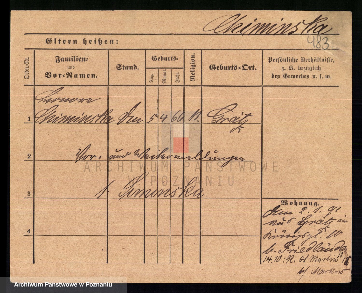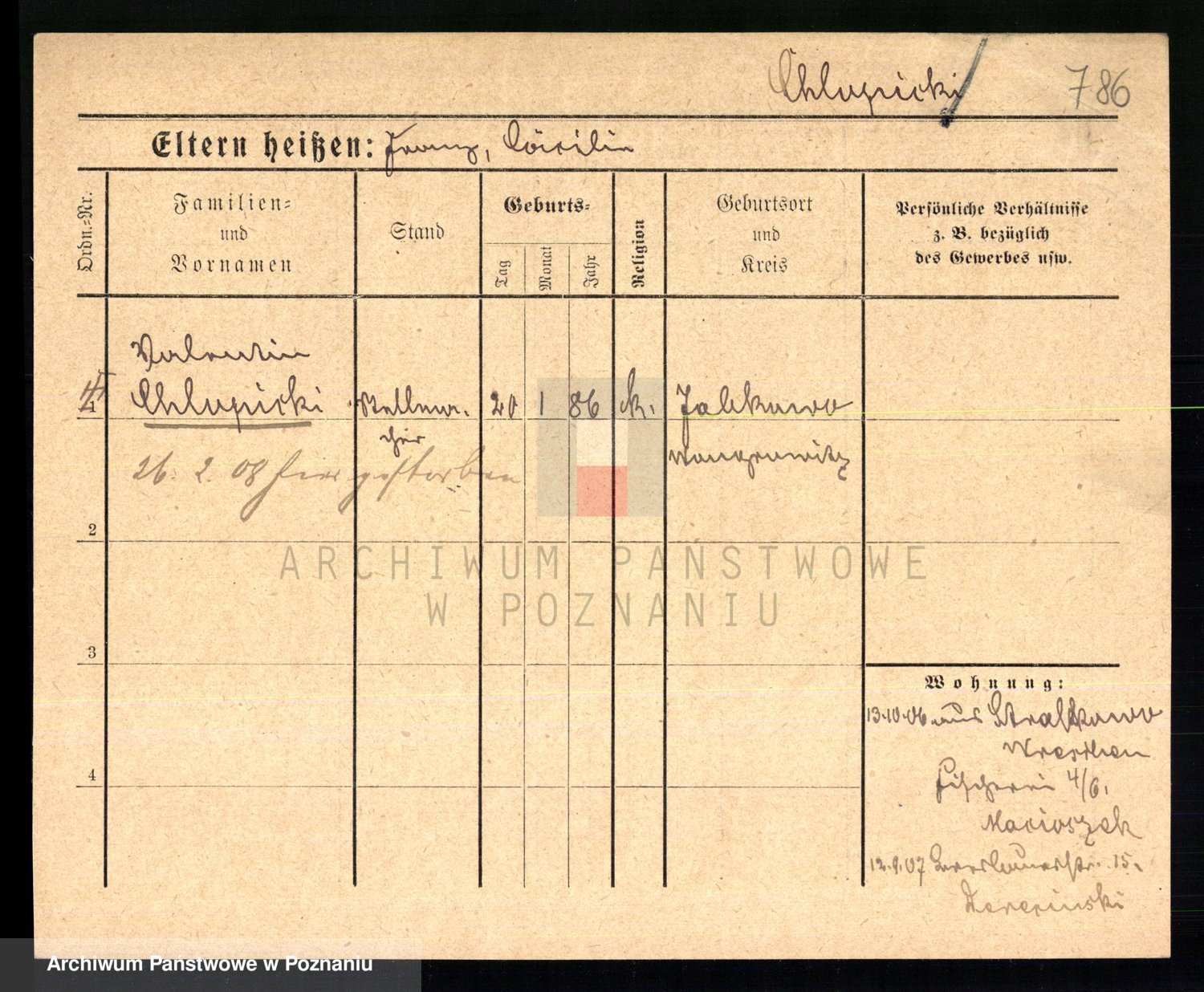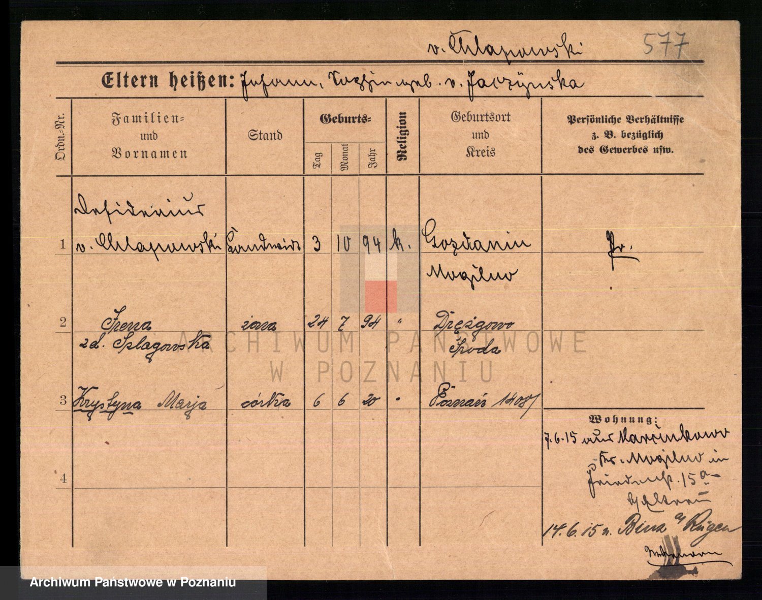 Chmara von z d. Szymanska, Faustine Eleonore