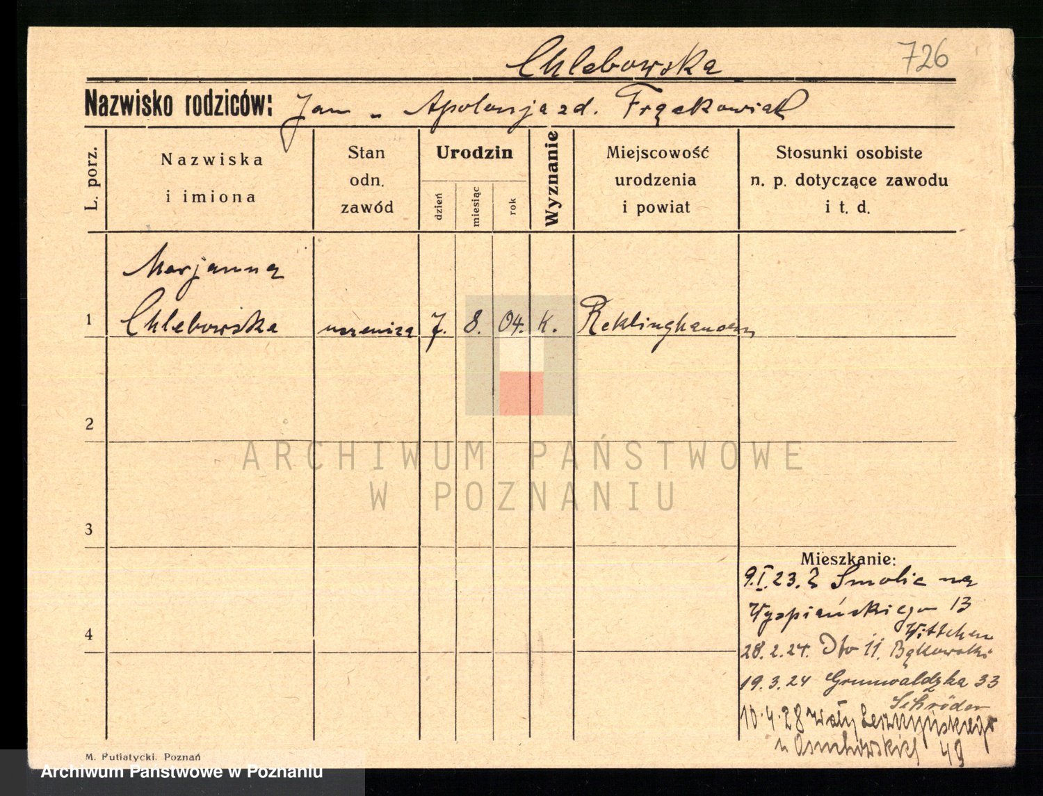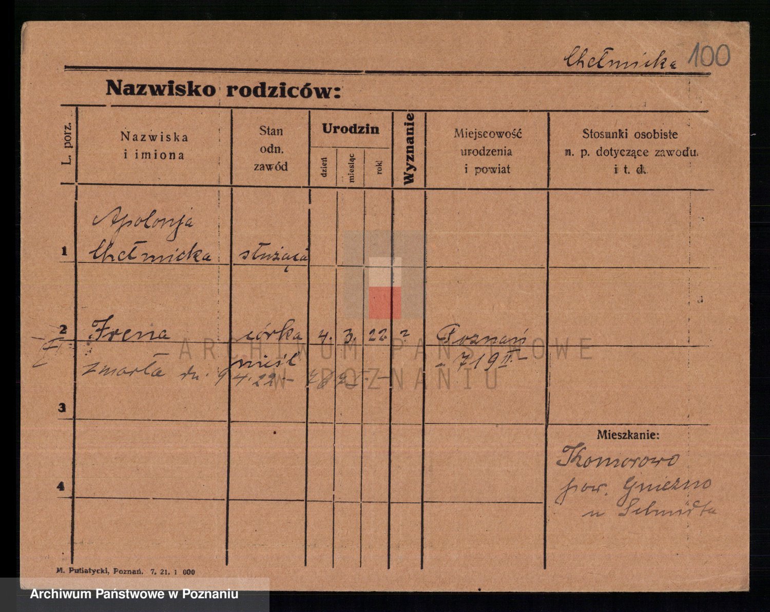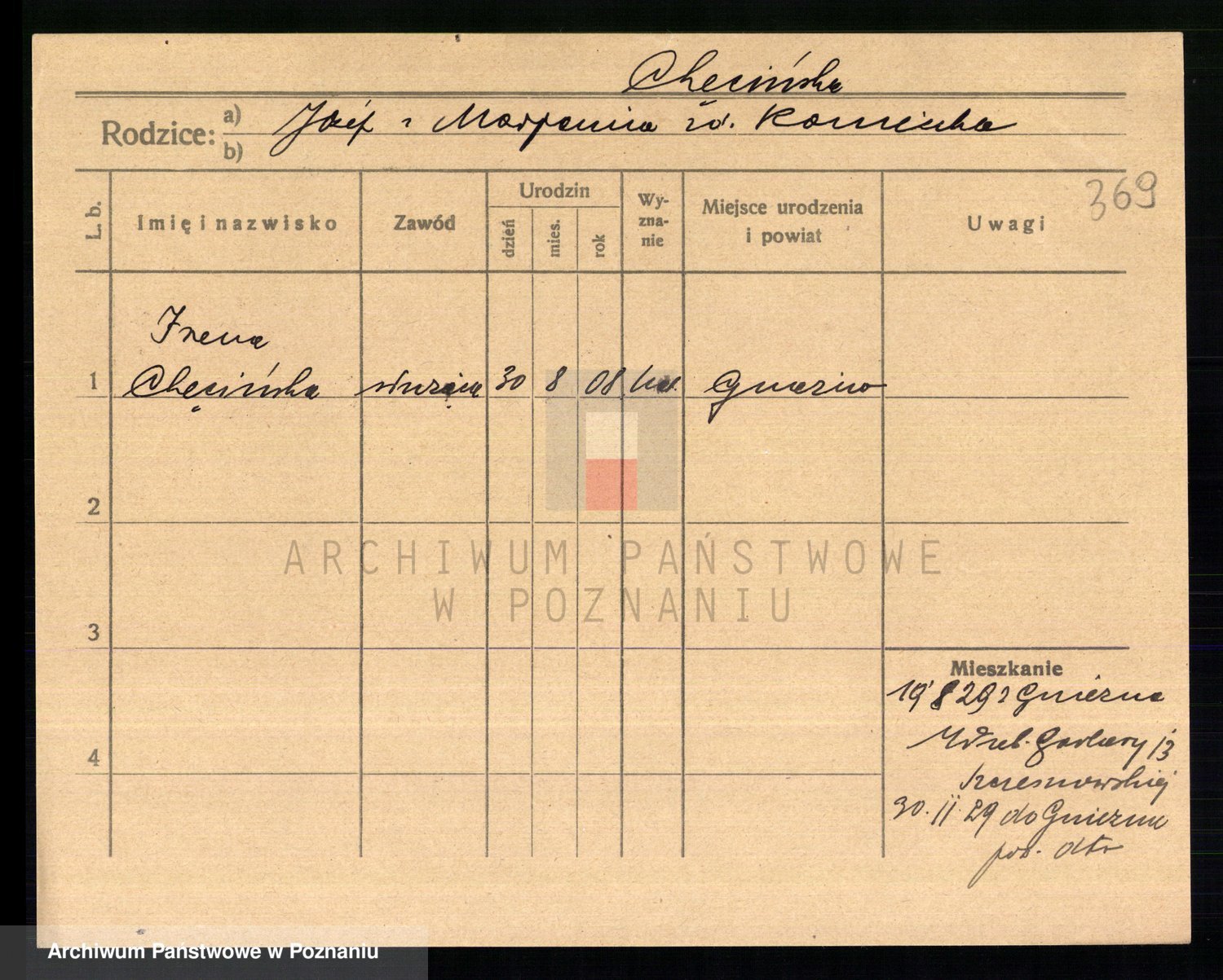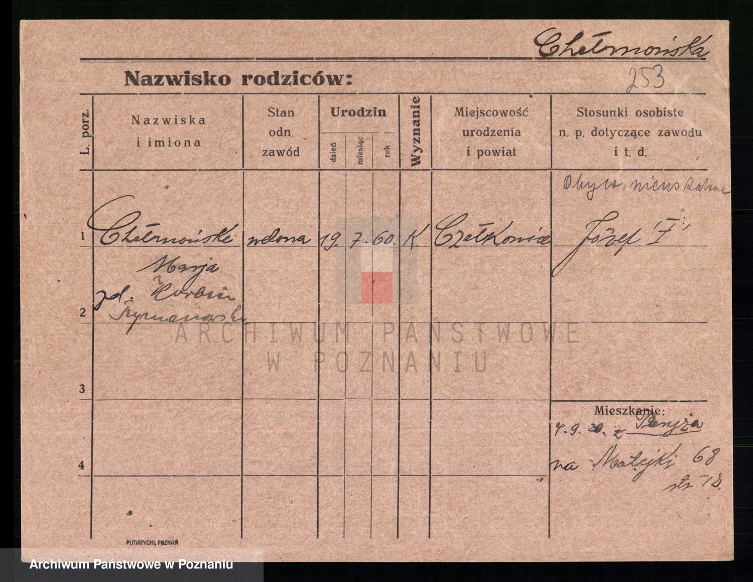 Chelma z d. Raczyborska I Sommer, Marianna