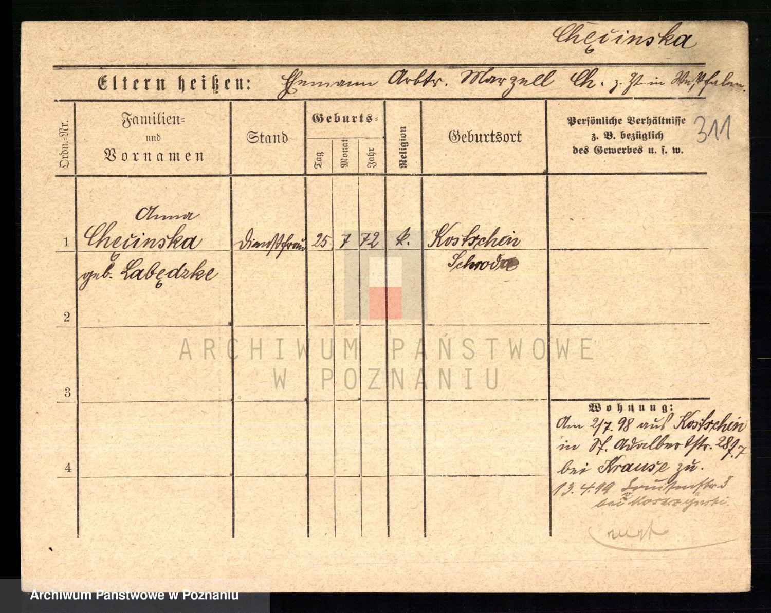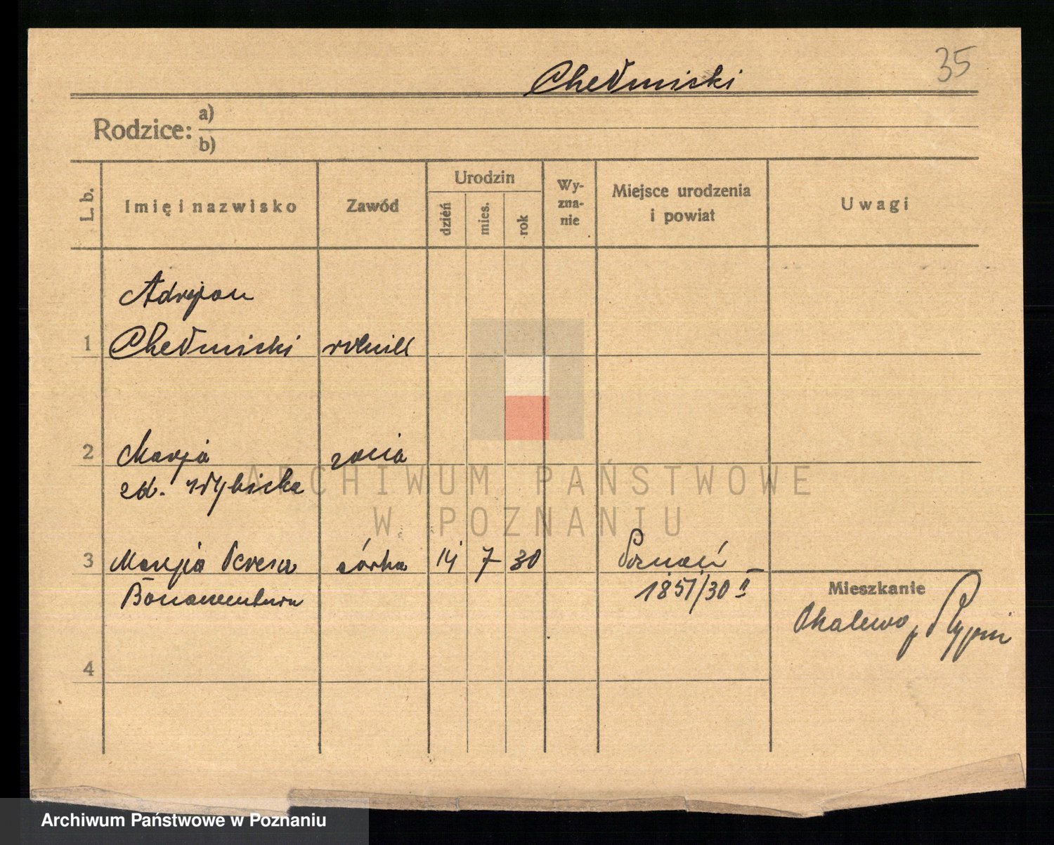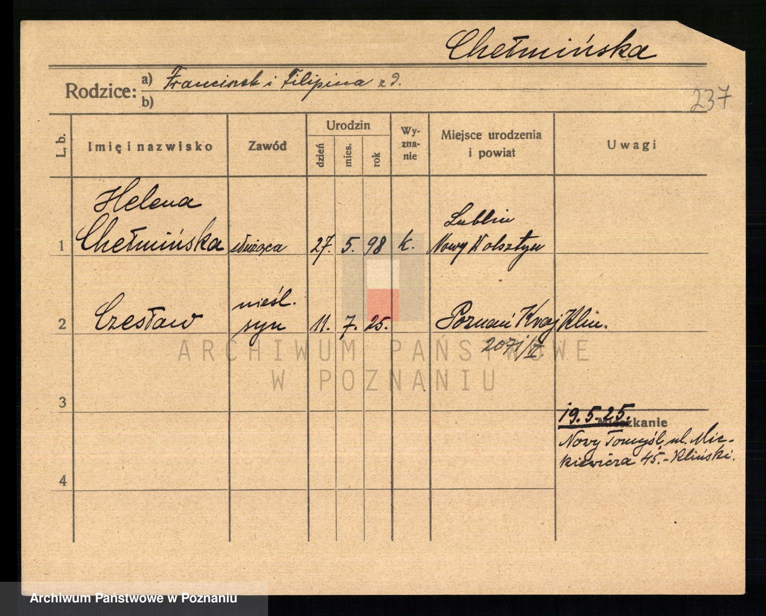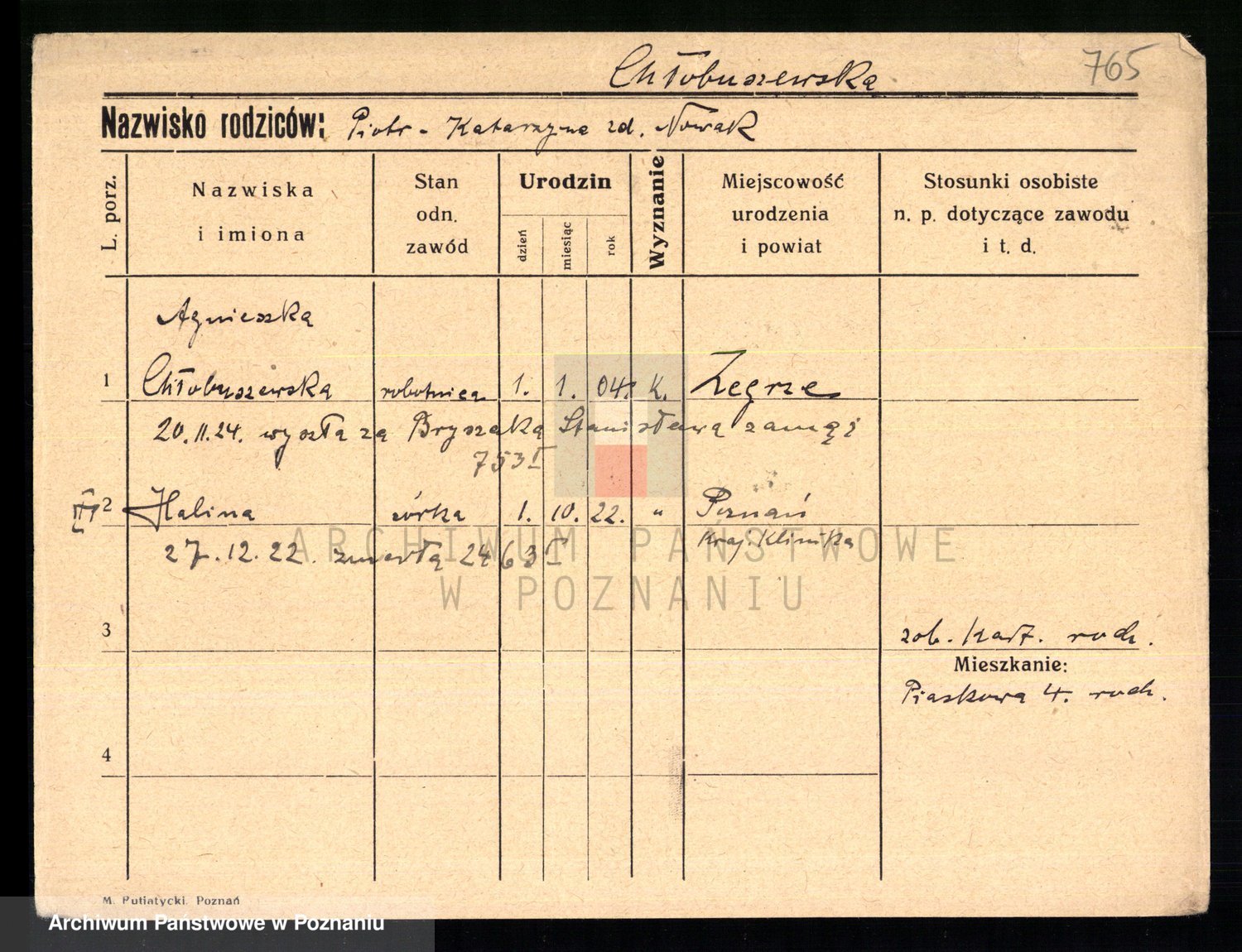 Chelma z d. Raczyborska I Sommer, Marianna
