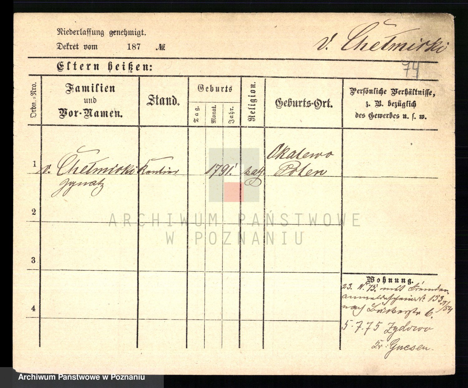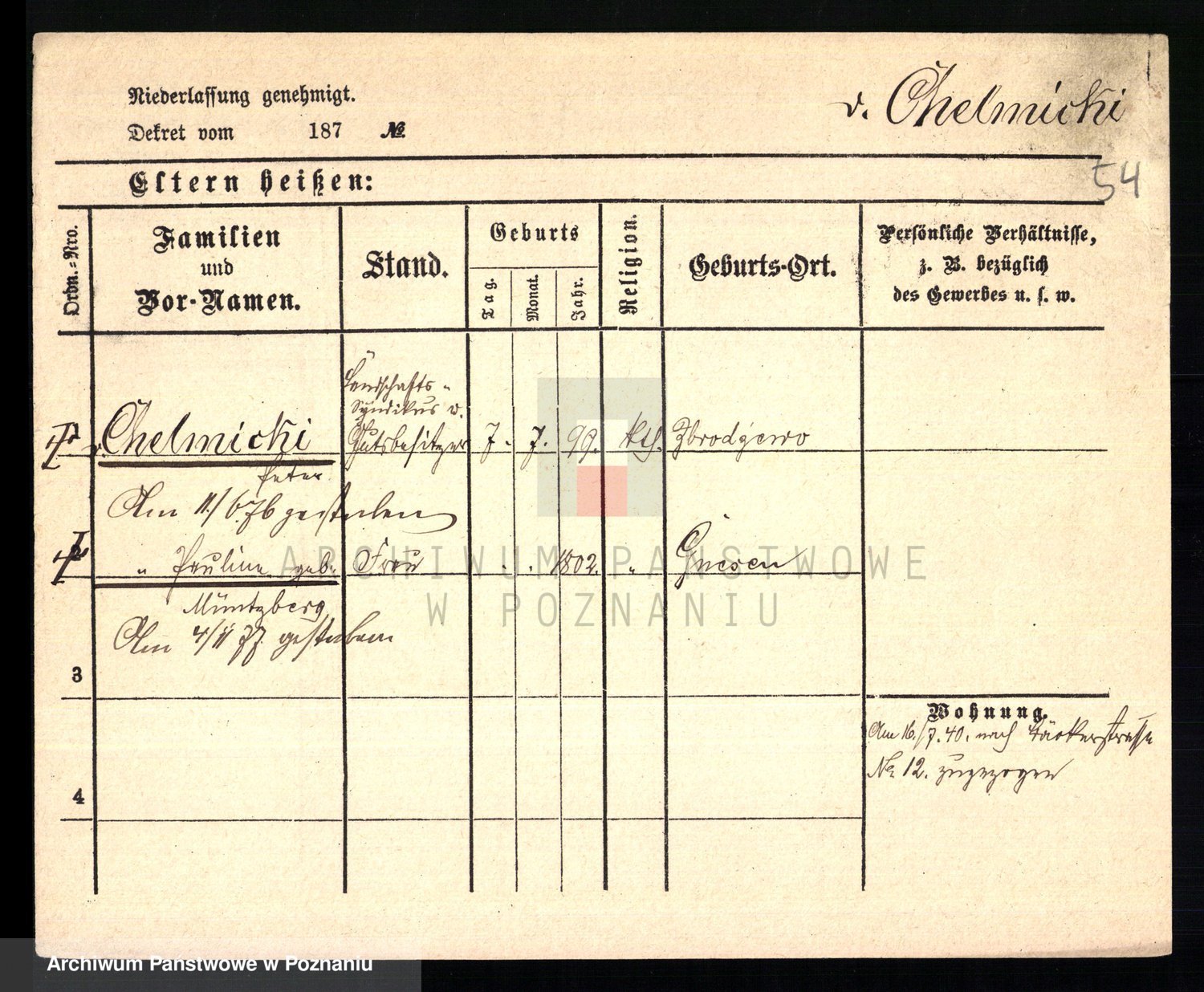 Chelmicki von, Stanislaus