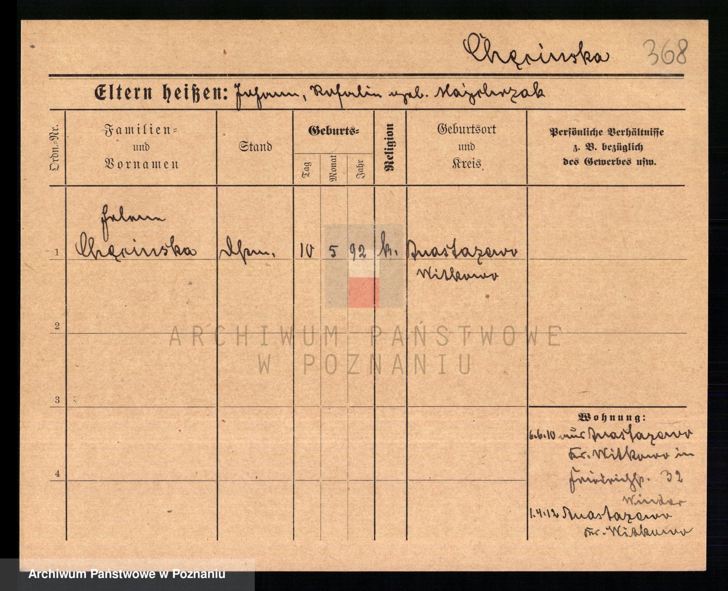 Chmara von z d. Herczynska, Antonie