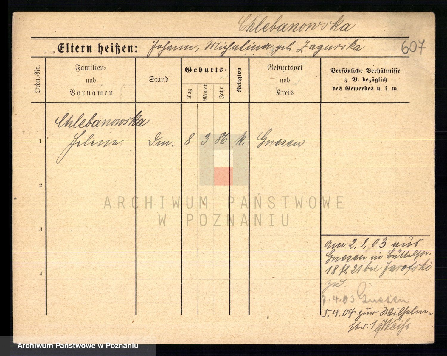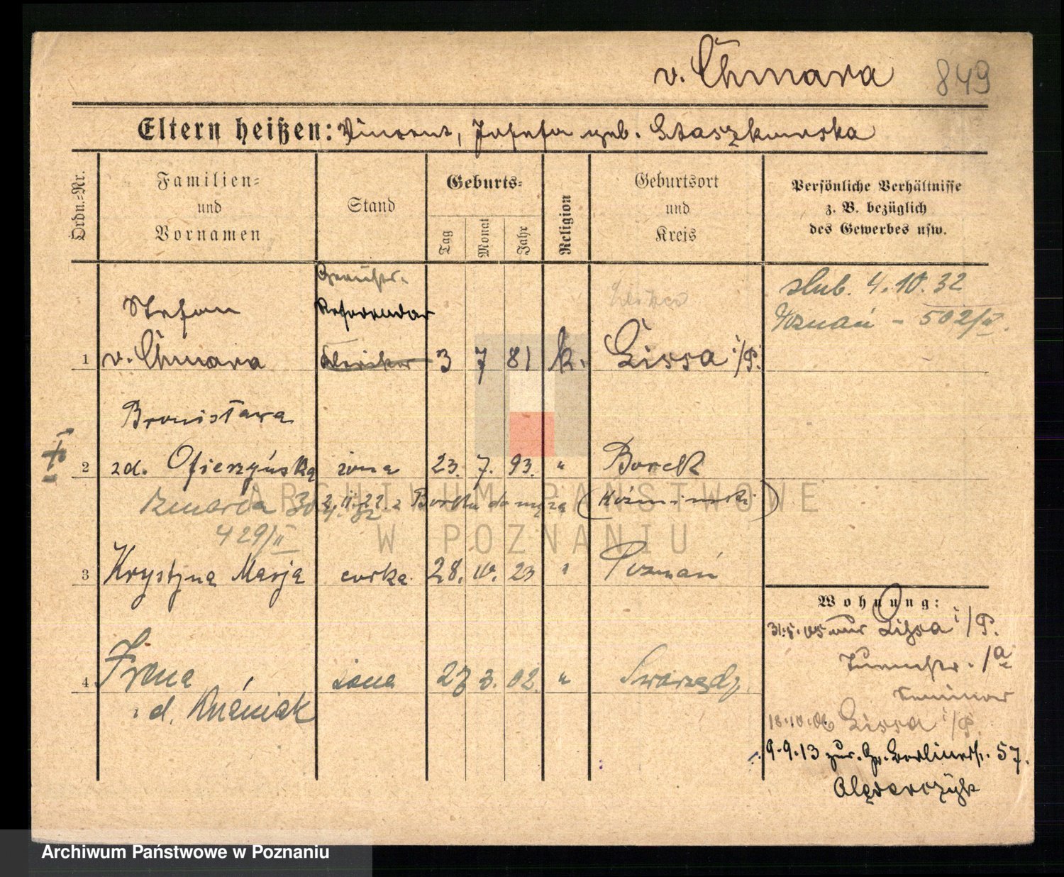 Chmara von z d. Czarnecka, Franziska