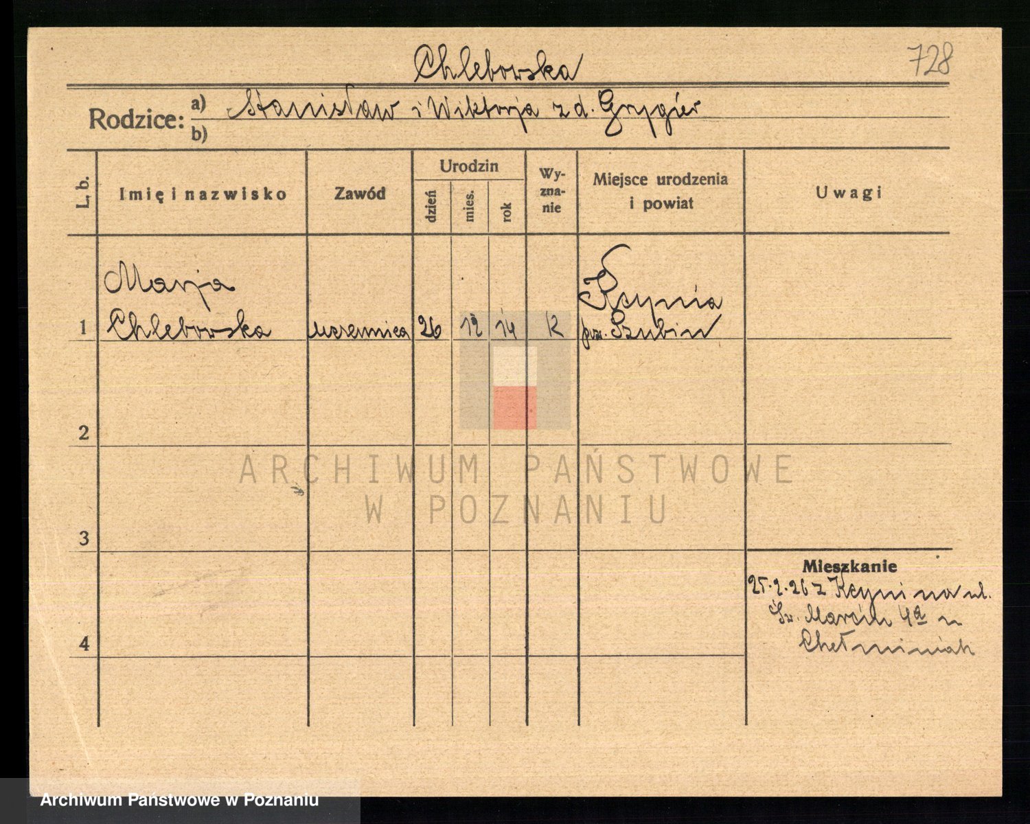 Chełmicka z d. Wybicka, Marja