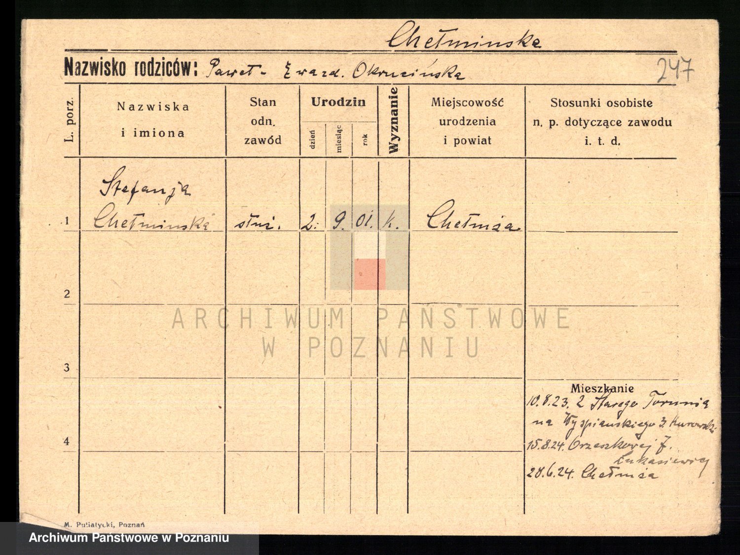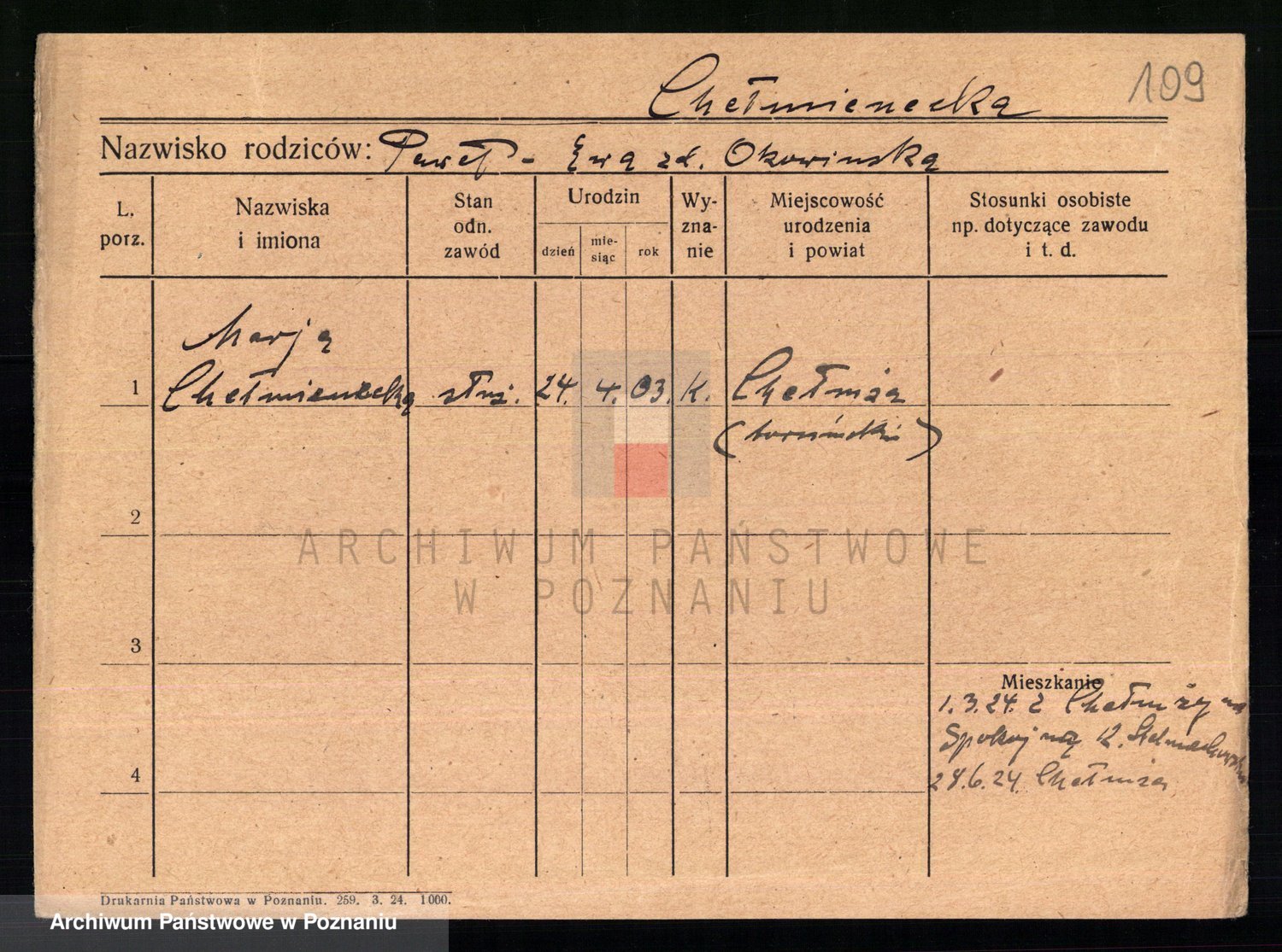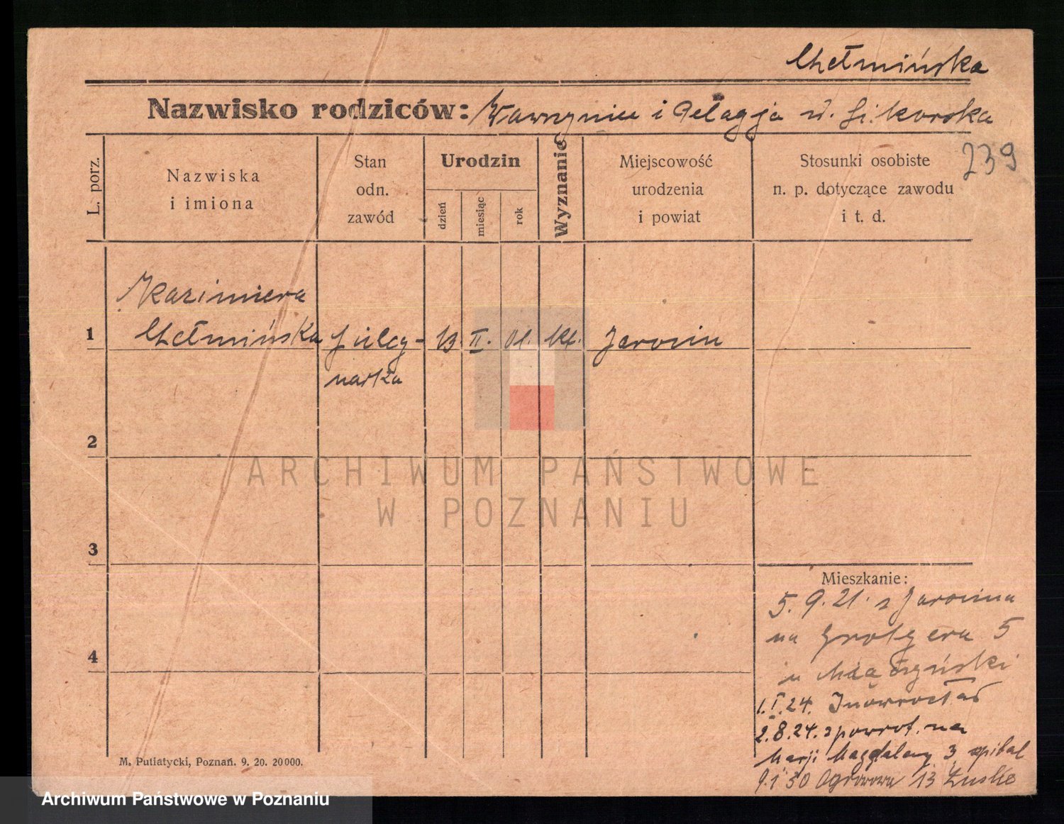 Chmarzyńska, Marja