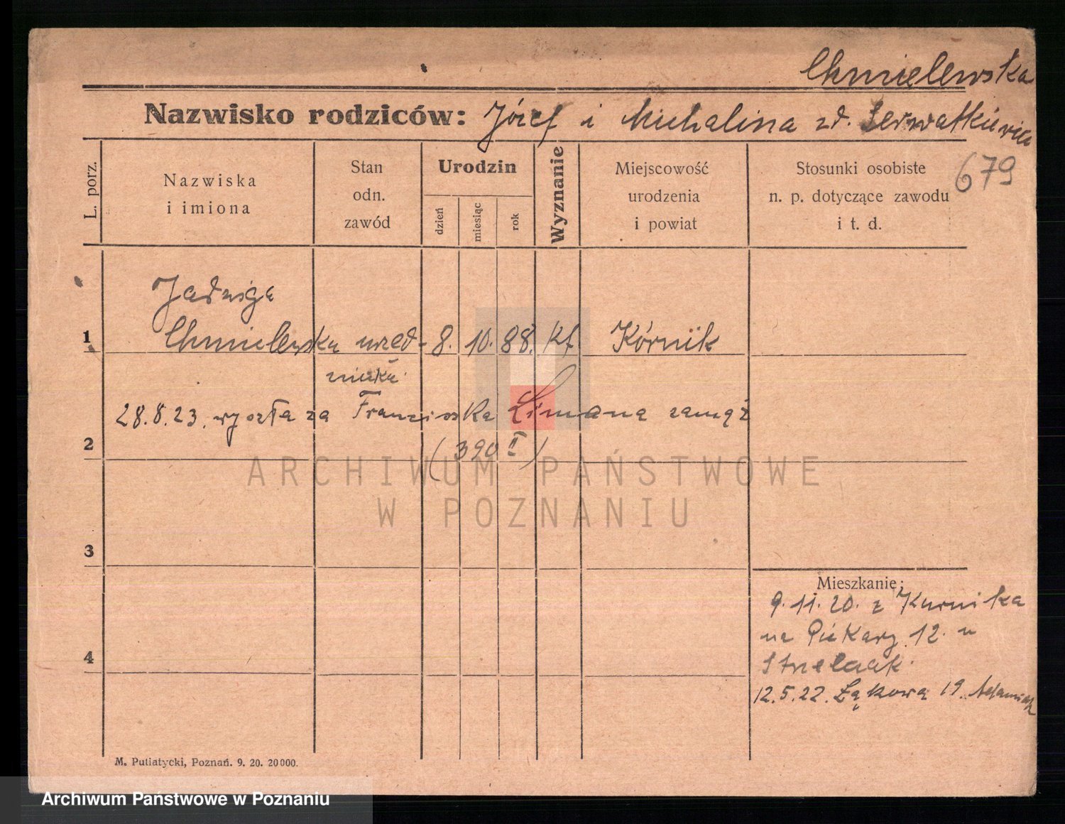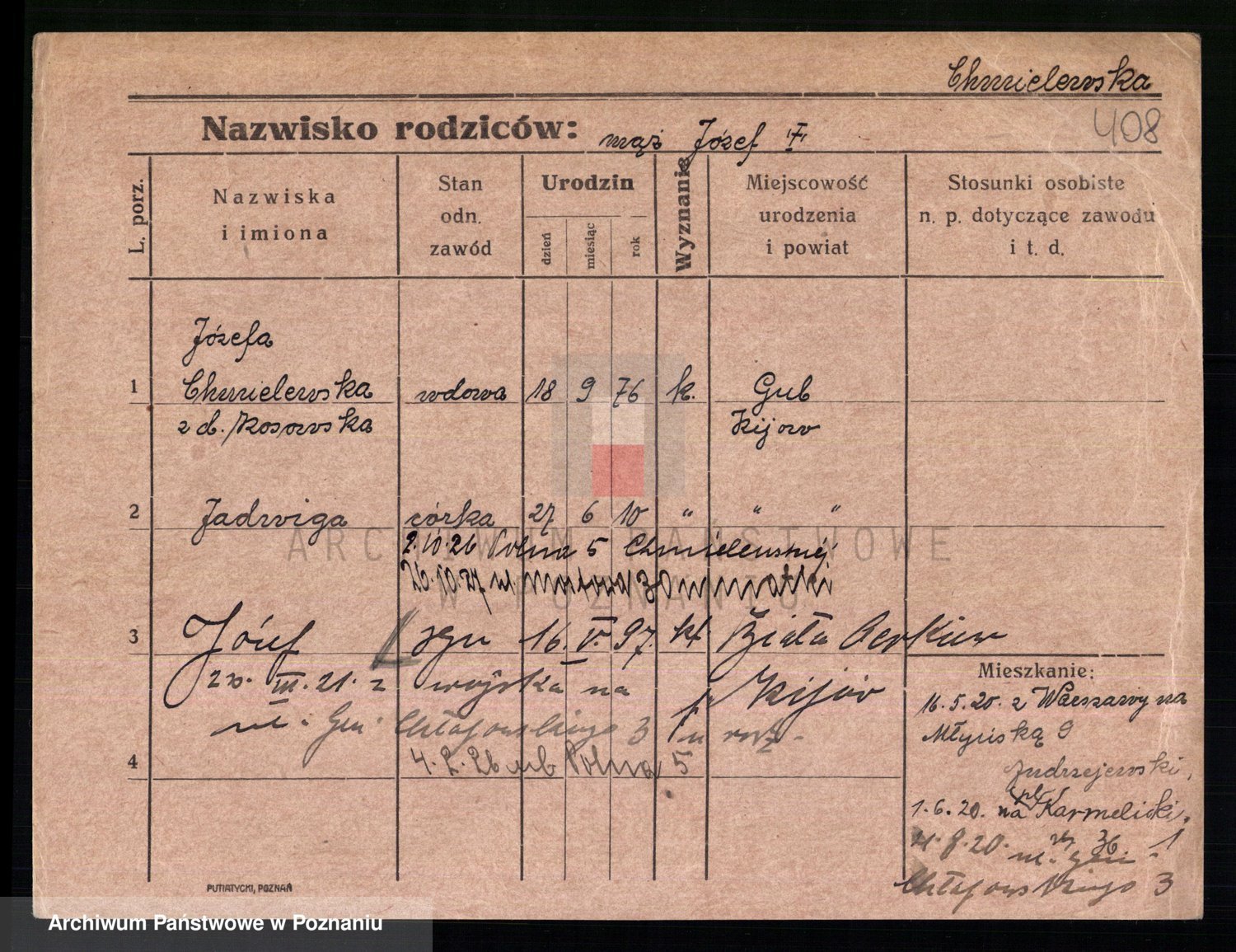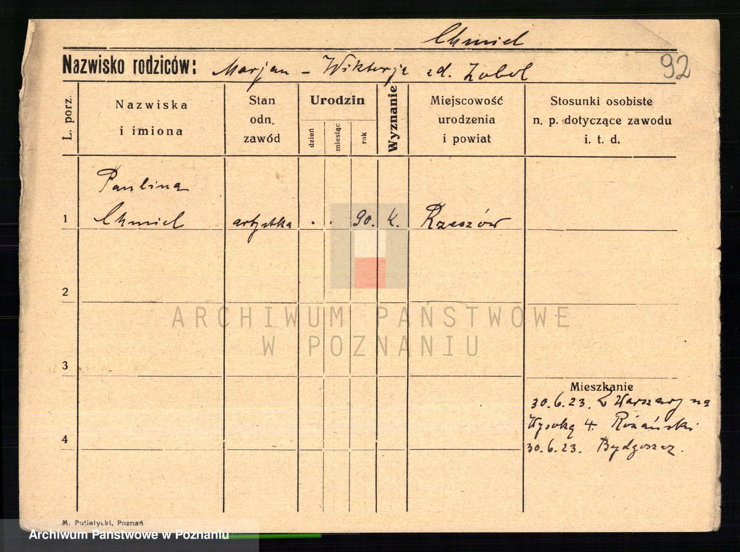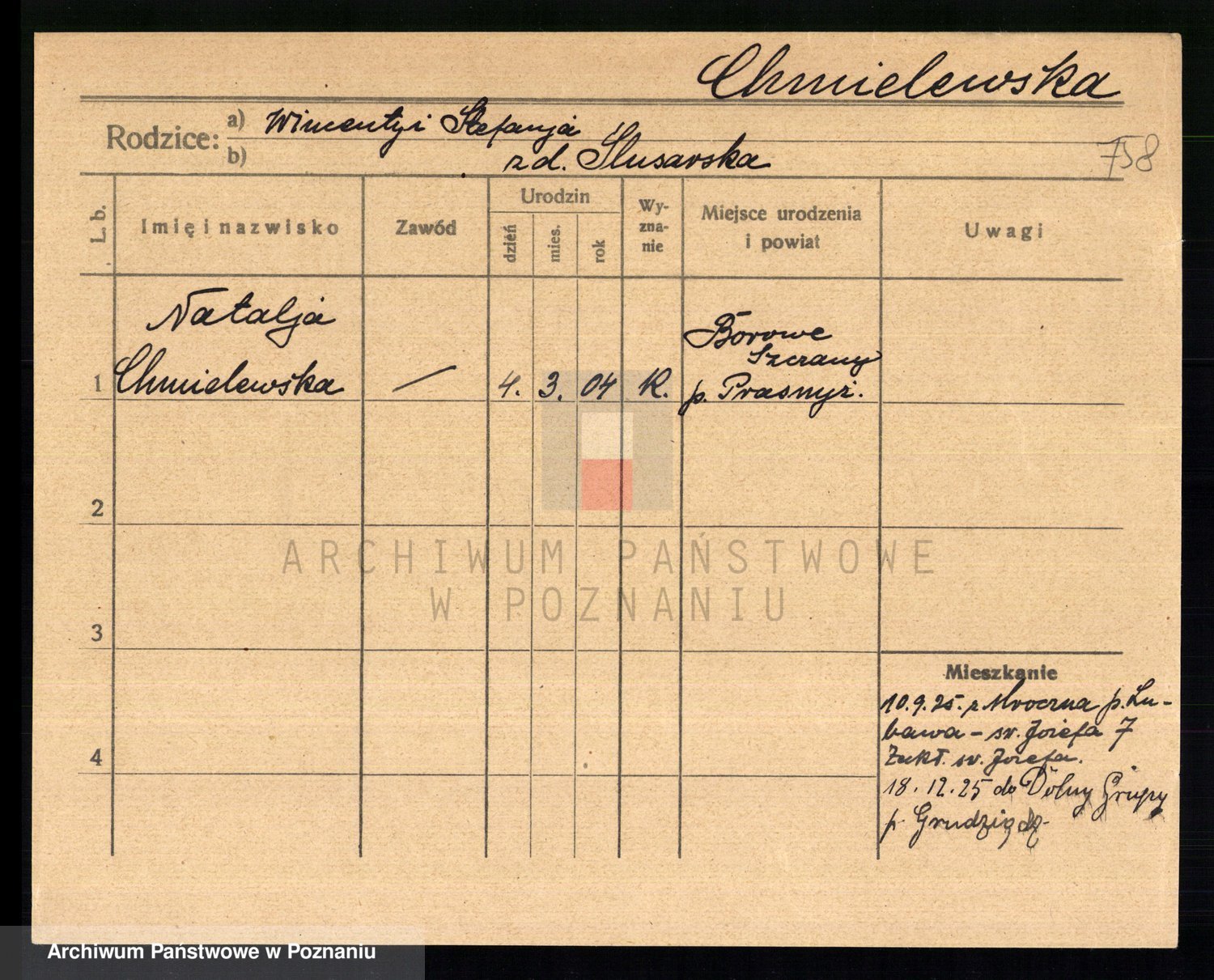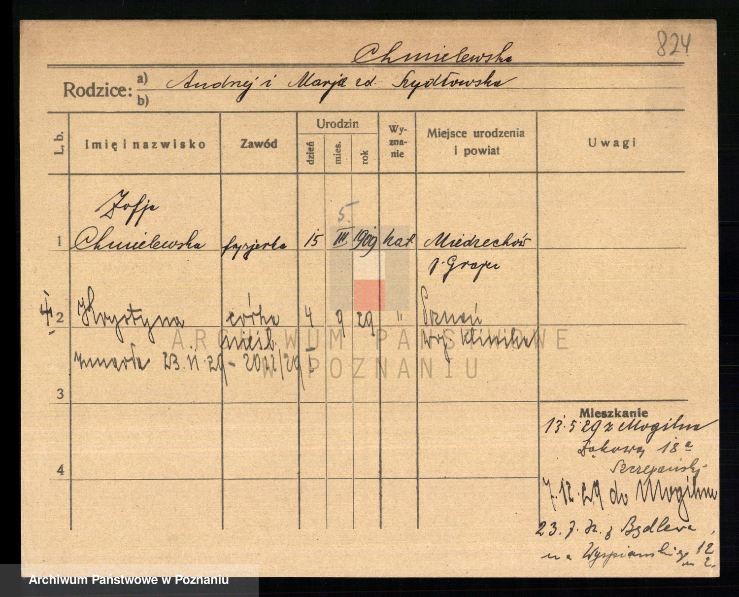 Chocieszynska z.d. Kazdzarska, Pauline