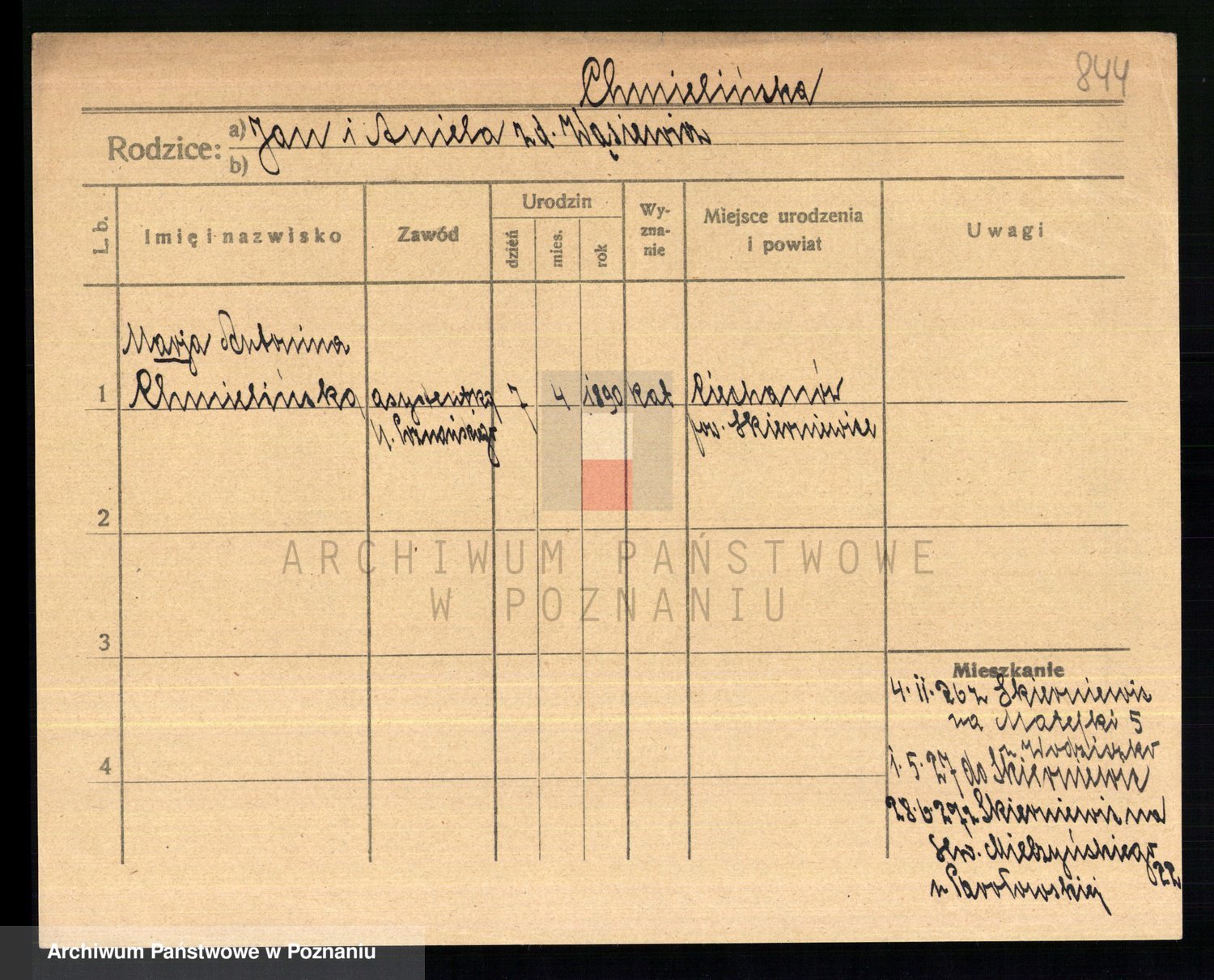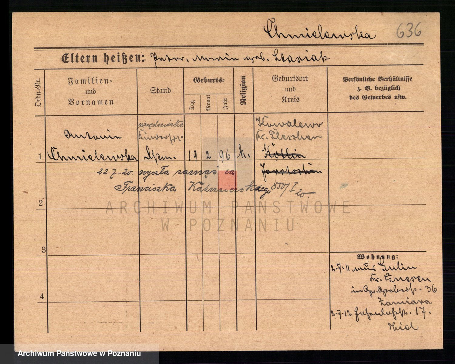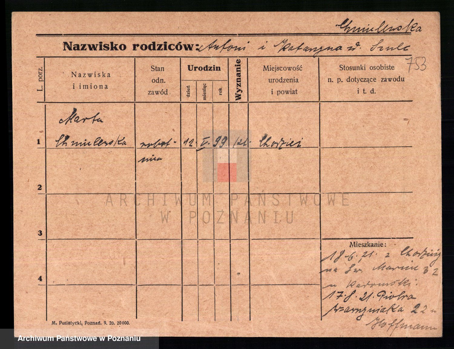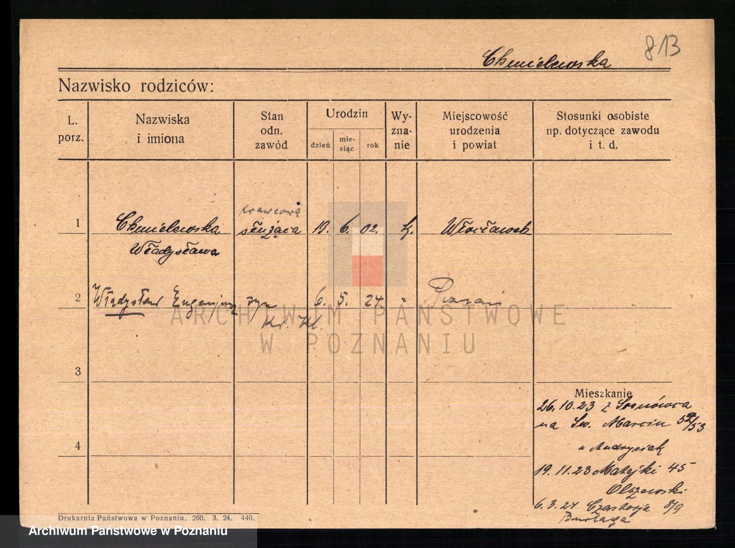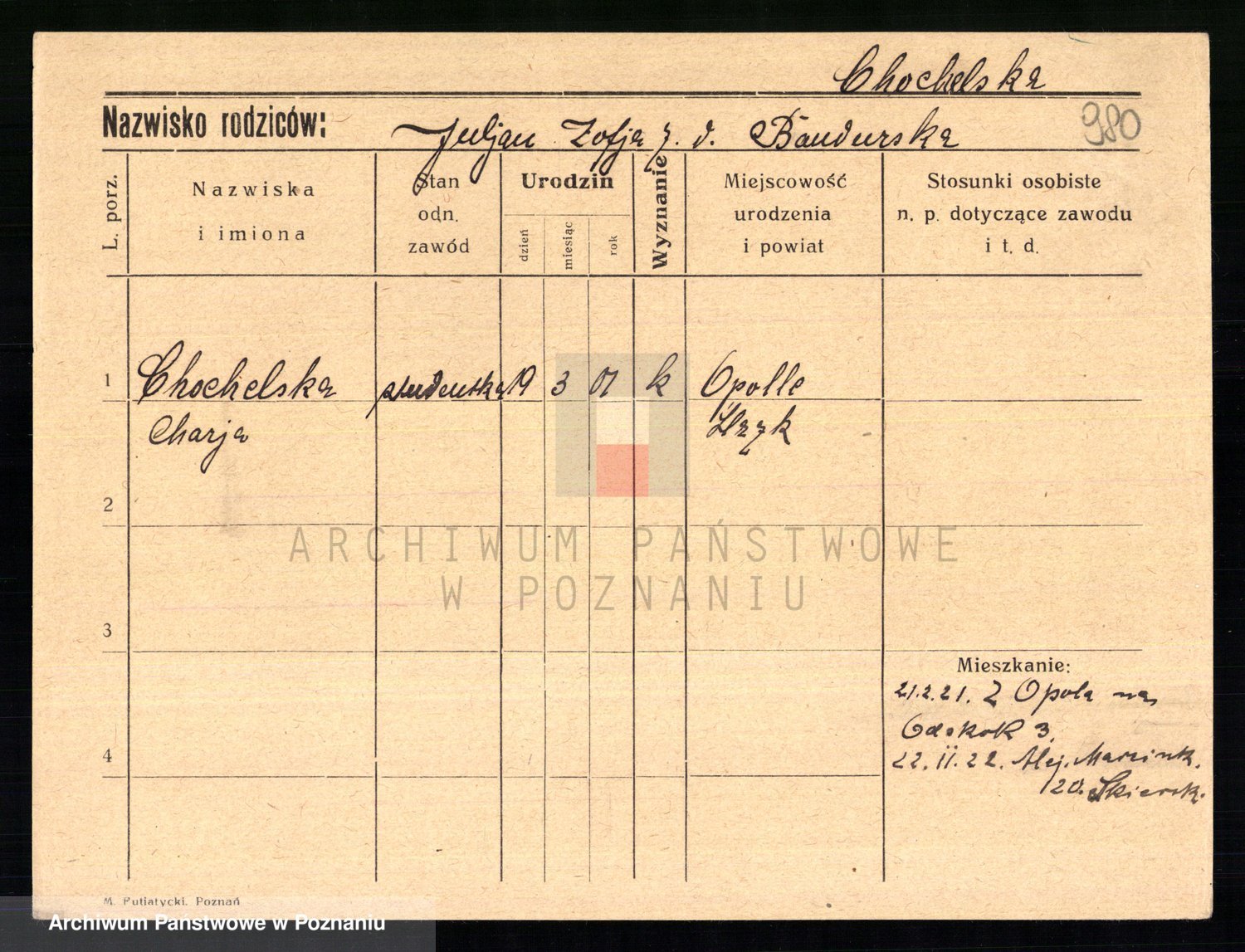 Chocieszynska z.d. Kazdzarska, Pauline