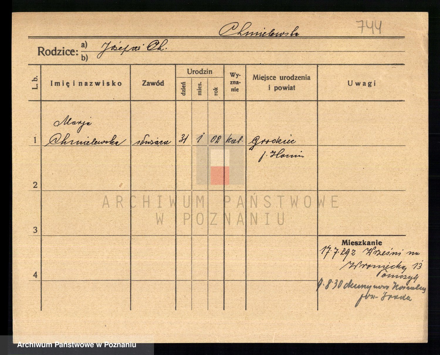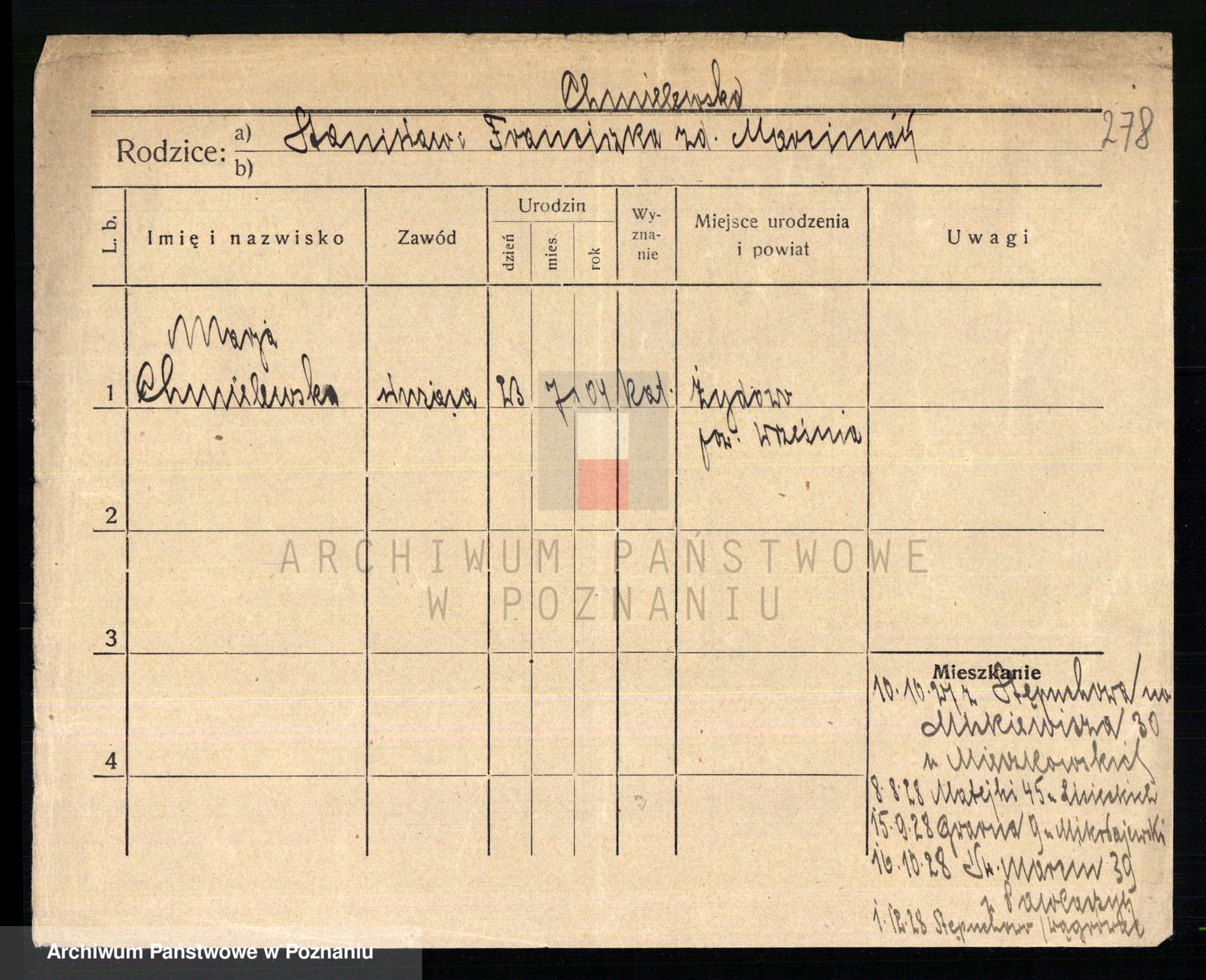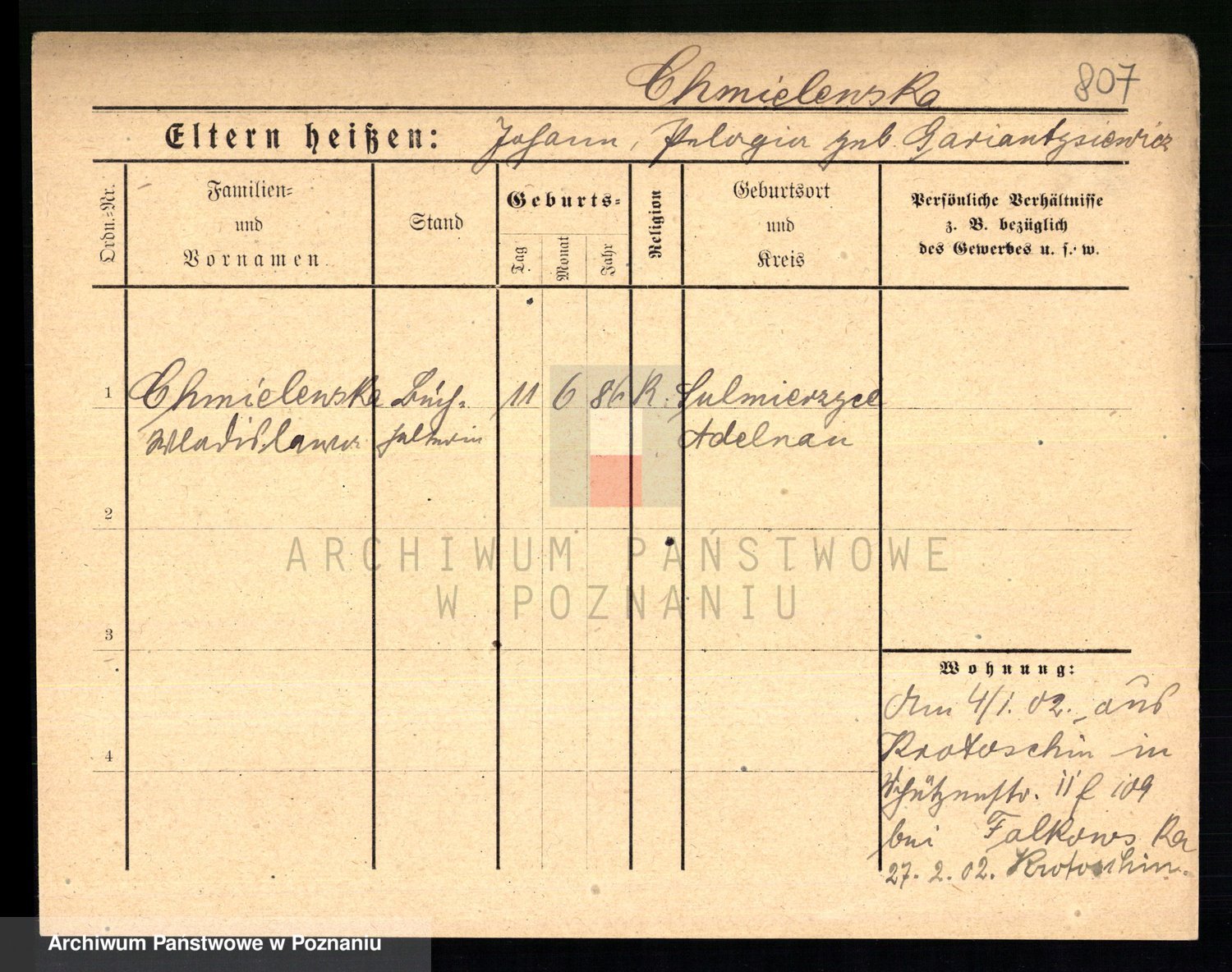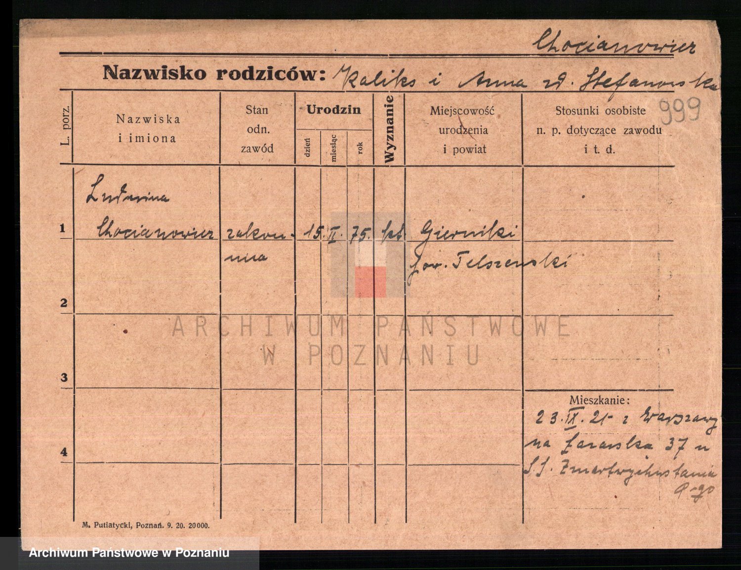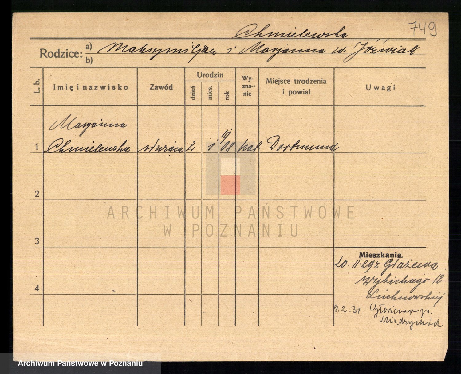 Chocieszynska z.d. Kazdzarska, Pauline