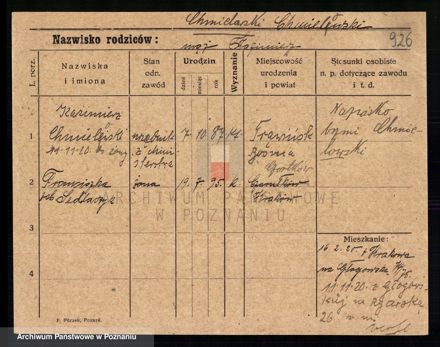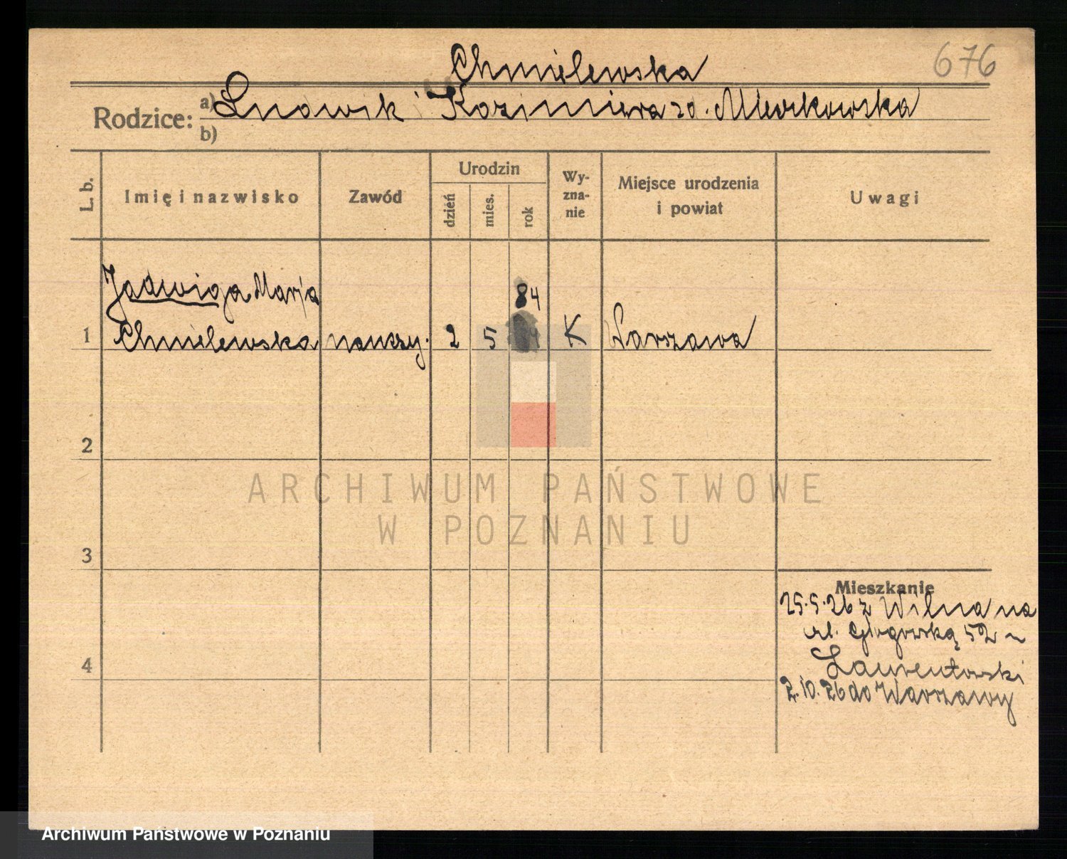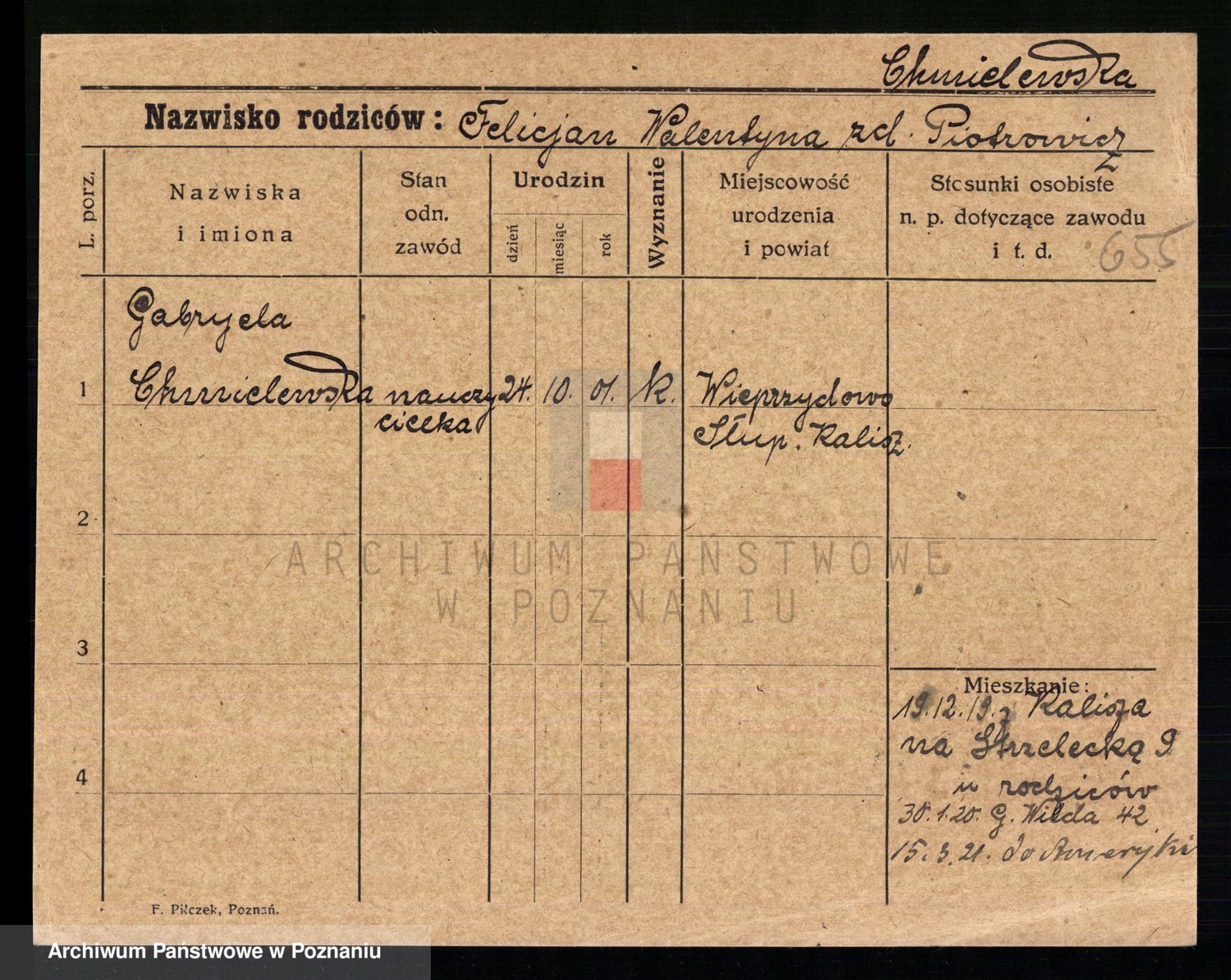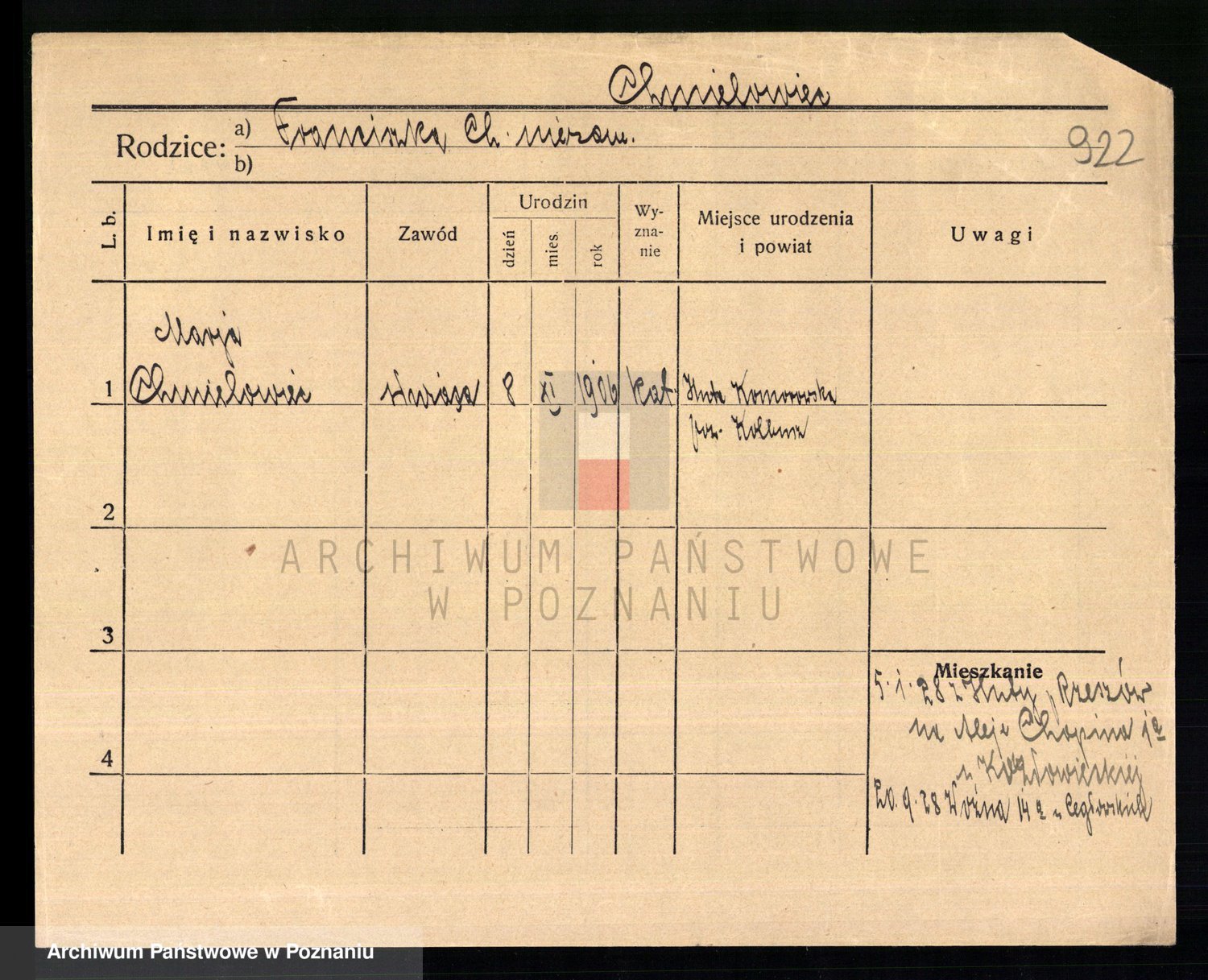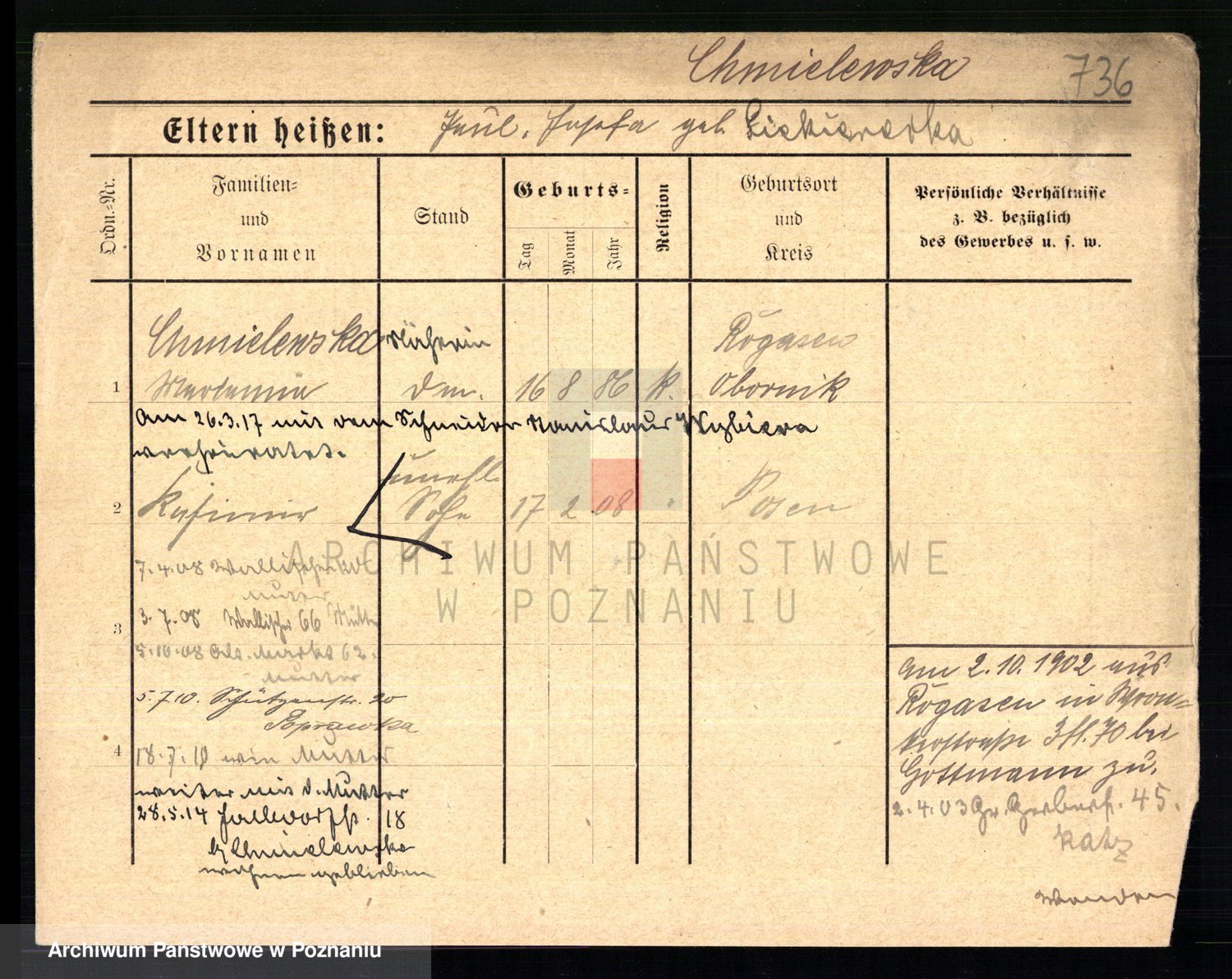 Chocieszynska z.d. Kazdzarska, Pauline