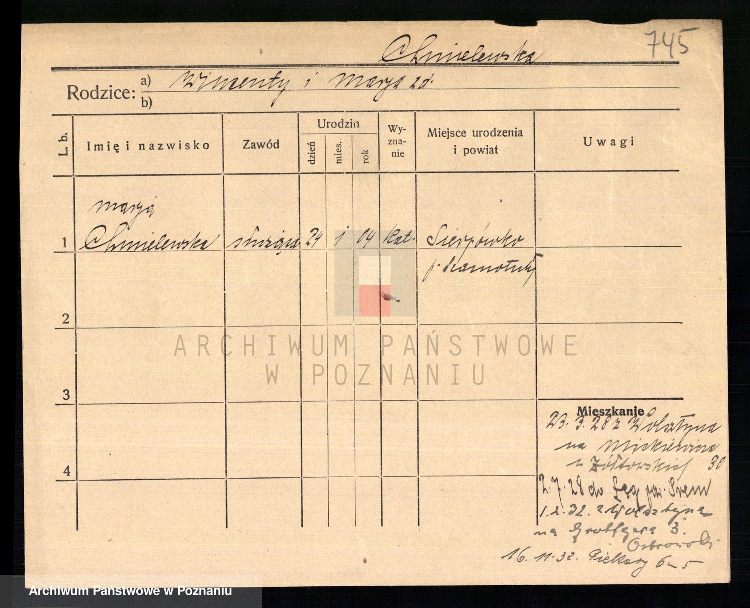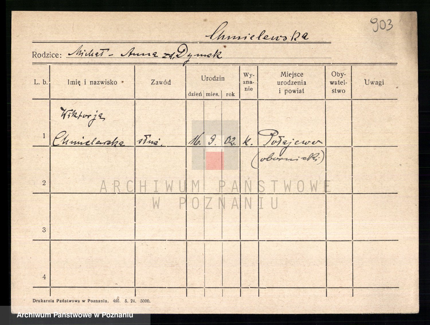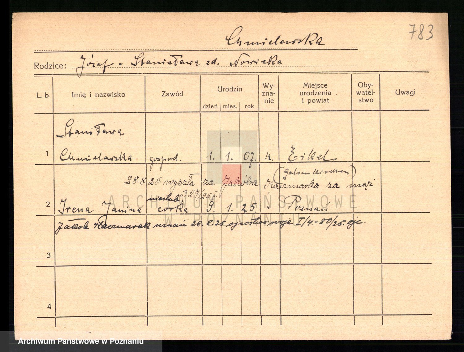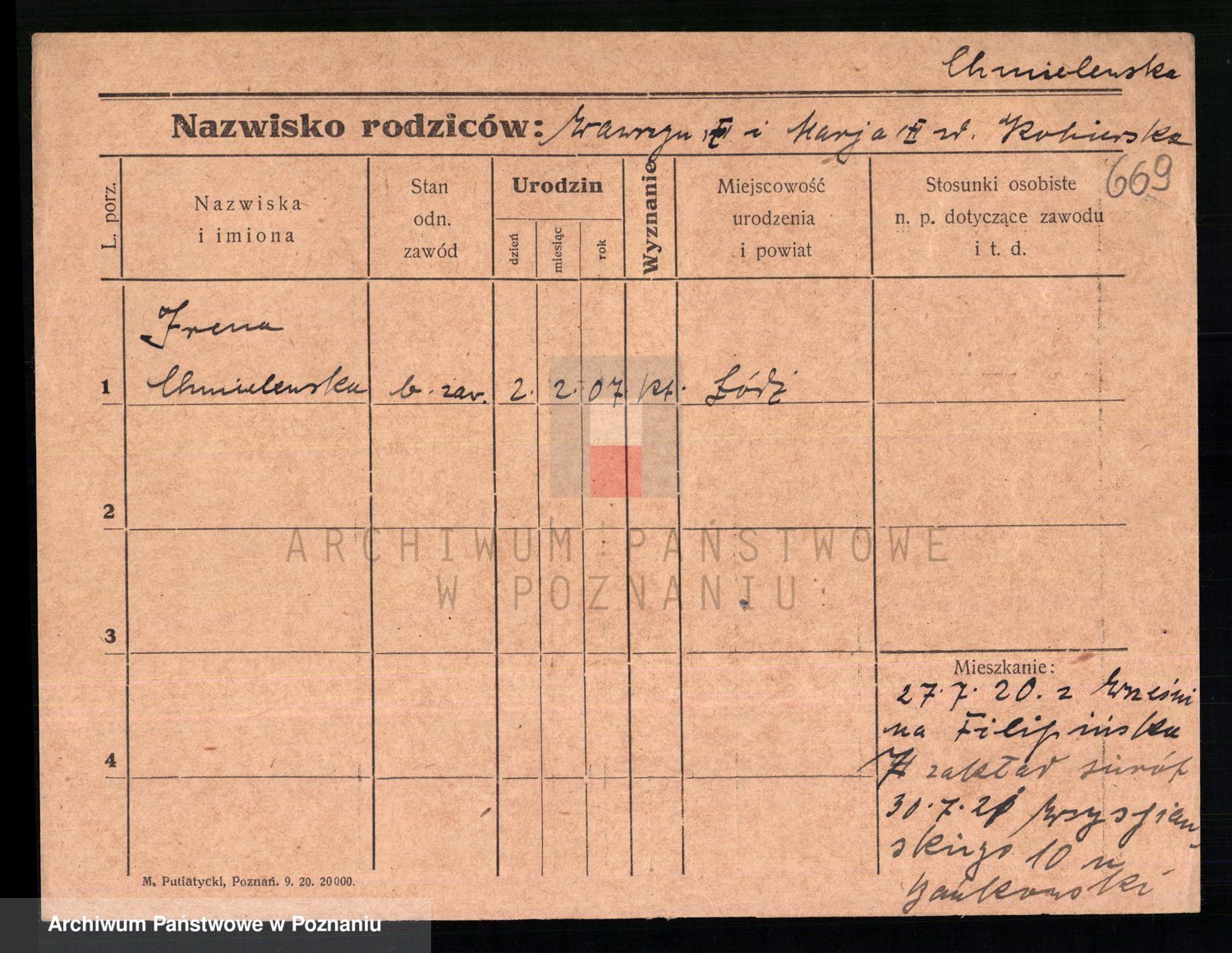 Chocieszynska z.d. Kazdzarska, Pauline