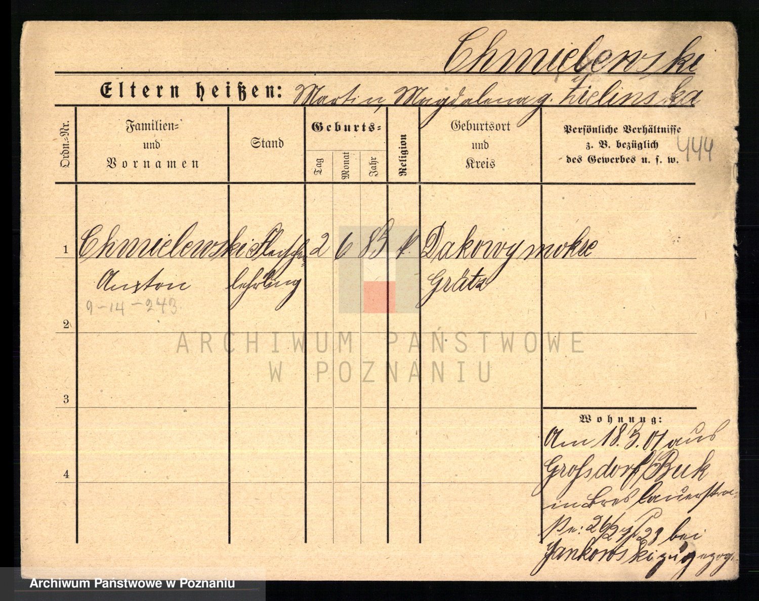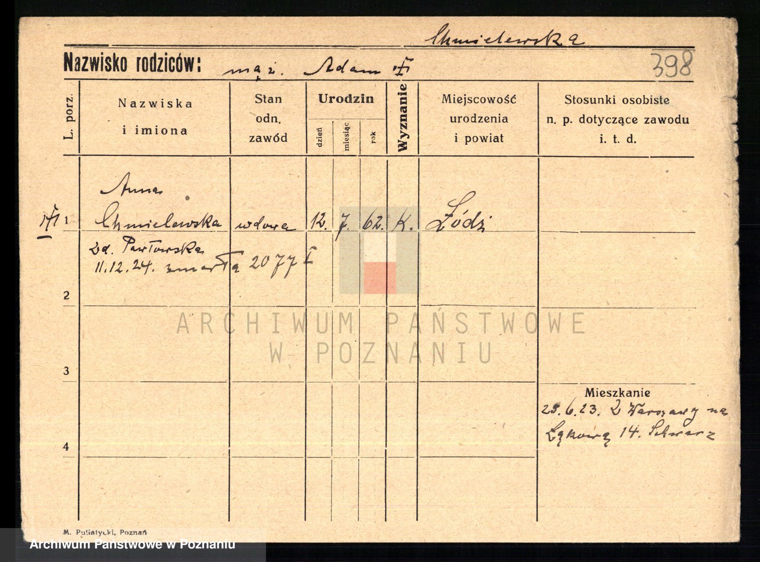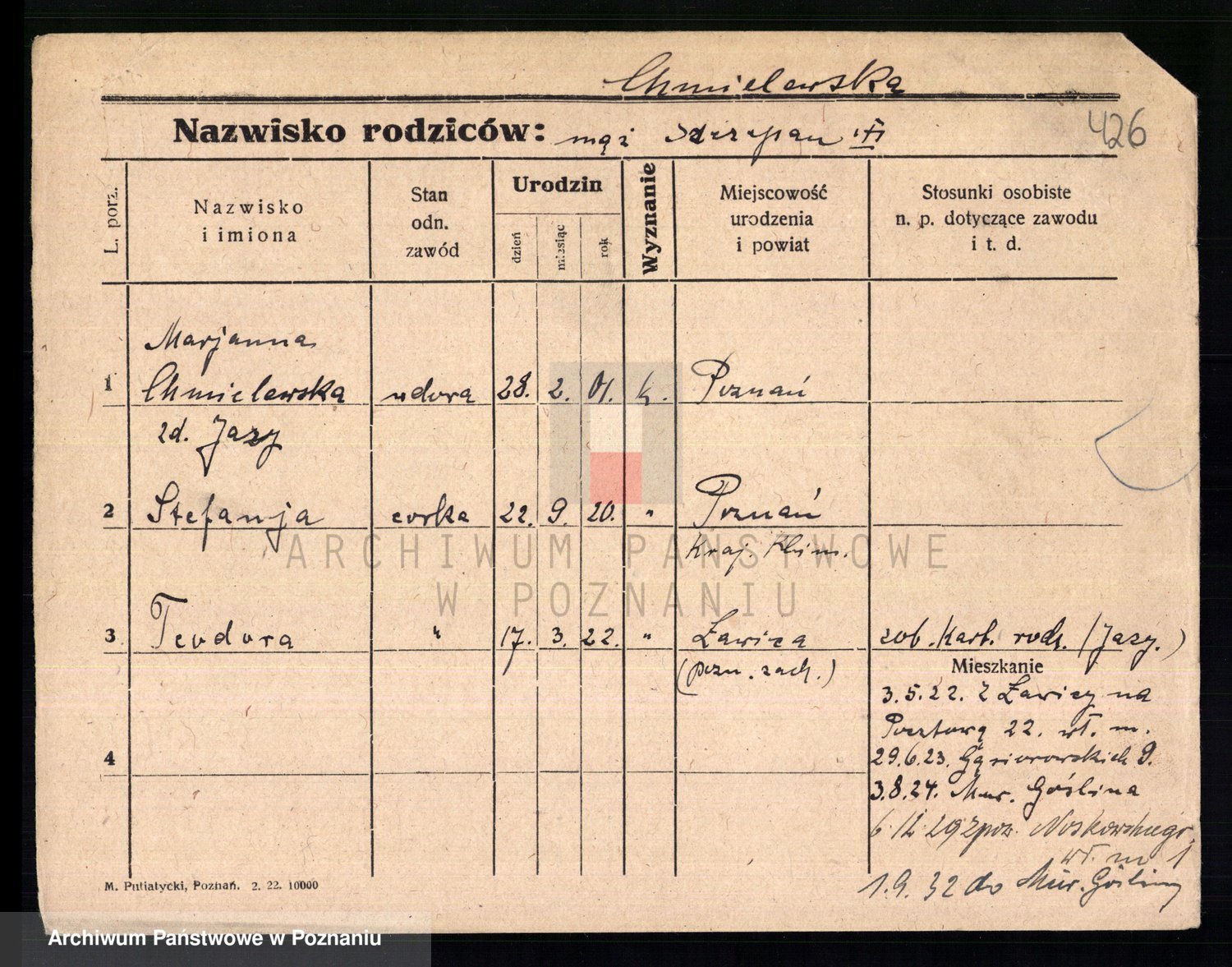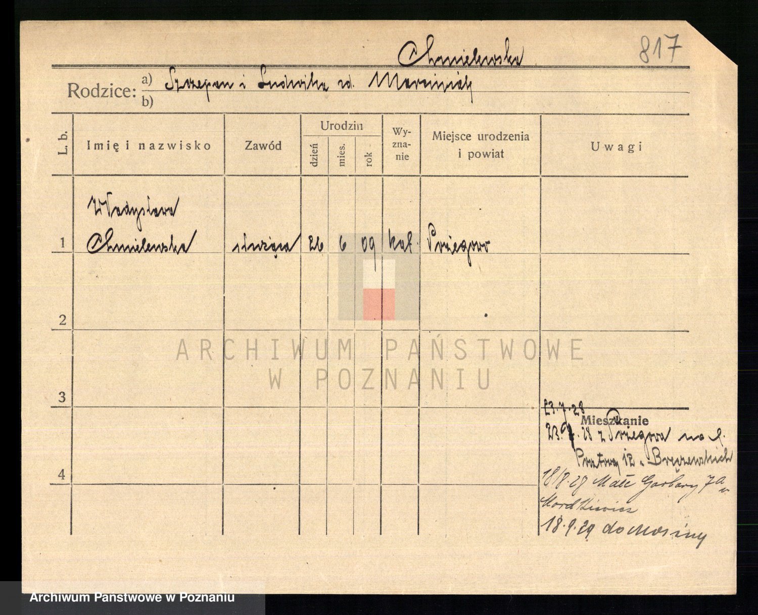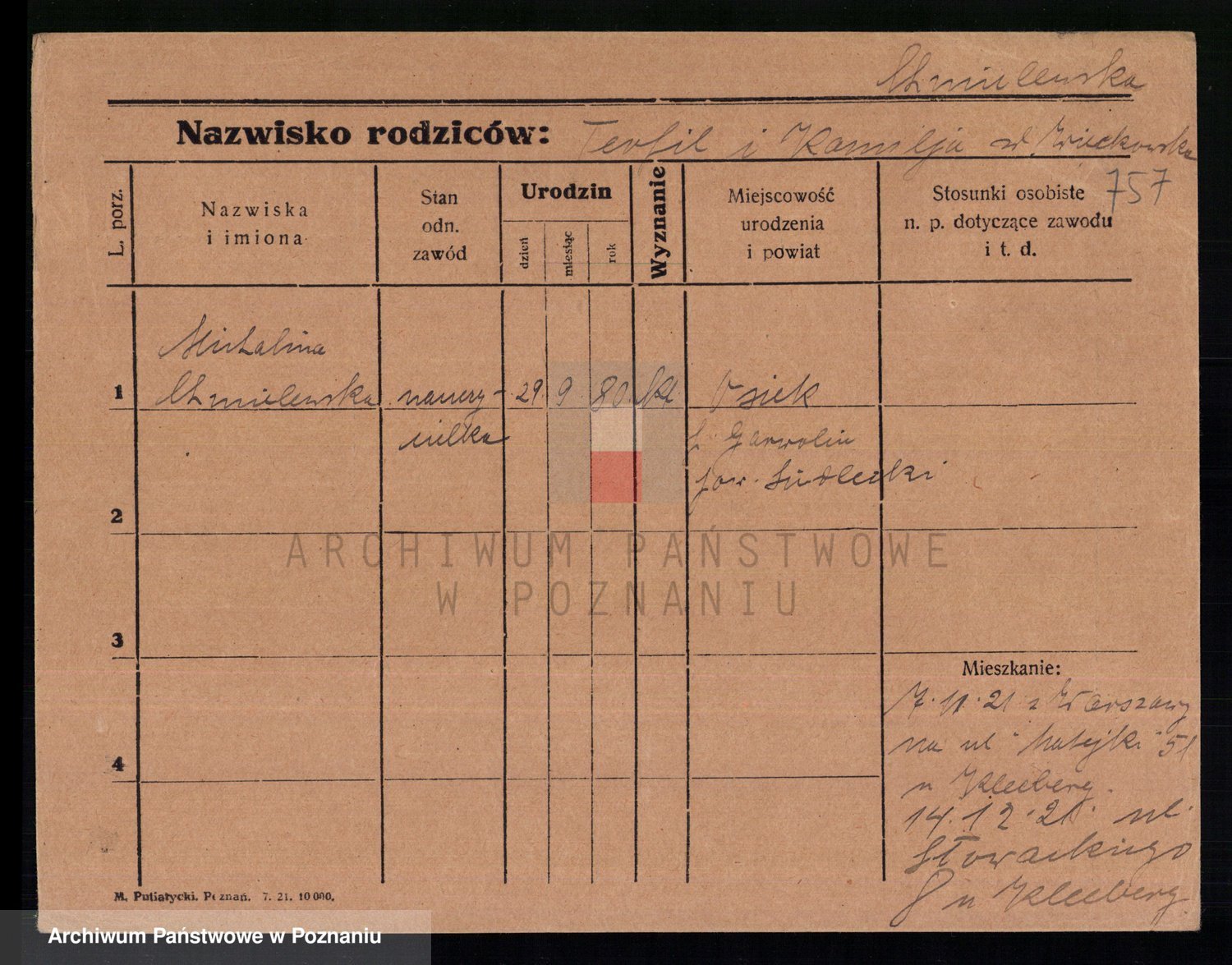 Chocieszynska z.d. Kazdzarska, Pauline