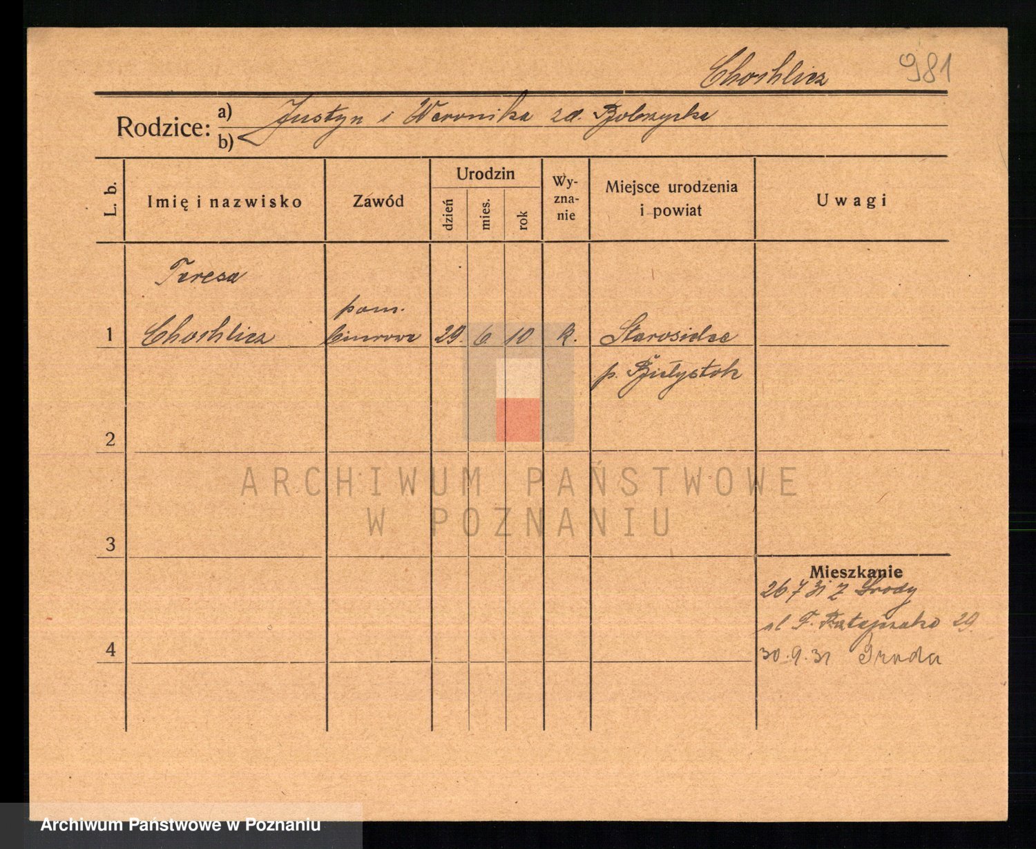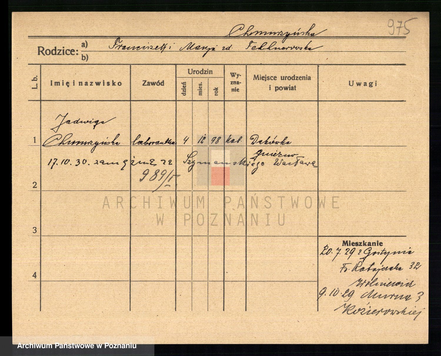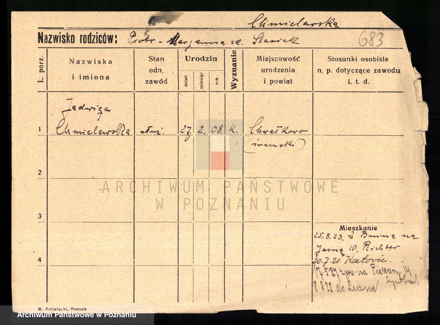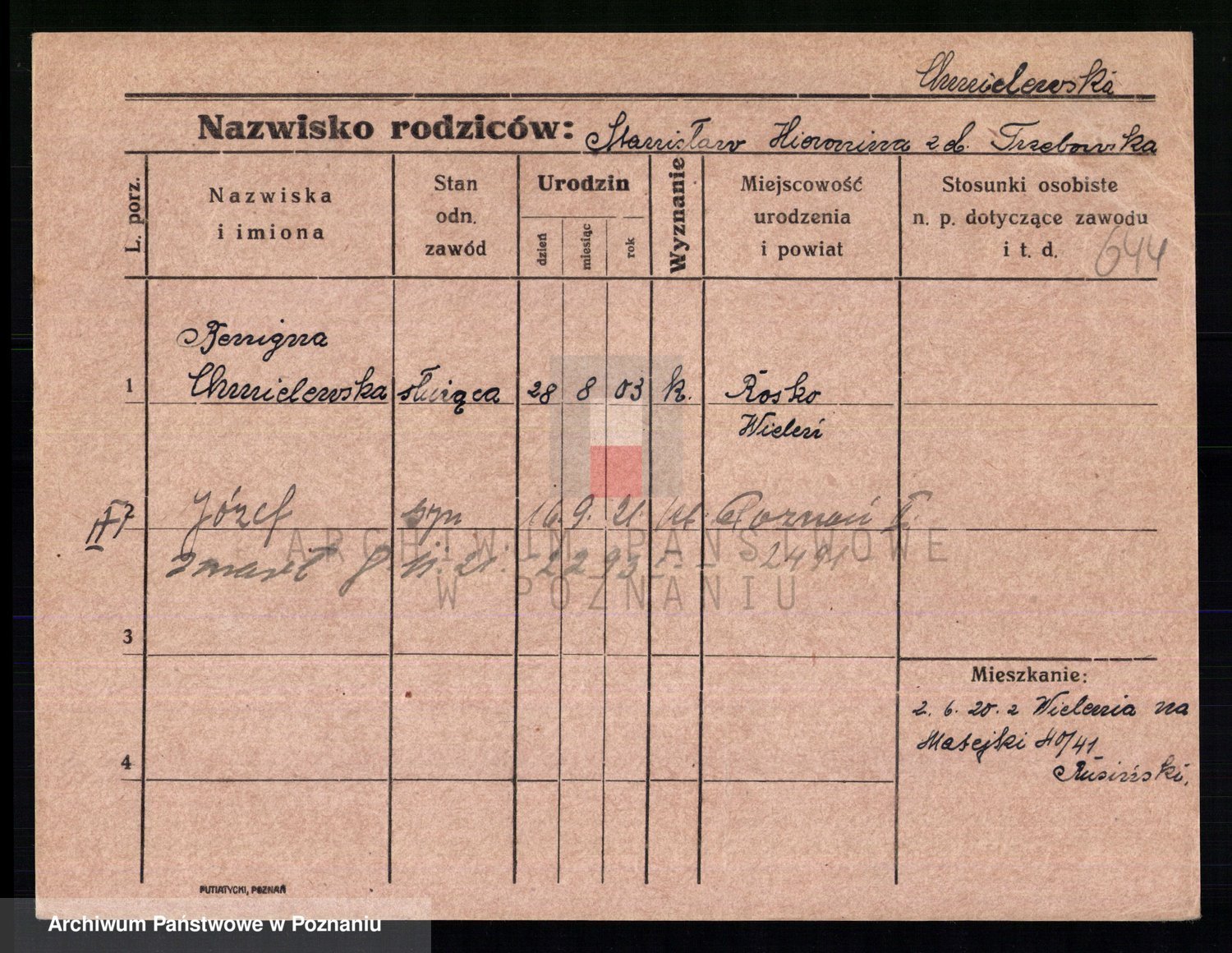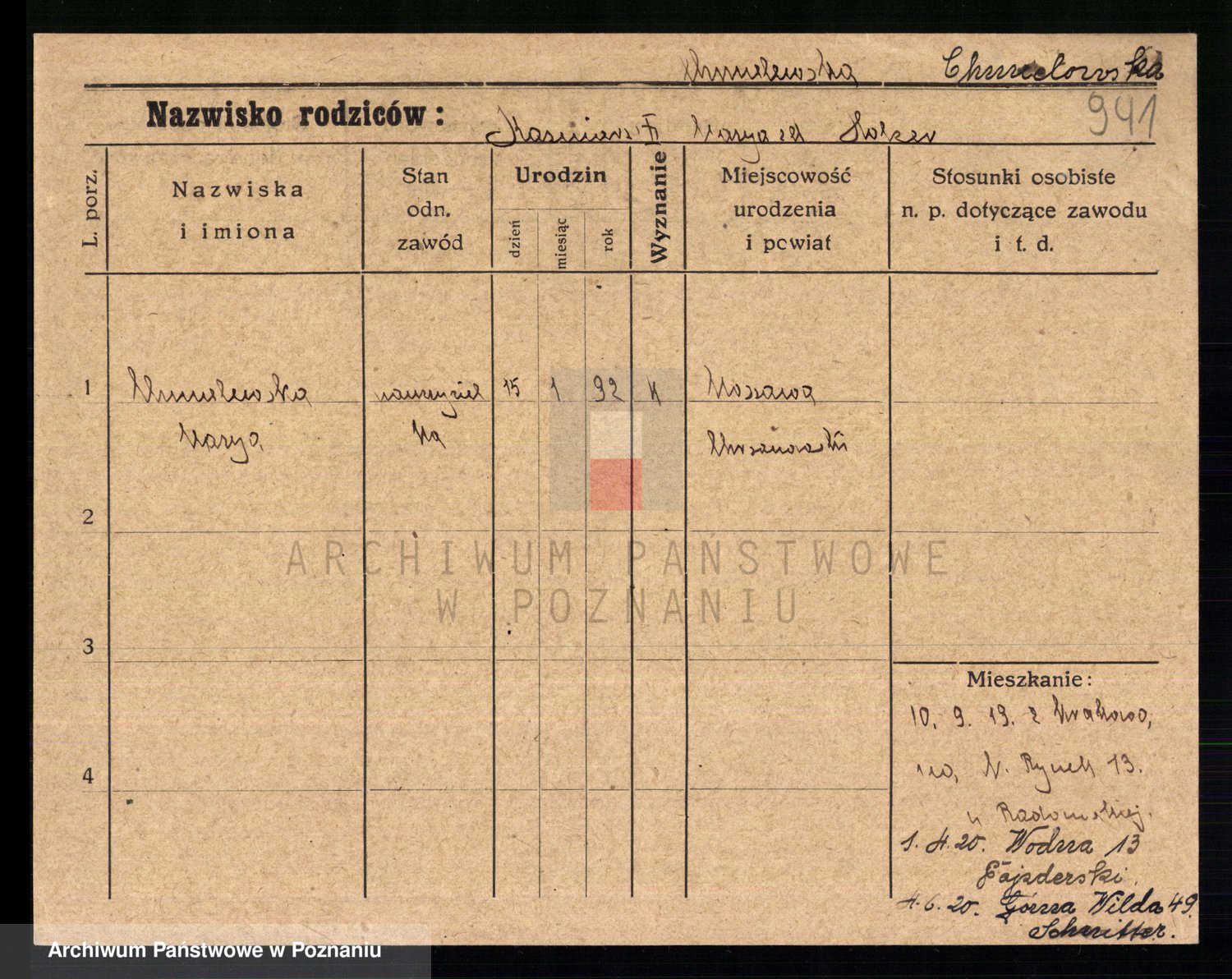 Chocieszynska z.d. Kazdzarska, Pauline