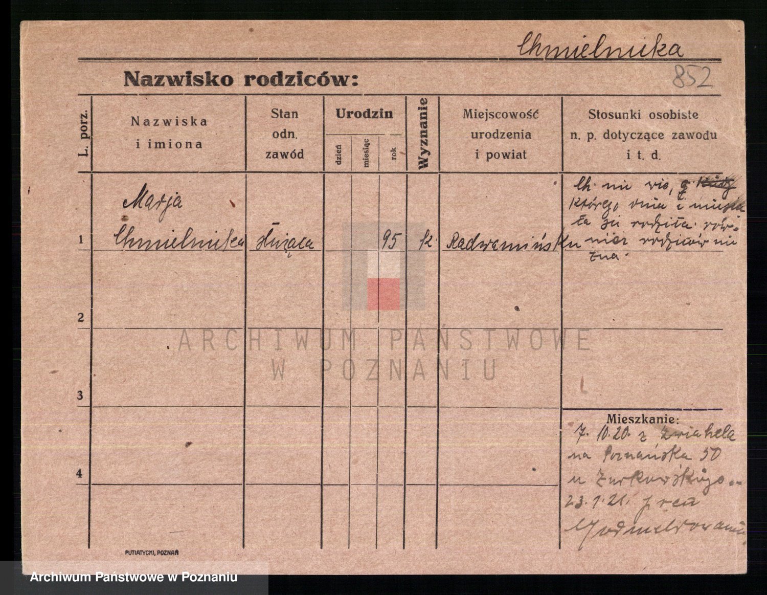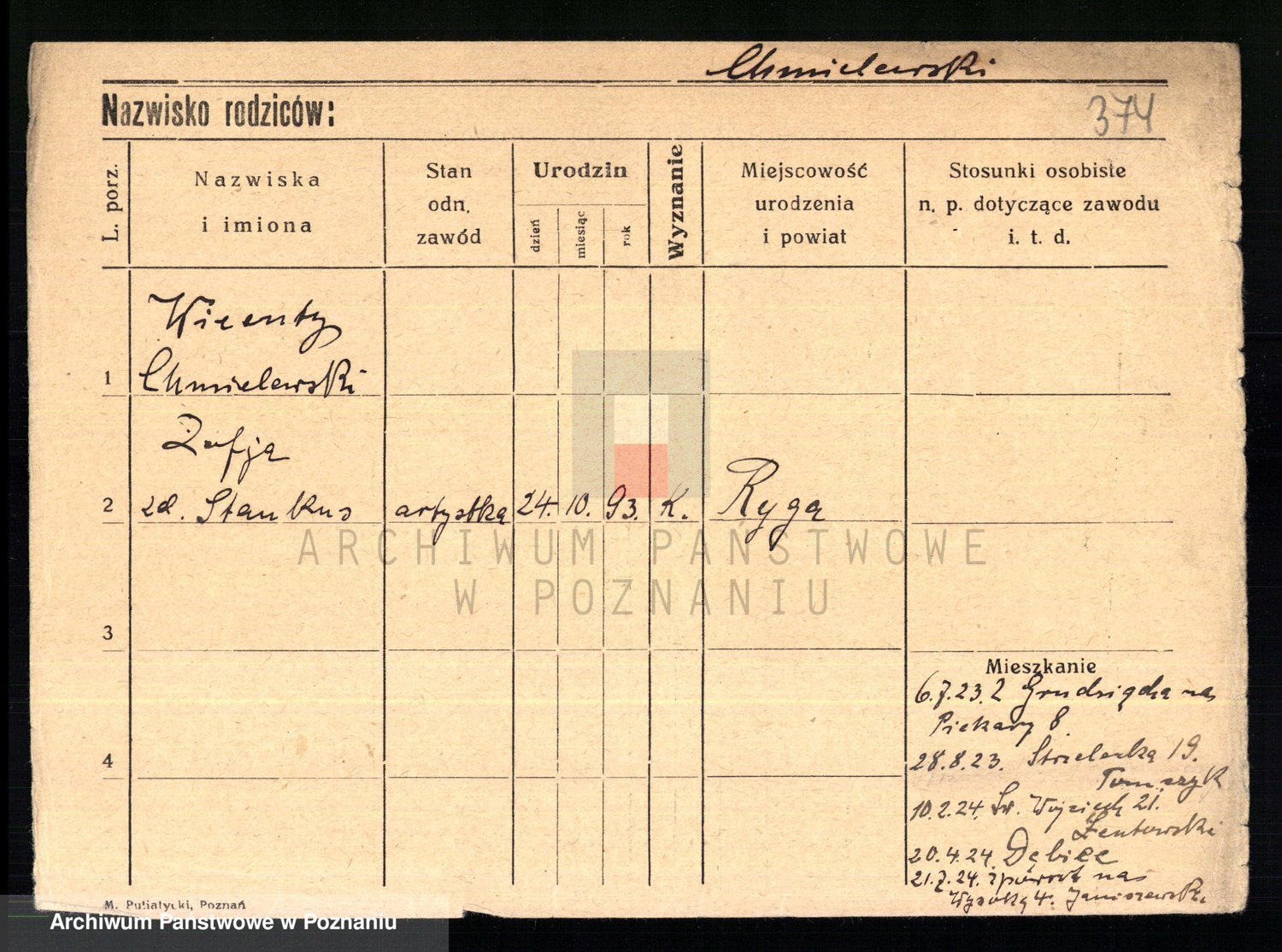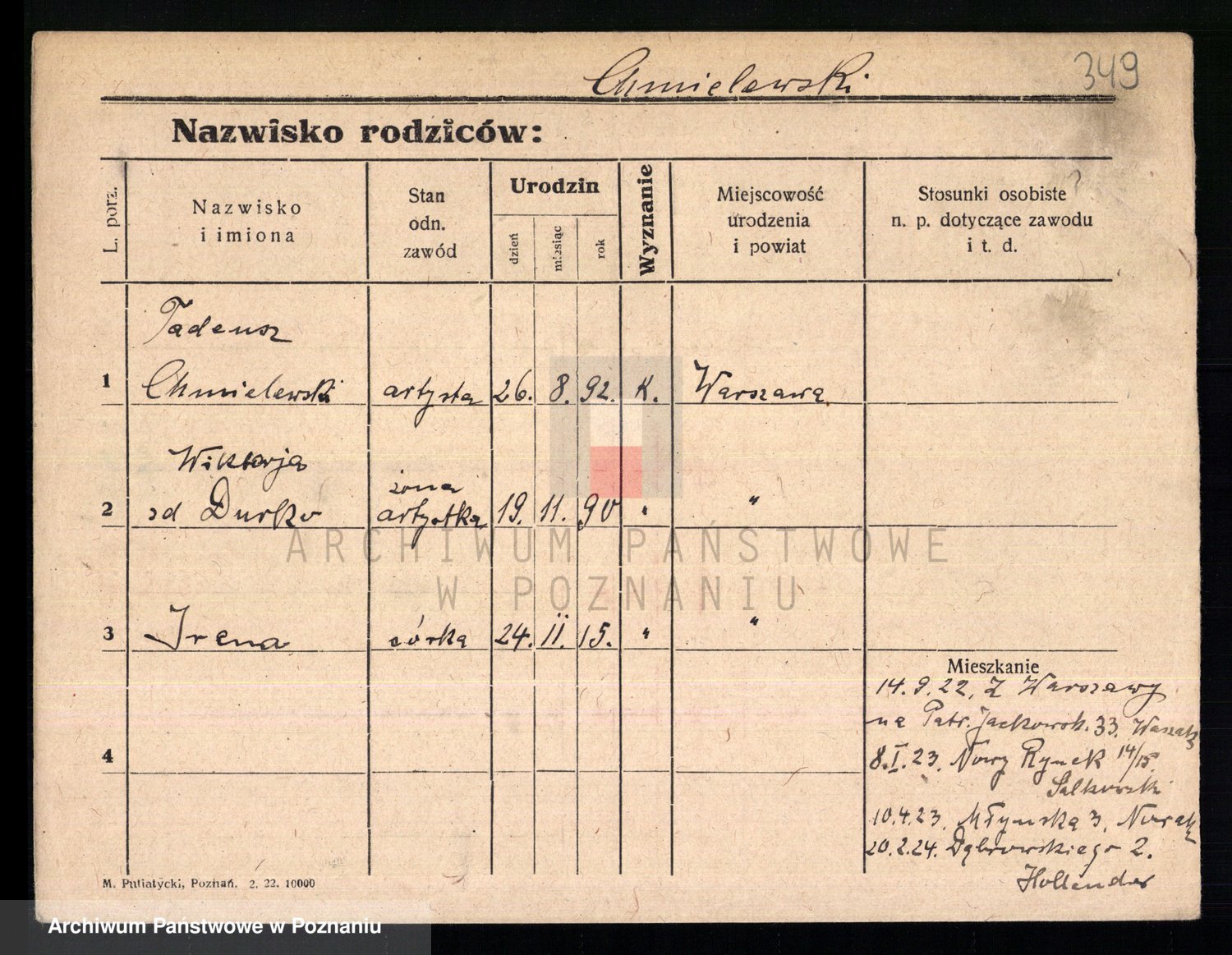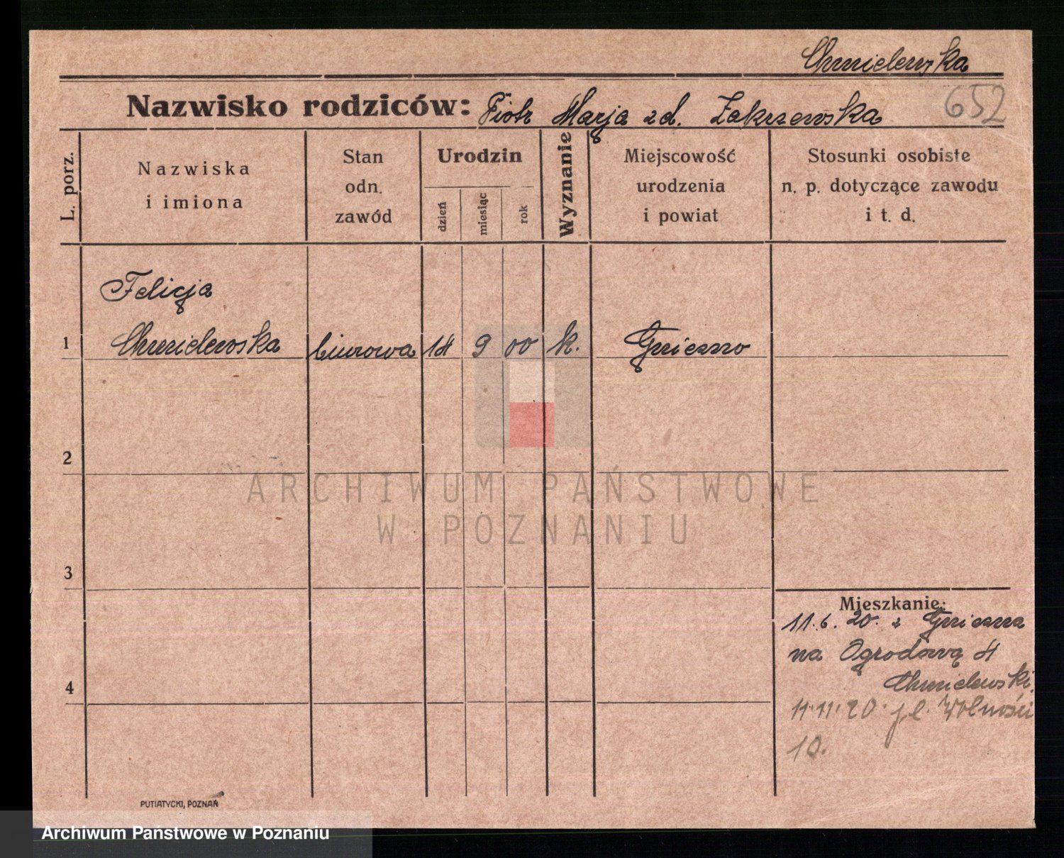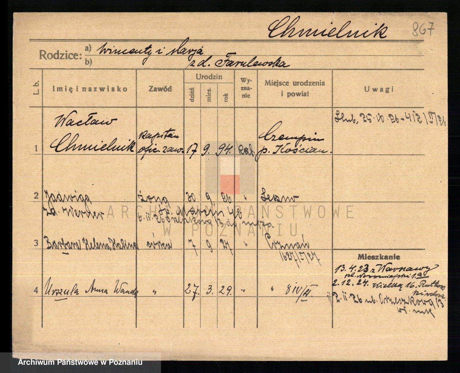Chocieszynska z.d. Kazdzarska, Pauline