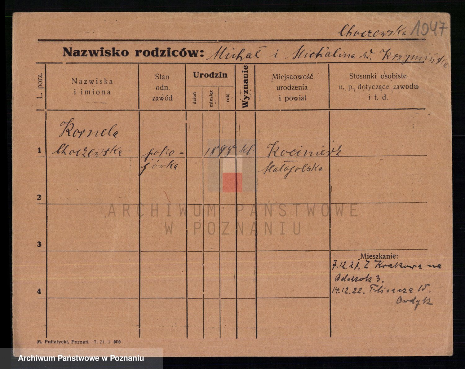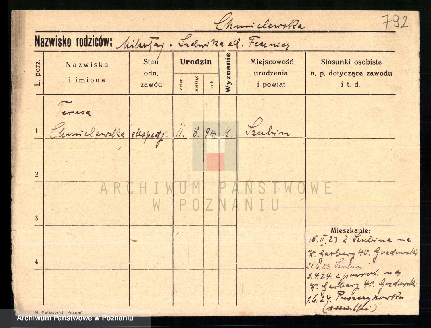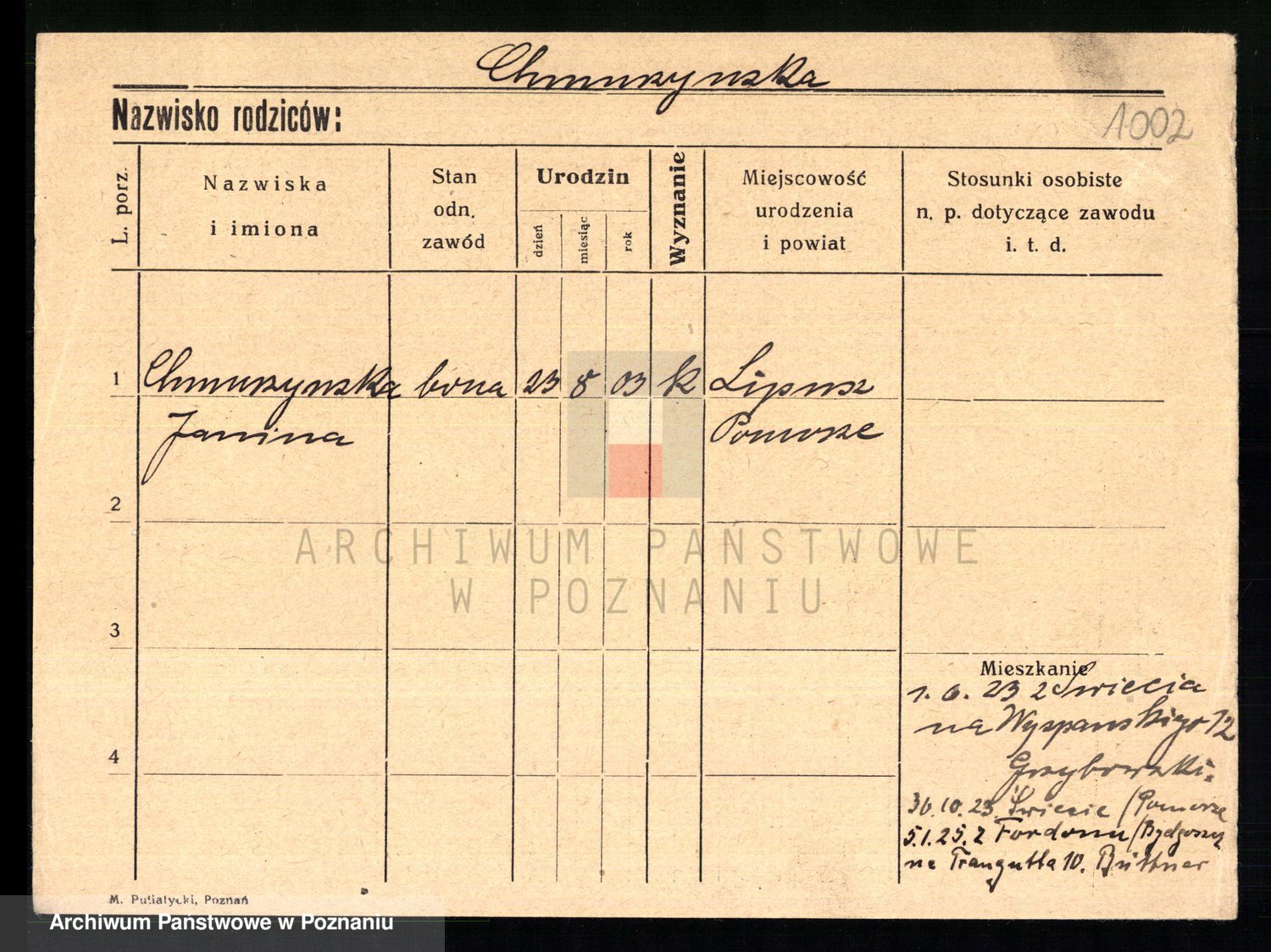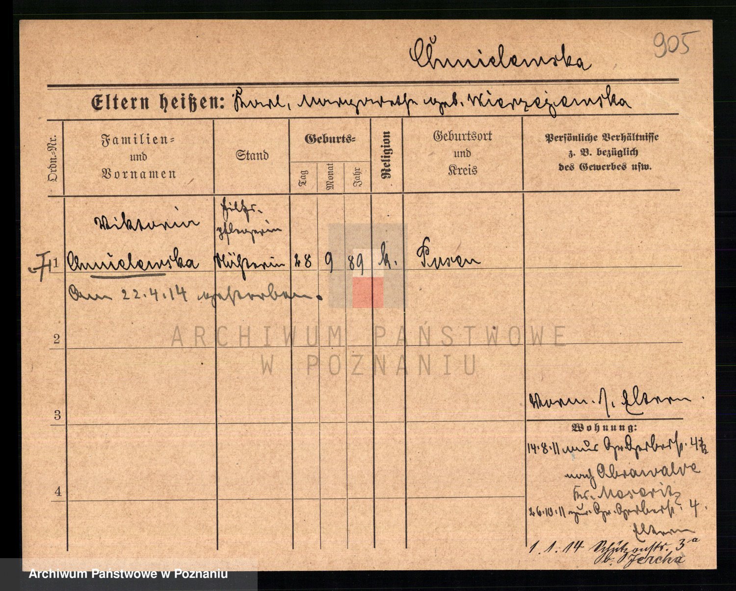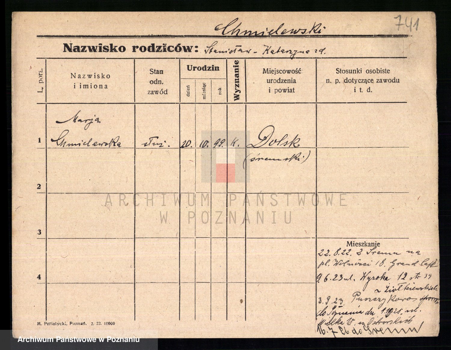Chocieszynska z.d. Kazdzarska, Pauline
