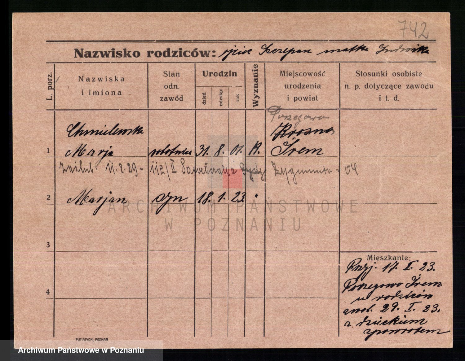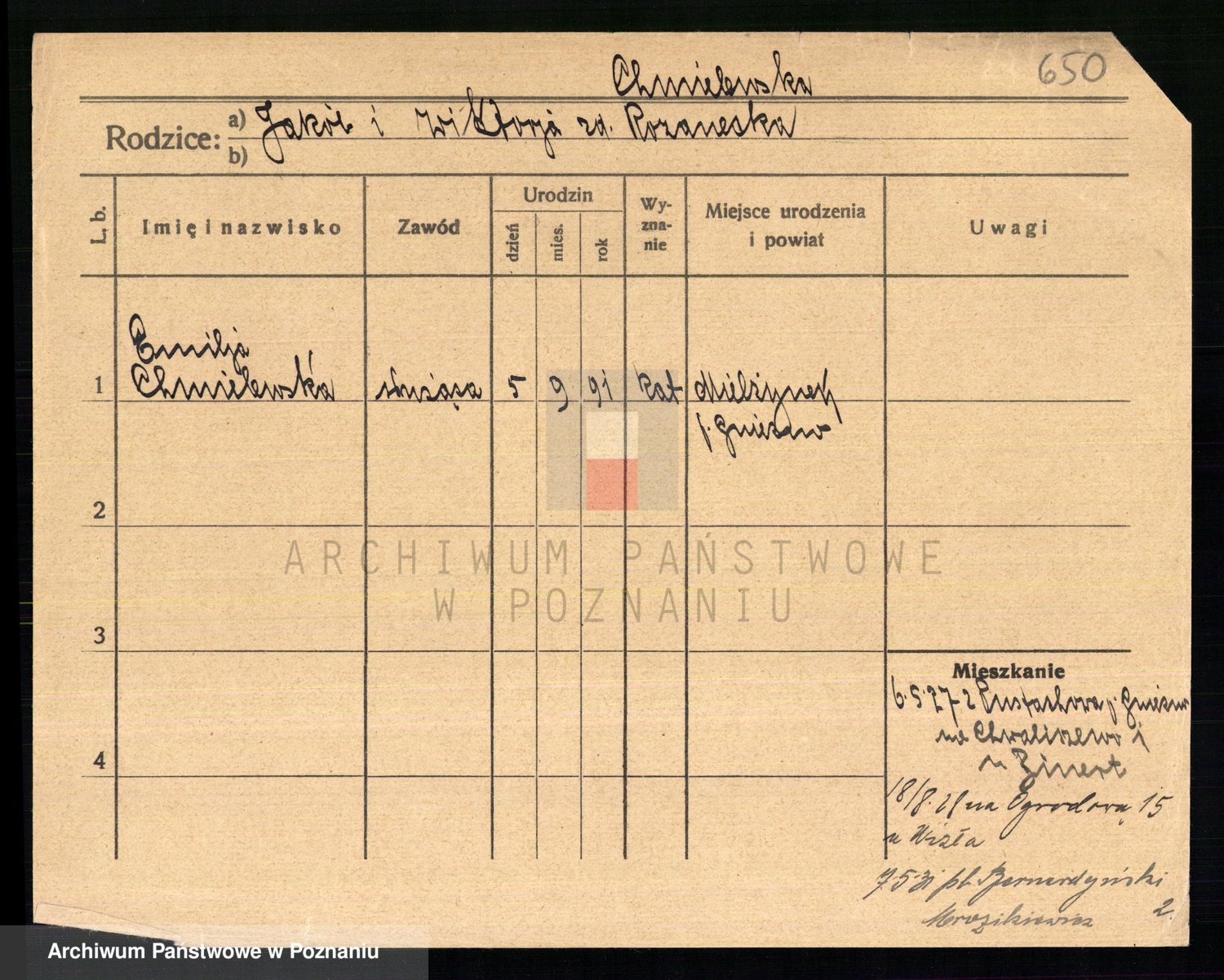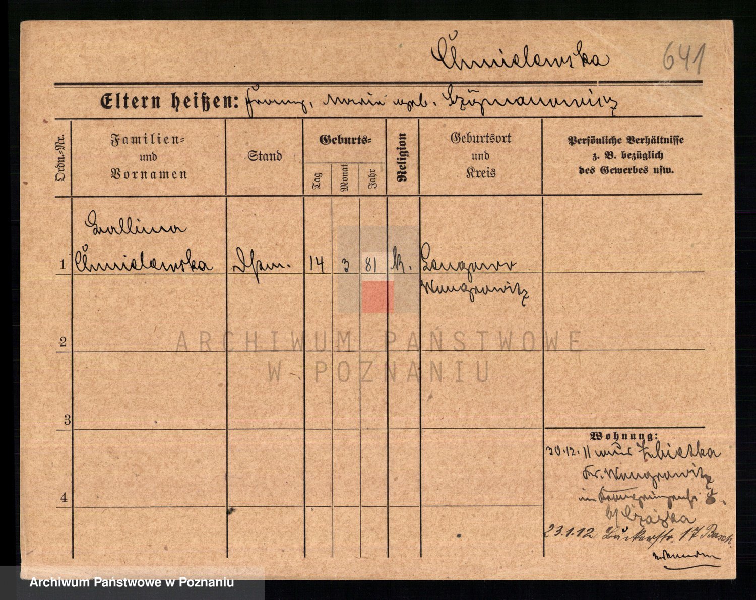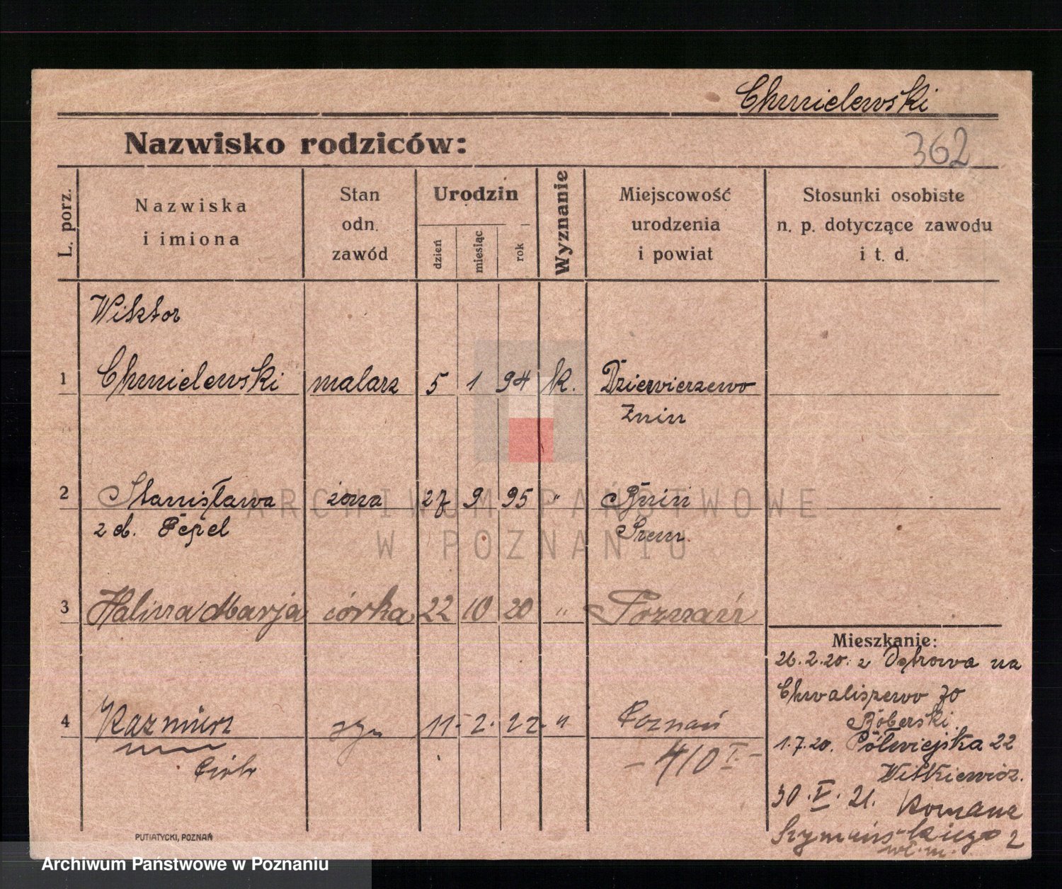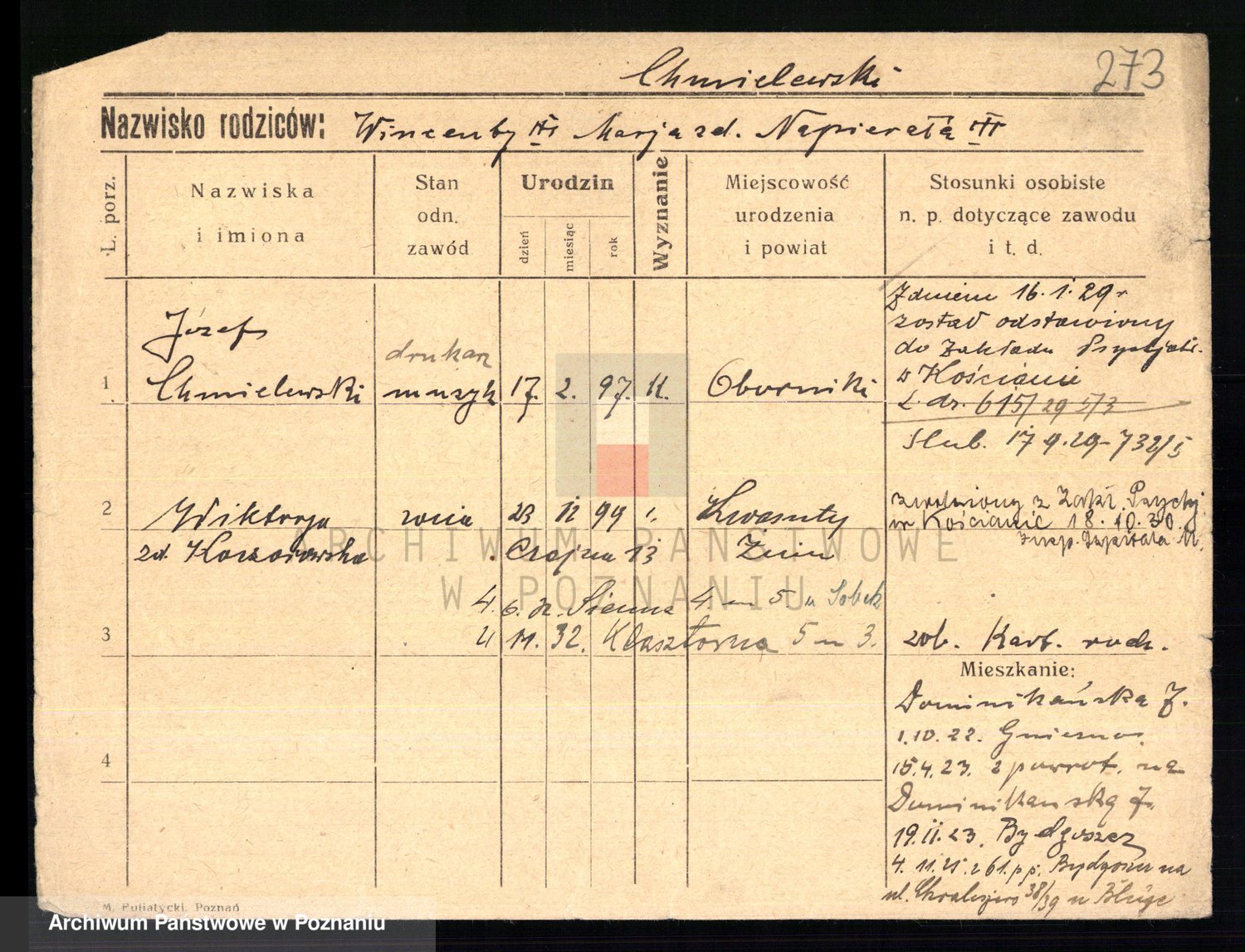 Chocieszynska z.d. Kazdzarska, Pauline