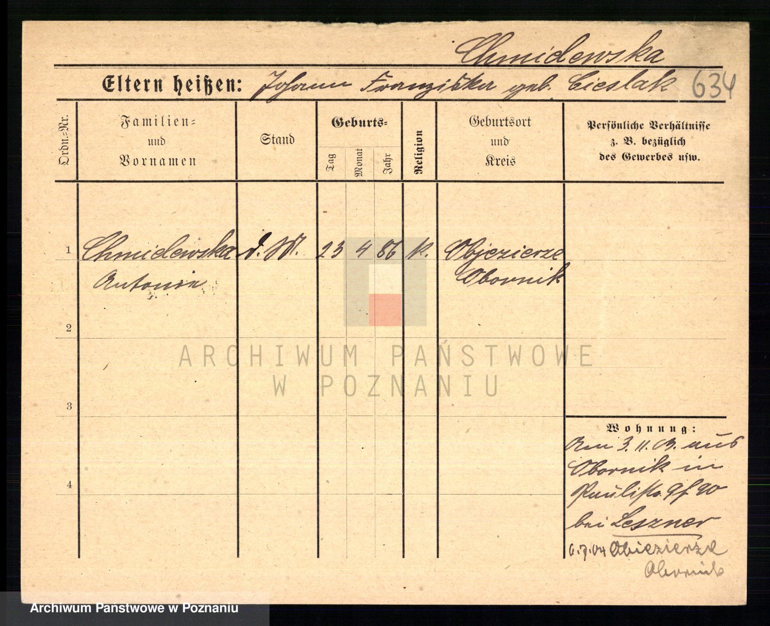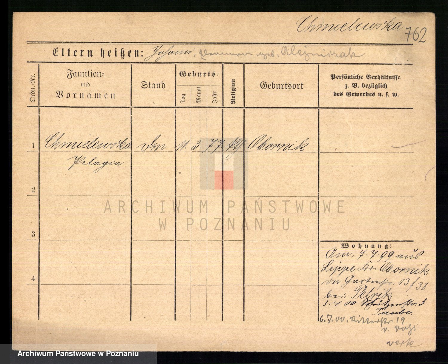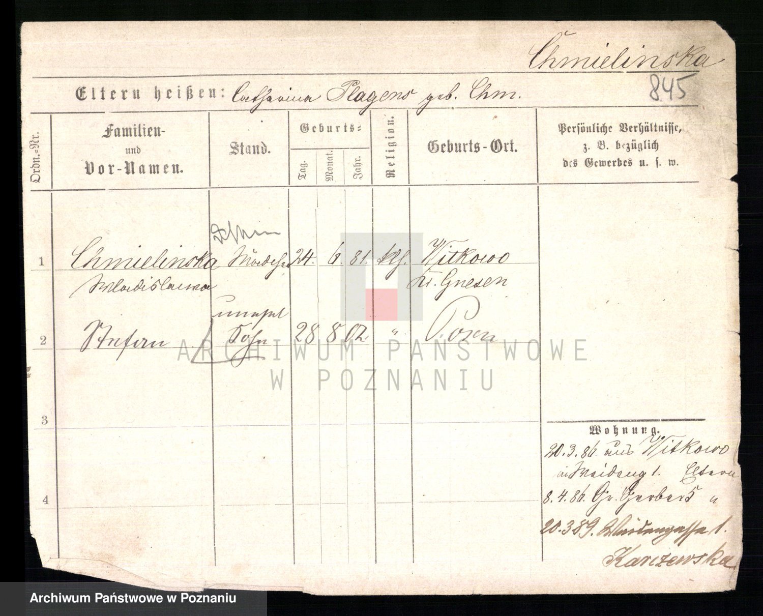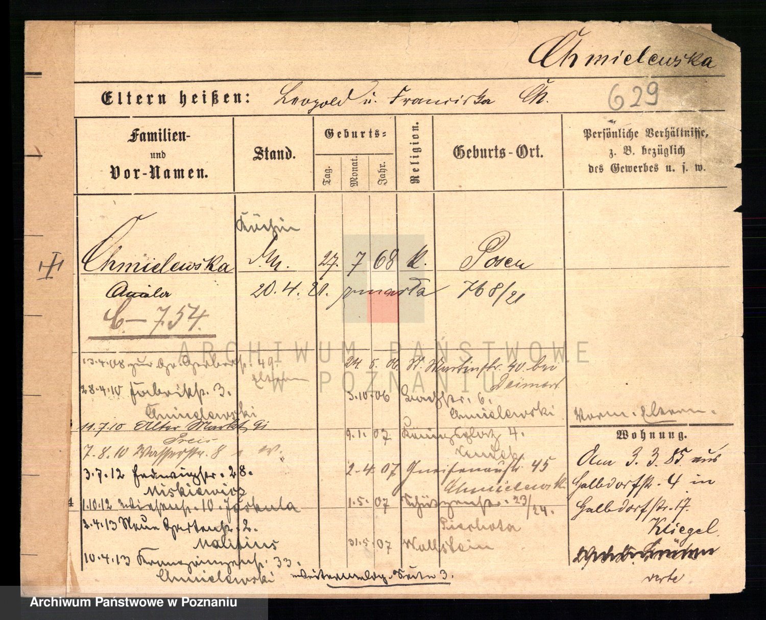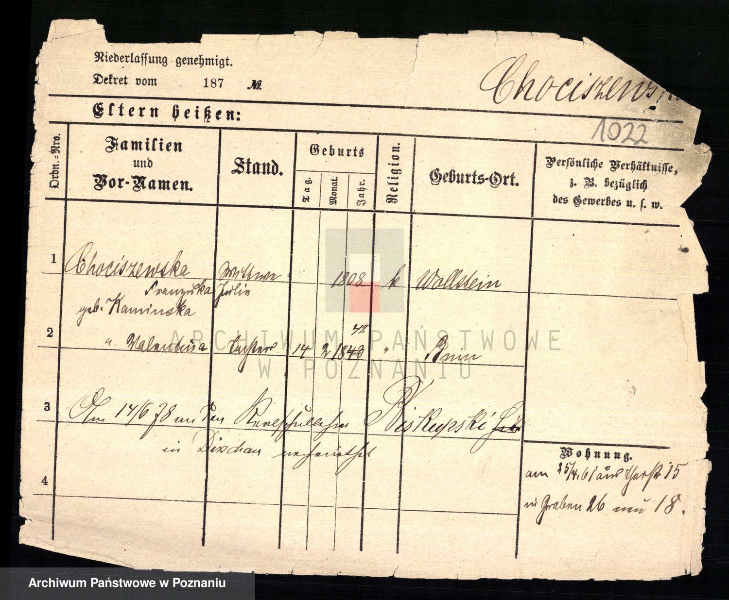 Chociszewska z.d. Kaminska, Franziska Julie