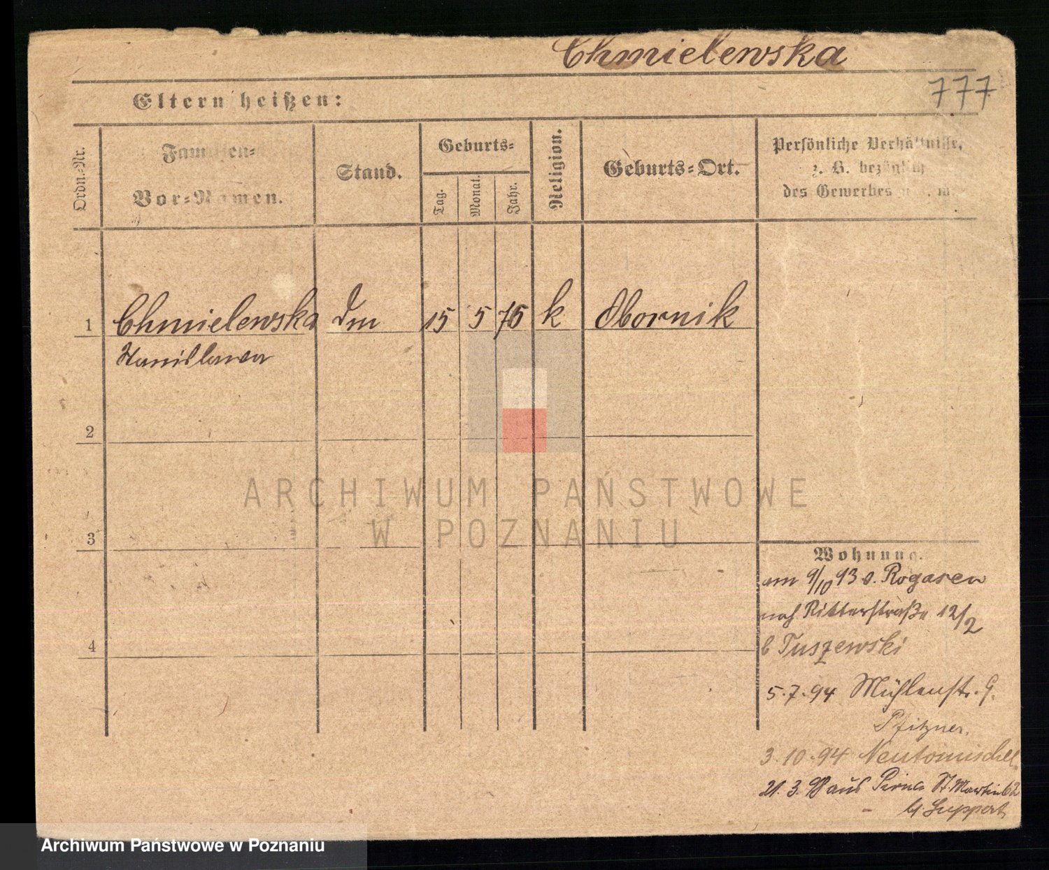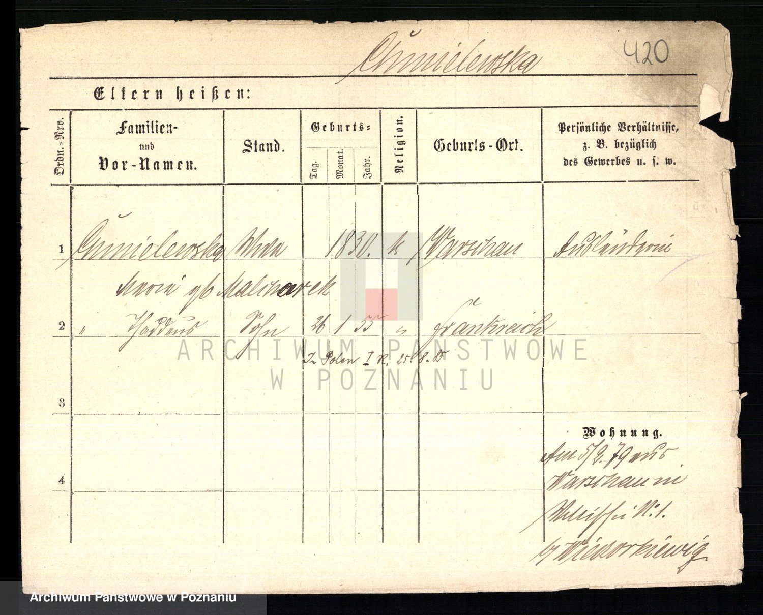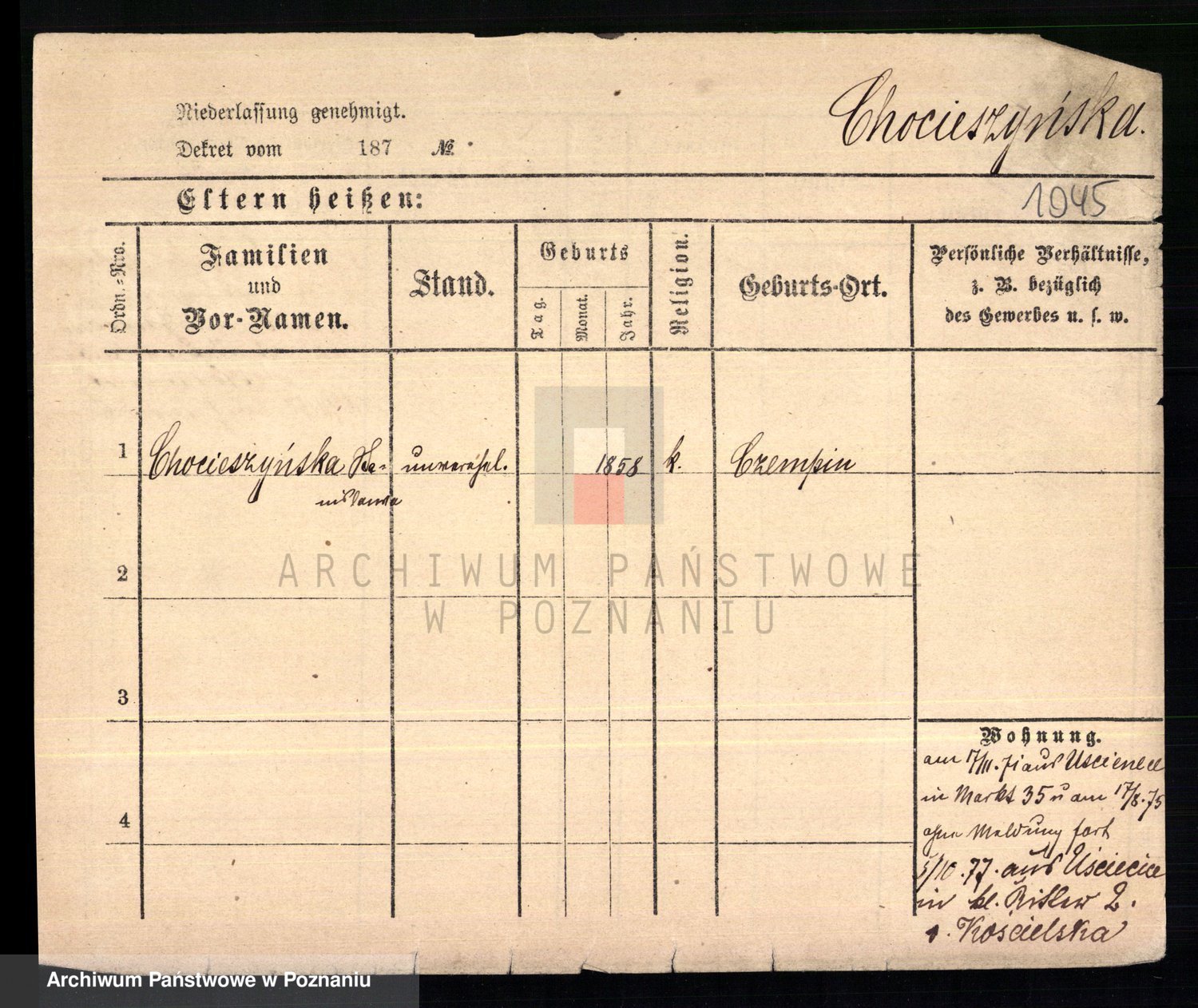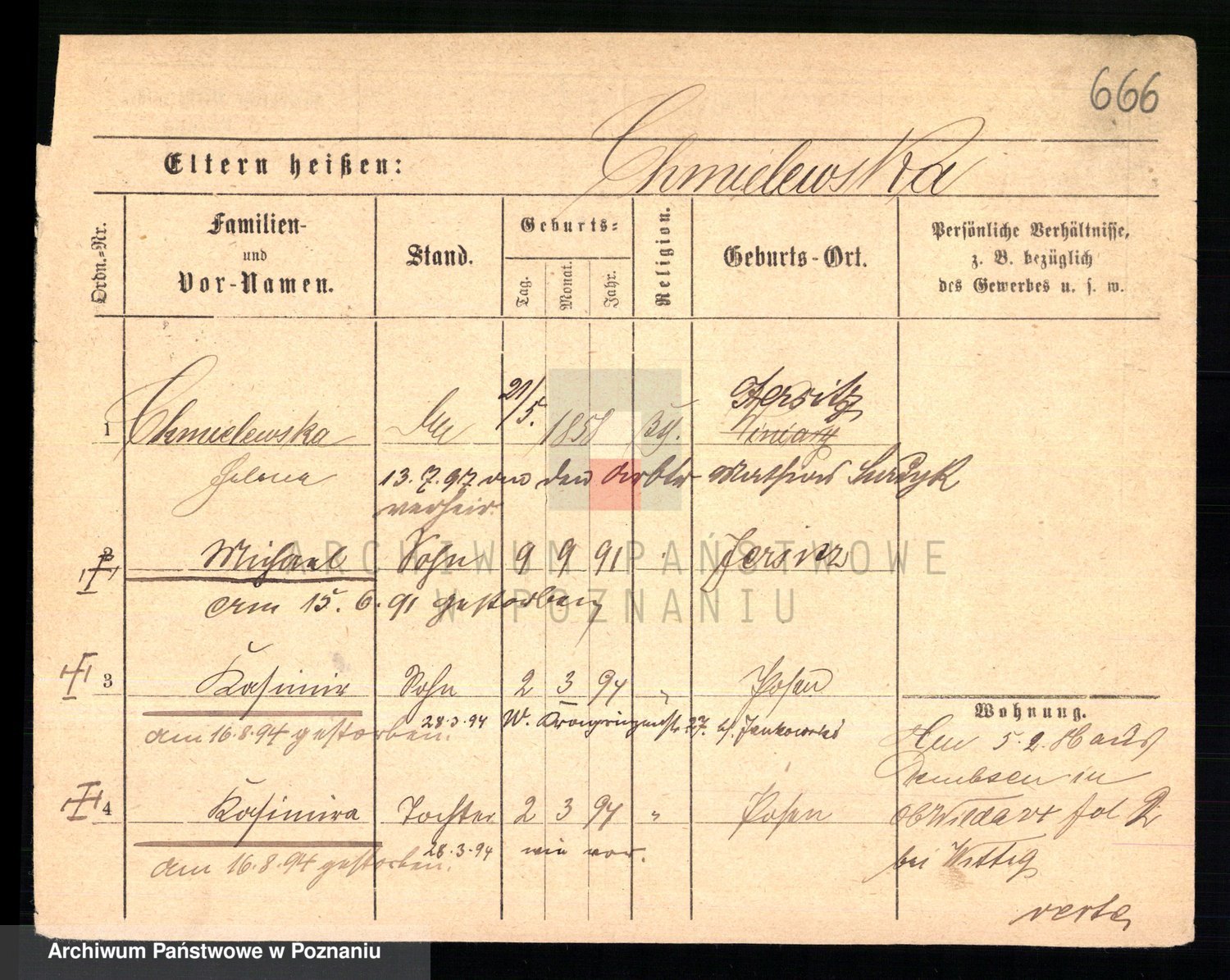 Chociszewska z.d. Kaminska, Franziska Julie