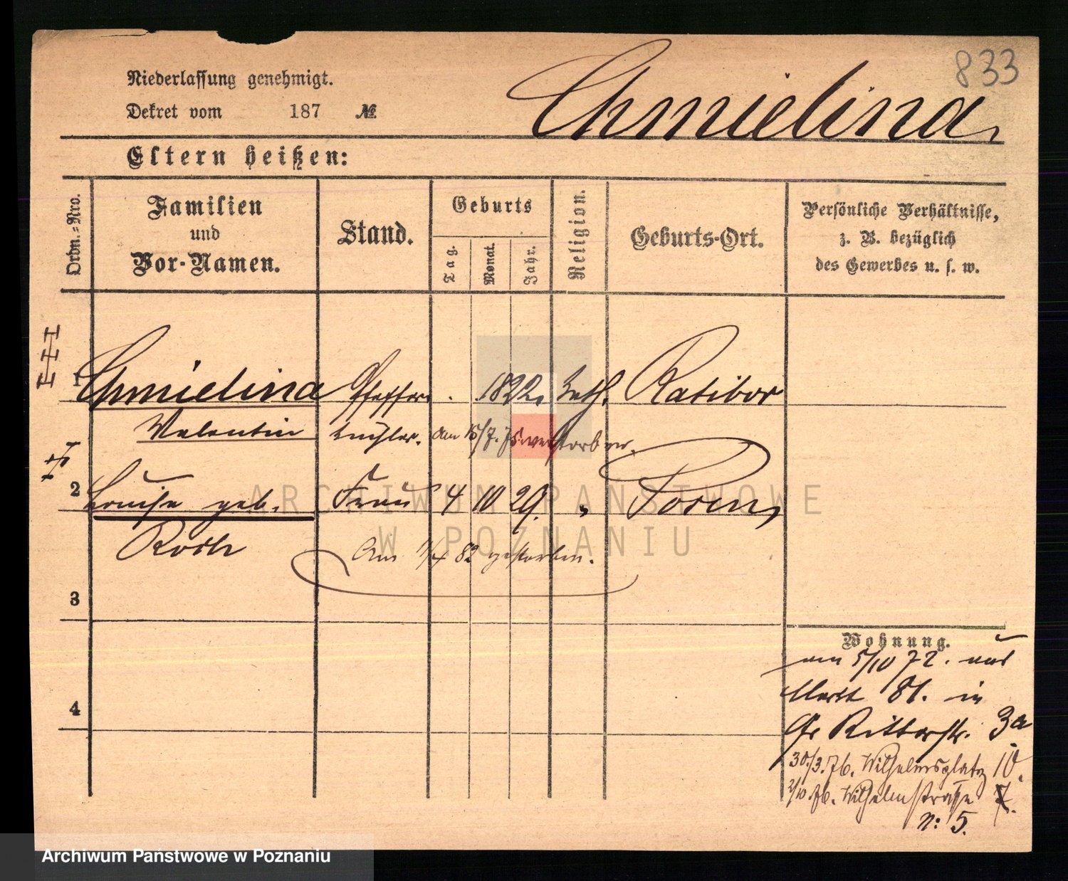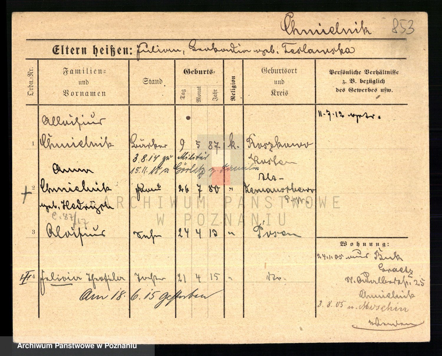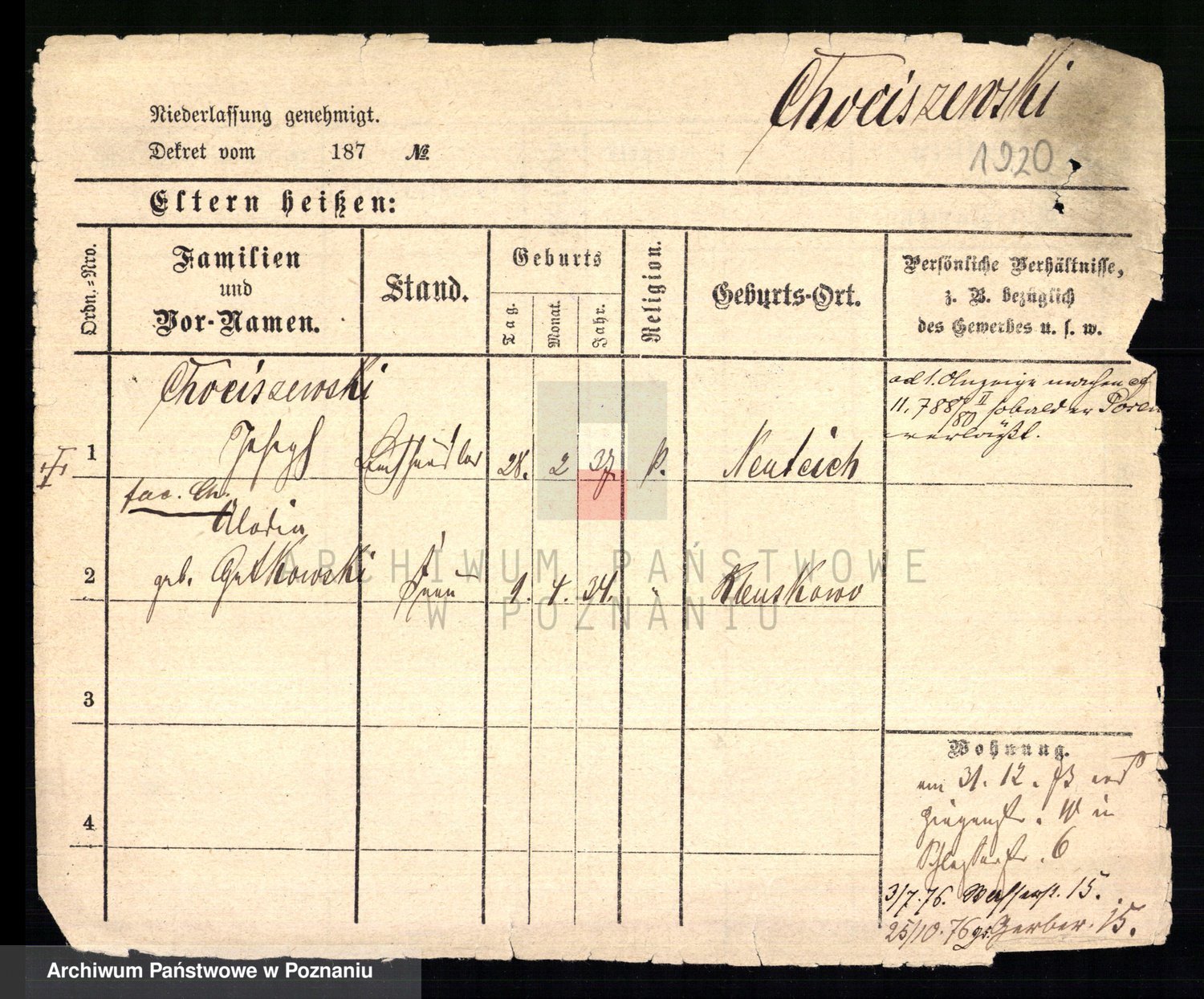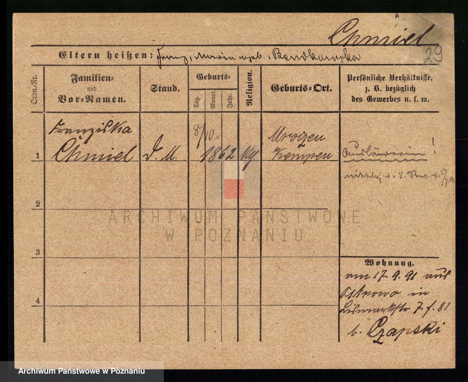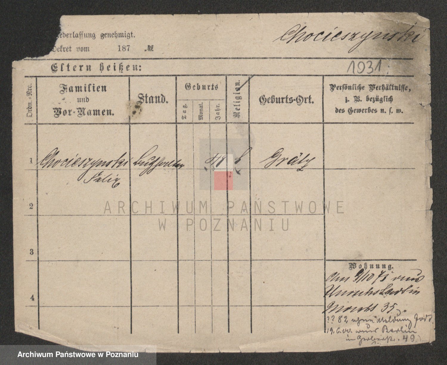 Chociszewska z.d. Kaminska, Franziska Julie