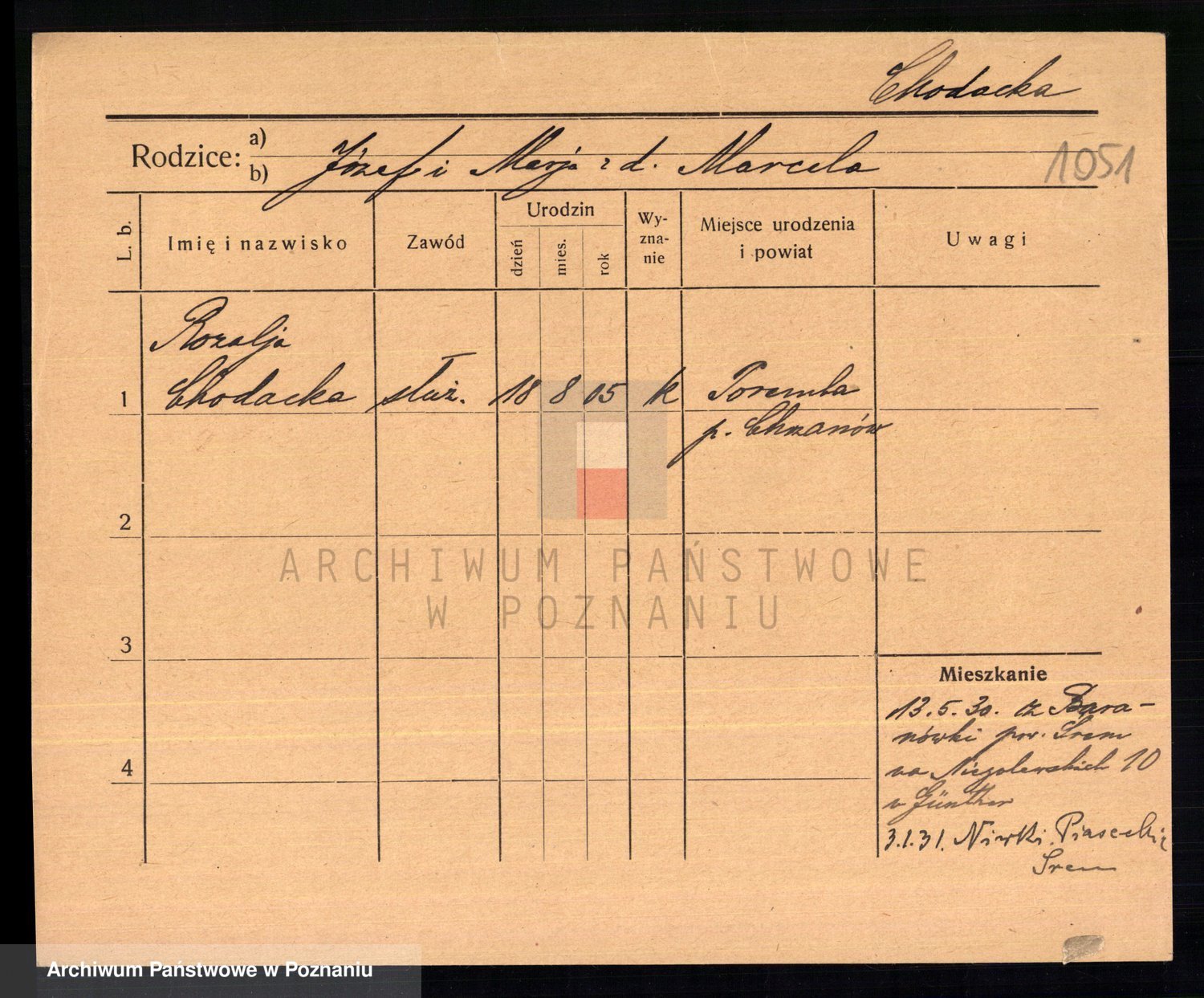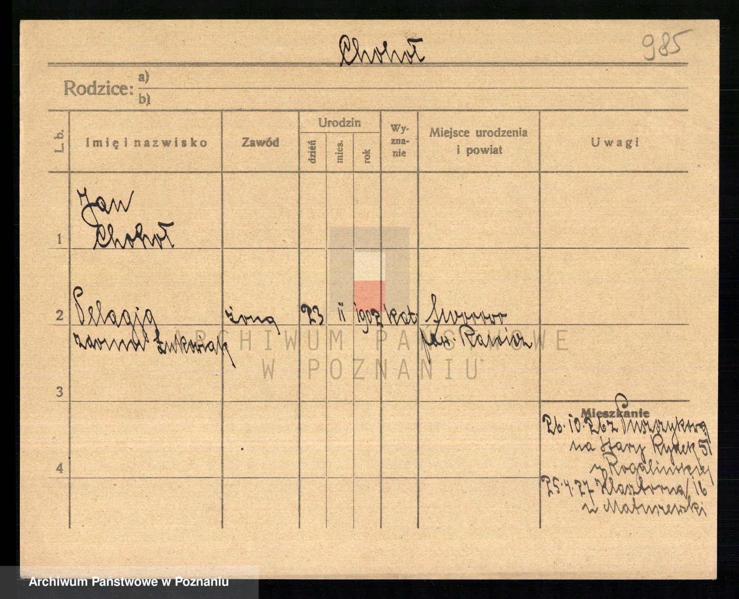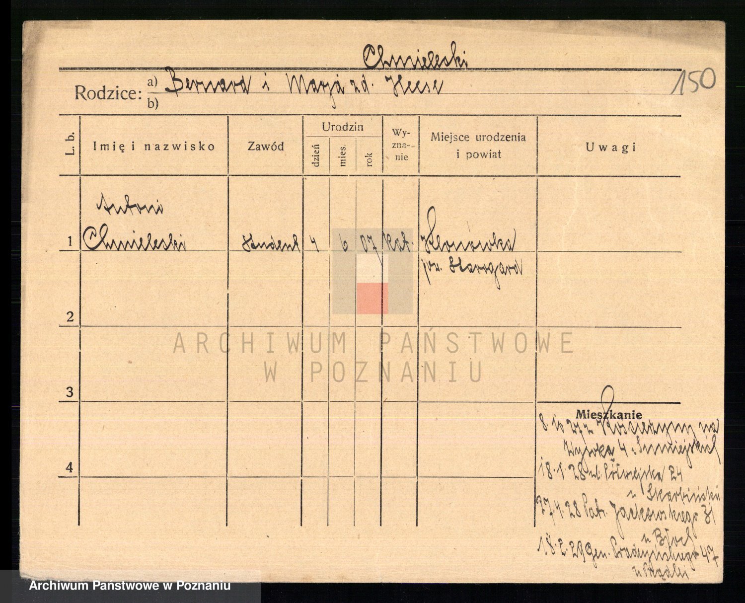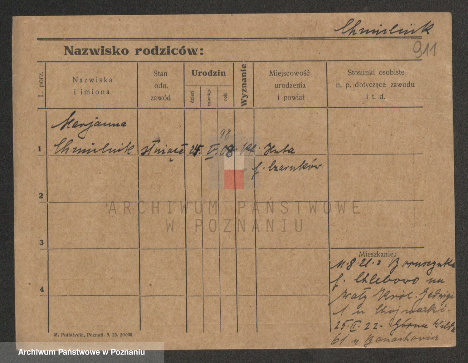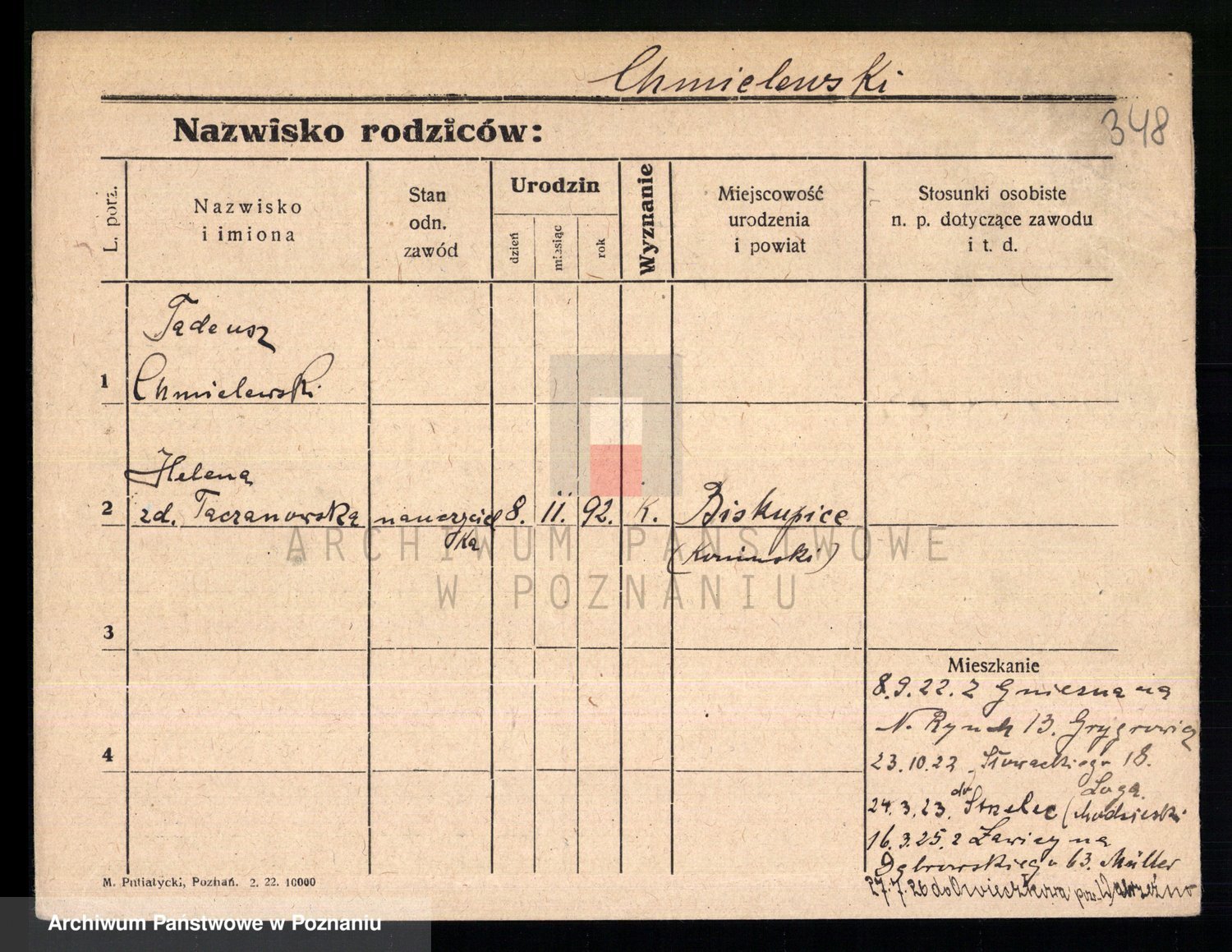 Podgląd karty osobowej dostępny jest po kliknięciu na nazwisko lub ikonkę karty. Można dokonywać powiększenia (ikony na górze) lub przechodzić między kolejnymi skanami (strzałki po bokach).
