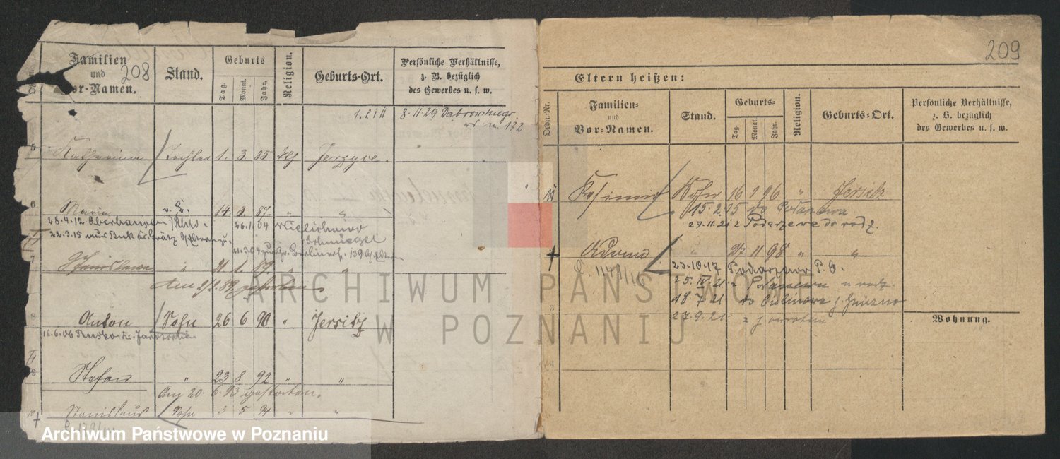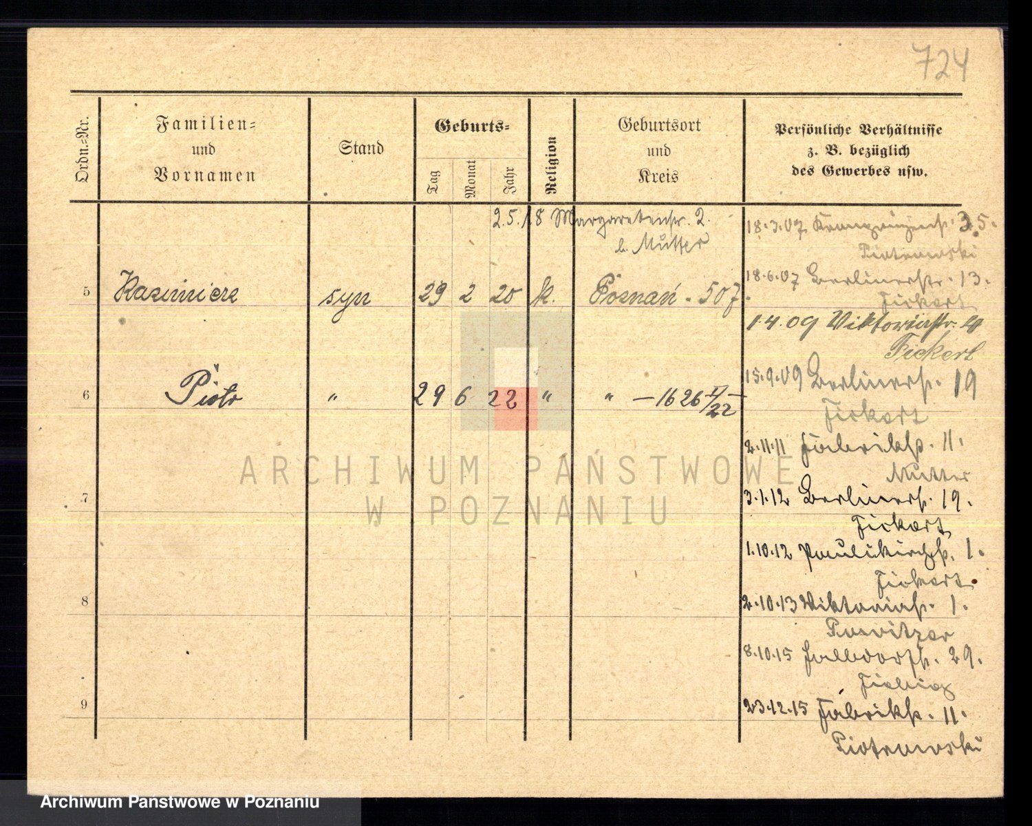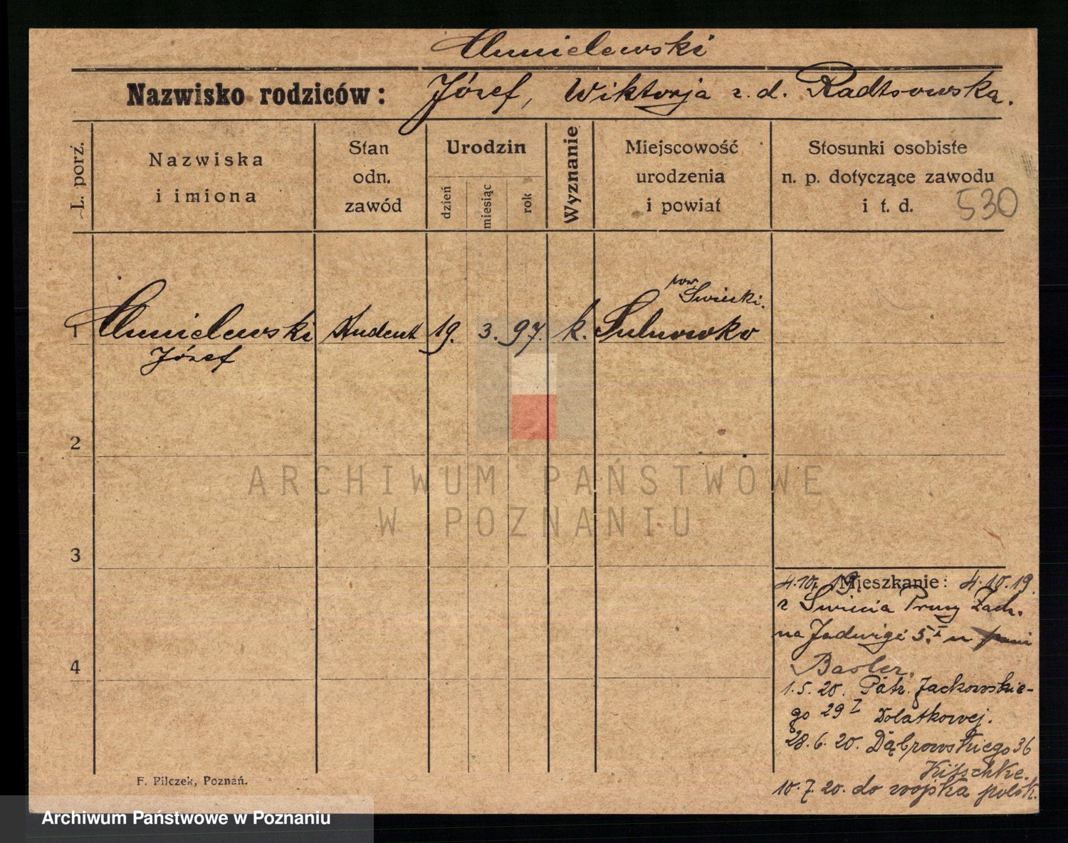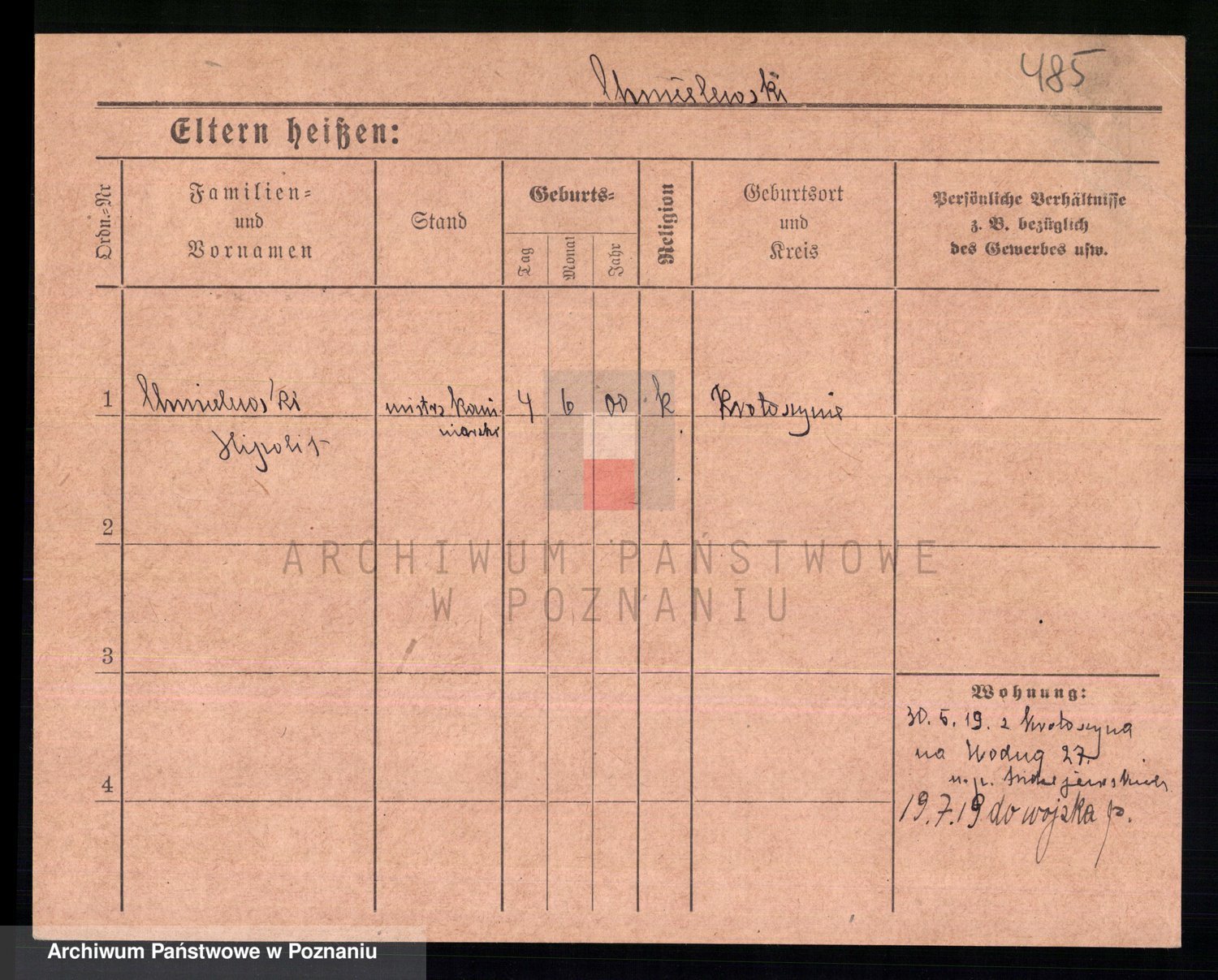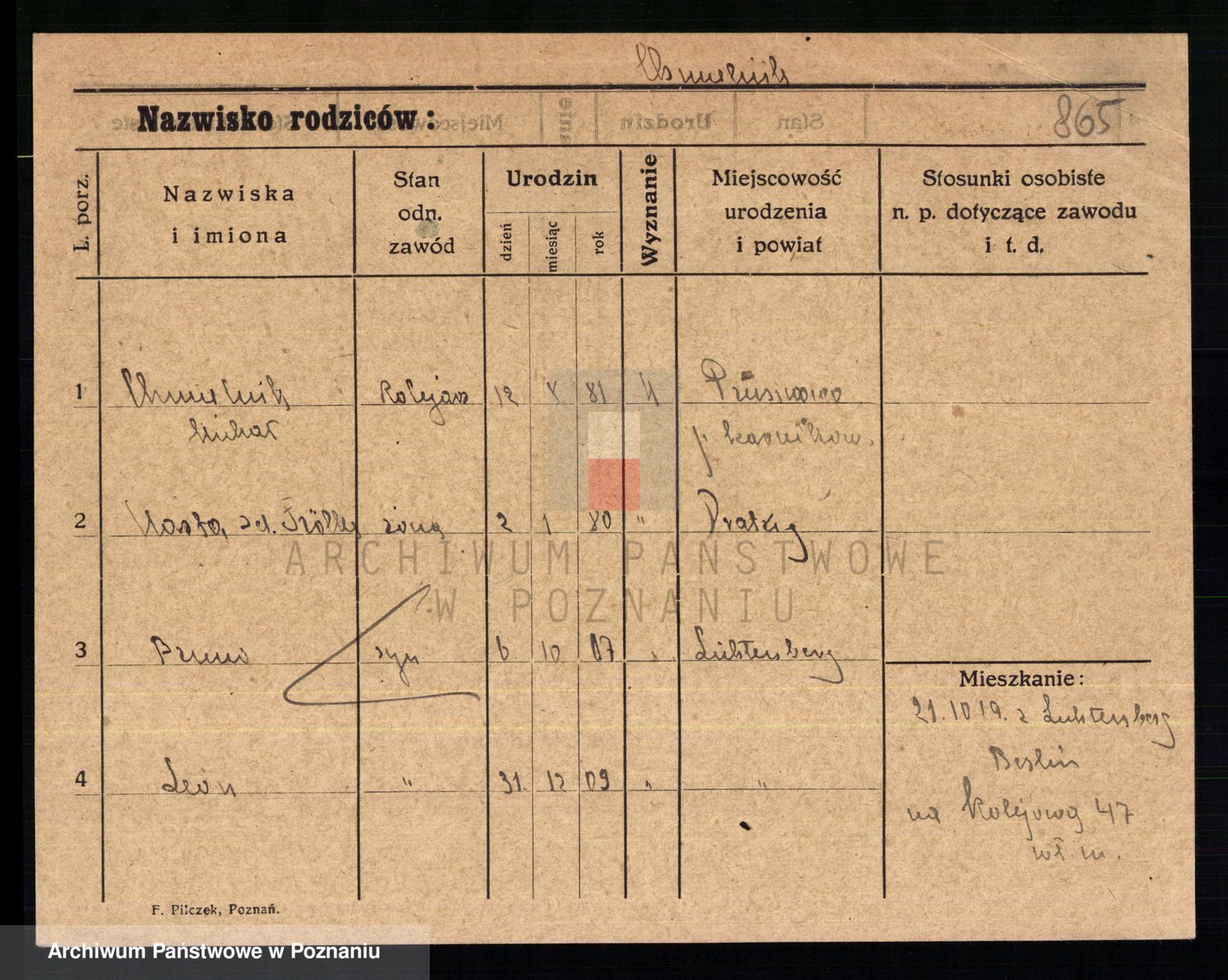 Podgląd karty osobowej dostępny jest po kliknięciu na nazwisko lub ikonkę karty. Można dokonywać powiększenia (ikony na górze) lub przechodzić między kolejnymi skanami (strzałki po bokach).
