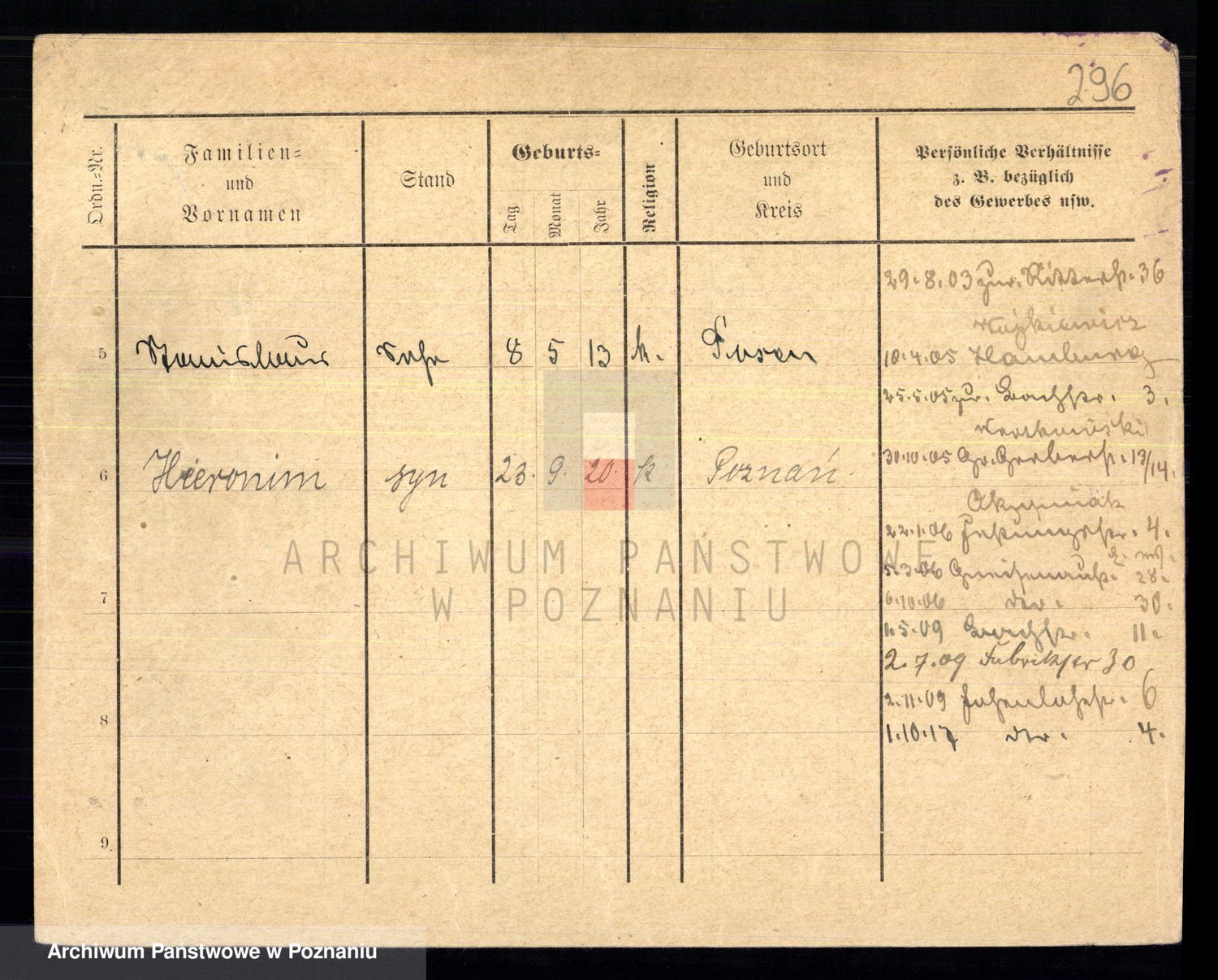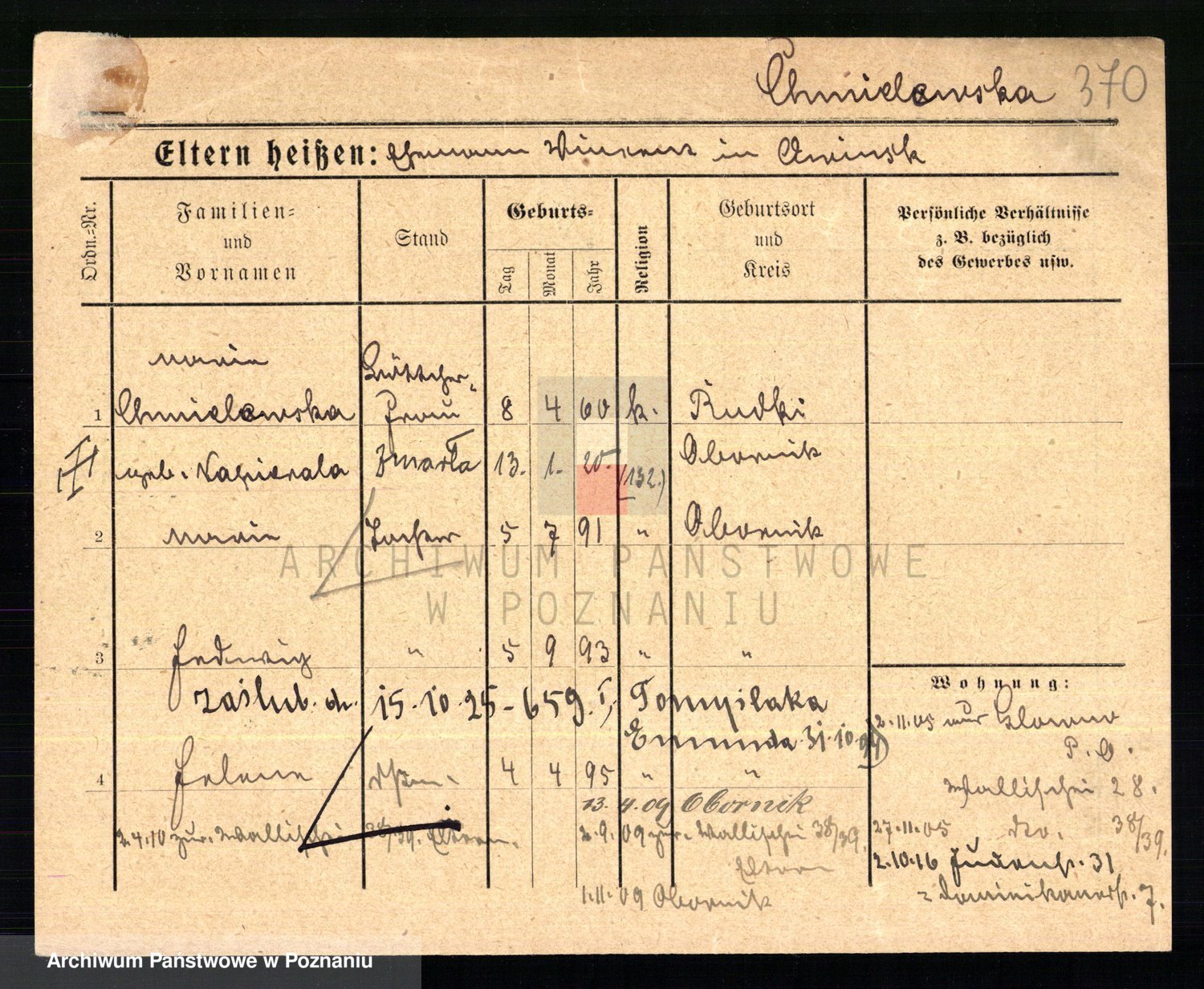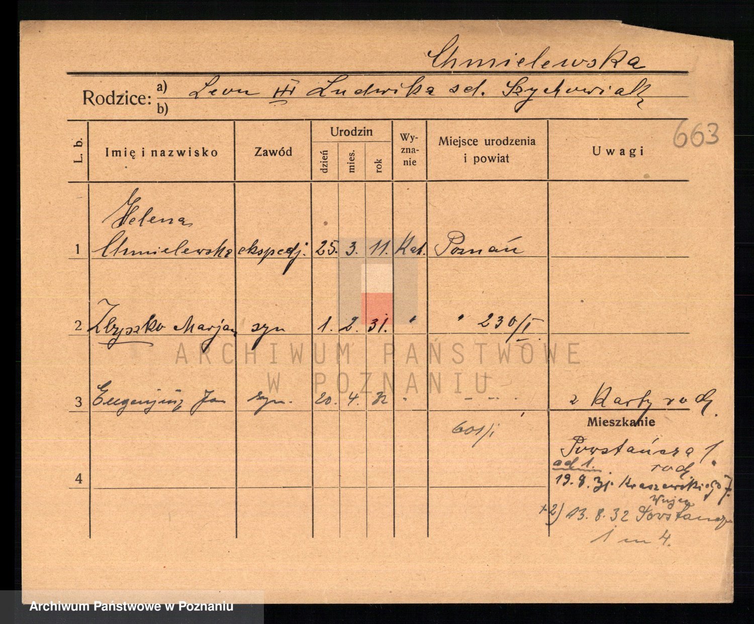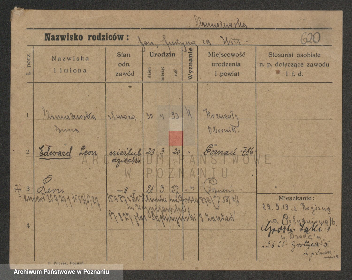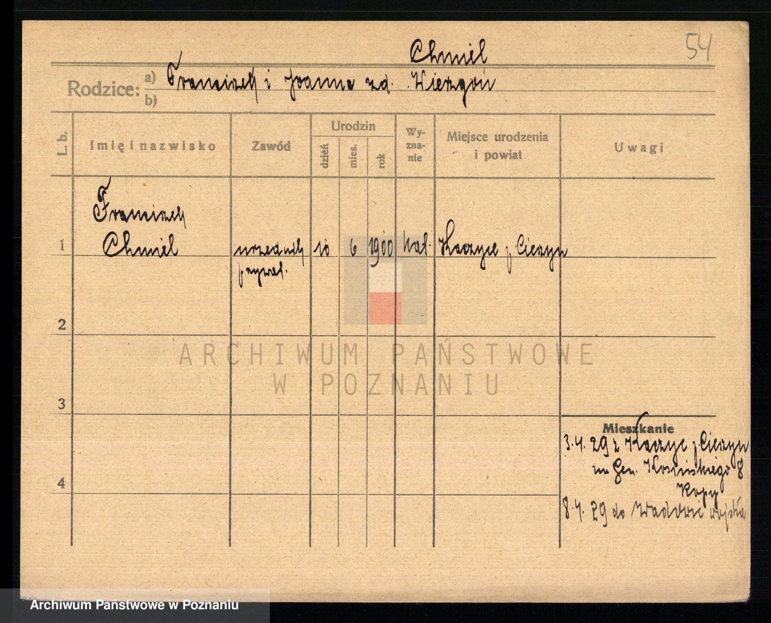 Podgląd karty osobowej dostępny jest po kliknięciu na nazwisko lub ikonkę karty. Można dokonywać powiększenia (ikony na górze) lub przechodzić między kolejnymi skanami (strzałki po bokach).