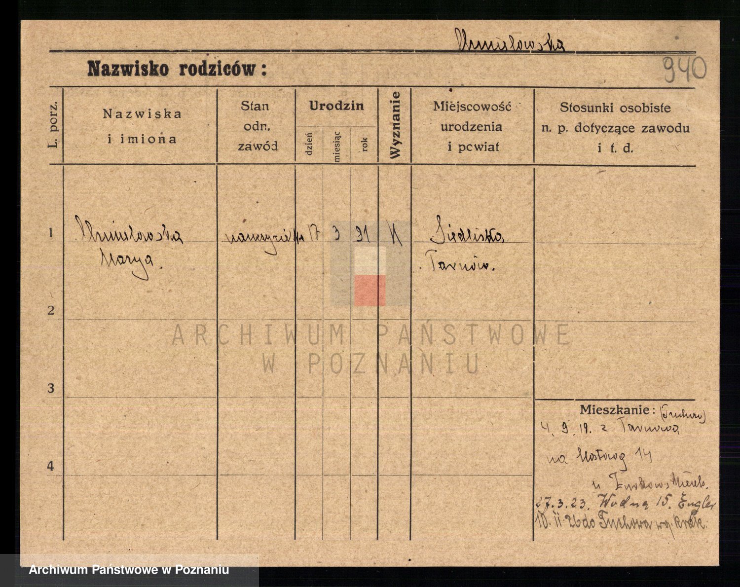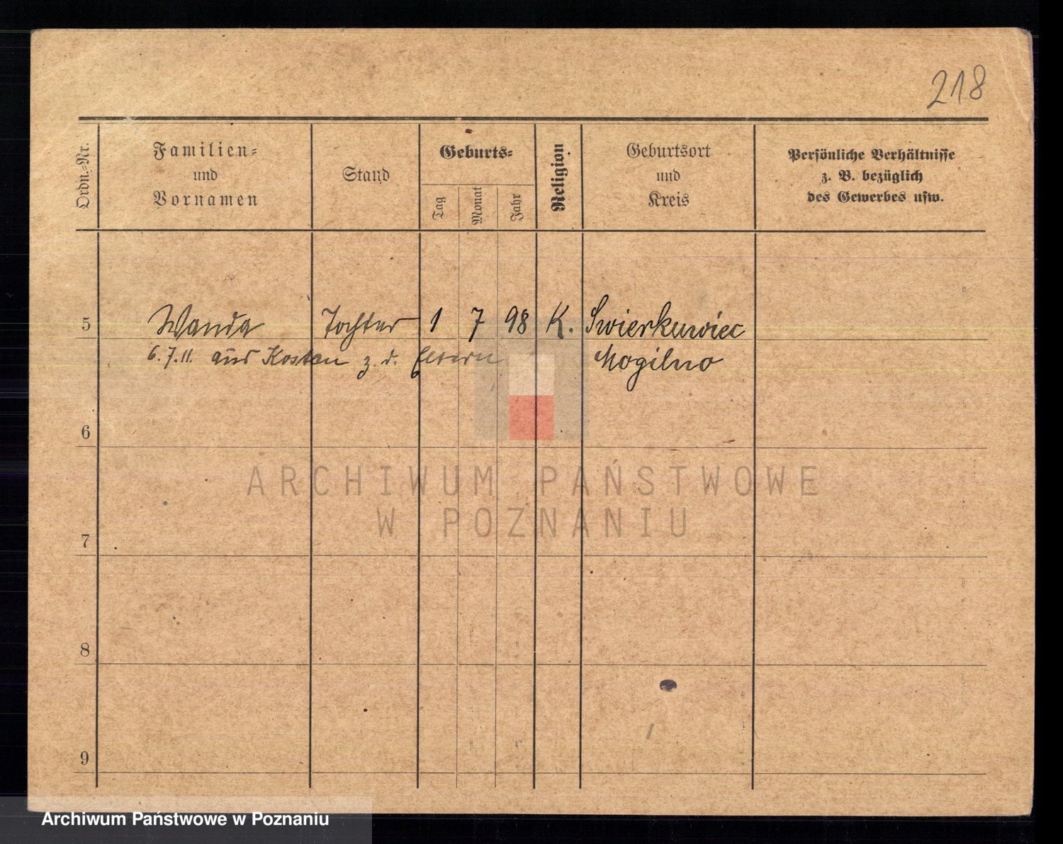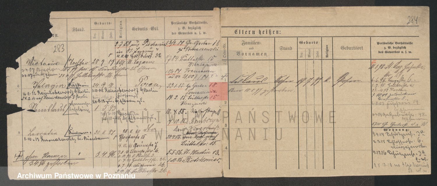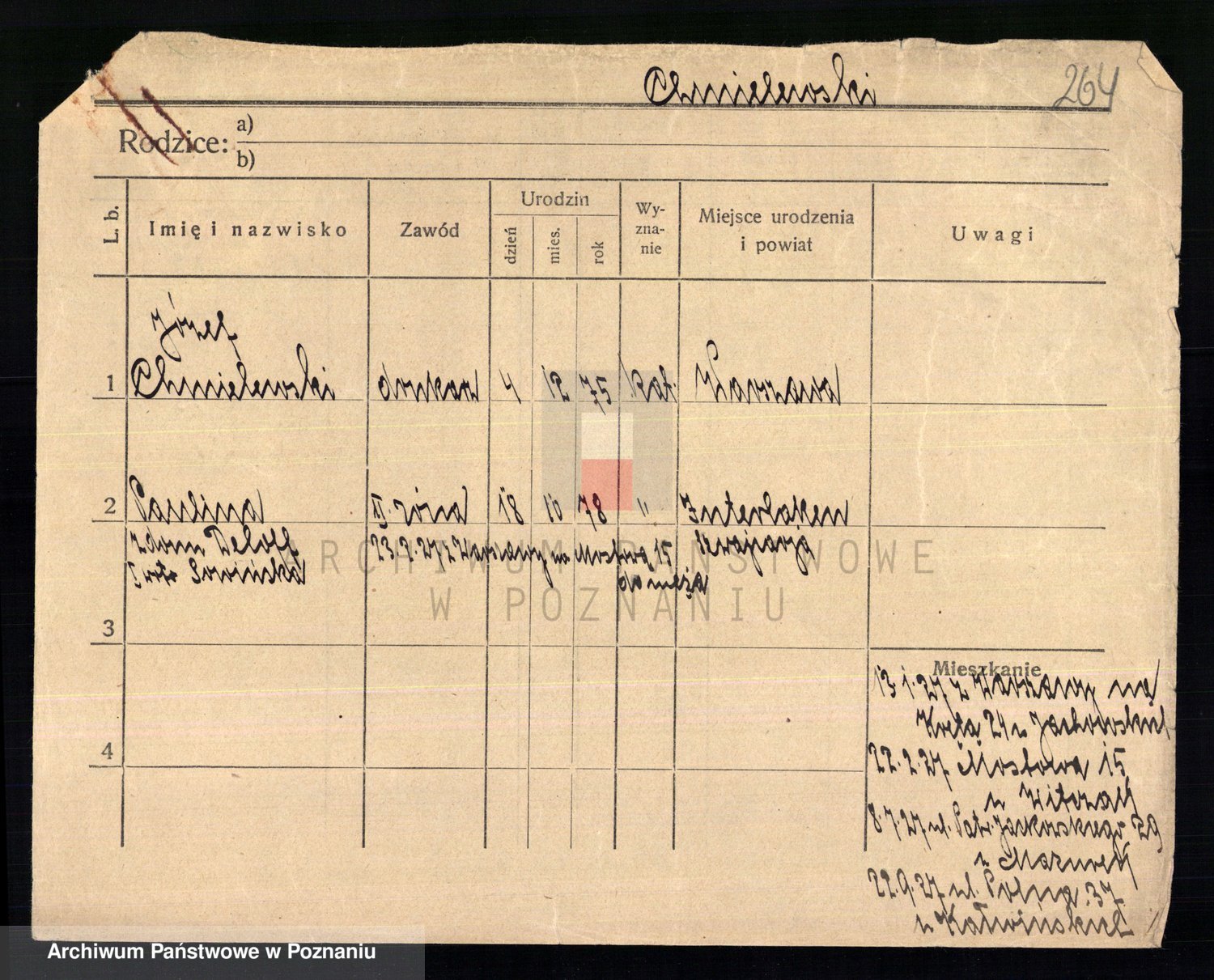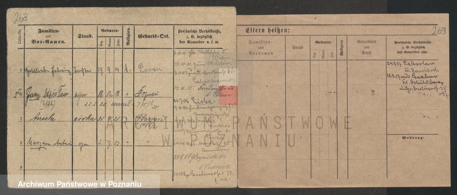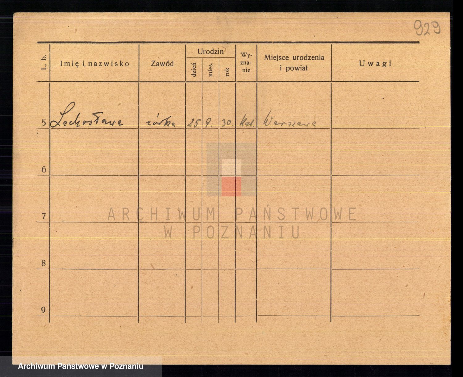 Podgląd karty osobowej dostępny jest po kliknięciu na nazwisko lub ikonkę karty. Można dokonywać powiększenia (ikony na górze) lub przechodzić między kolejnymi skanami (strzałki po bokach).