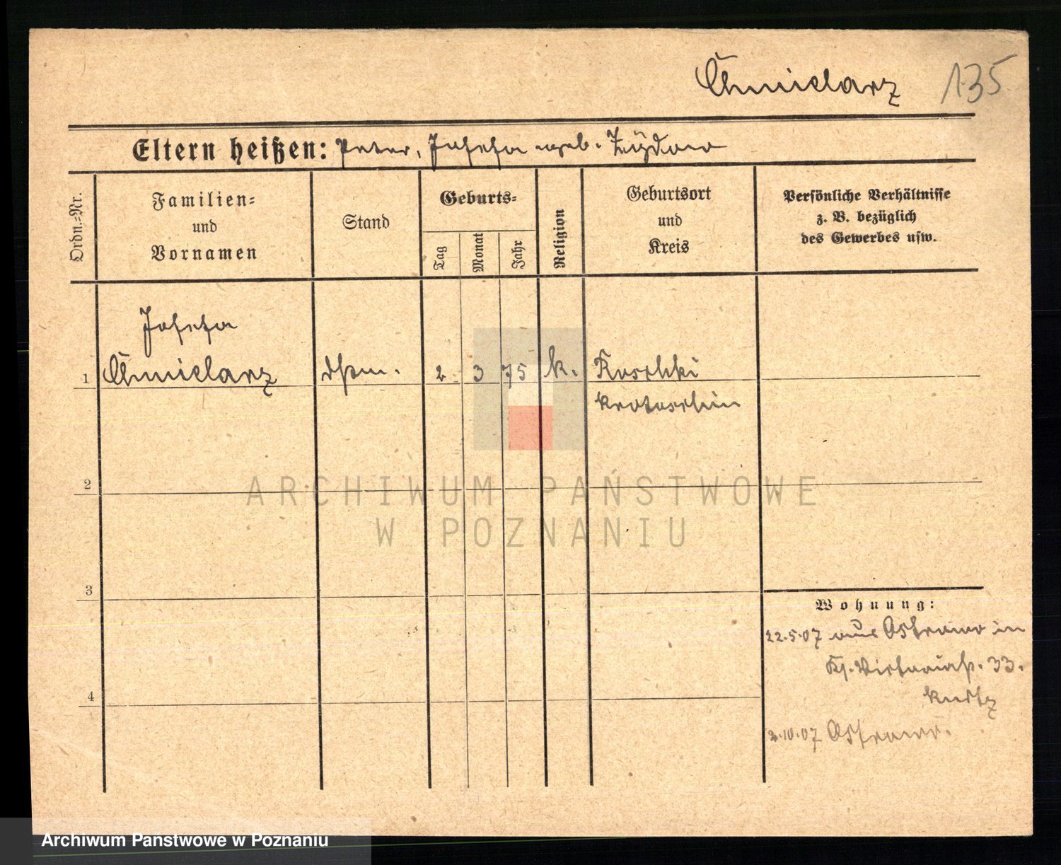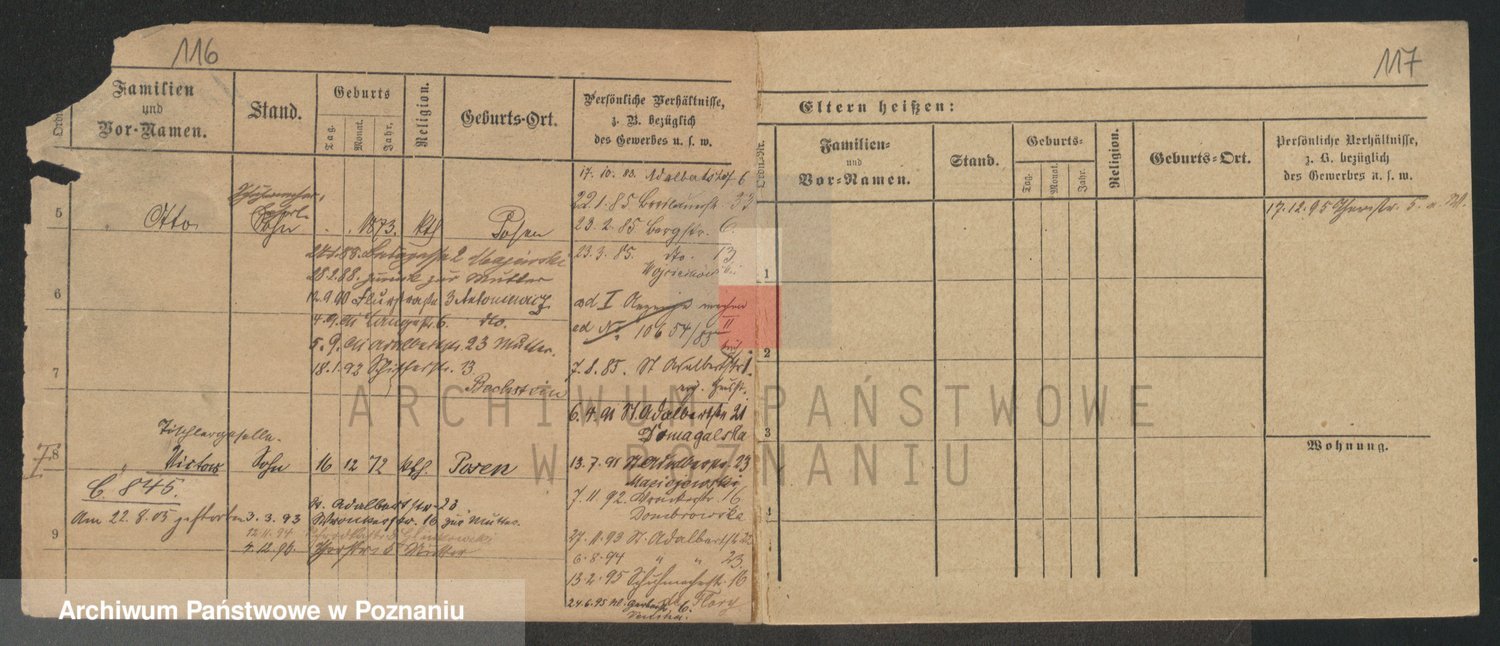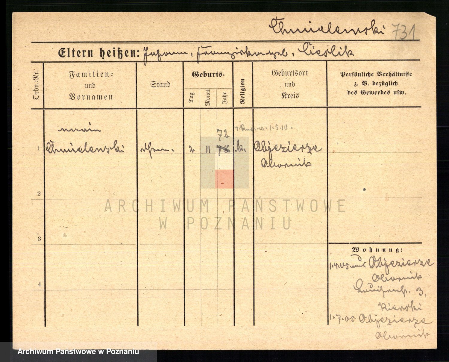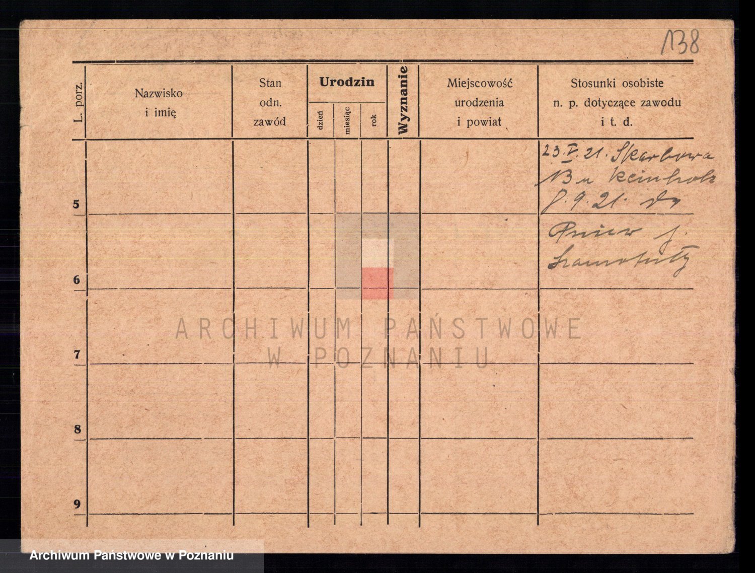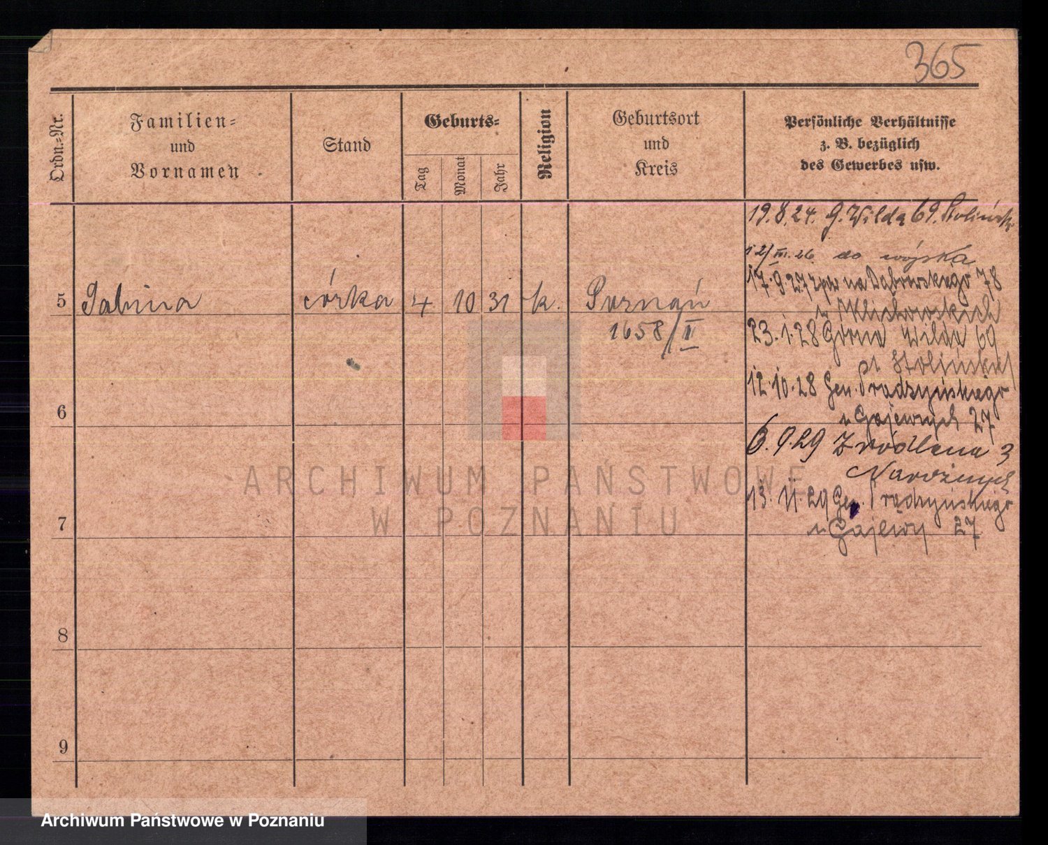 Podgląd karty osobowej dostępny jest po kliknięciu na nazwisko lub ikonkę karty. Można dokonywać powiększenia (ikony na górze) lub przechodzić między kolejnymi skanami (strzałki po bokach).