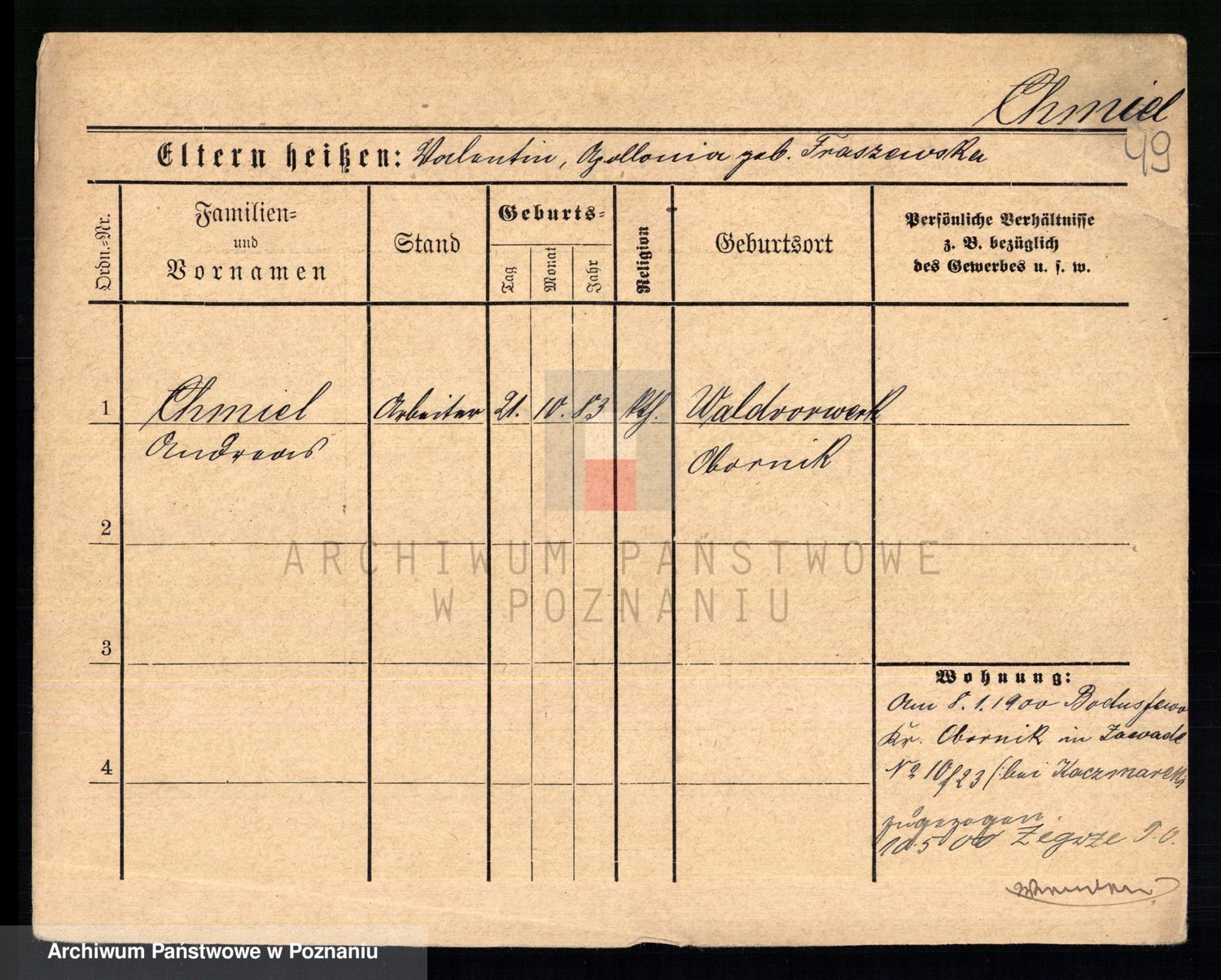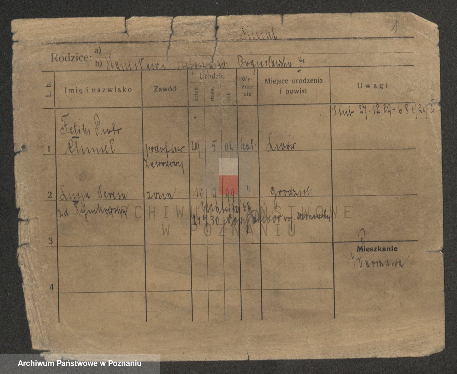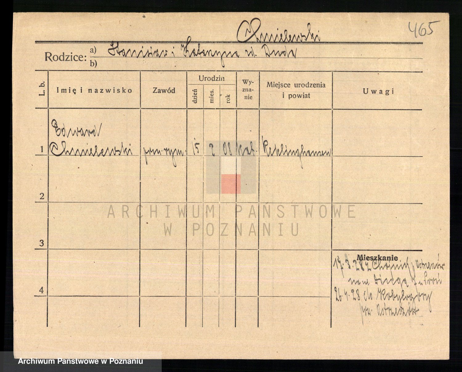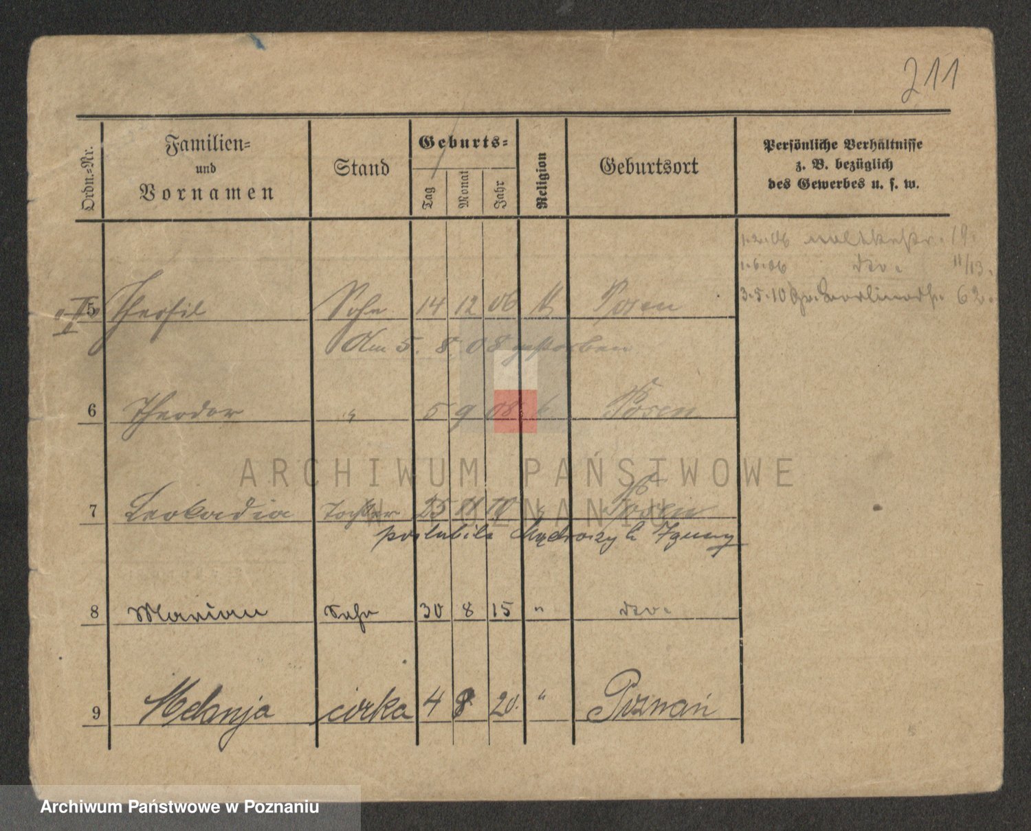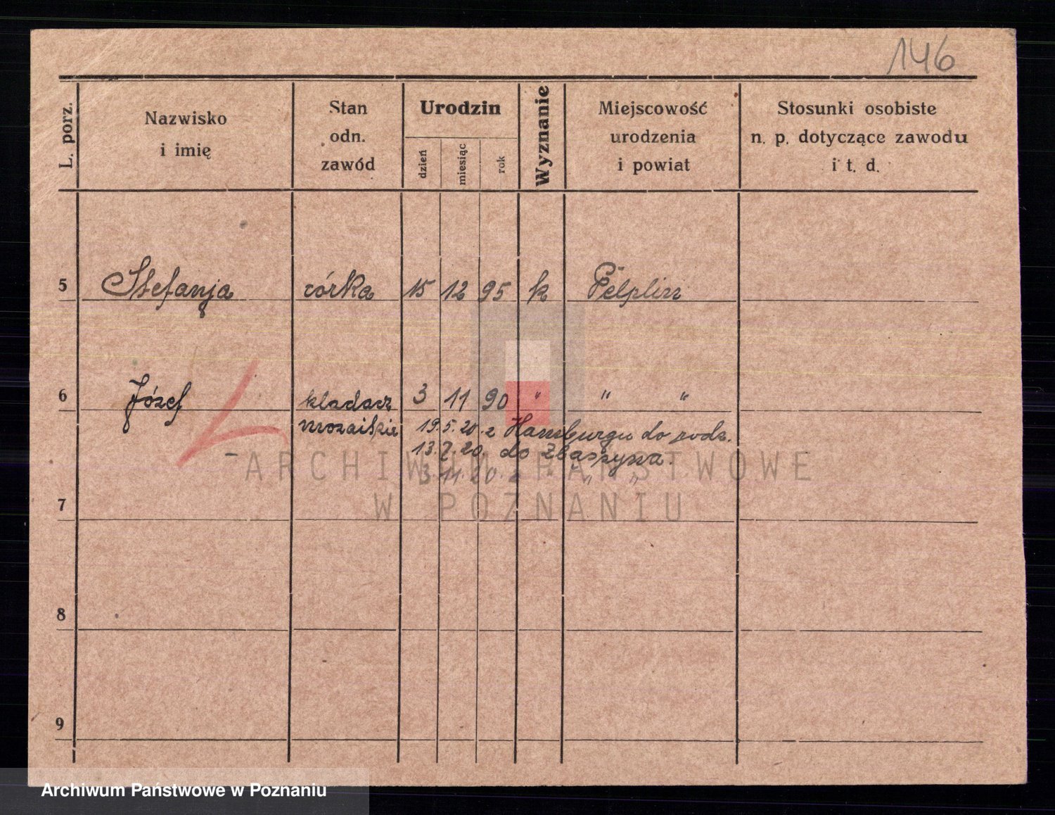 Podgląd karty osobowej dostępny jest po kliknięciu na nazwisko lub ikonkę karty. Można dokonywać powiększenia (ikony na górze) lub przechodzić między kolejnymi skanami (strzałki po bokach).