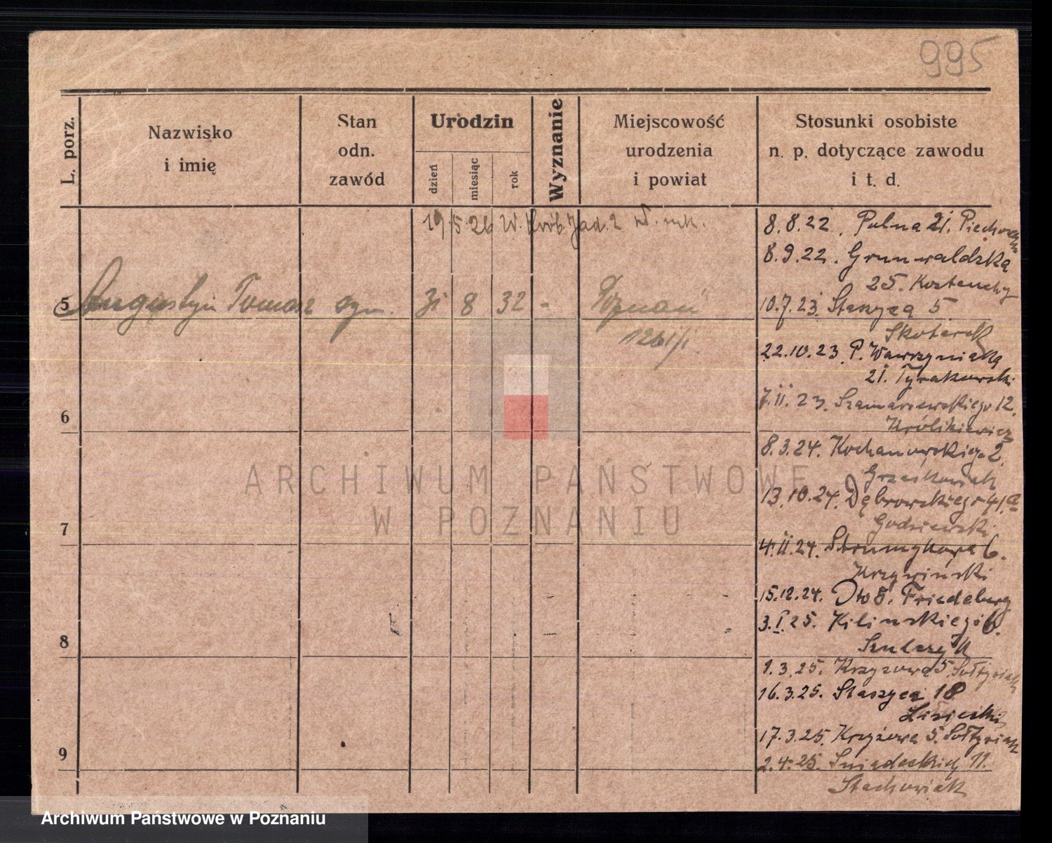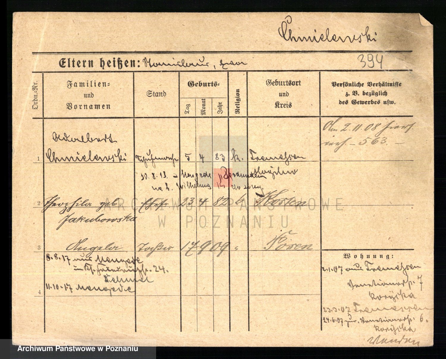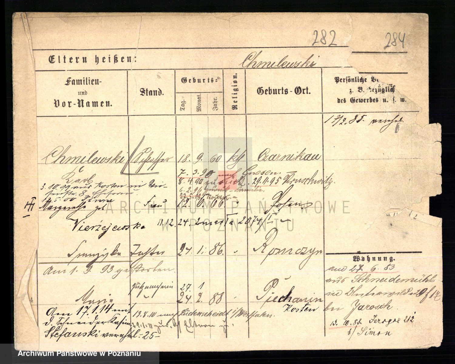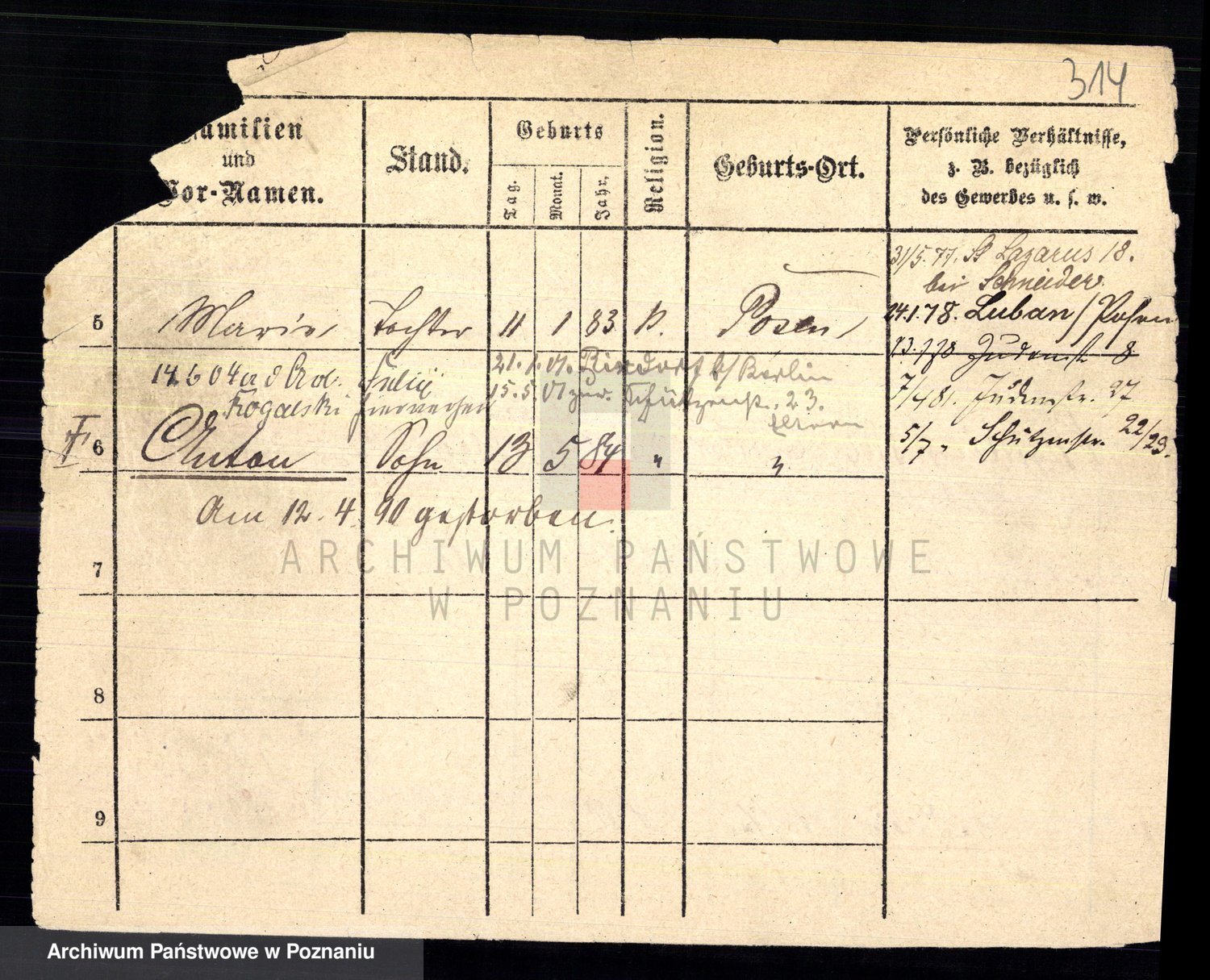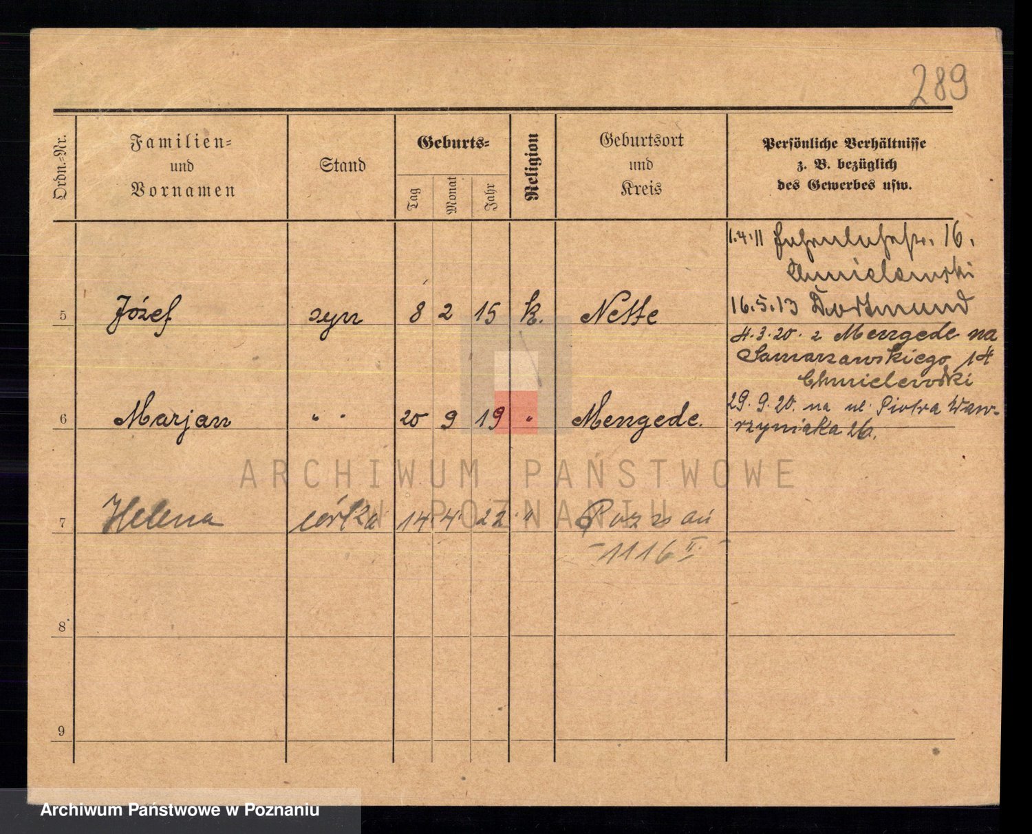 Podgląd karty osobowej dostępny jest po kliknięciu na nazwisko lub ikonkę karty. Można dokonywać powiększenia (ikony na górze) lub przechodzić między kolejnymi skanami (strzałki po bokach).