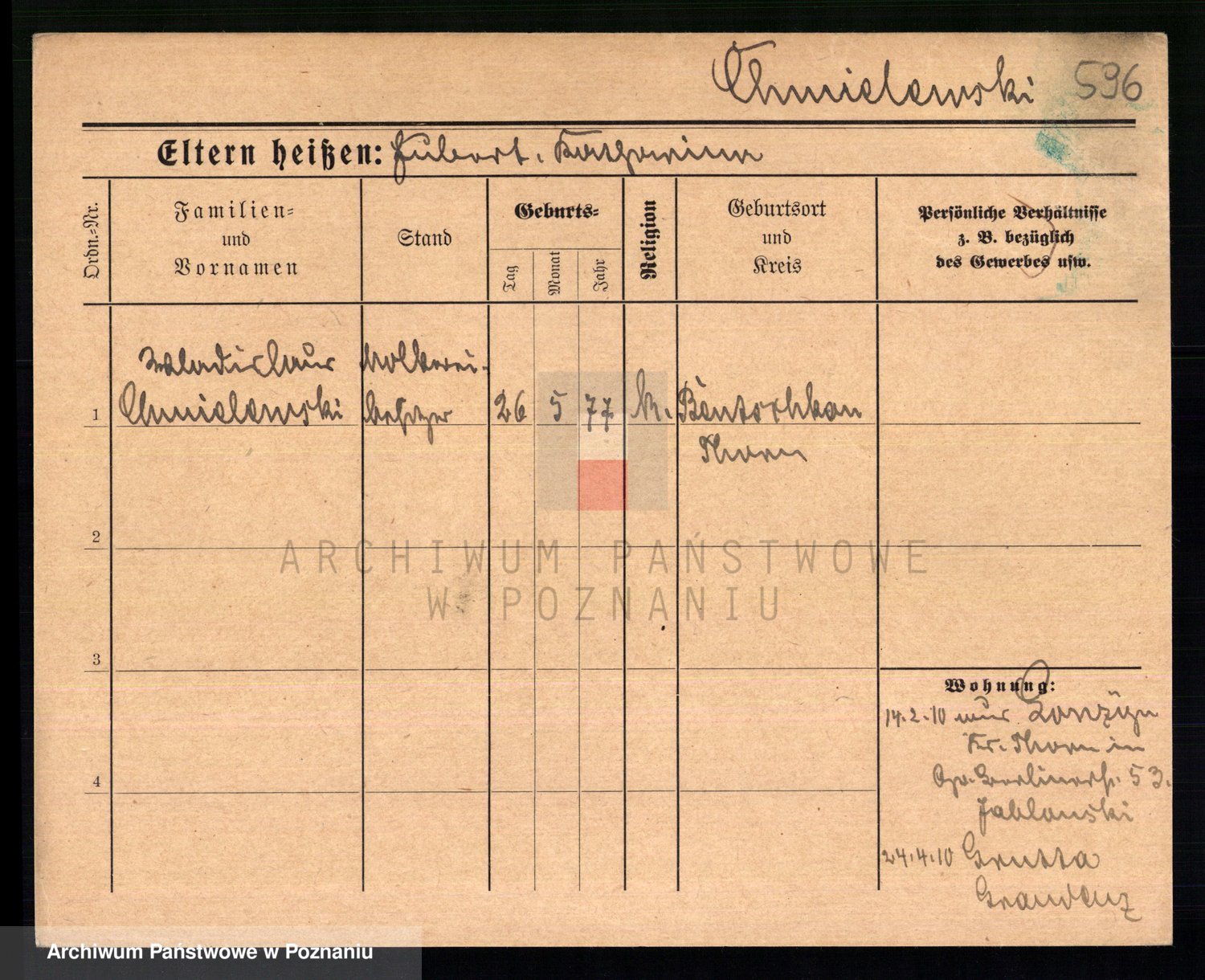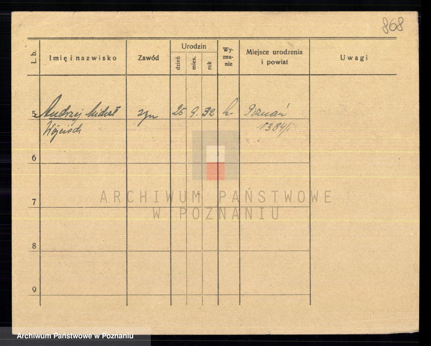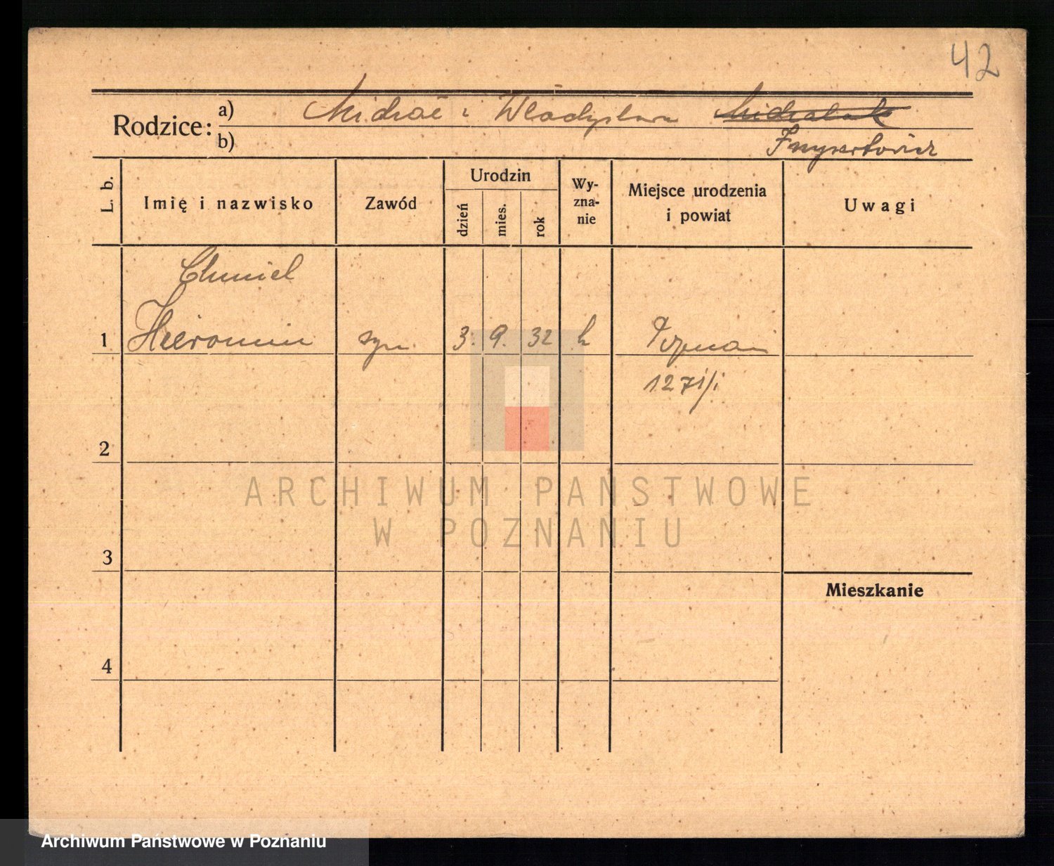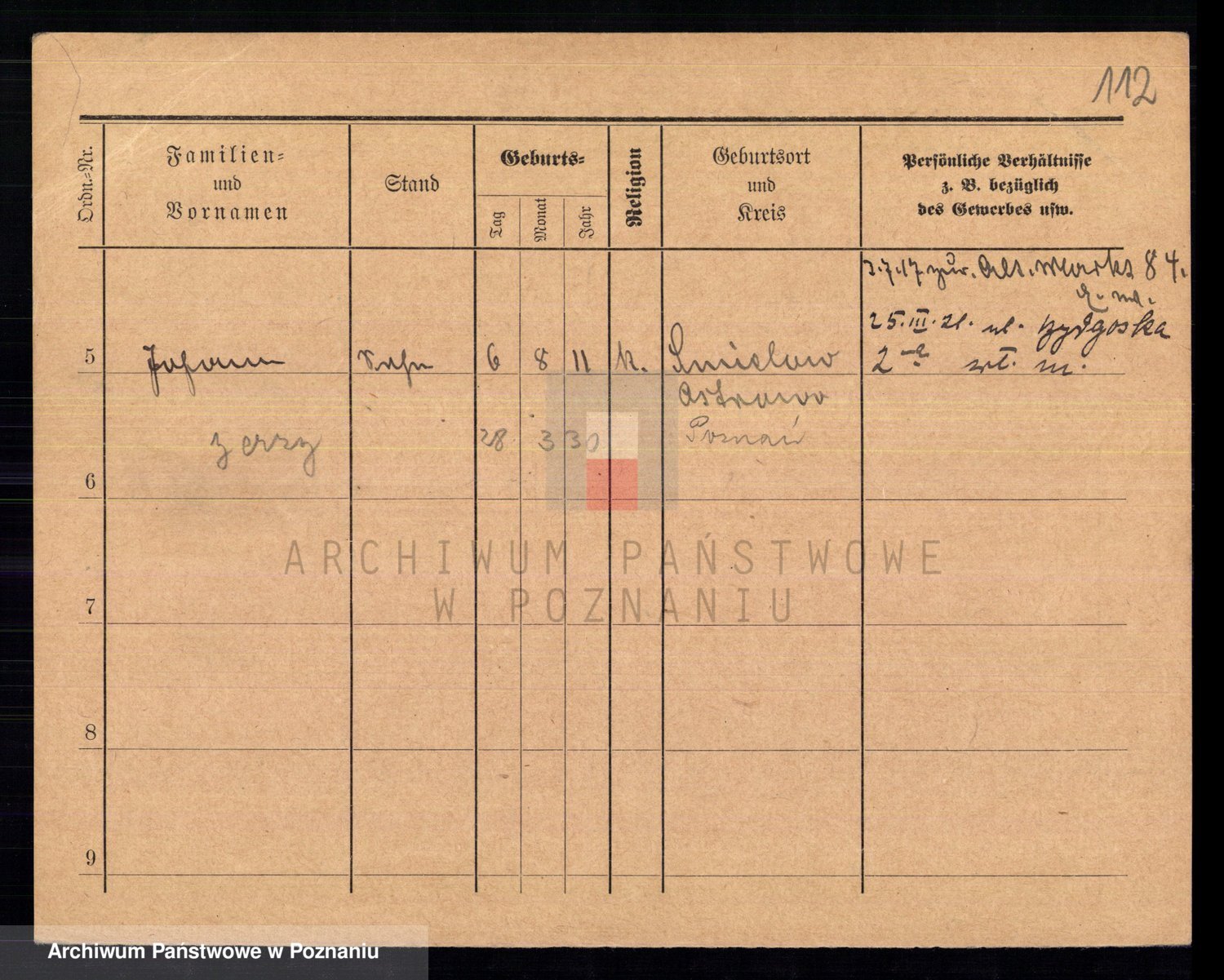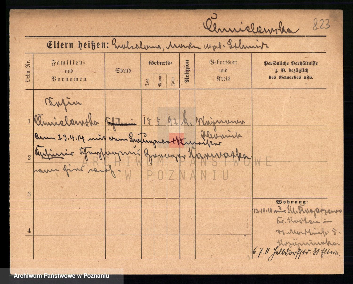 Podgląd karty osobowej dostępny jest po kliknięciu na nazwisko lub ikonkę karty. Można dokonywać powiększenia (ikony na górze) lub przechodzić między kolejnymi skanami (strzałki po bokach).