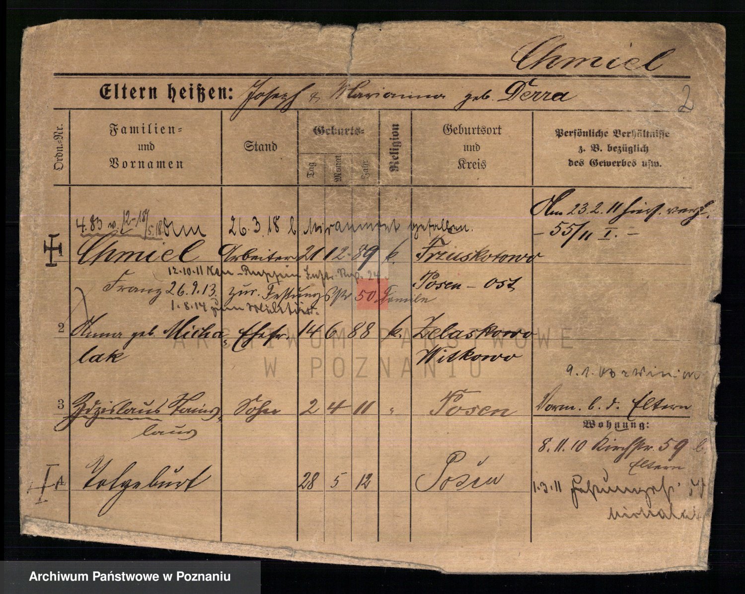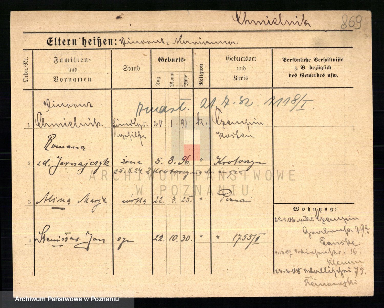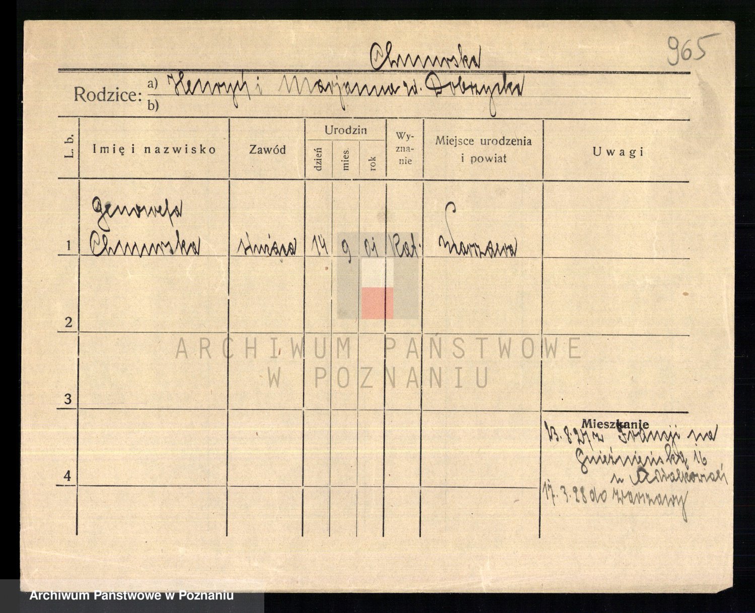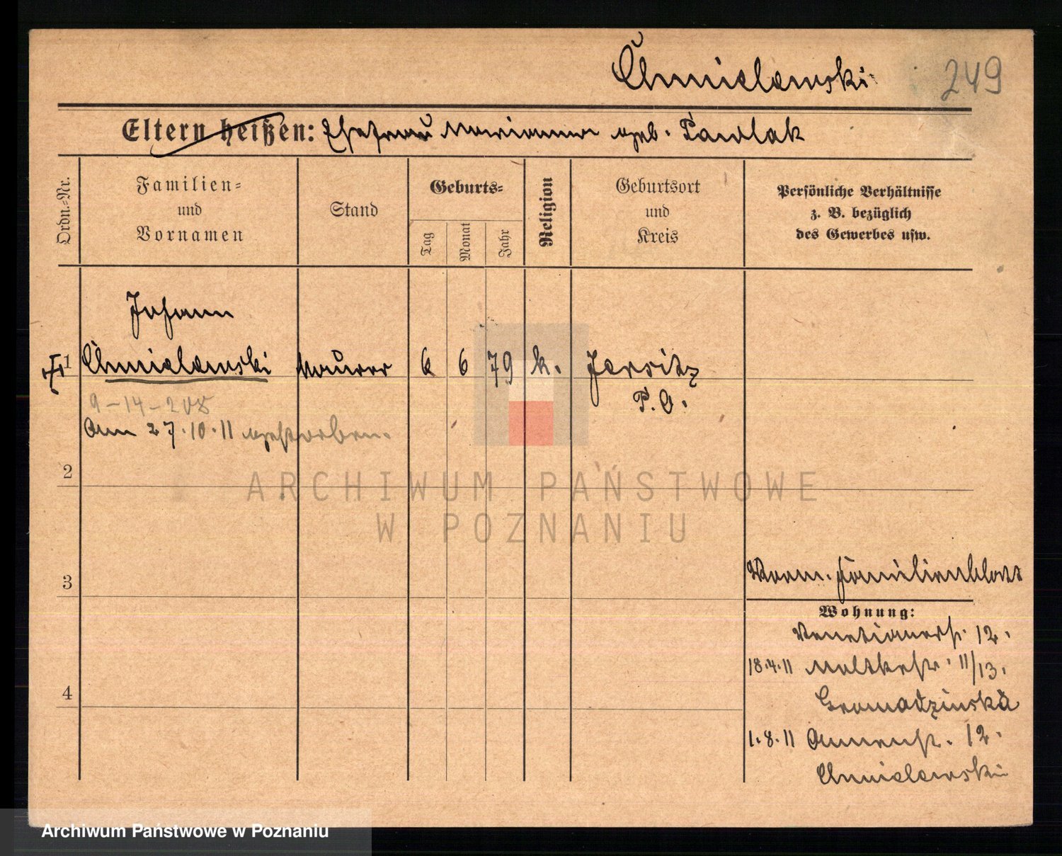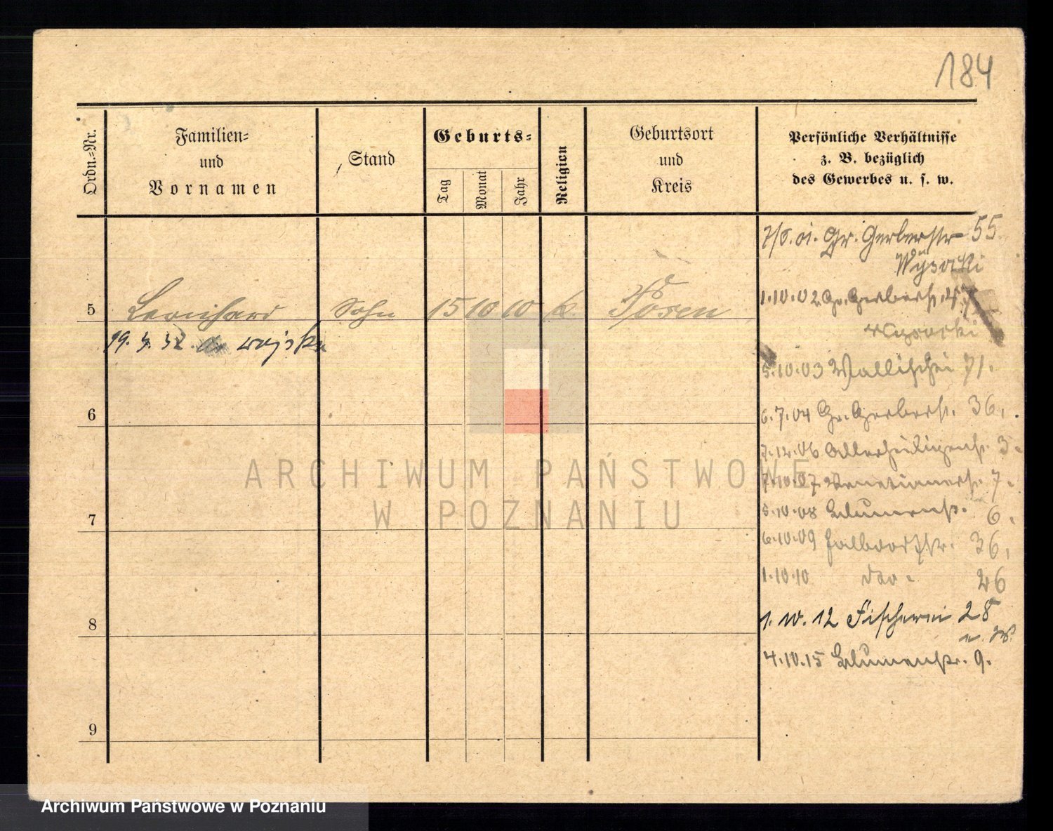 Podgląd karty osobowej dostępny jest po kliknięciu na nazwisko lub ikonkę karty. Można dokonywać powiększenia (ikony na górze) lub przechodzić między kolejnymi skanami (strzałki po bokach).