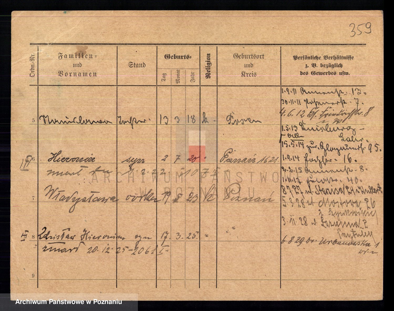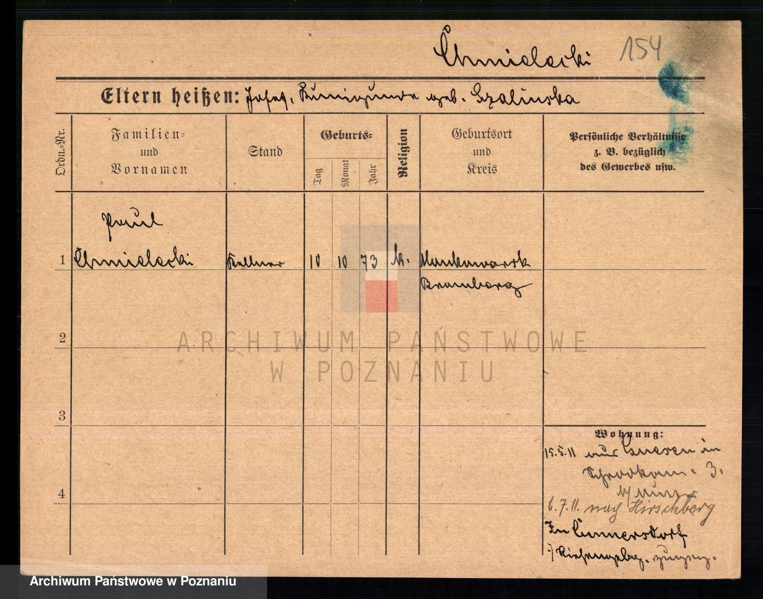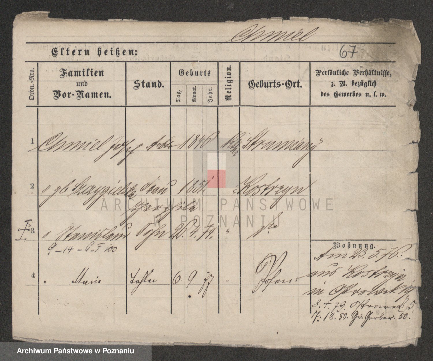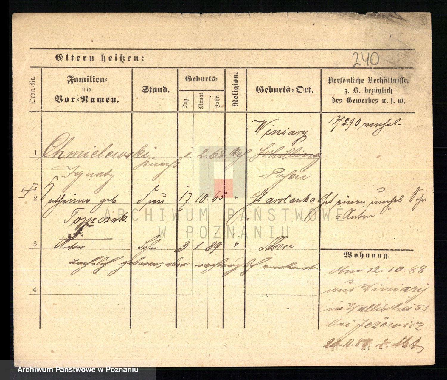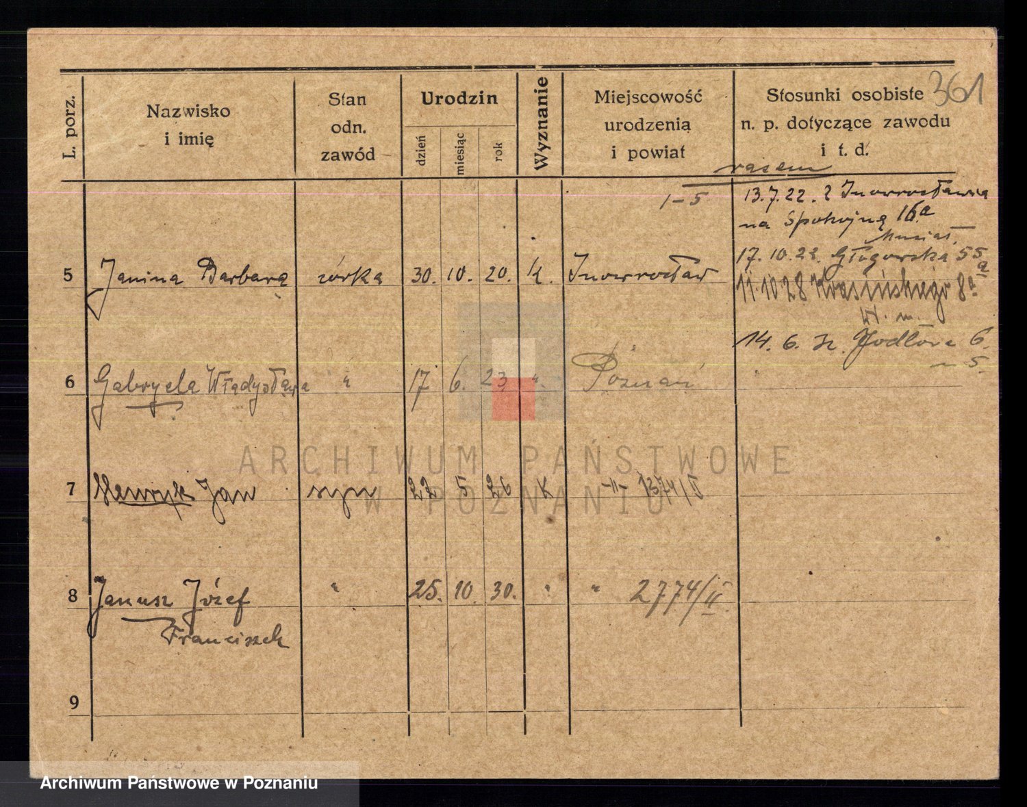 Podgląd karty osobowej dostępny jest po kliknięciu na nazwisko lub ikonkę karty. Można dokonywać powiększenia (ikony na górze) lub przechodzić między kolejnymi skanami (strzałki po bokach).