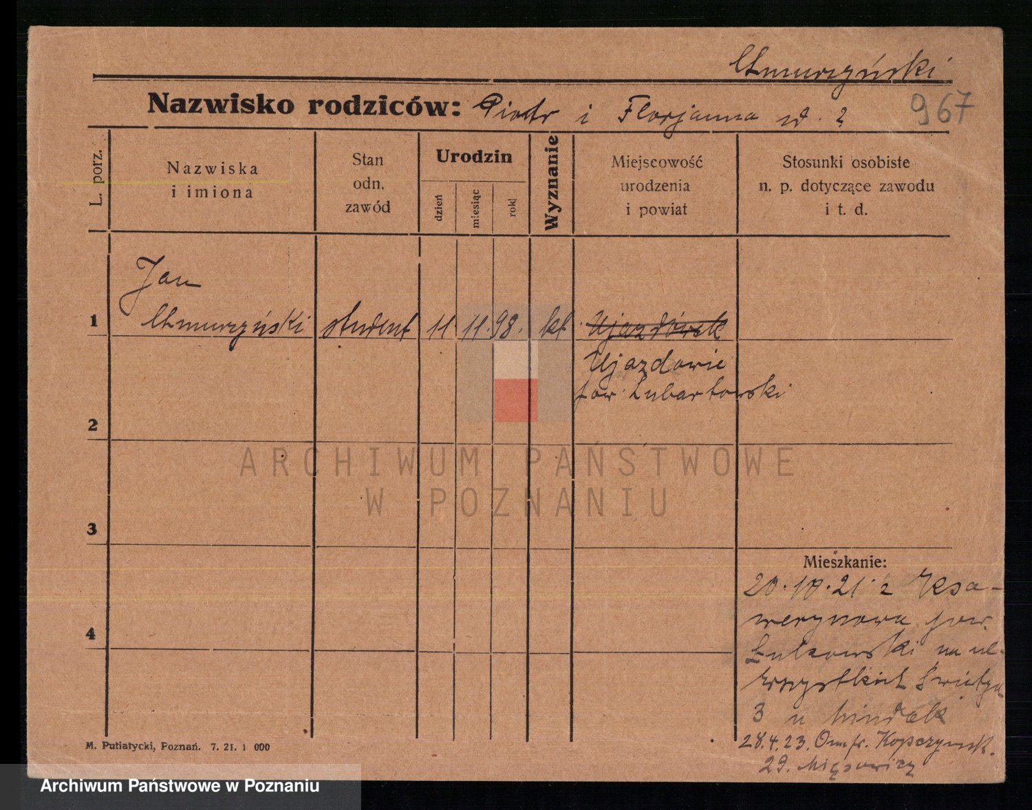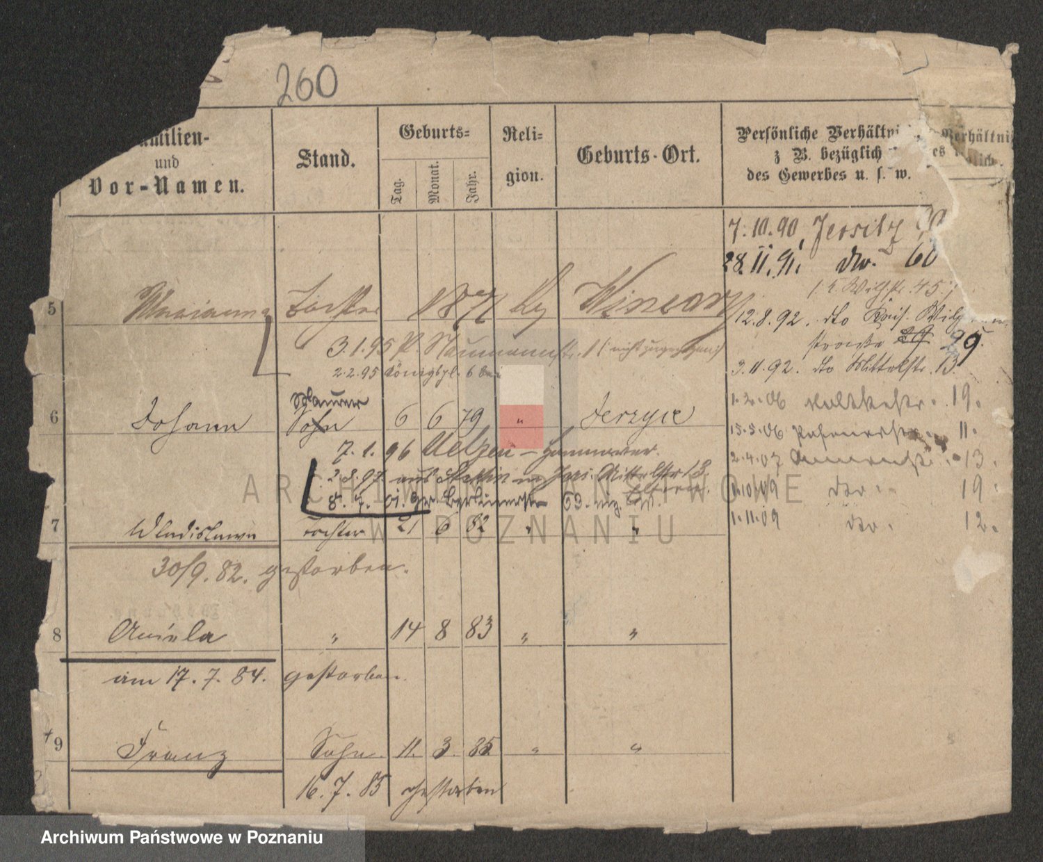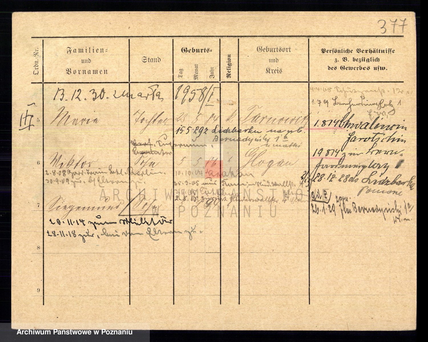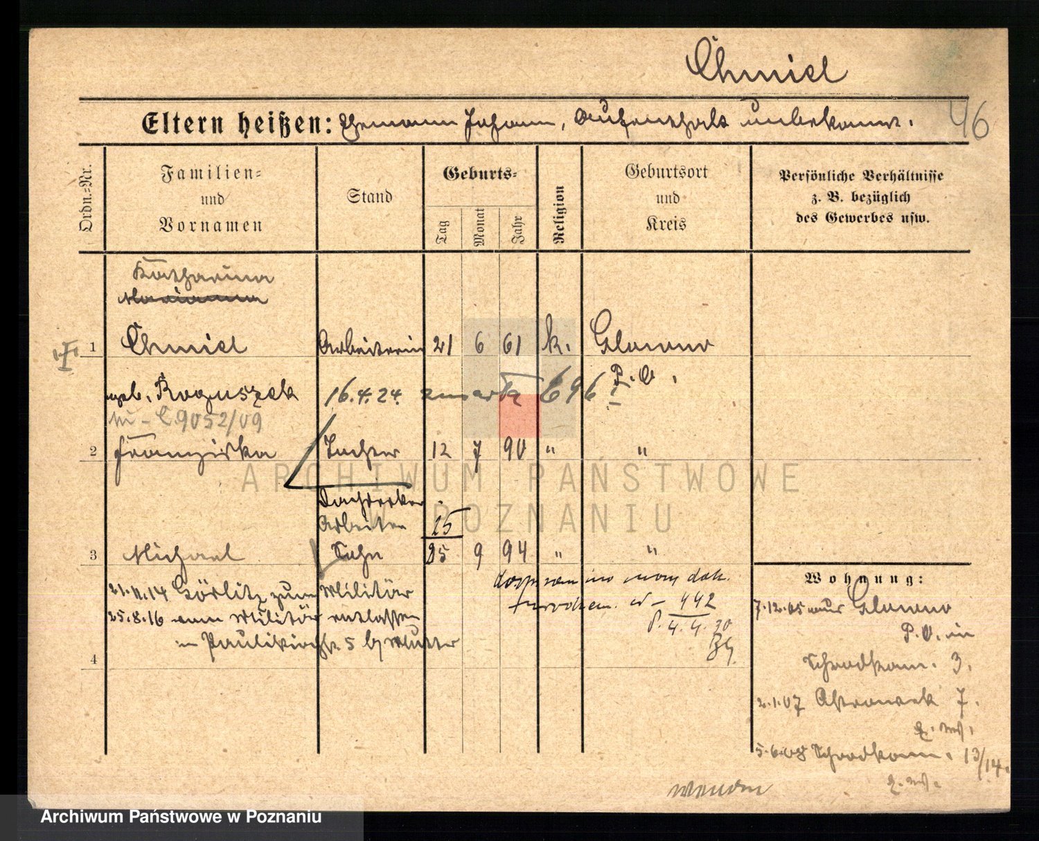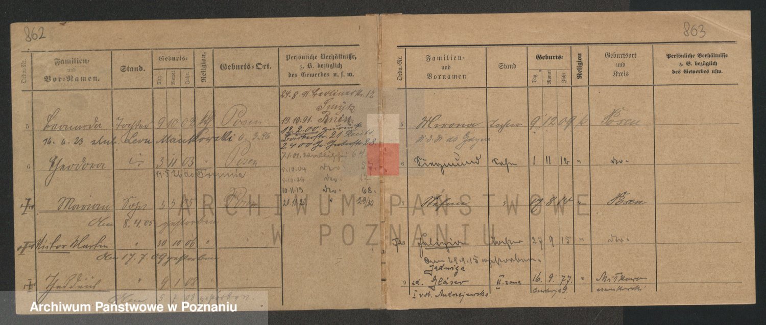 Podgląd karty osobowej dostępny jest po kliknięciu na nazwisko lub ikonkę karty. Można dokonywać powiększenia (ikony na górze) lub przechodzić między kolejnymi skanami (strzałki po bokach).