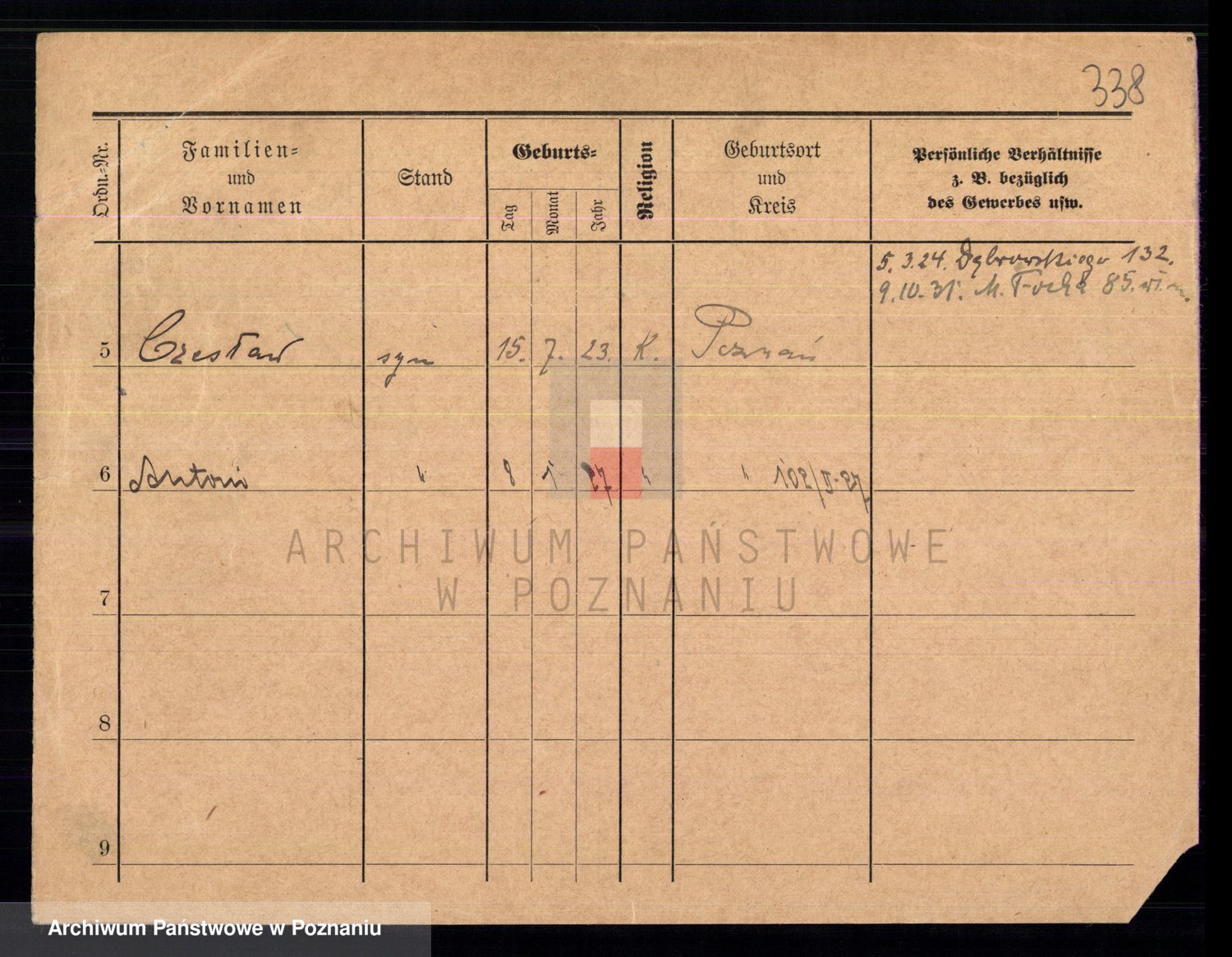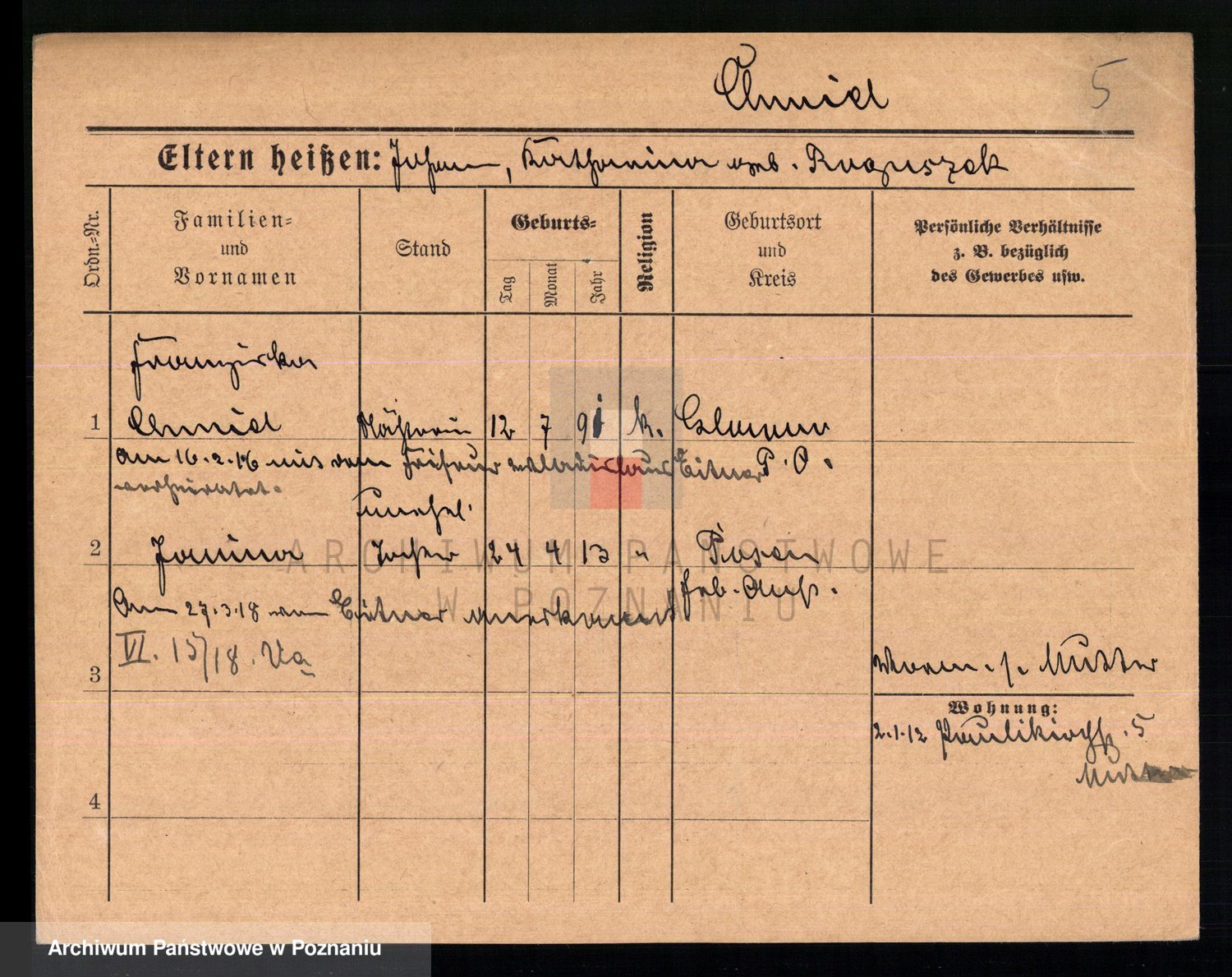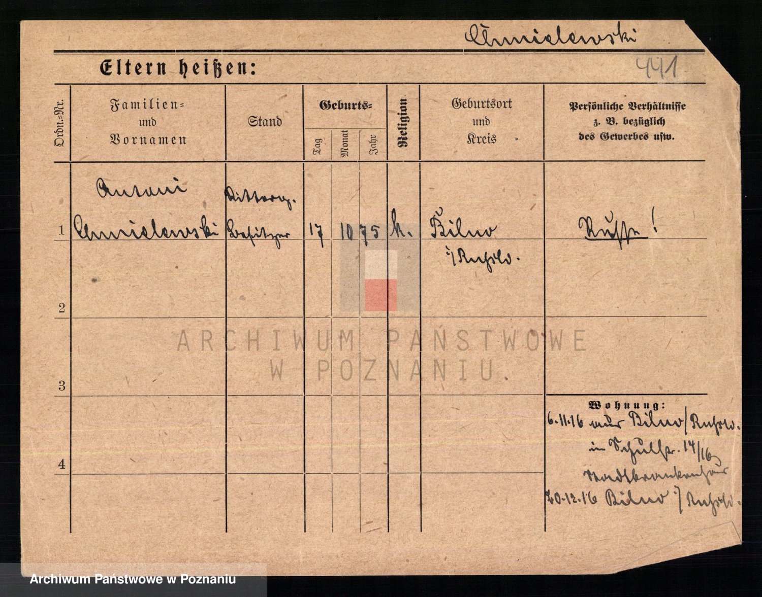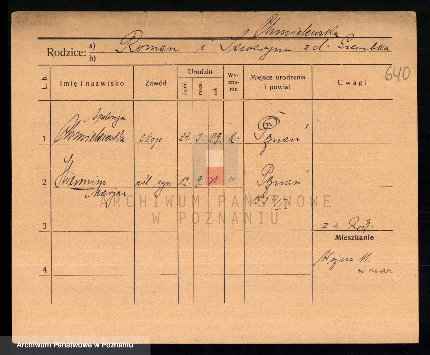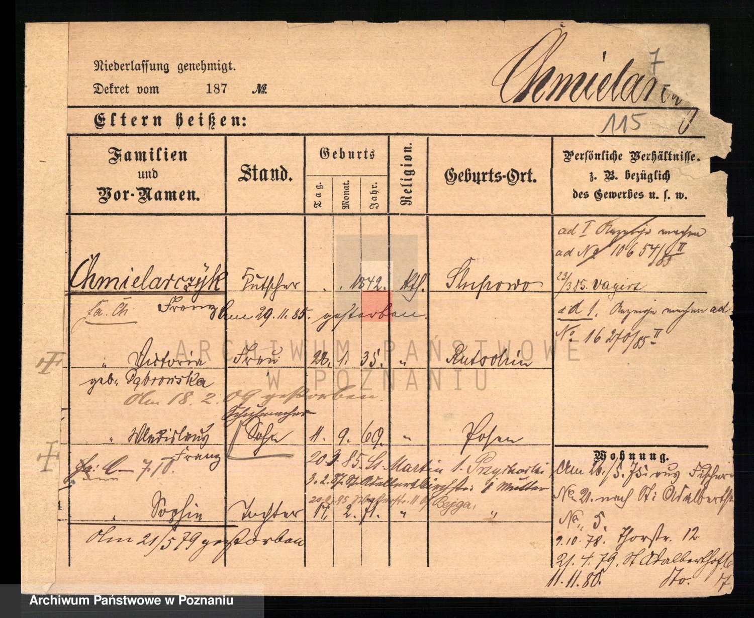 Podgląd karty osobowej dostępny jest po kliknięciu na nazwisko lub ikonkę karty. Można dokonywać powiększenia (ikony na górze) lub przechodzić między kolejnymi skanami (strzałki po bokach).