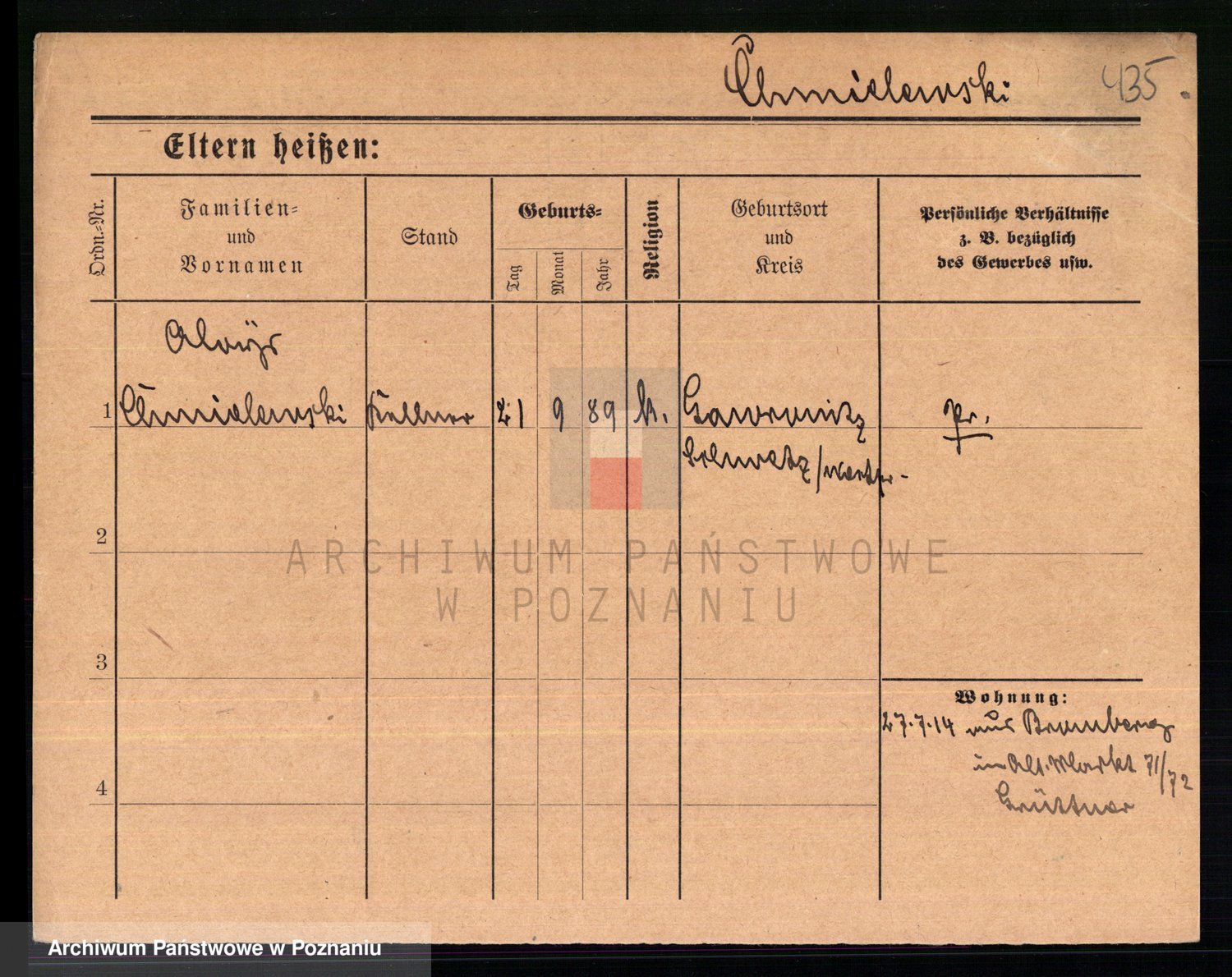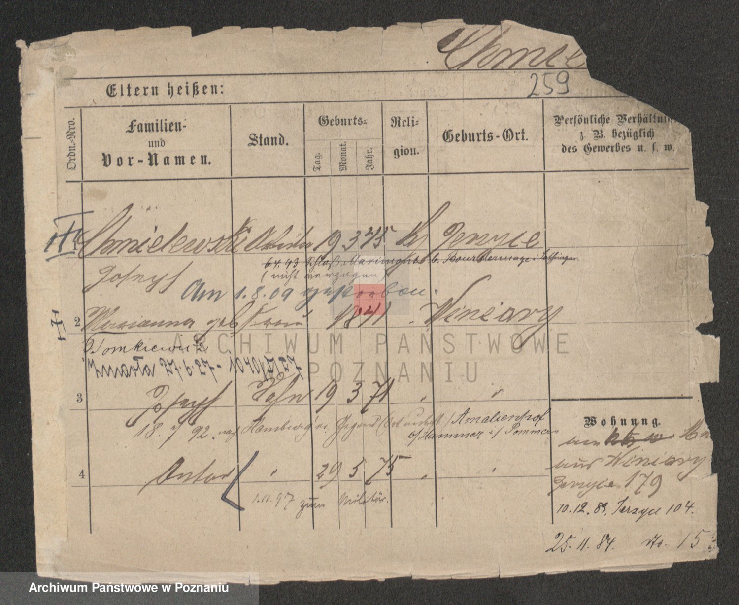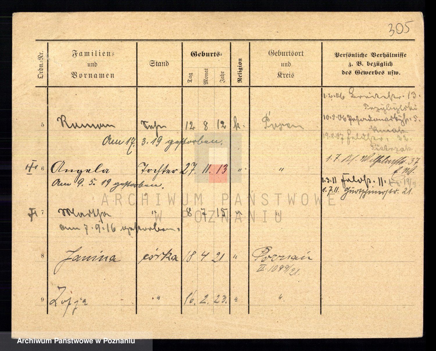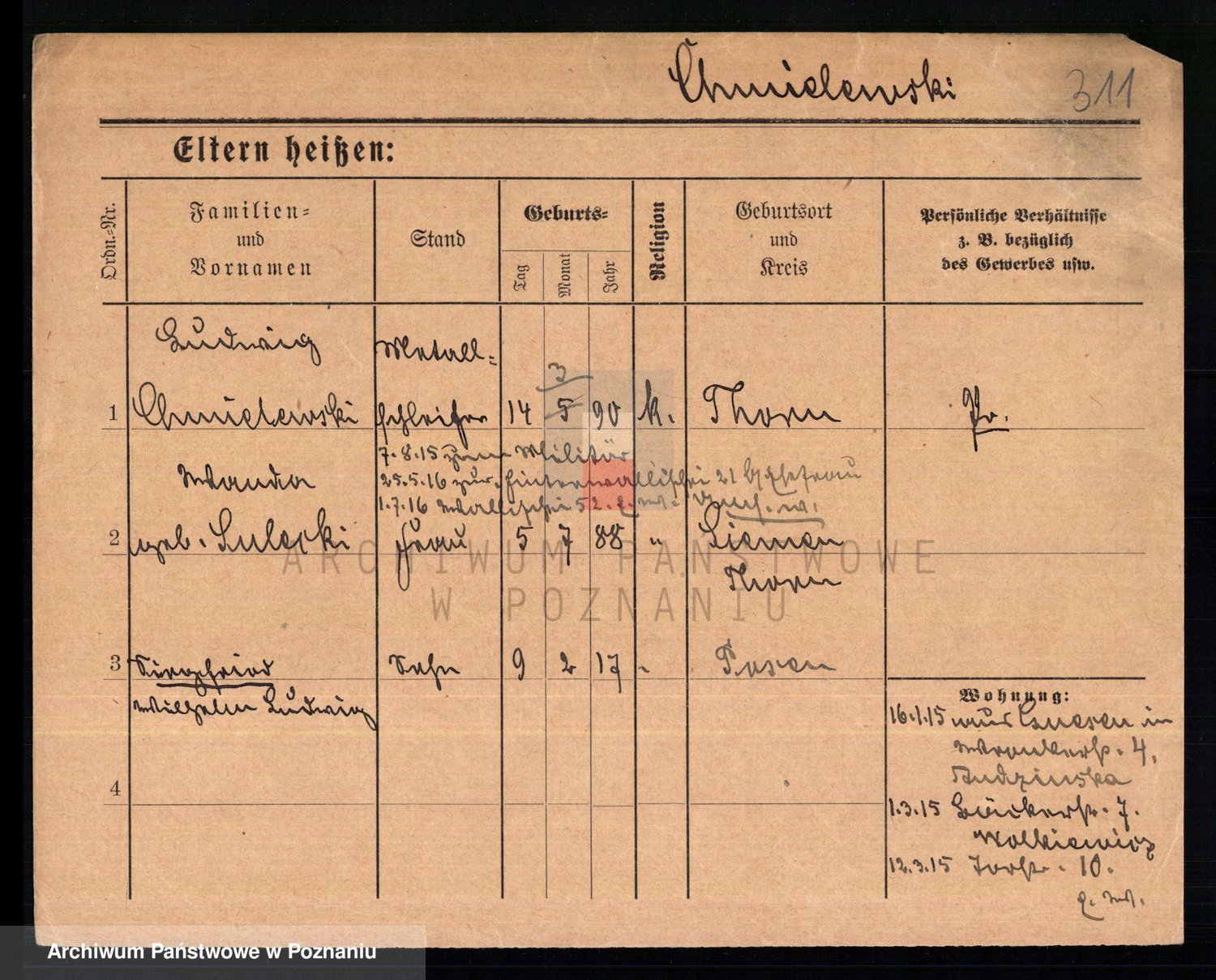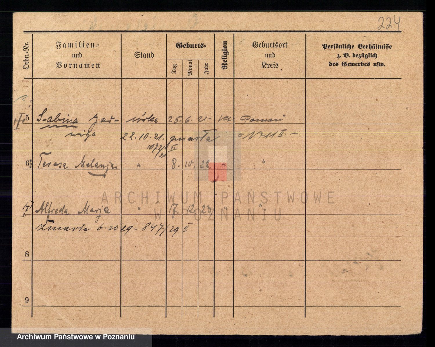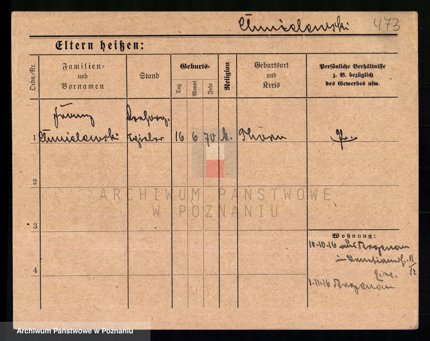 Podgląd karty osobowej dostępny jest po kliknięciu na nazwisko lub ikonkę karty. Można dokonywać powiększenia (ikony na górze) lub przechodzić między kolejnymi skanami (strzałki po bokach).