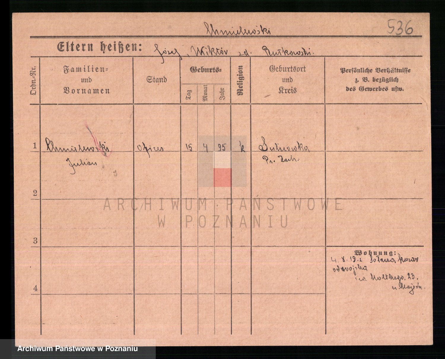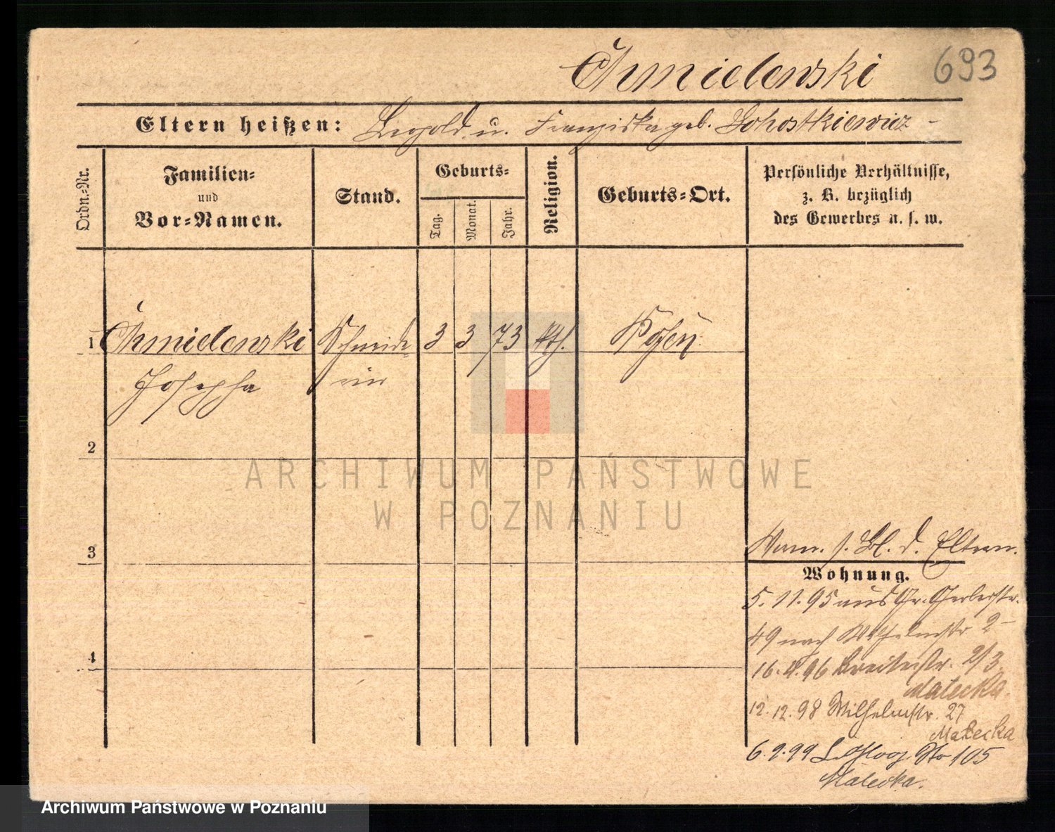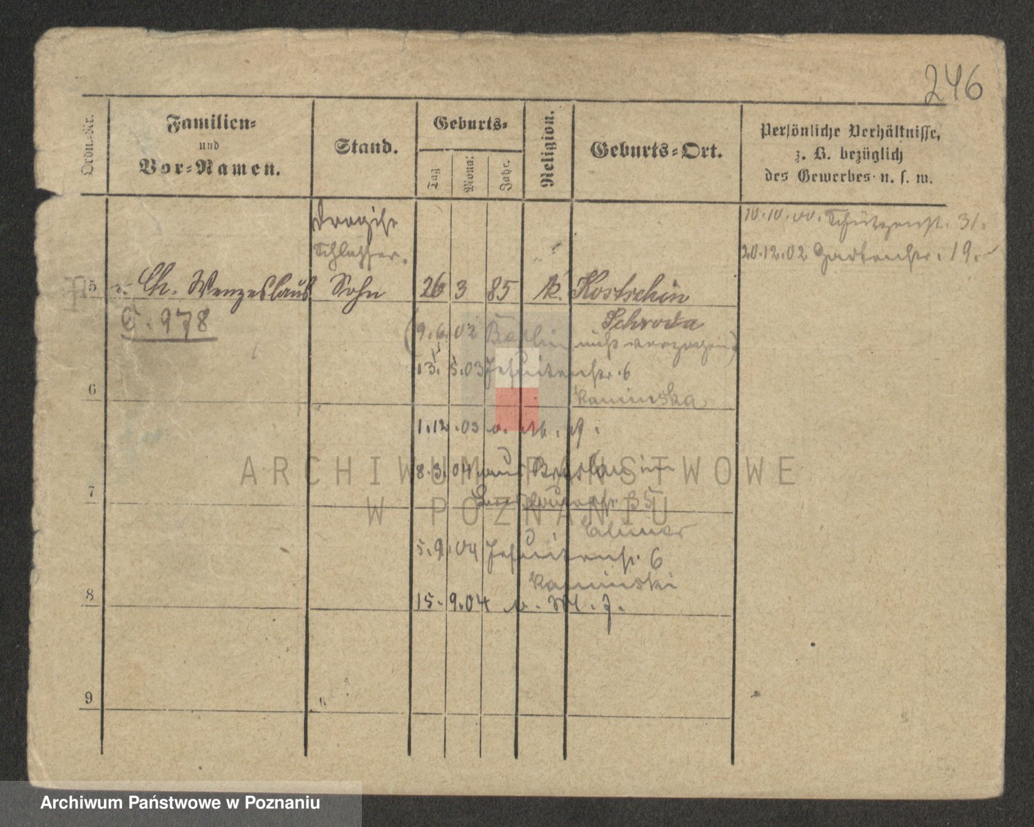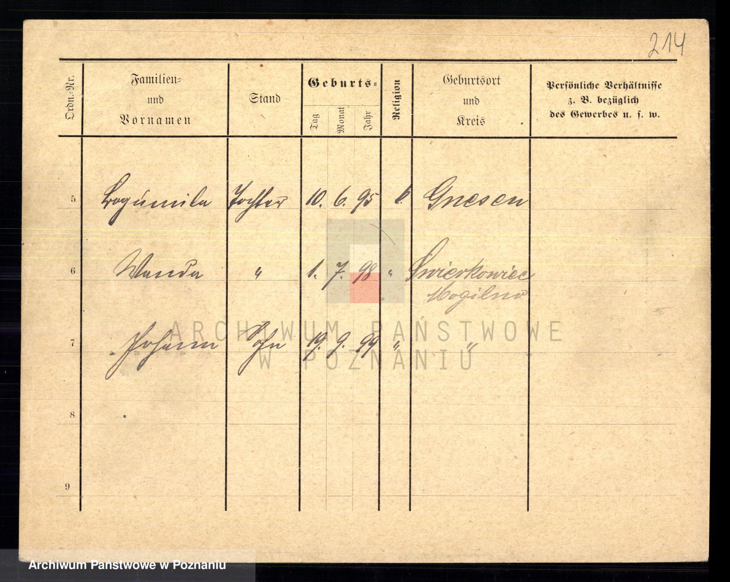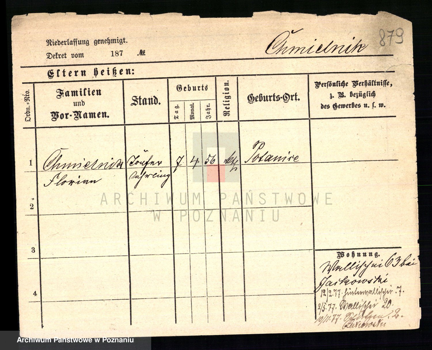 Podgląd karty osobowej dostępny jest po kliknięciu na nazwisko lub ikonkę karty. Można dokonywać powiększenia (ikony na górze) lub przechodzić między kolejnymi skanami (strzałki po bokach).