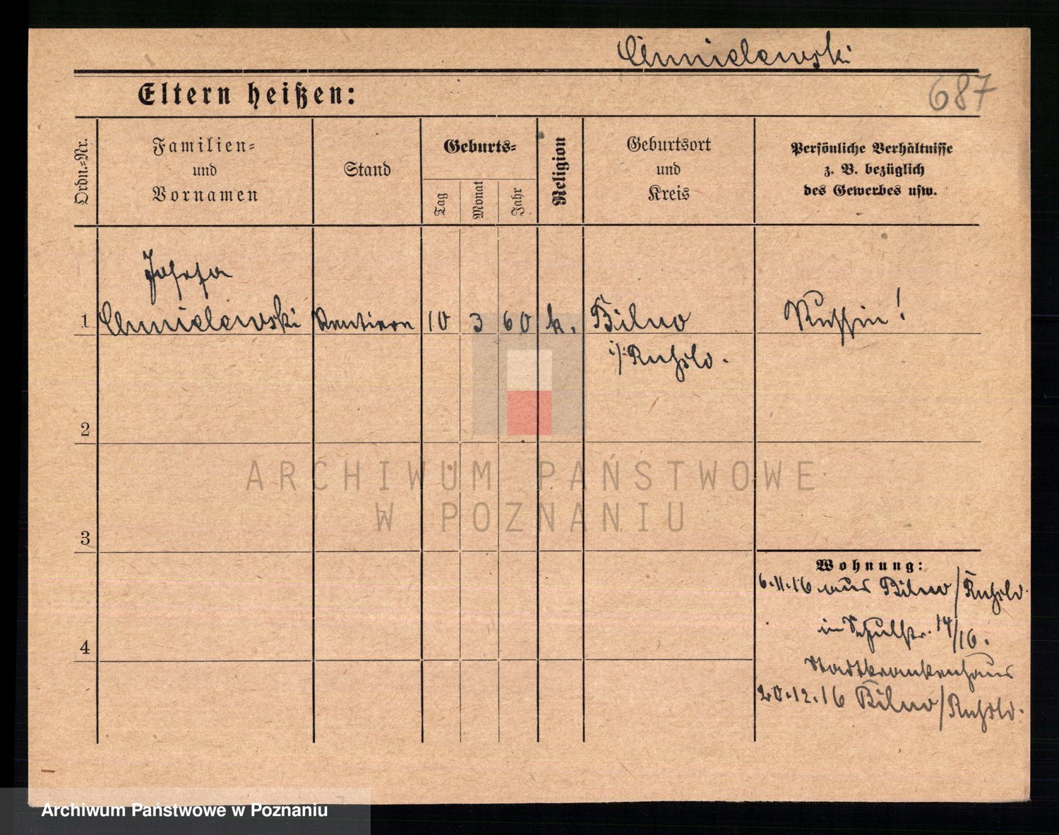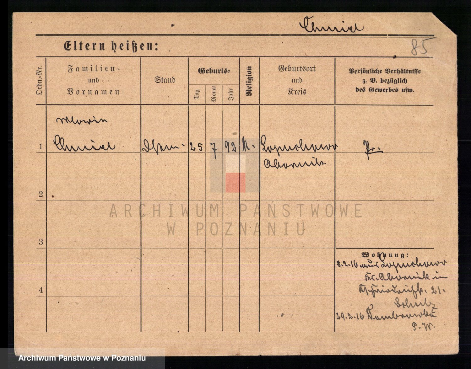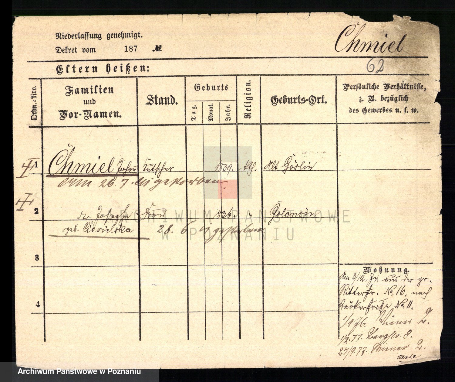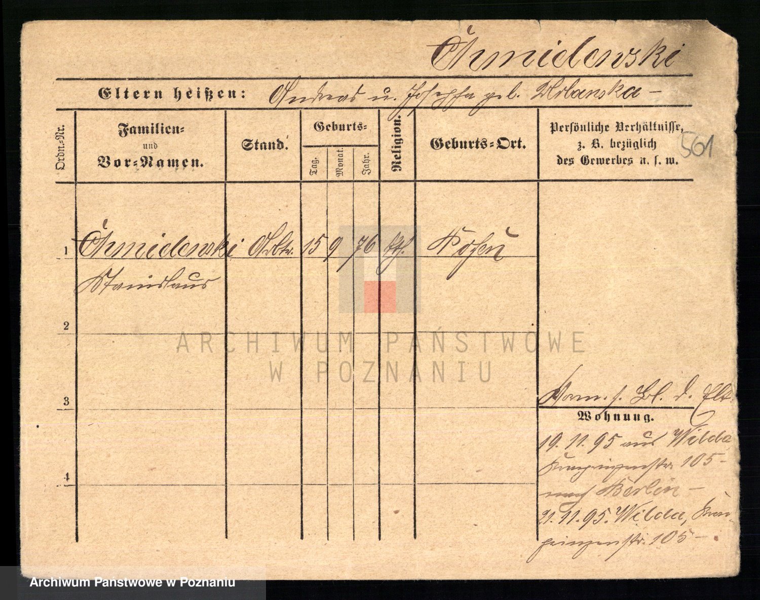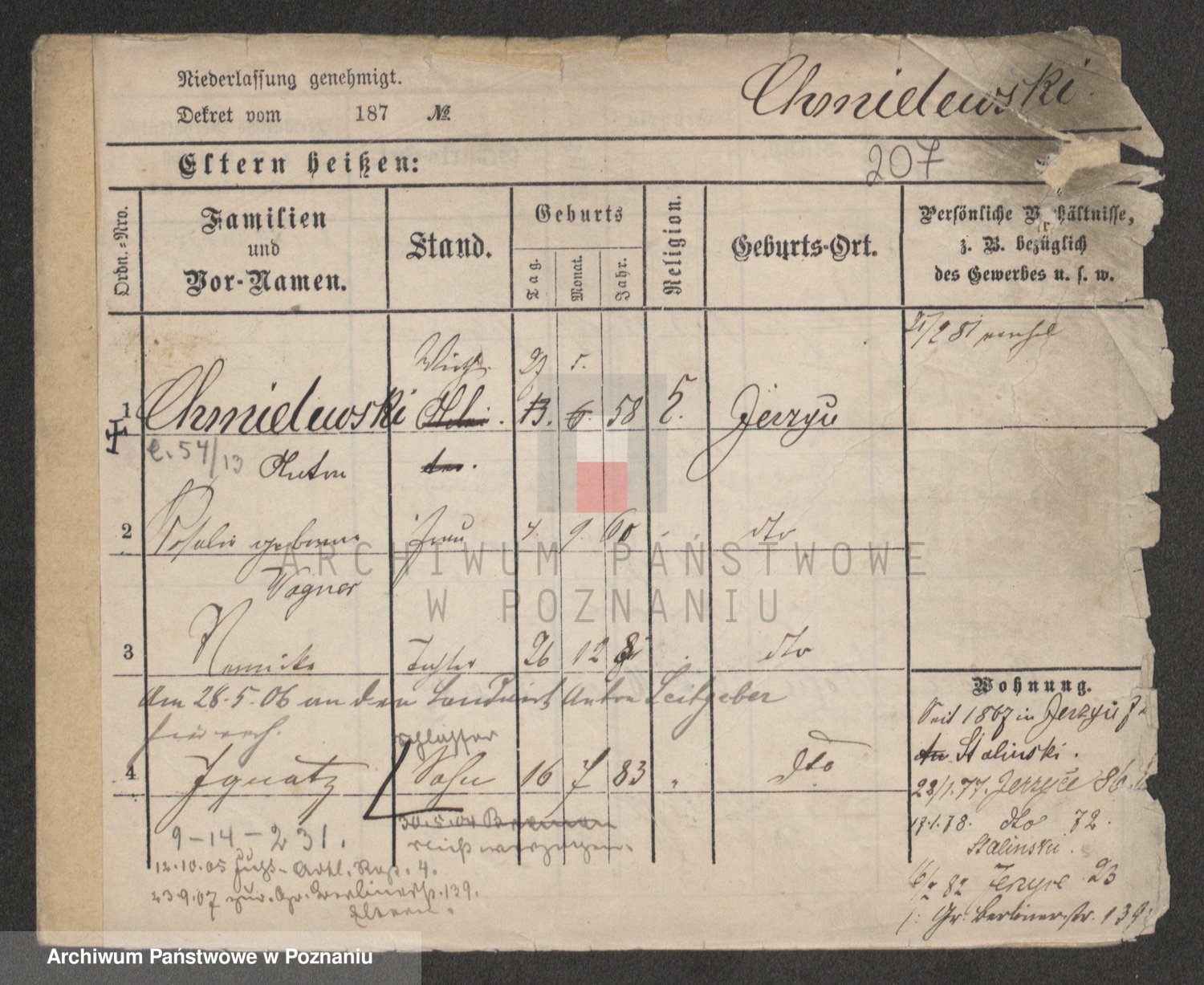 Podgląd karty osobowej dostępny jest po kliknięciu na nazwisko lub ikonkę karty. Można dokonywać powiększenia (ikony na górze) lub przechodzić między kolejnymi skanami (strzałki po bokach).