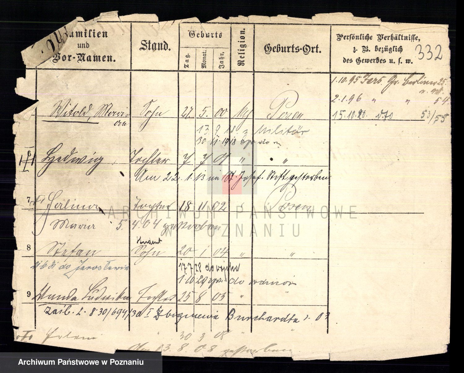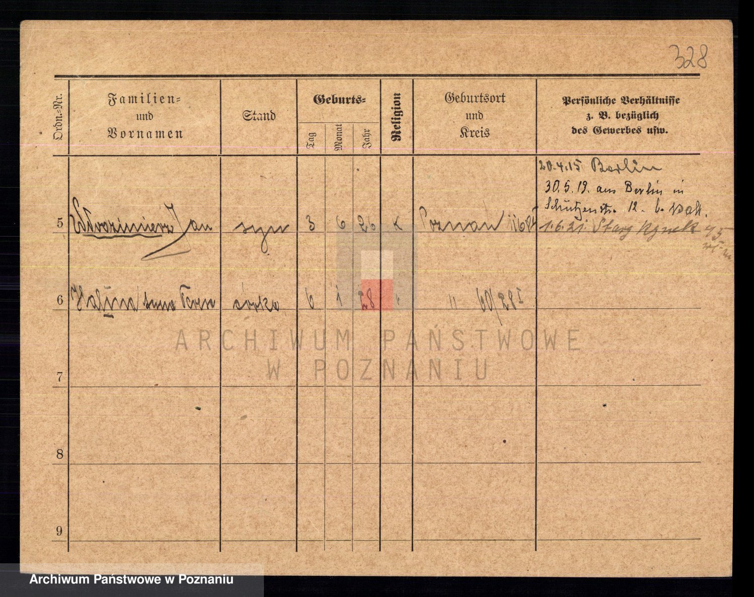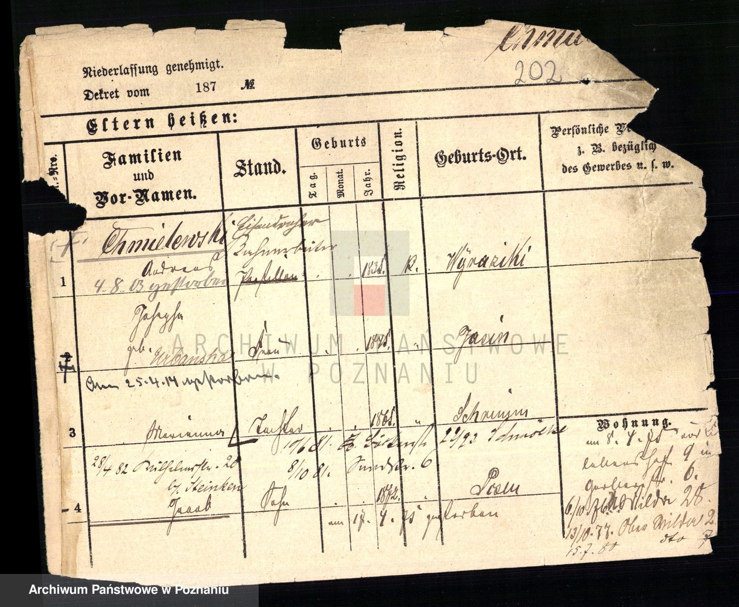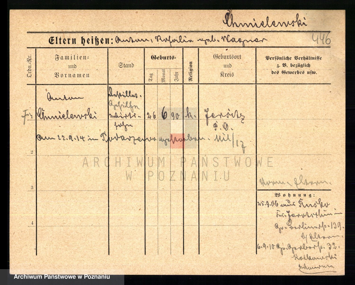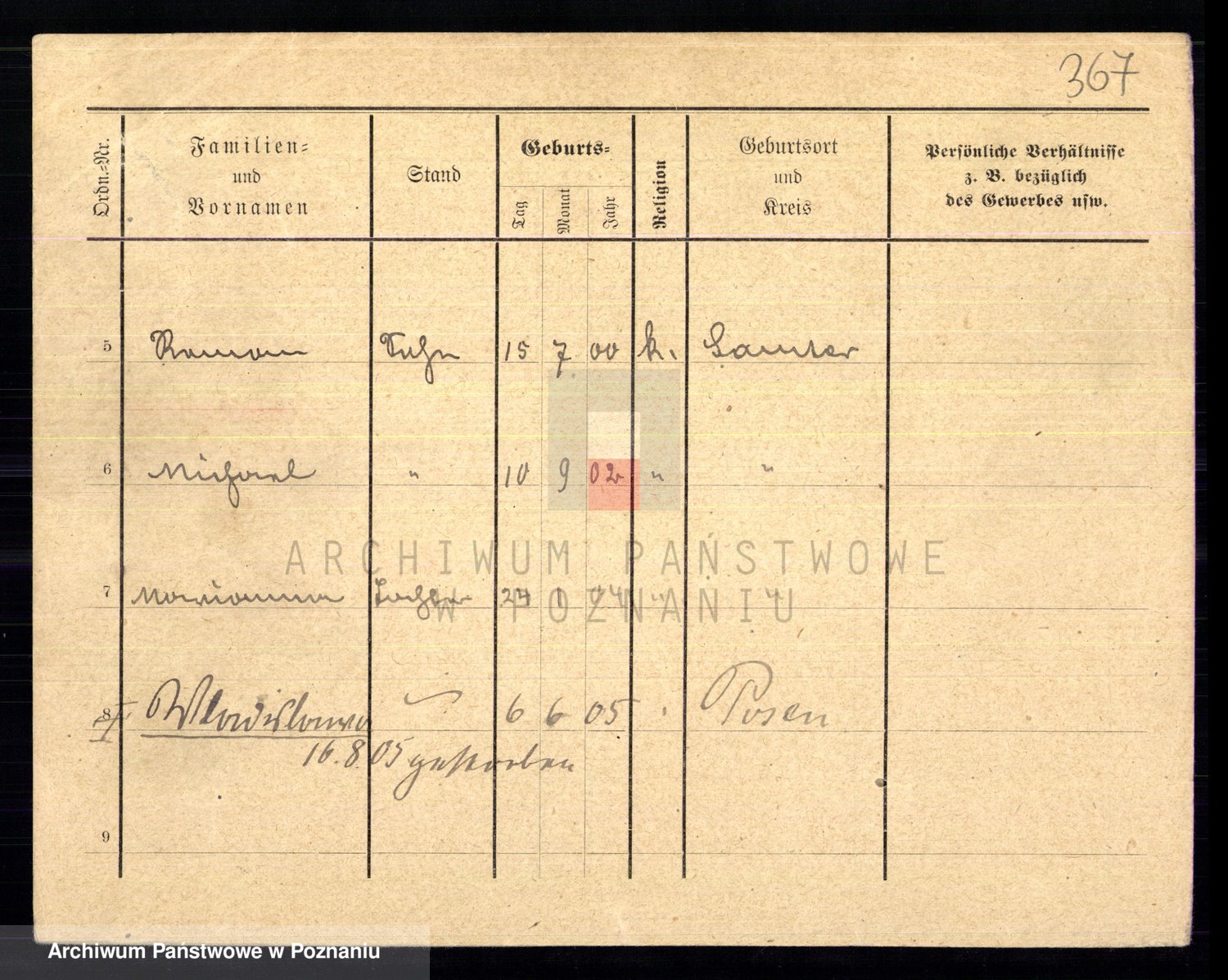 Podgląd karty osobowej dostępny jest po kliknięciu na nazwisko lub ikonkę karty. Można dokonywać powiększenia (ikony na górze) lub przechodzić między kolejnymi skanami (strzałki po bokach).