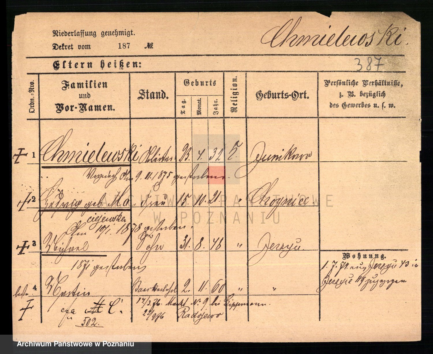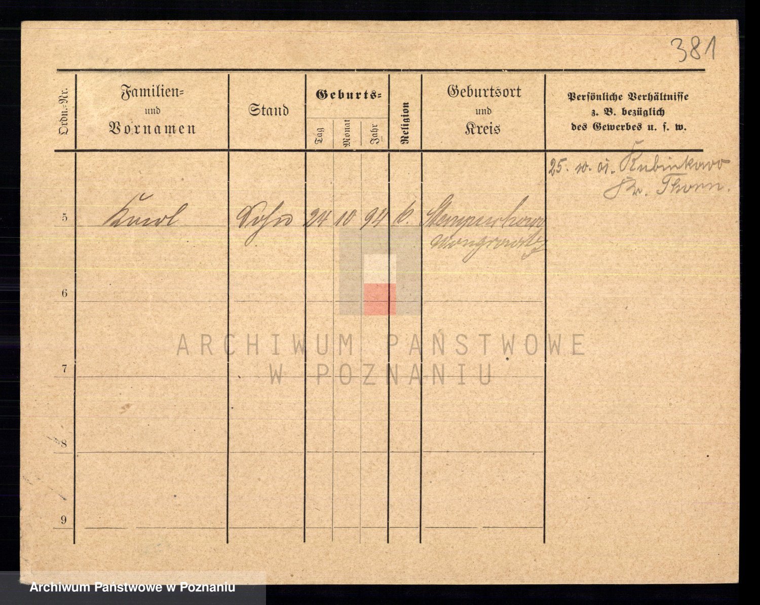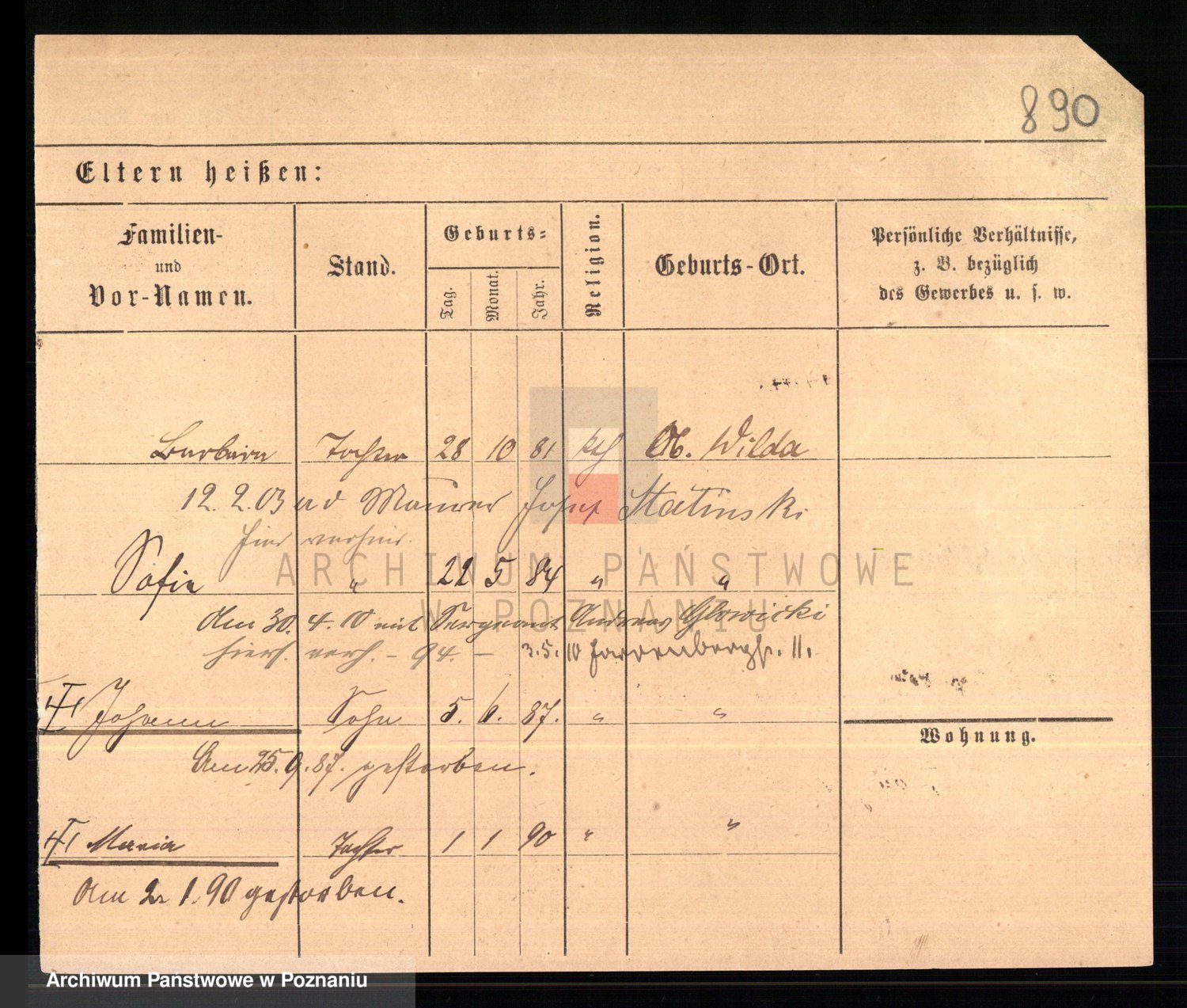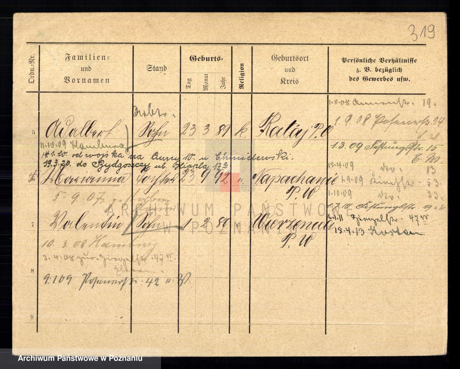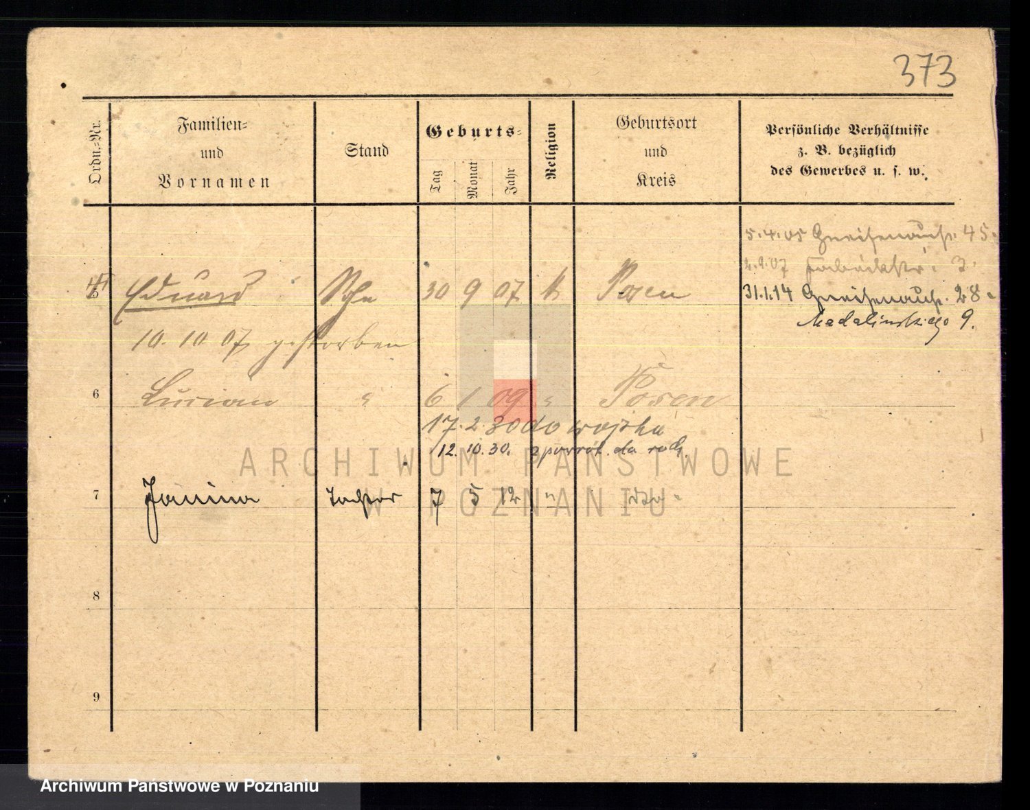 Podgląd karty osobowej dostępny jest po kliknięciu na nazwisko lub ikonkę karty. Można dokonywać powiększenia (ikony na górze) lub przechodzić między kolejnymi skanami (strzałki po bokach).