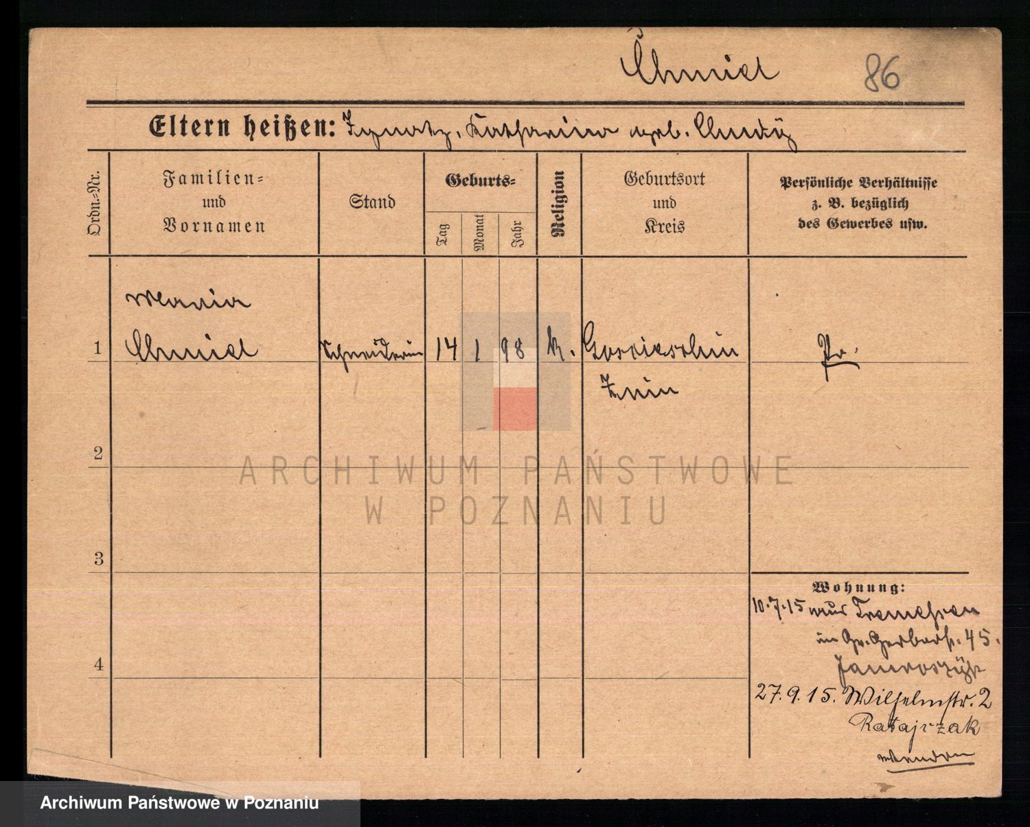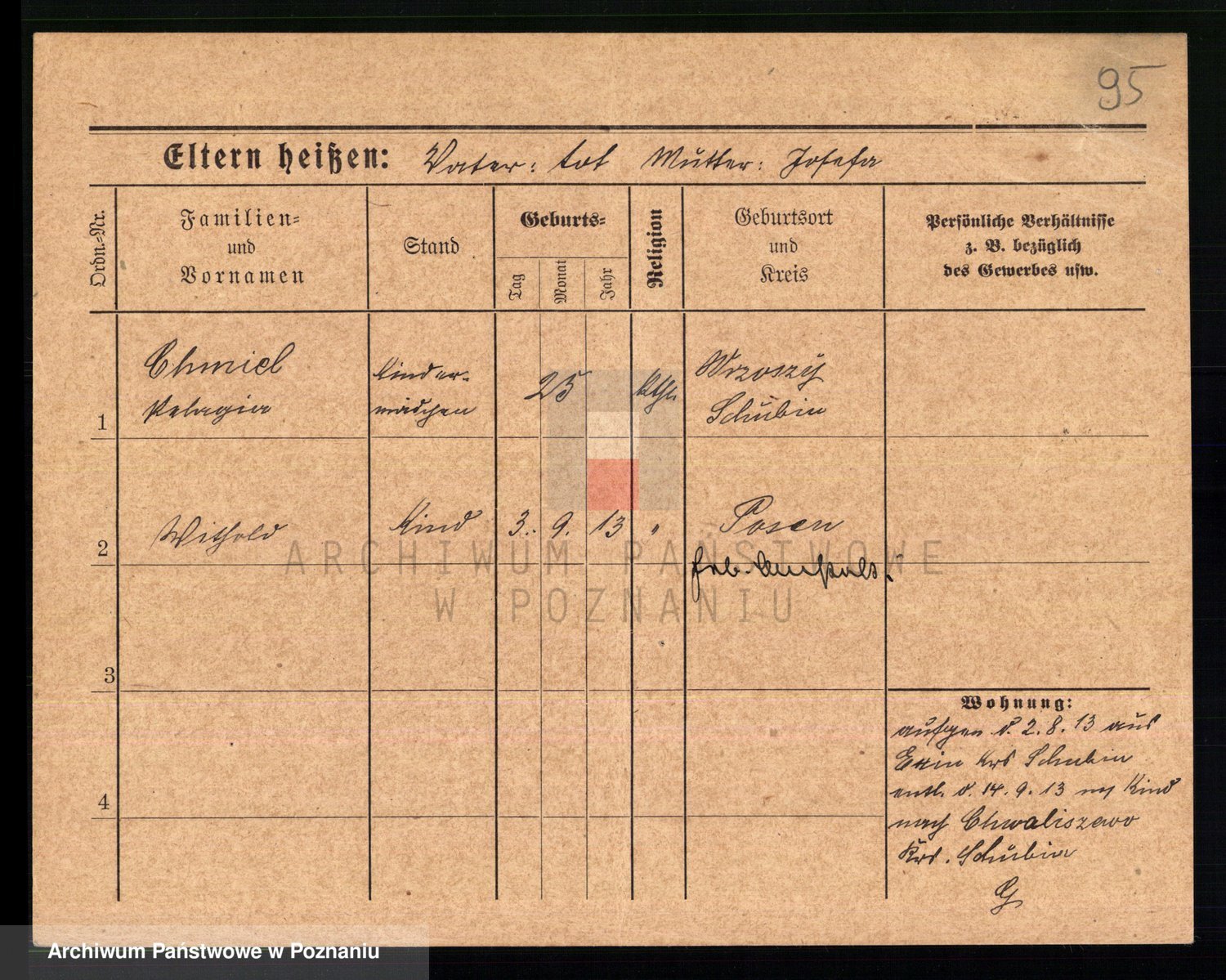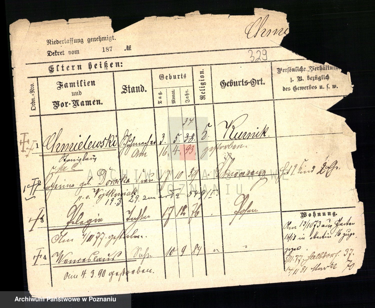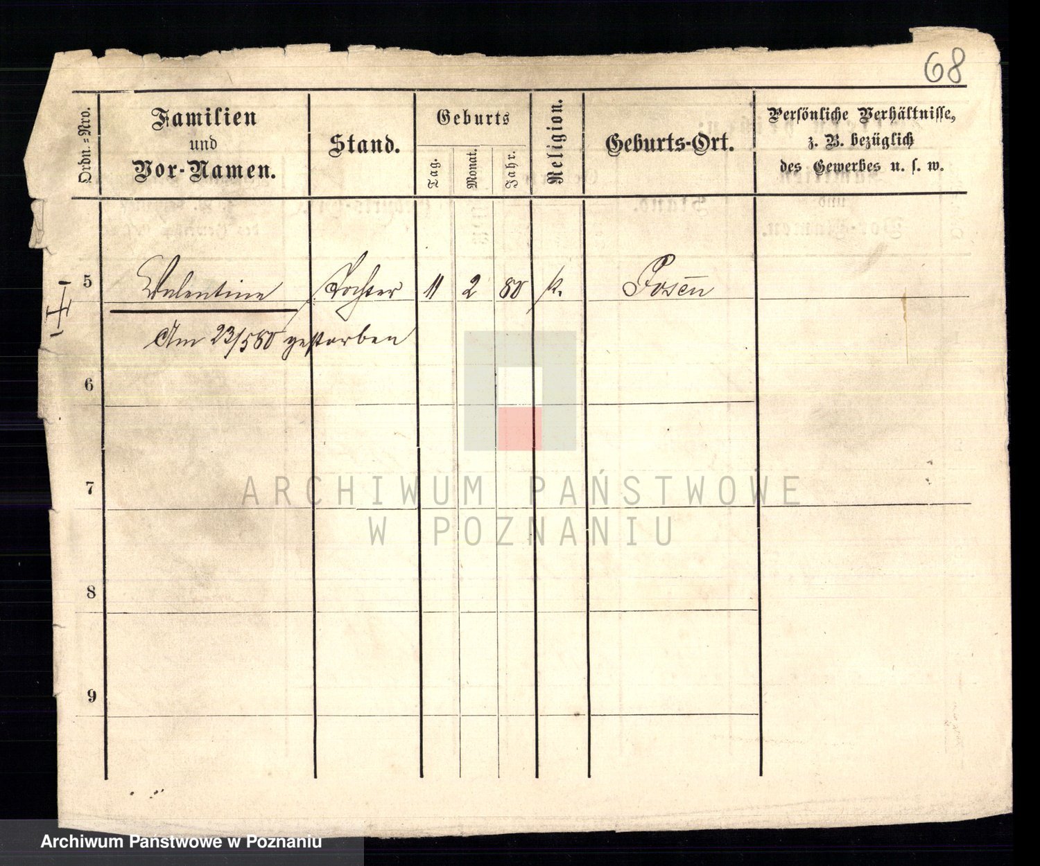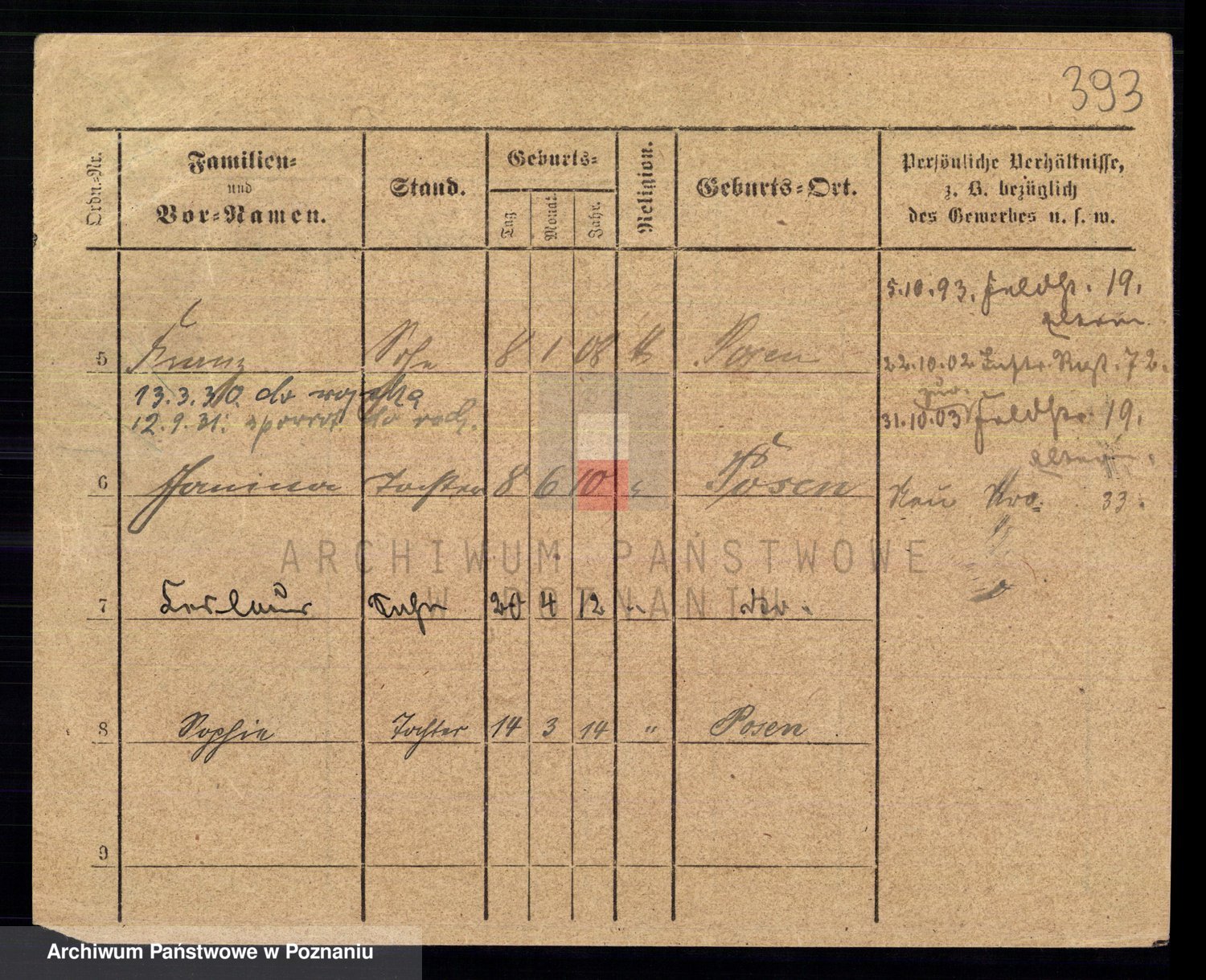 Podgląd karty osobowej dostępny jest po kliknięciu na nazwisko lub ikonkę karty. Można dokonywać powiększenia (ikony na górze) lub przechodzić między kolejnymi skanami (strzałki po bokach).