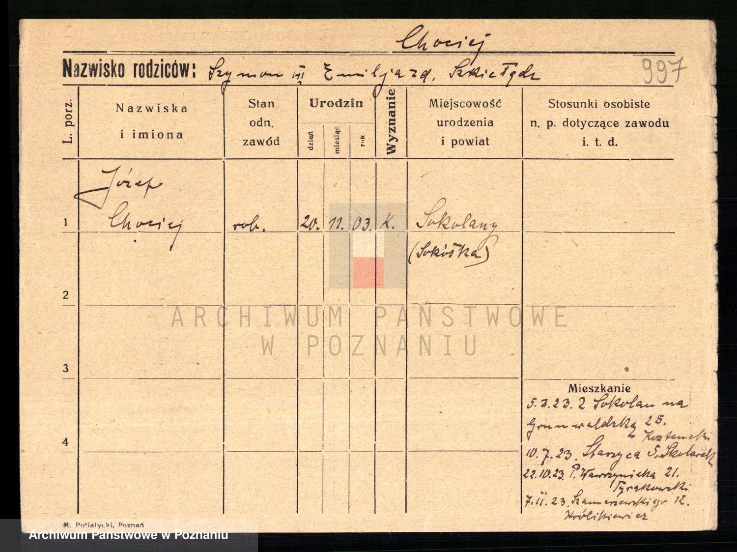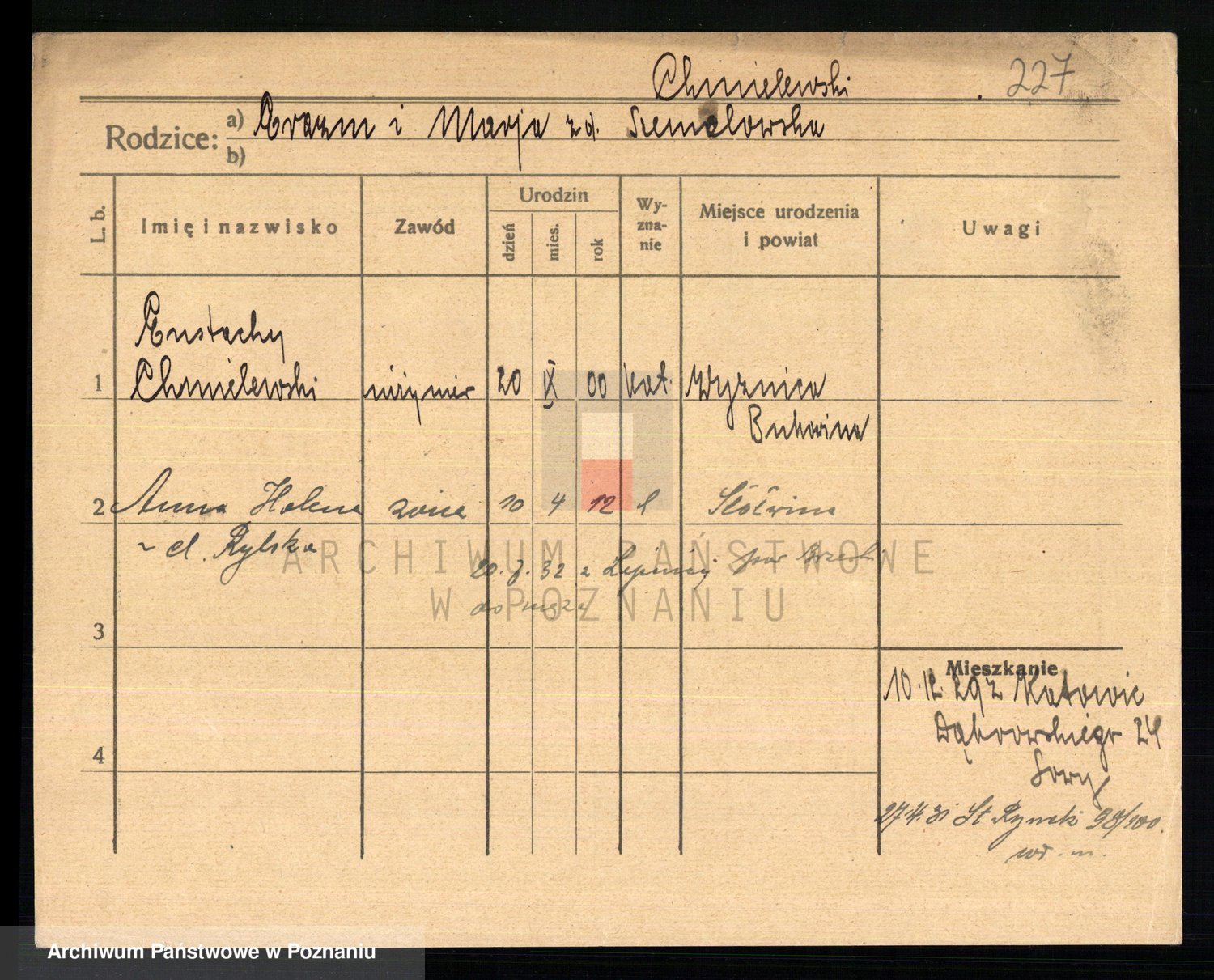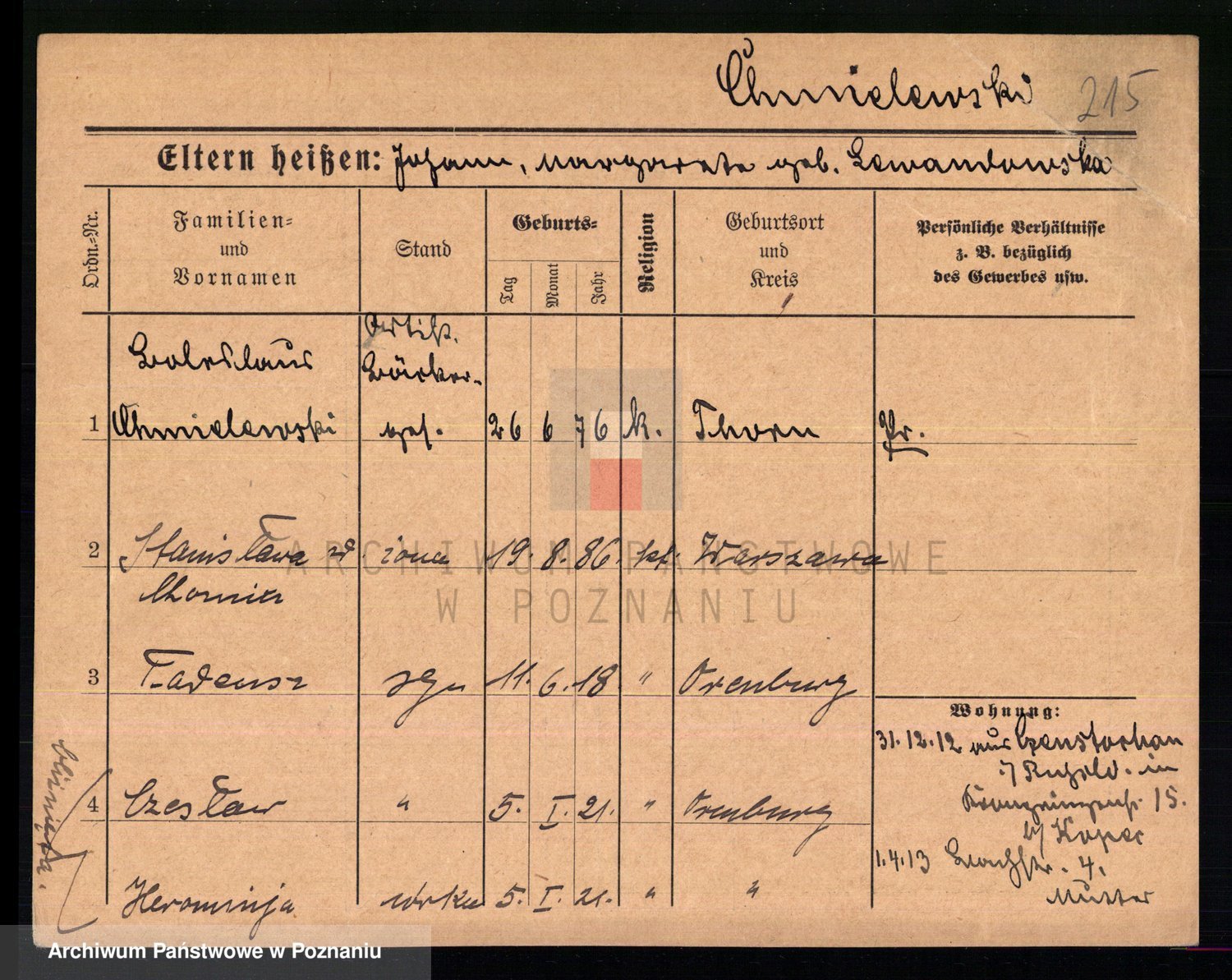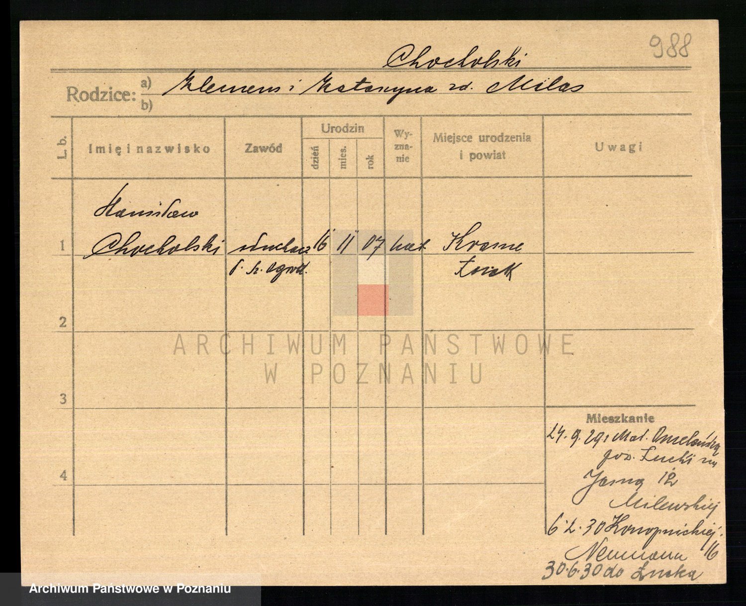 Chocieszynski, Stanislaus