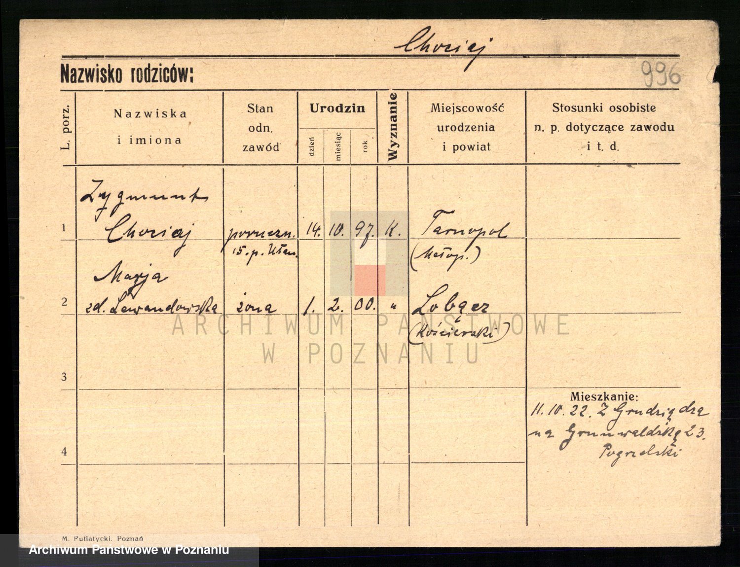 Chociszewski z.d. Dziembowska, Marianna