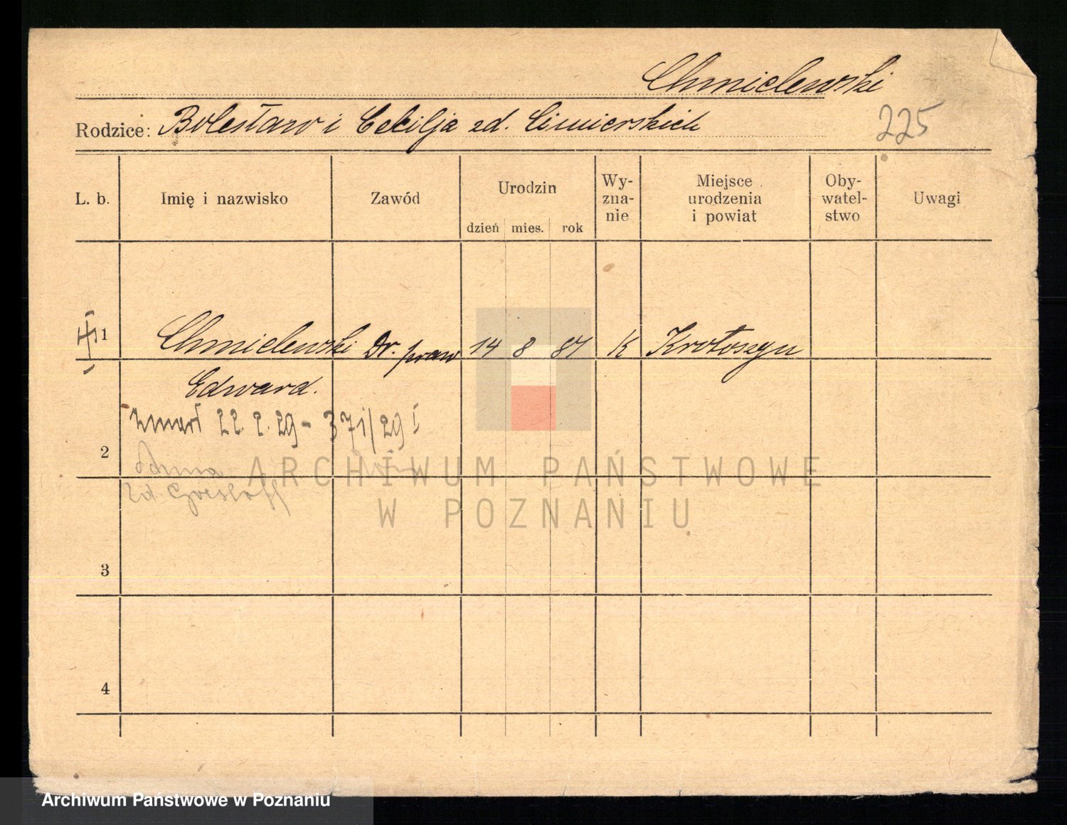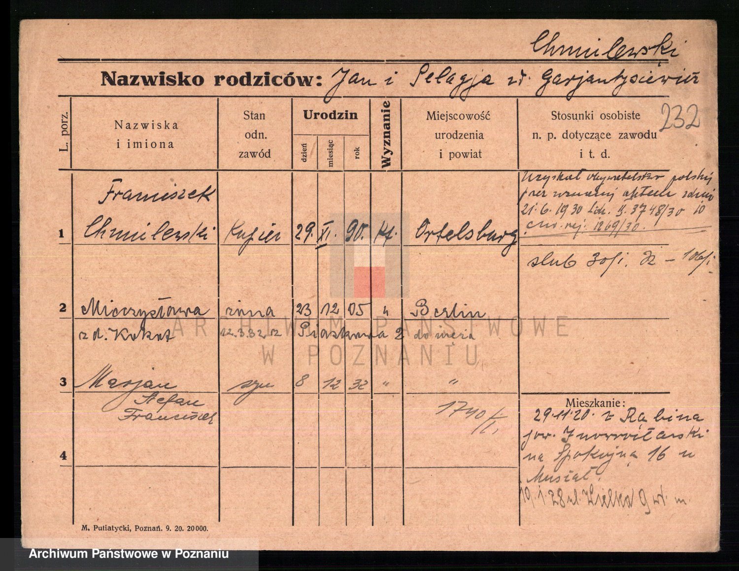 Chocieszynski z.d. Berchert I voto Andrzejewska, Pelagia