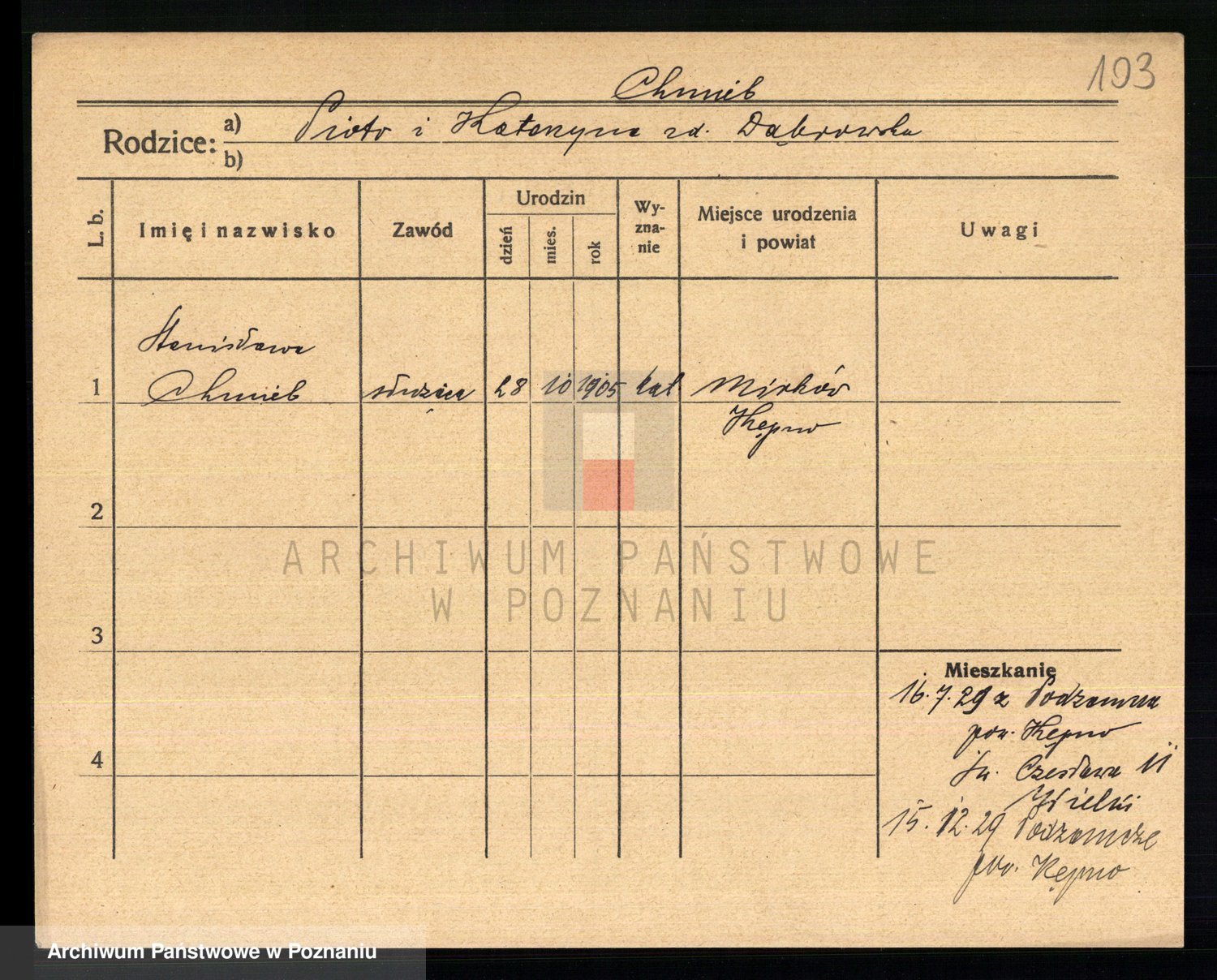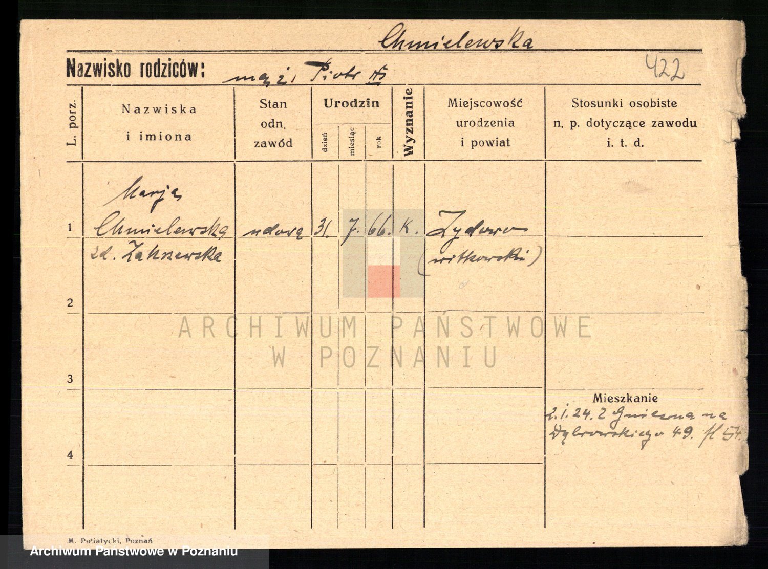 Chmiel z.d. Bukowska, Marie