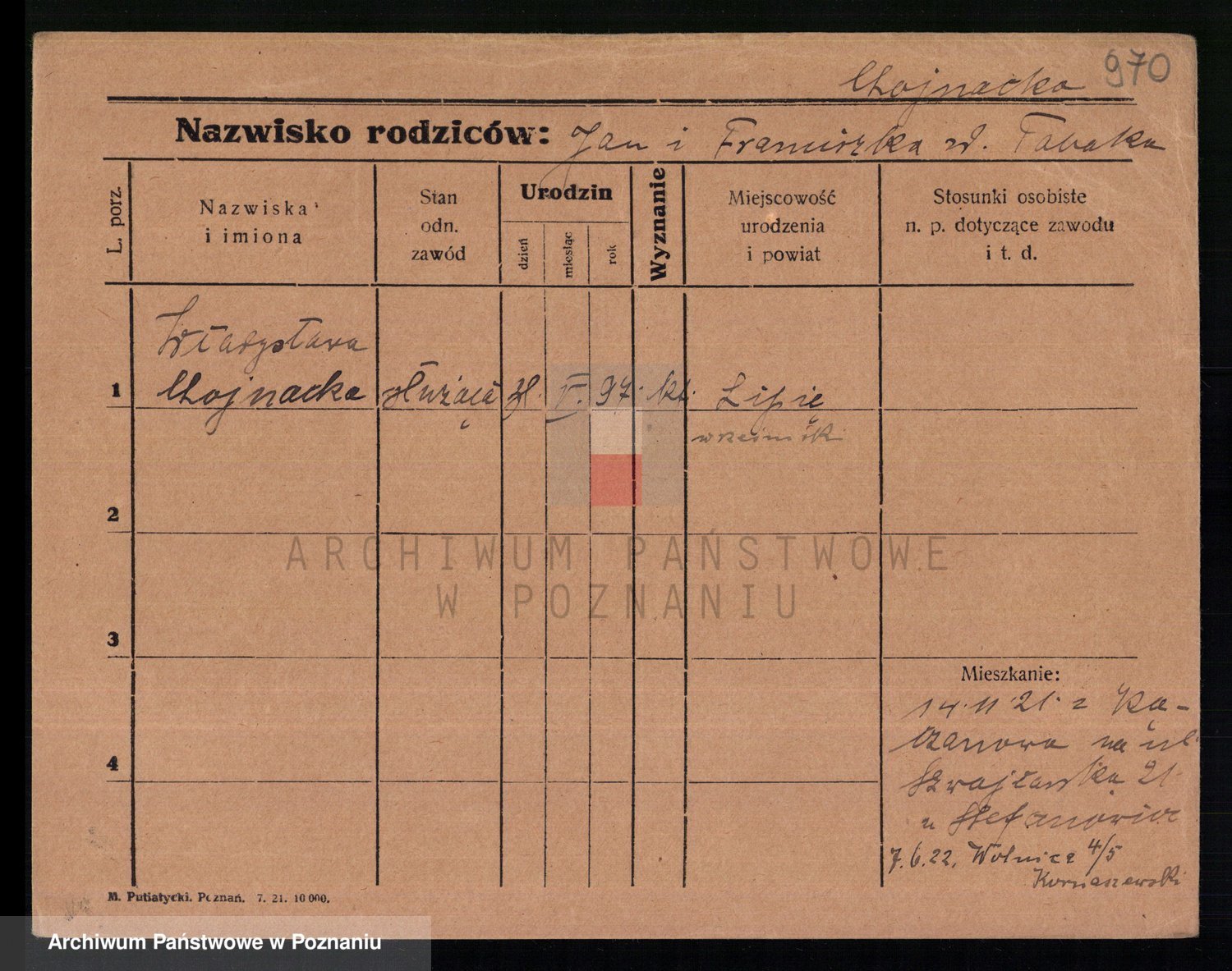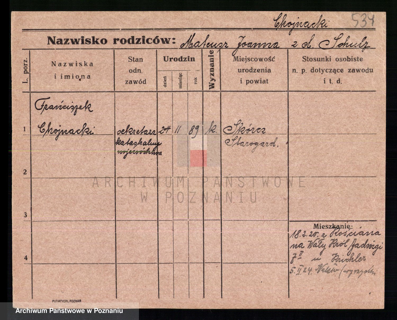Chojnicki z.d. Stach[…]ka, Jadwiga