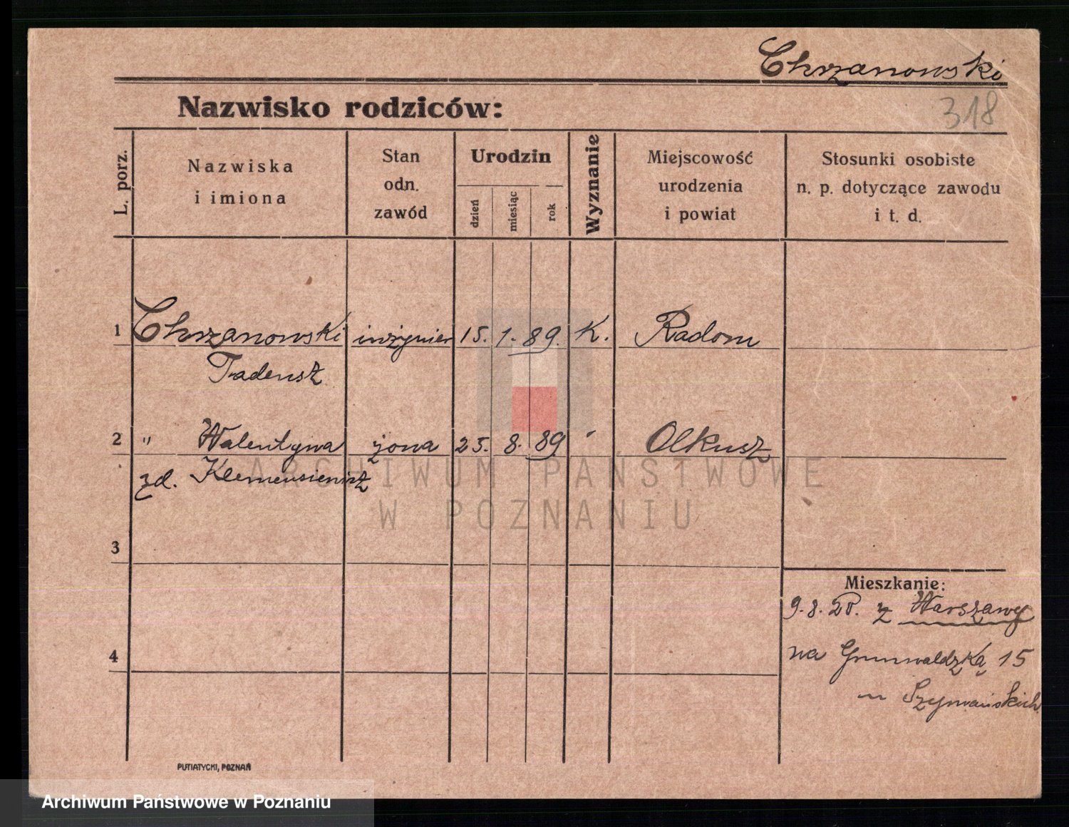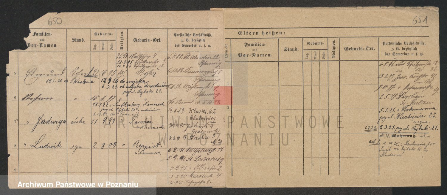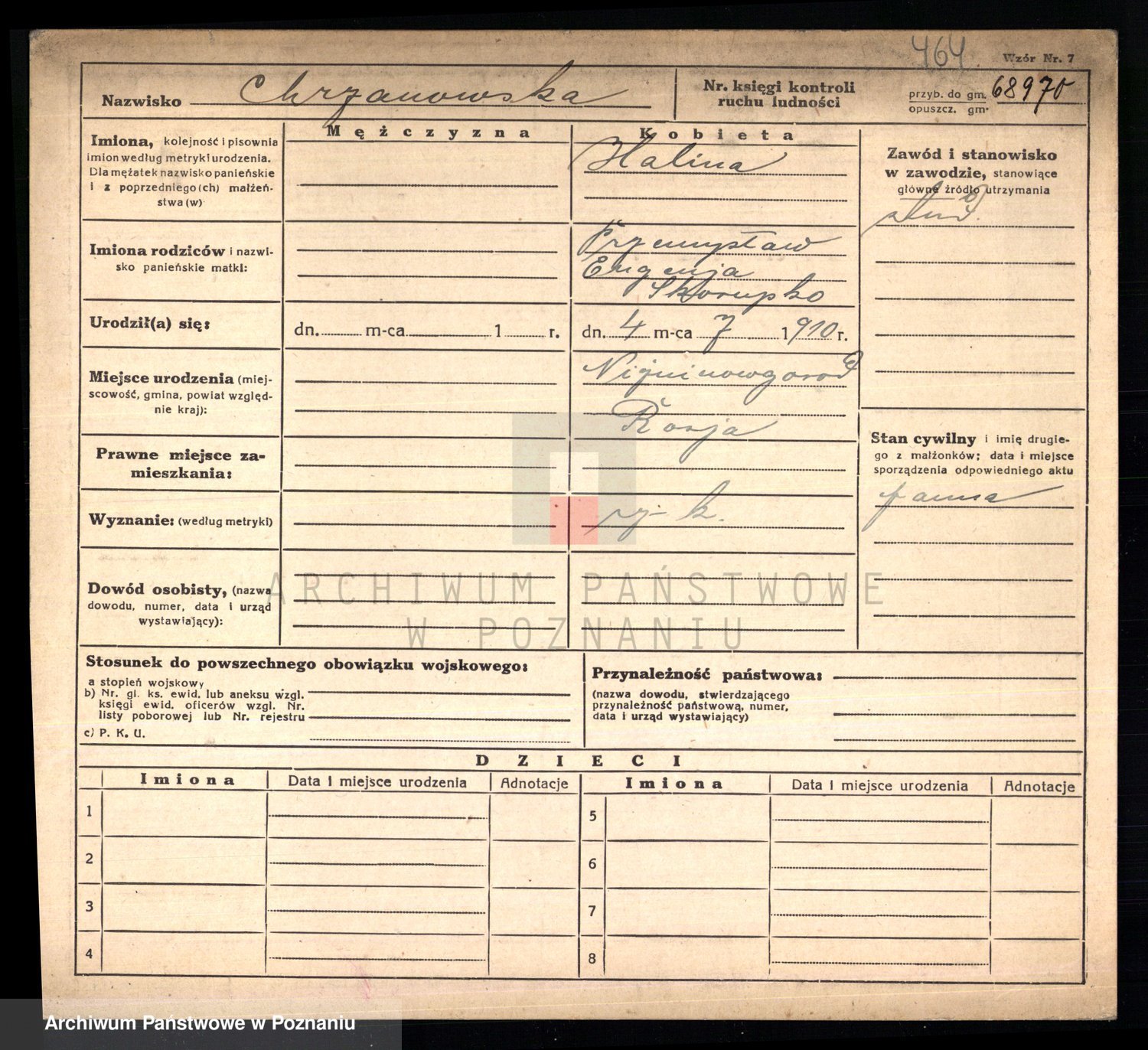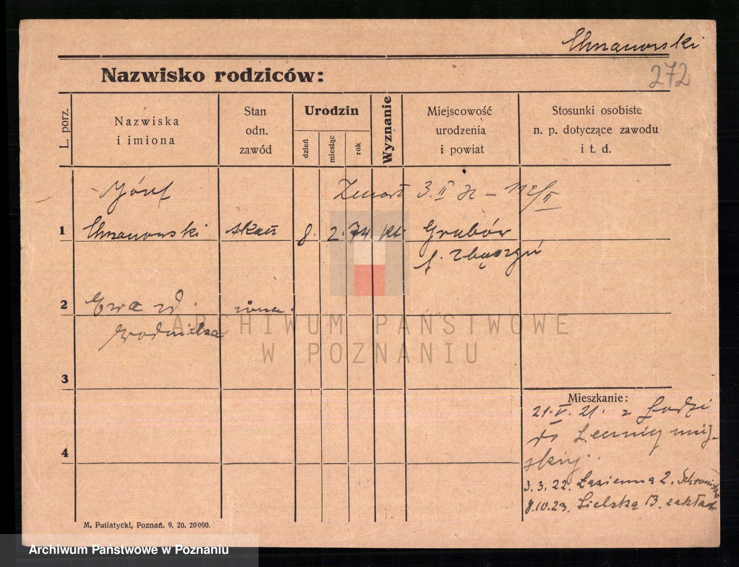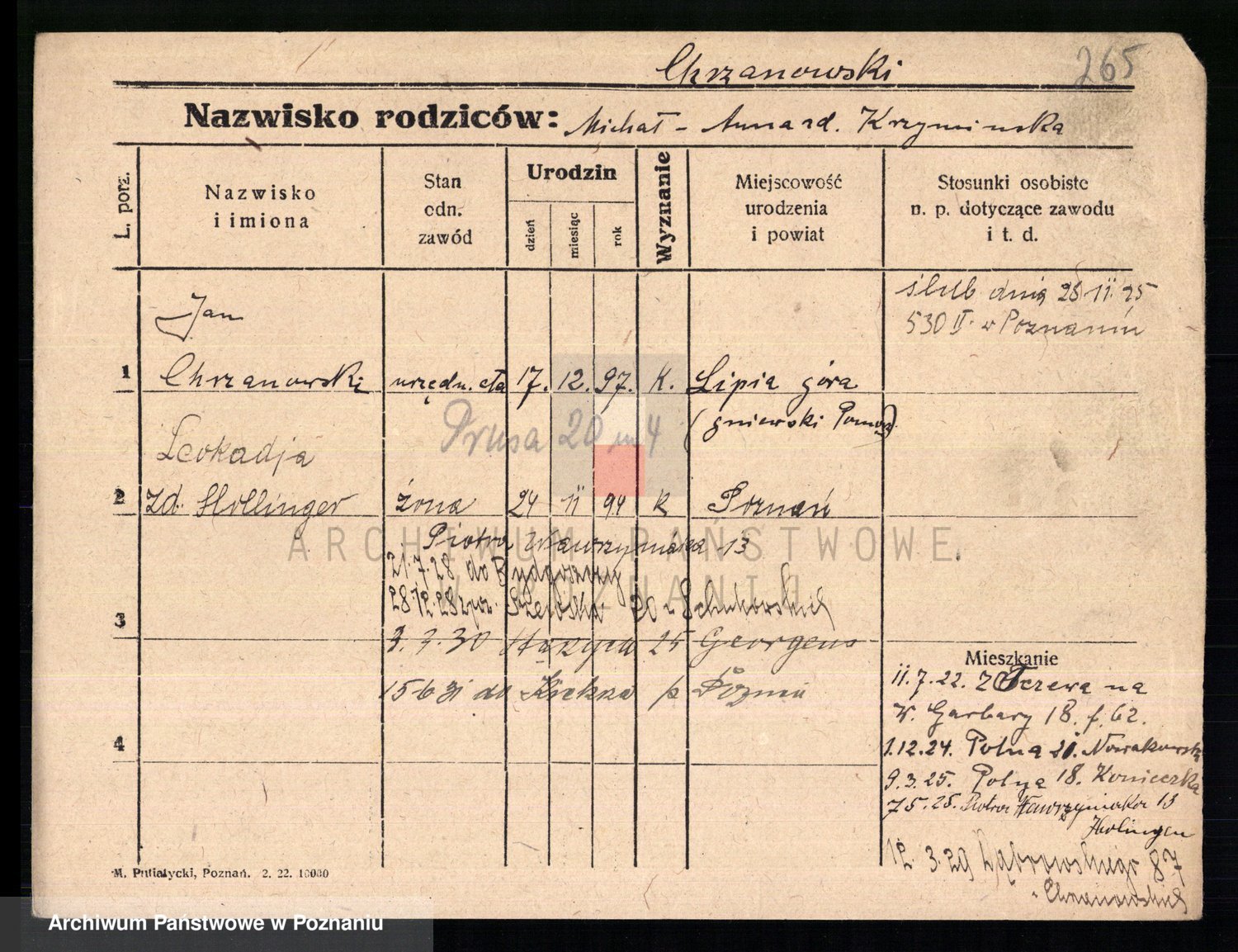 Podgląd karty osobowej dostępny jest po kliknięciu na nazwisko lub ikonkę karty. Można dokonywać powiększenia (ikony na górze) lub przechodzić między kolejnymi skanami (strzałki po bokach).