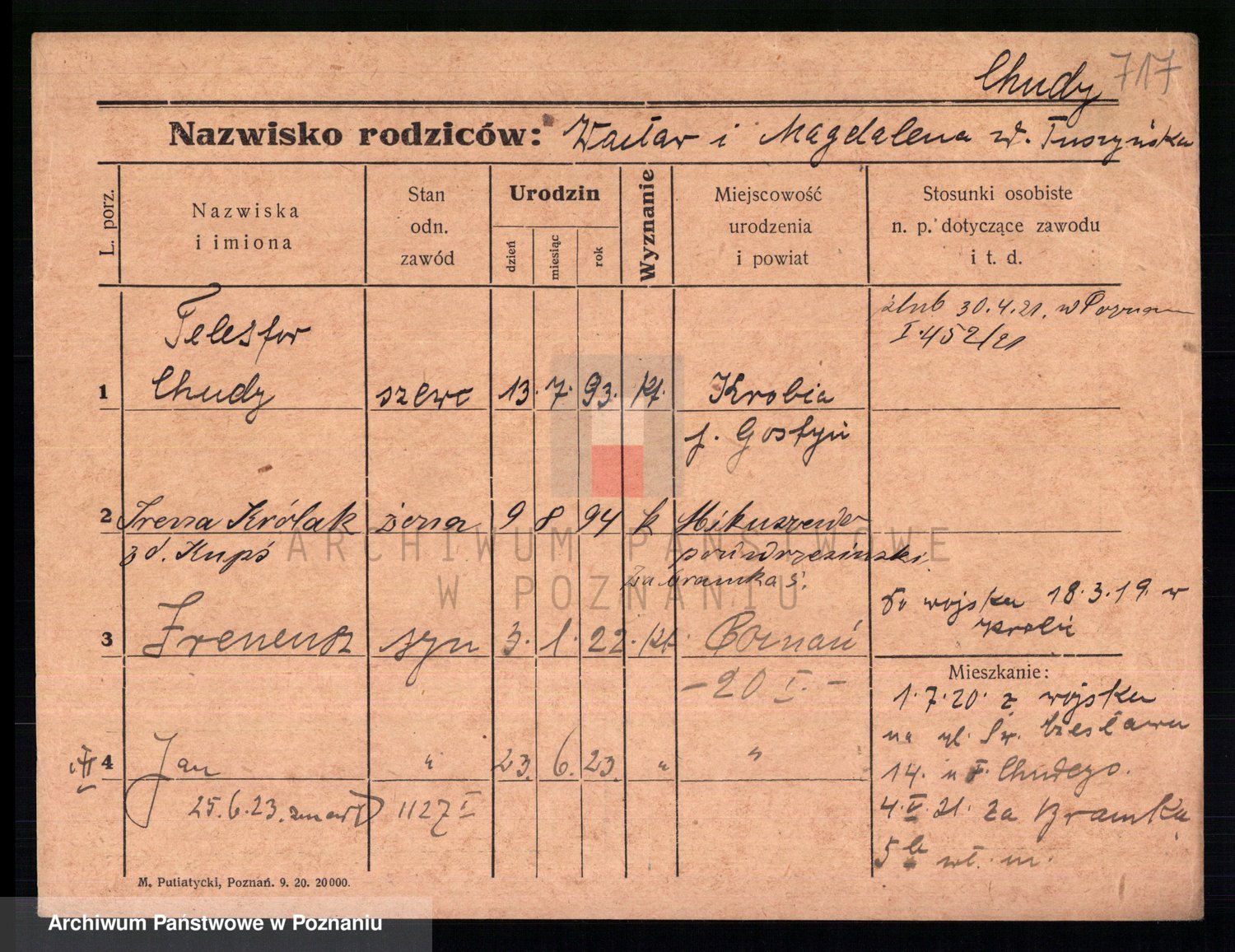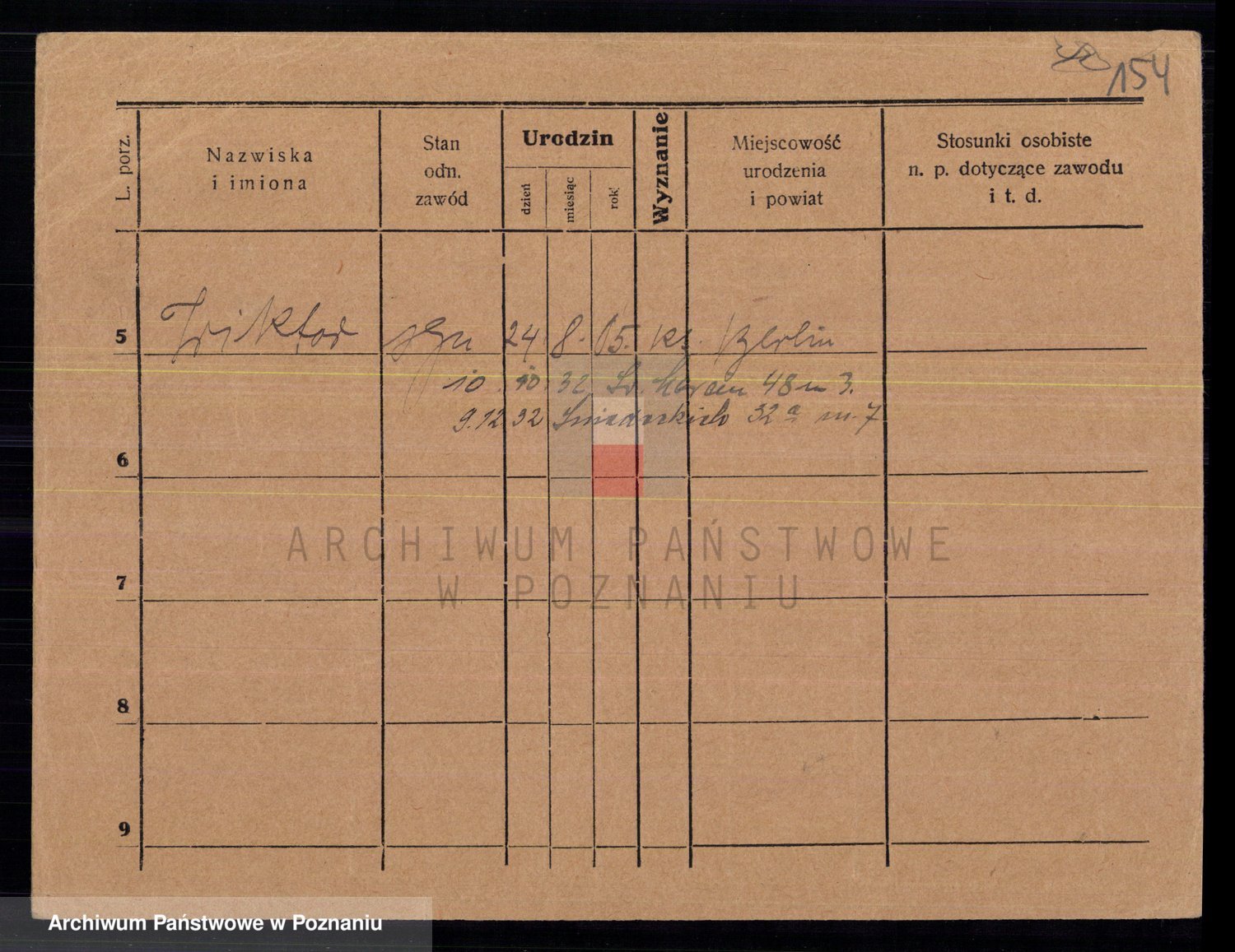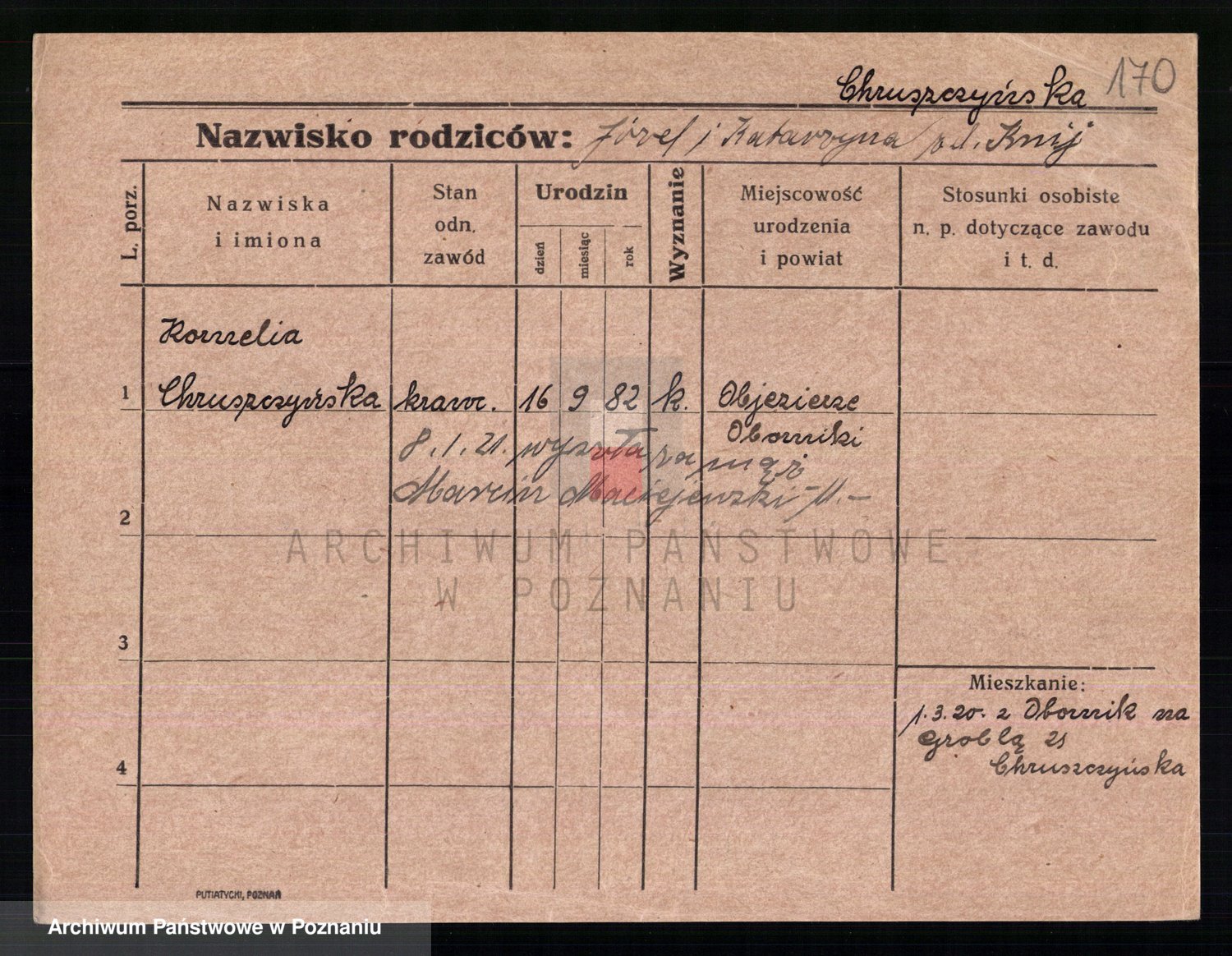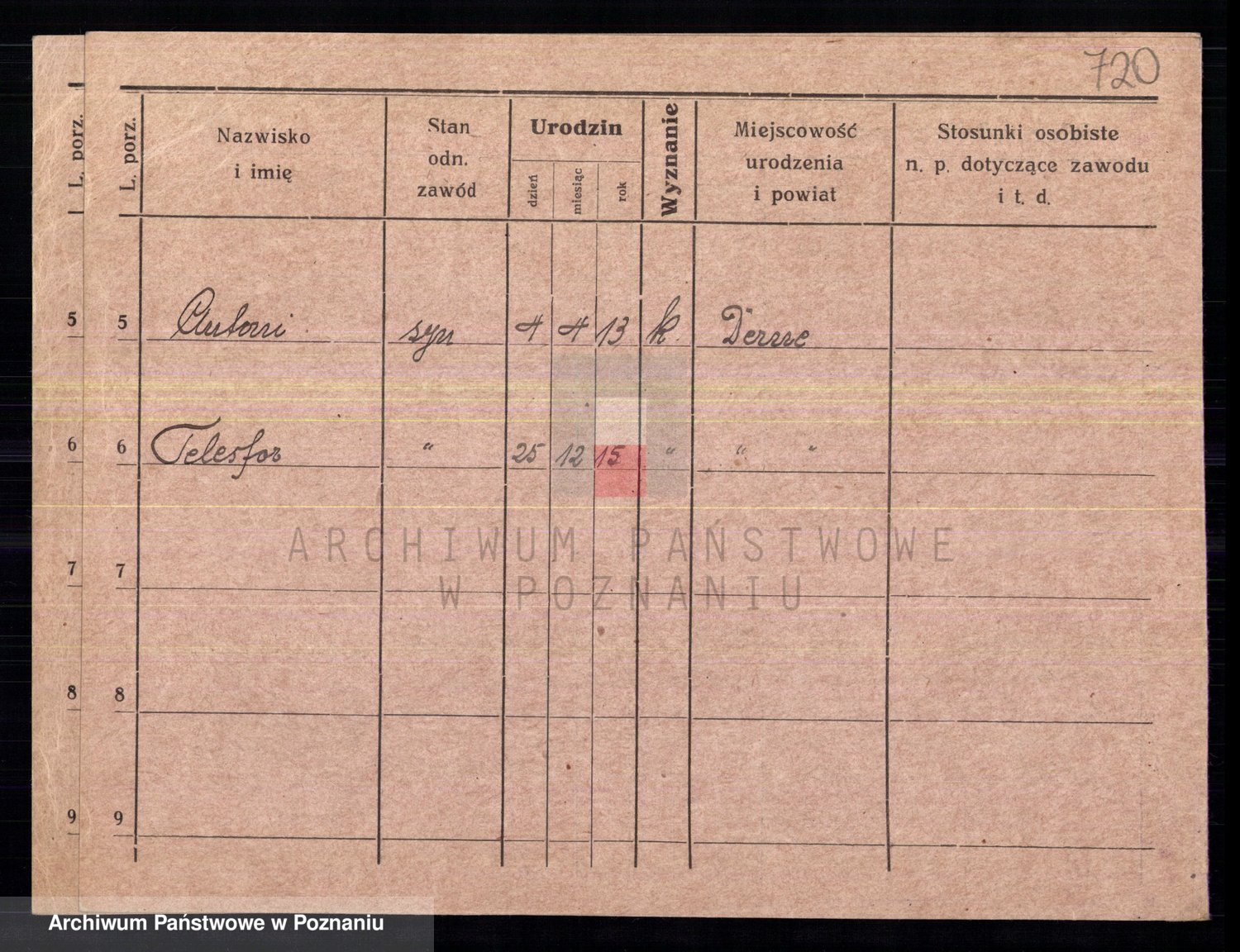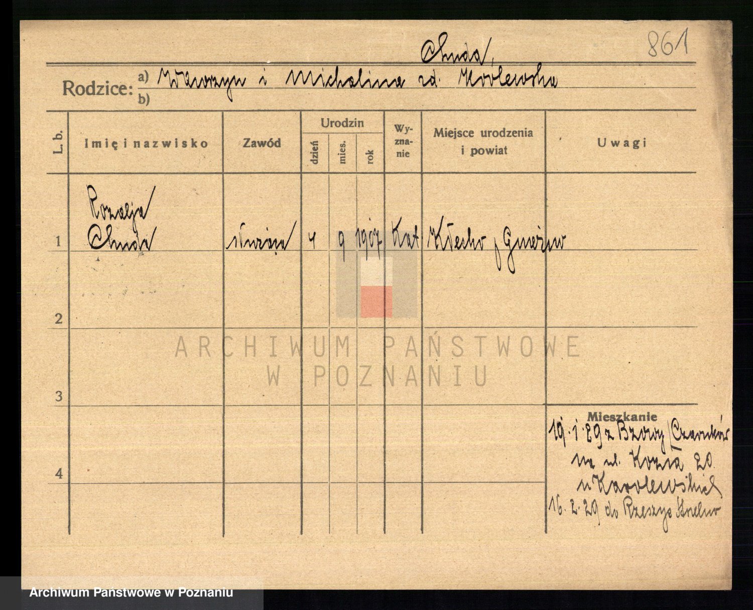 Podgląd karty osobowej dostępny jest po kliknięciu na nazwisko lub ikonkę karty. Można dokonywać powiększenia (ikony na górze) lub przechodzić między kolejnymi skanami (strzałki po bokach).