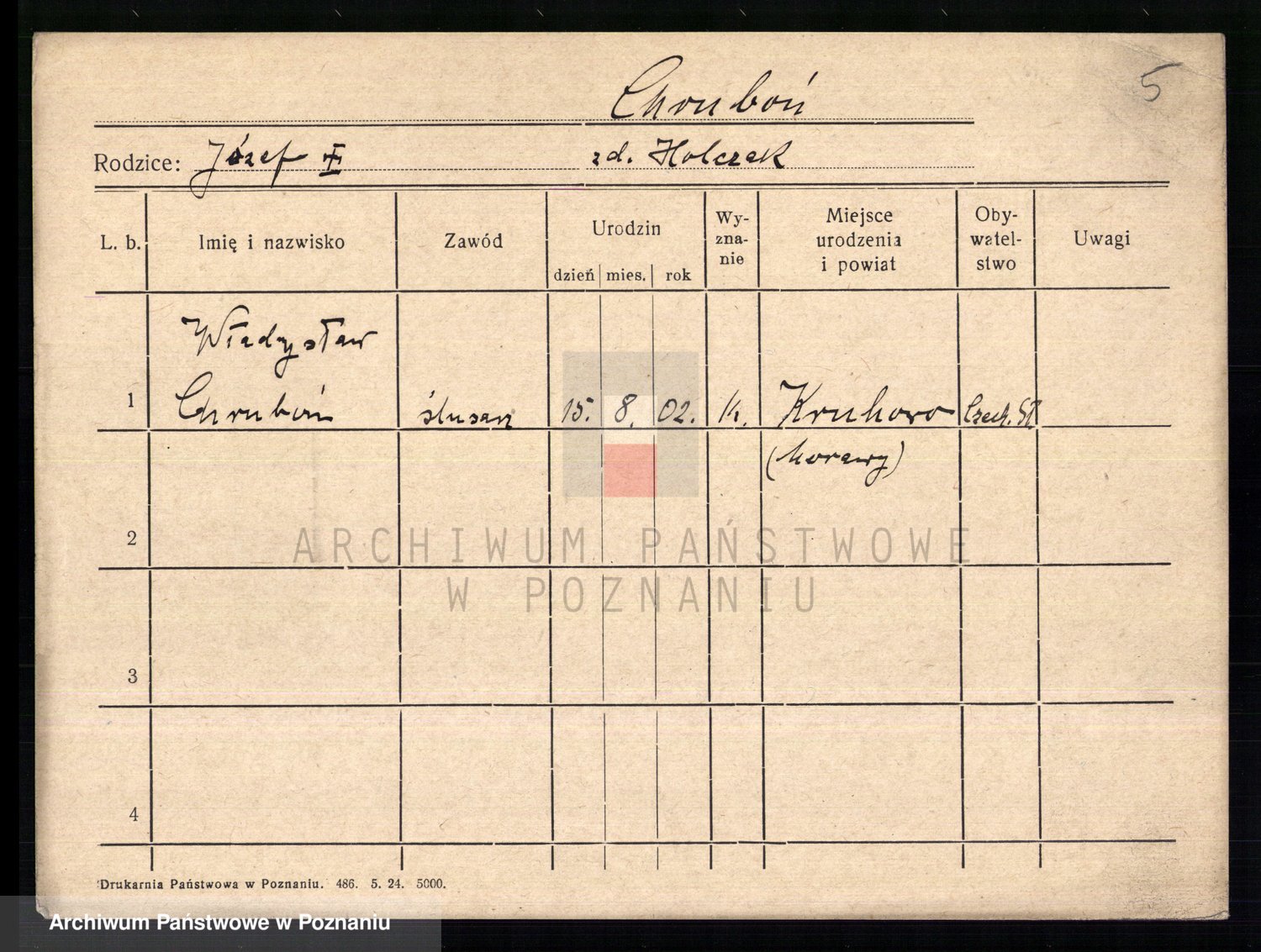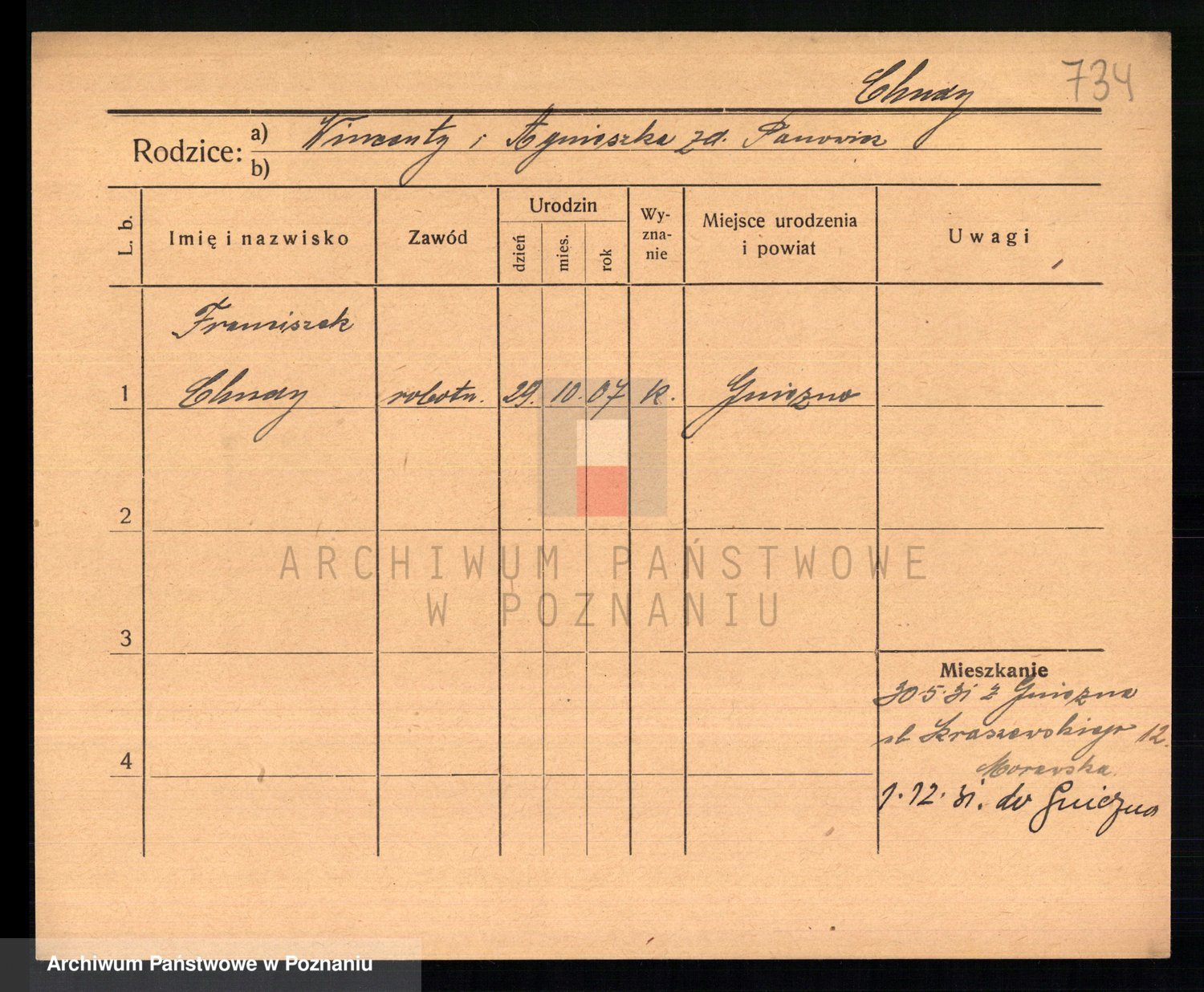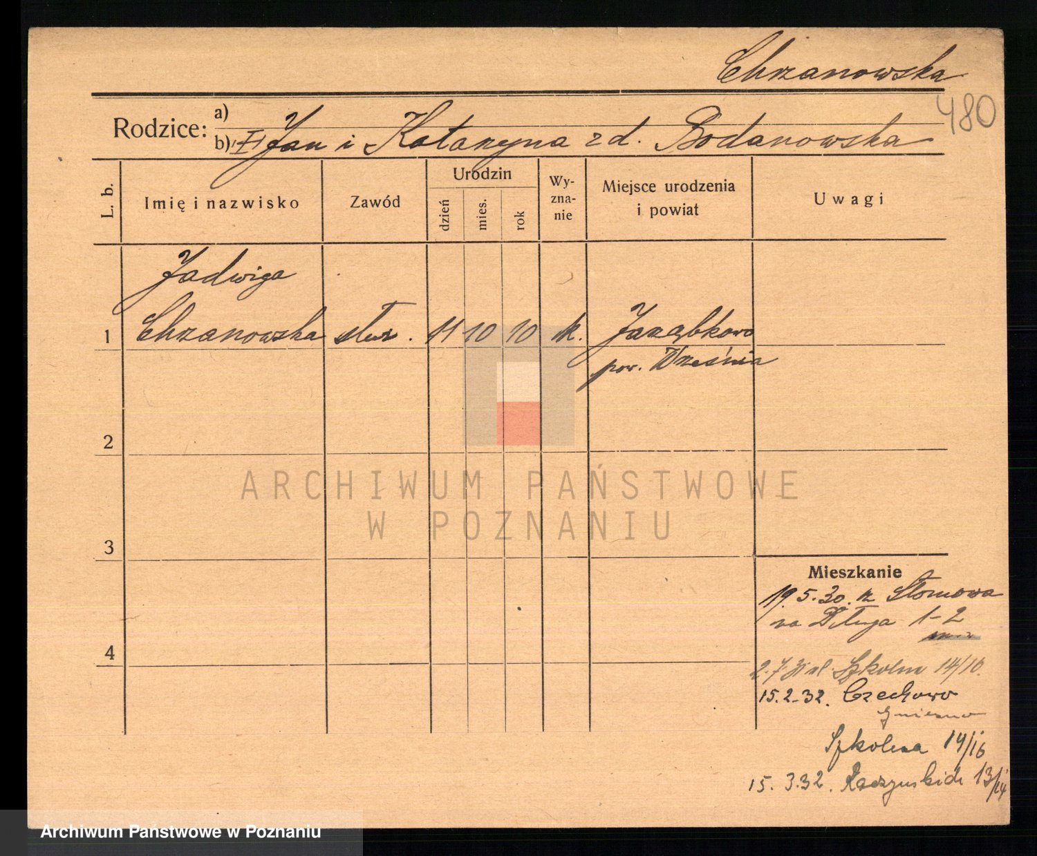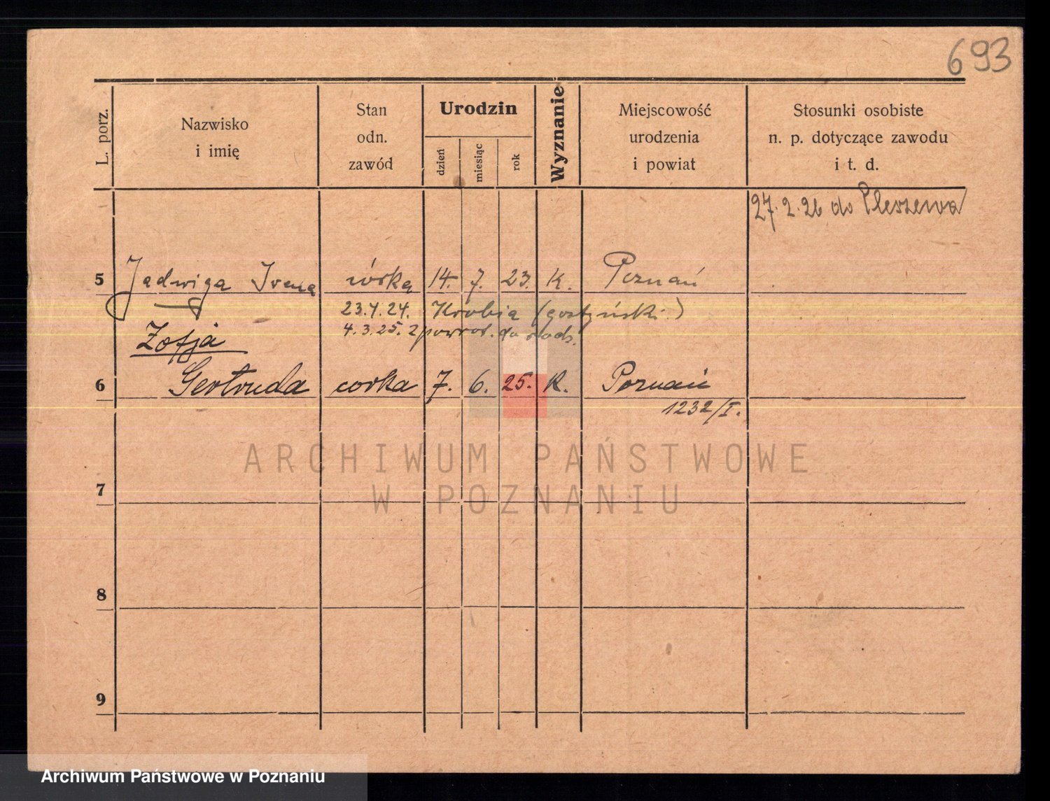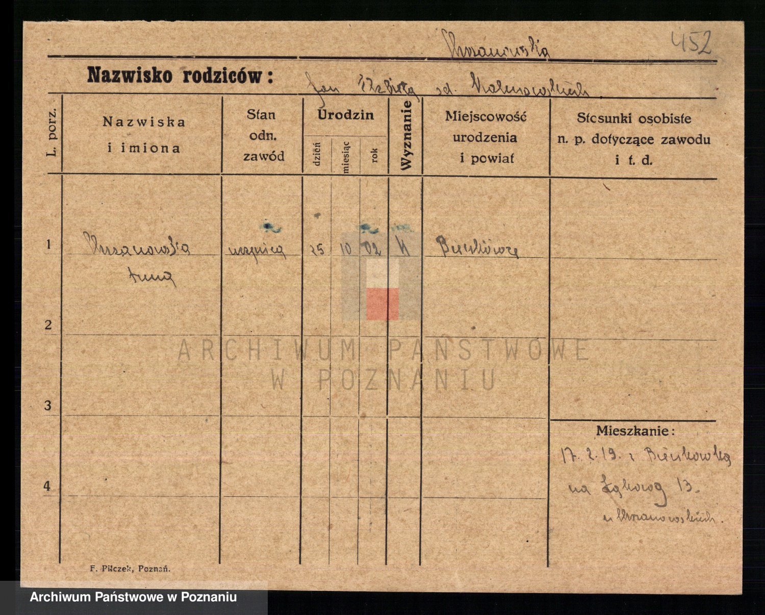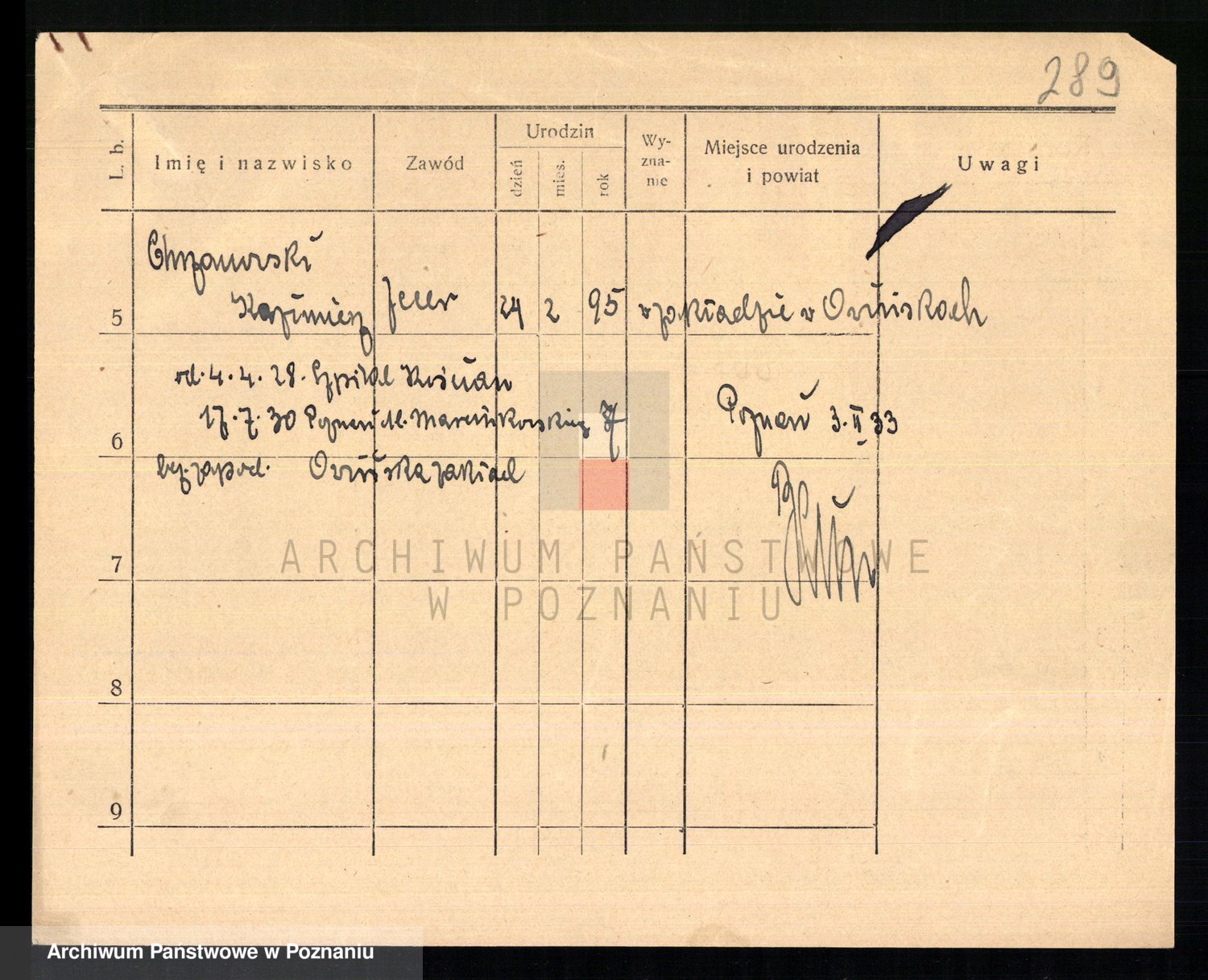 Podgląd karty osobowej dostępny jest po kliknięciu na nazwisko lub ikonkę karty. Można dokonywać powiększenia (ikony na górze) lub przechodzić między kolejnymi skanami (strzałki po bokach).